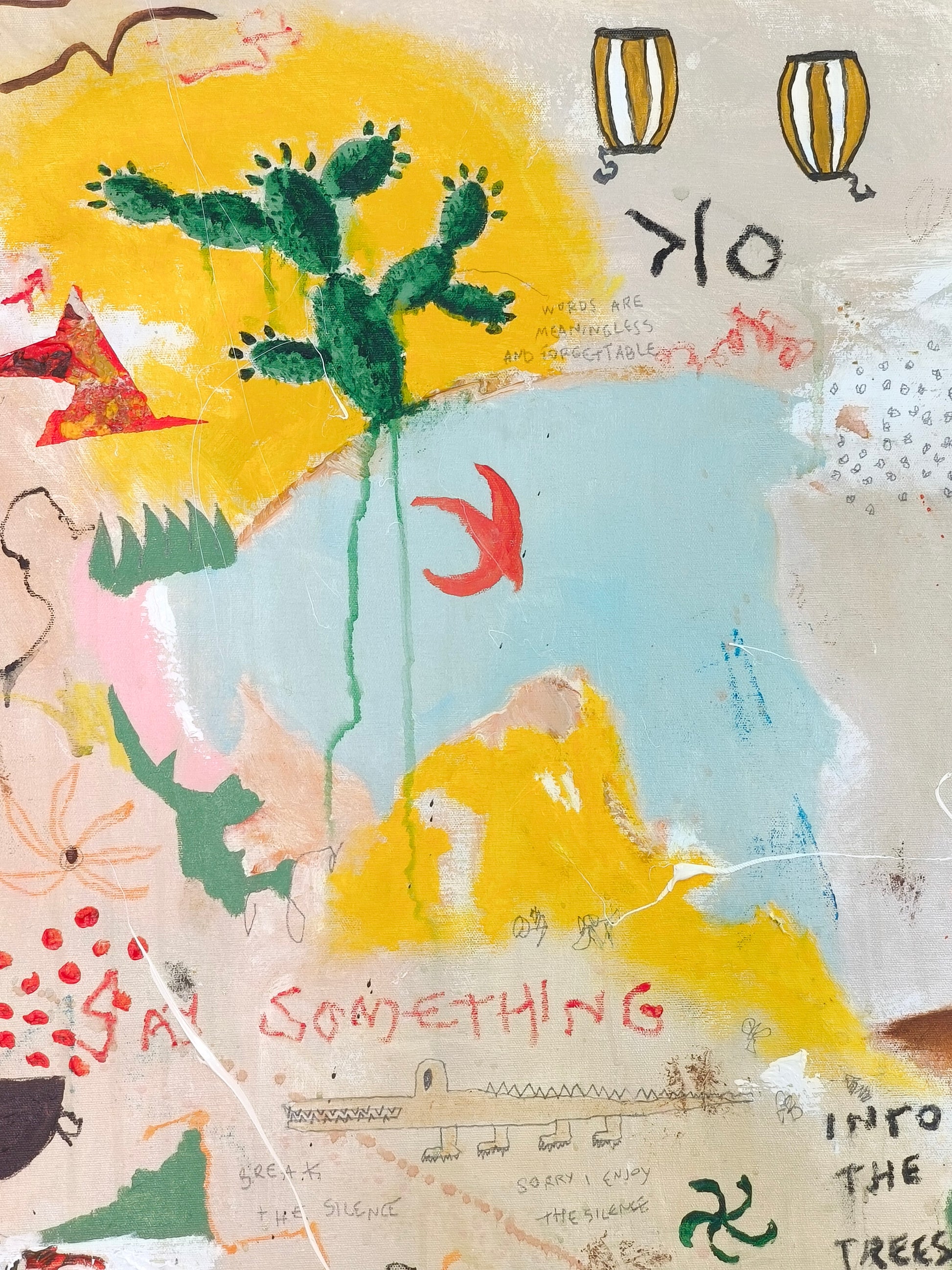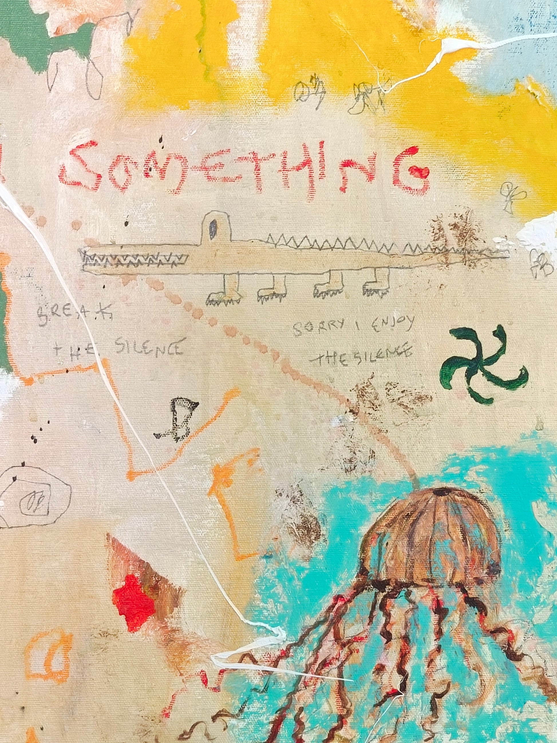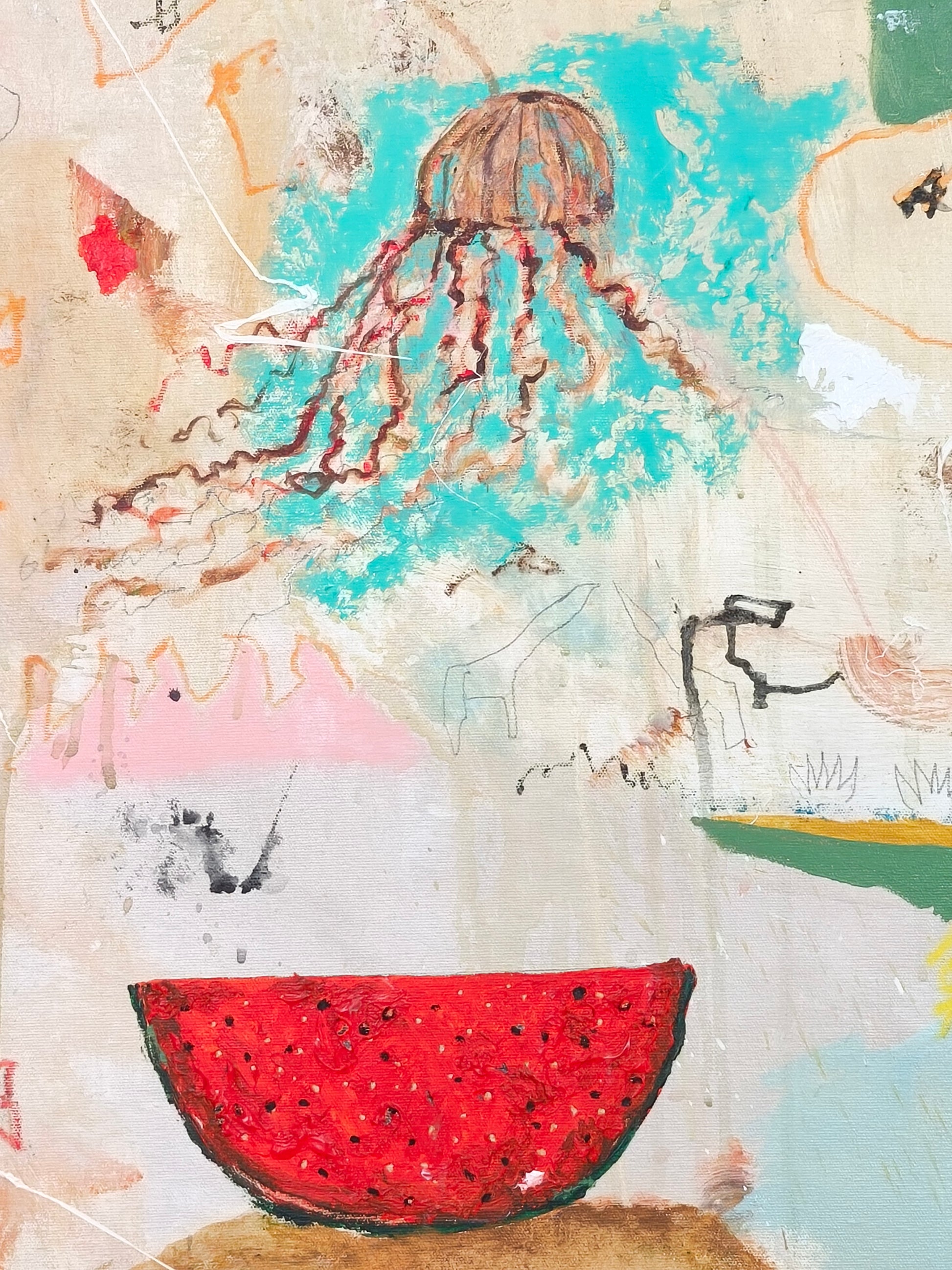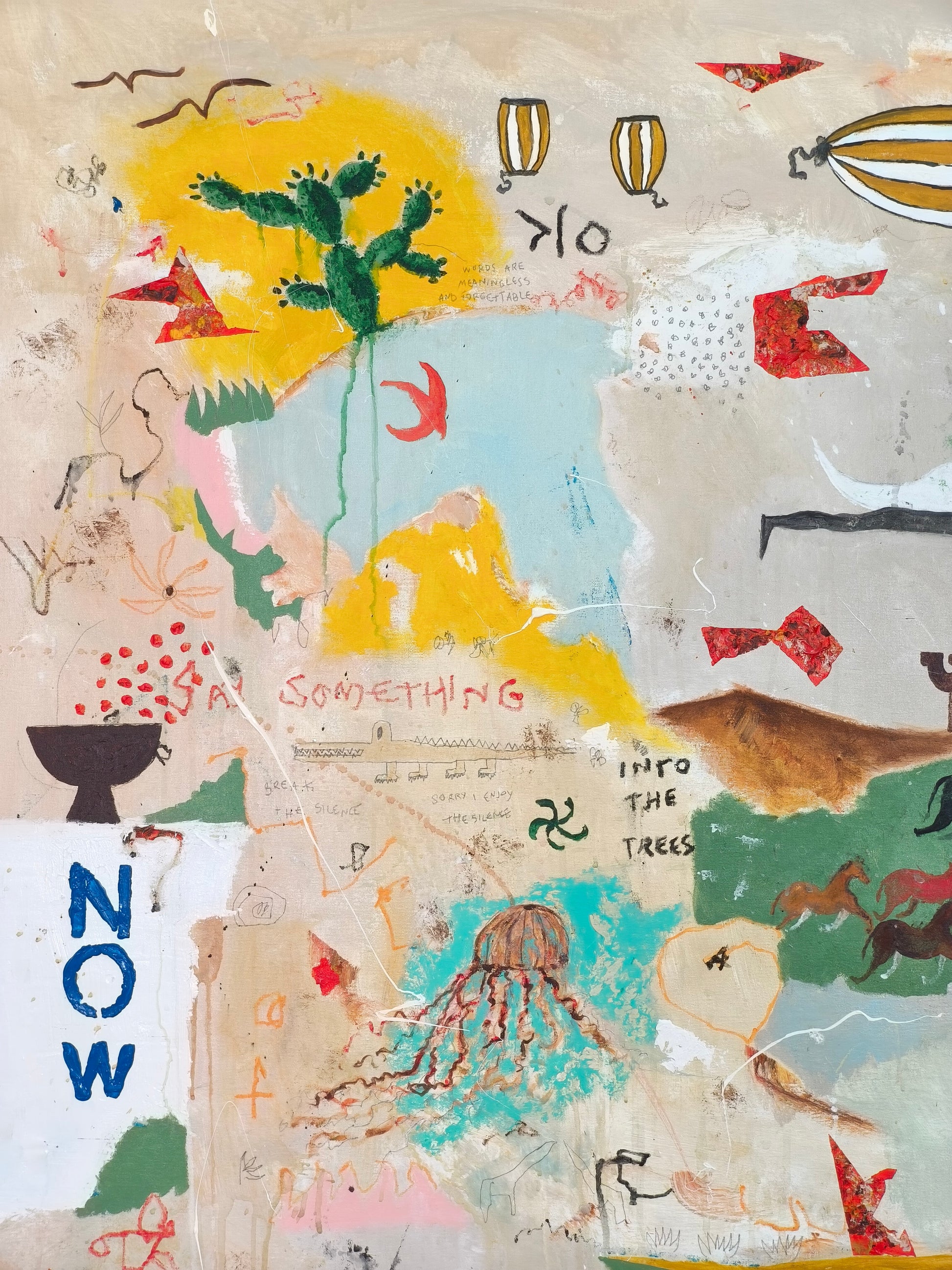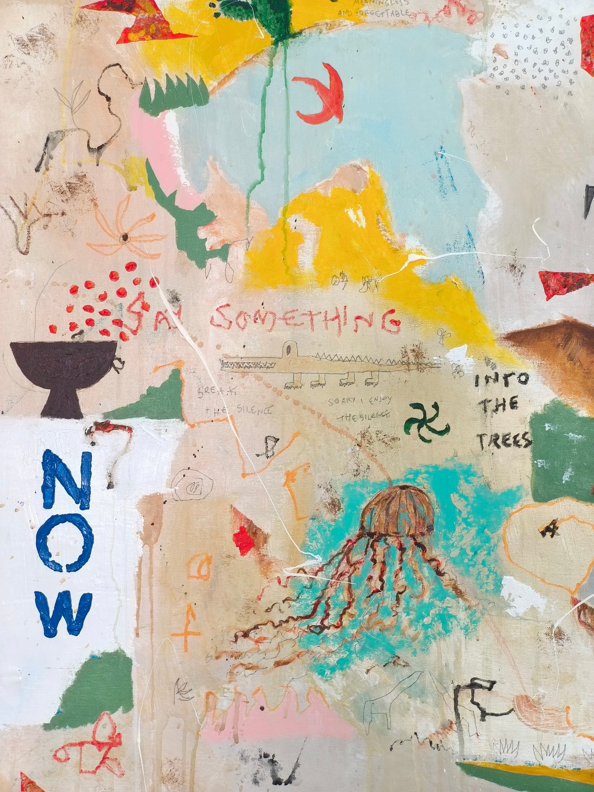 Gestural, intuitive painting that lets things happen and relies on what emerges. Taking advantage of the unexpected and accepting the consequences.