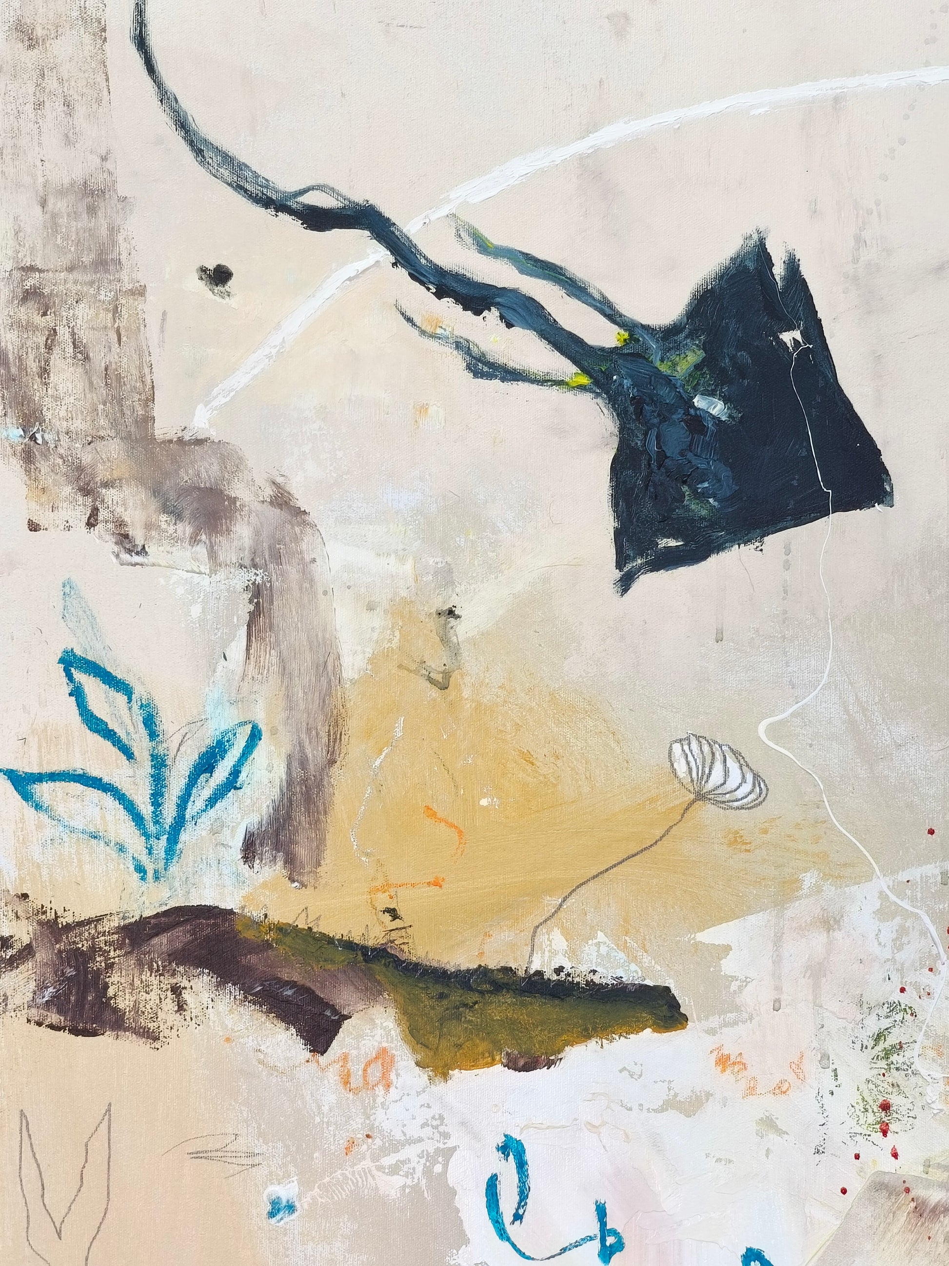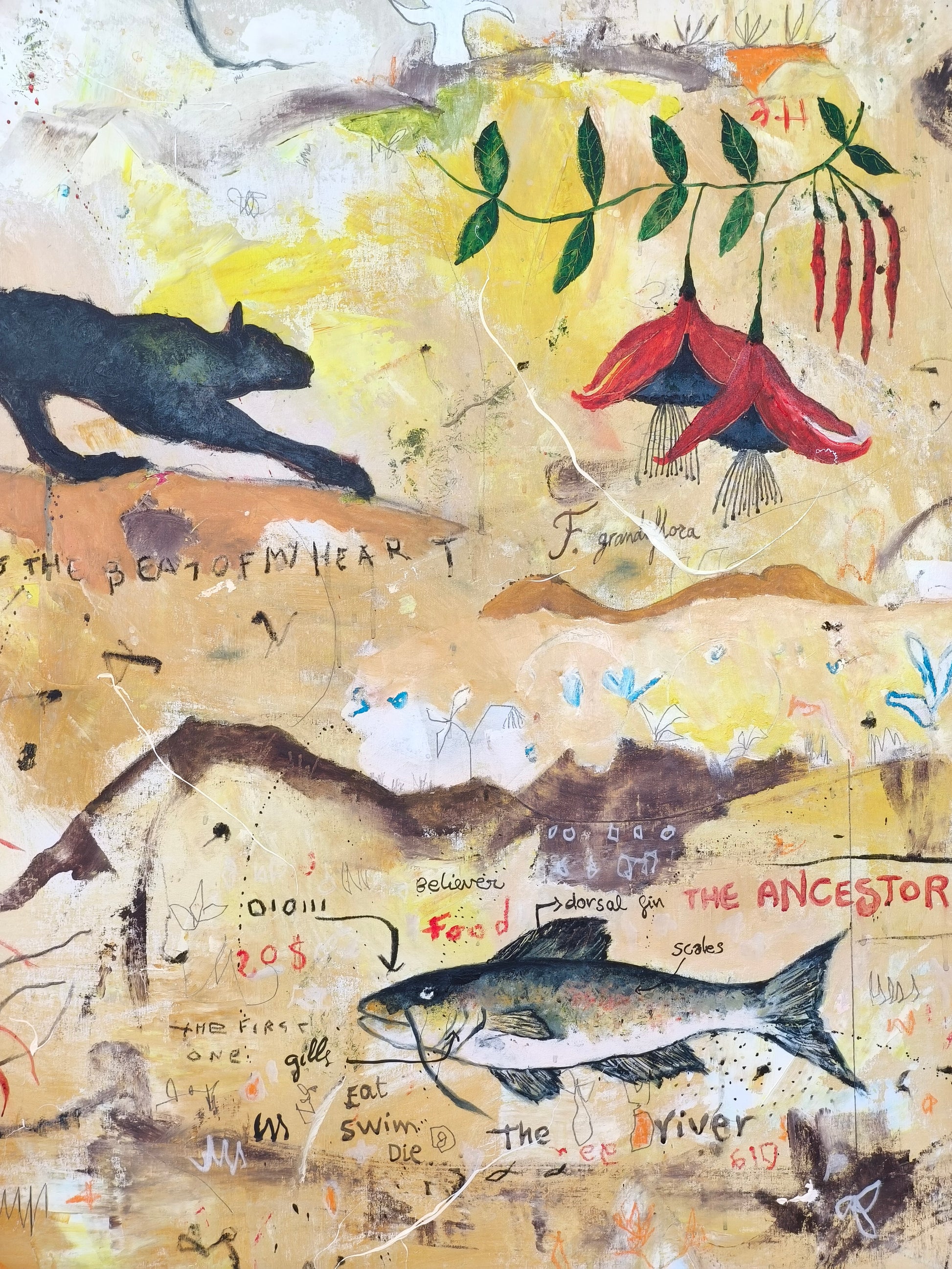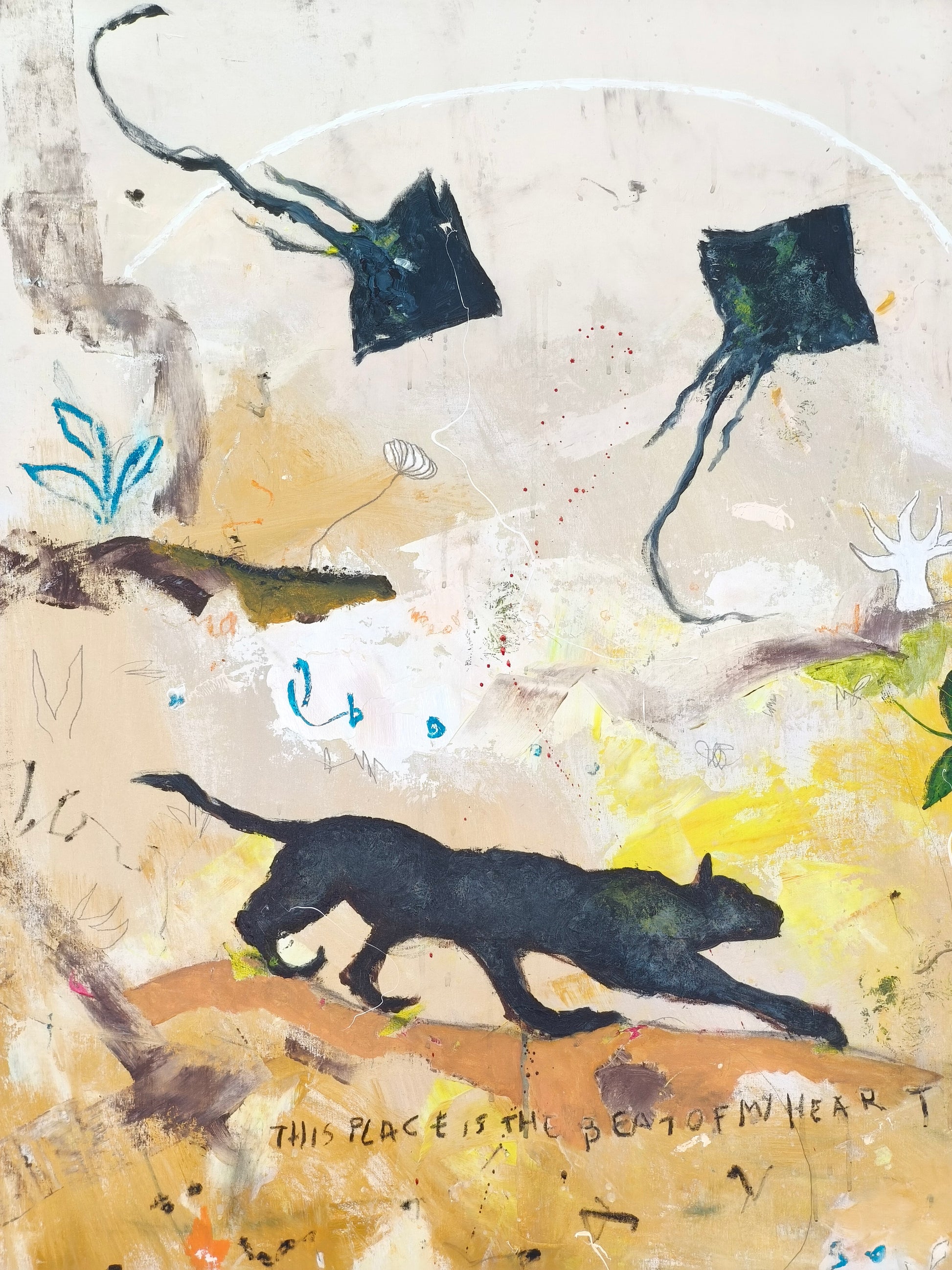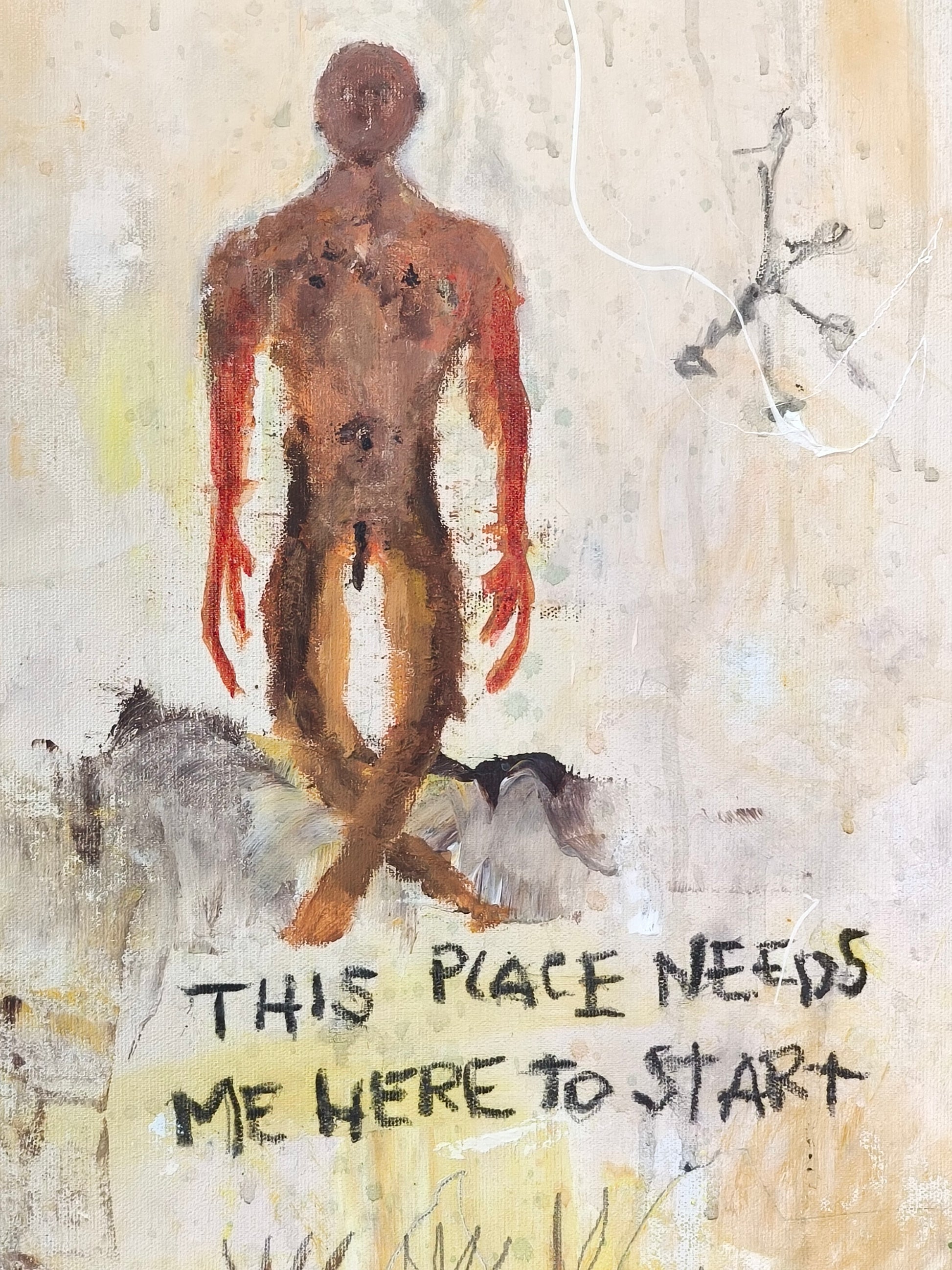 Técnica: acrílico, lápiz, carboncillo, gesso, ceras.
