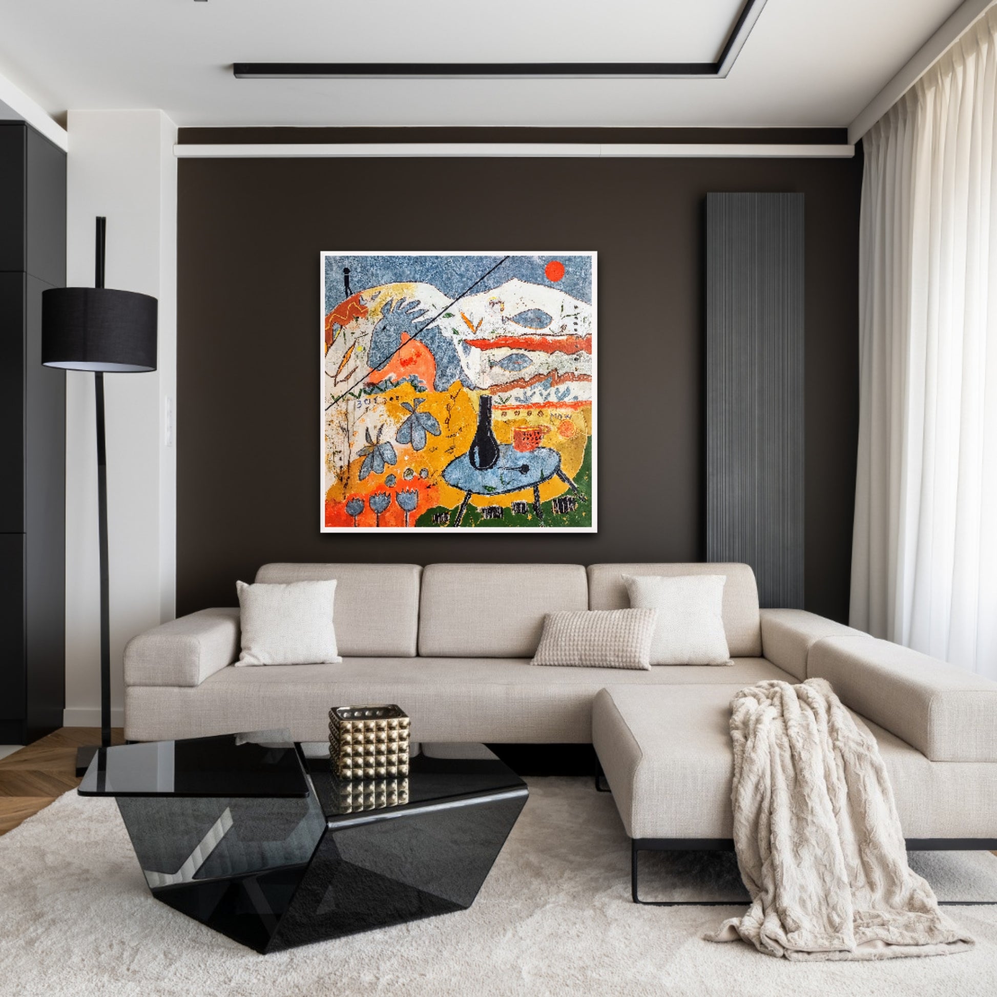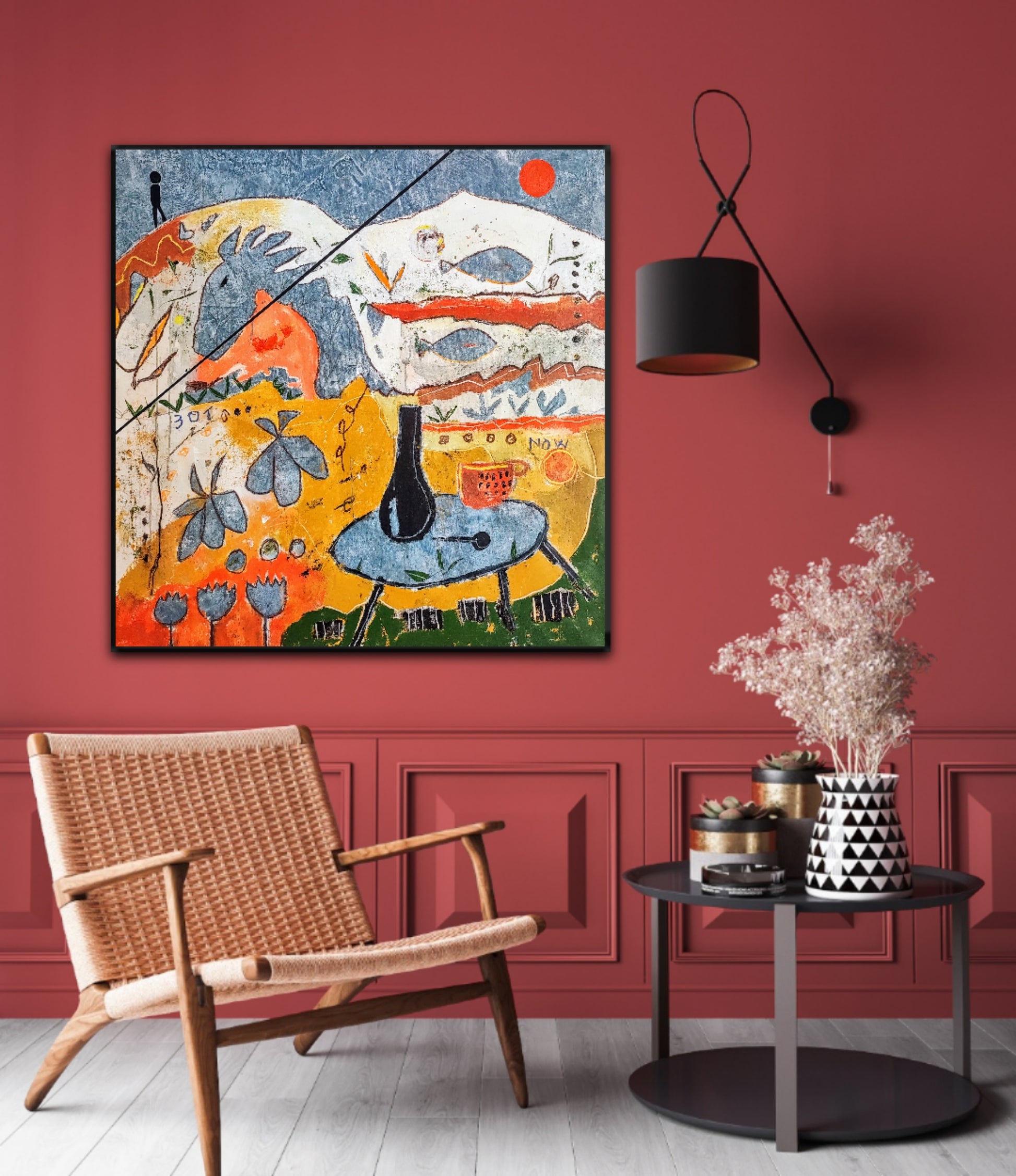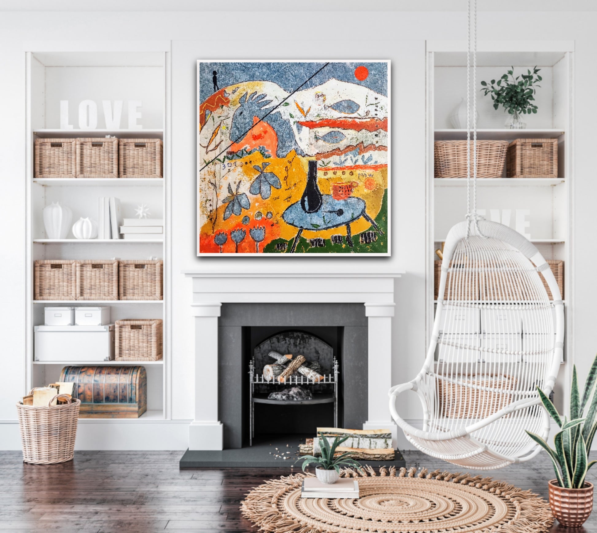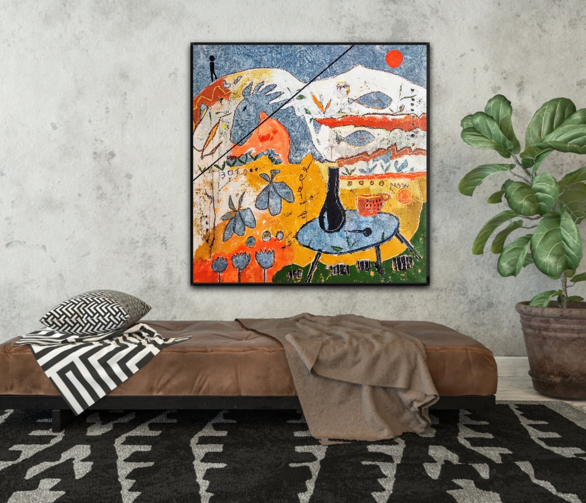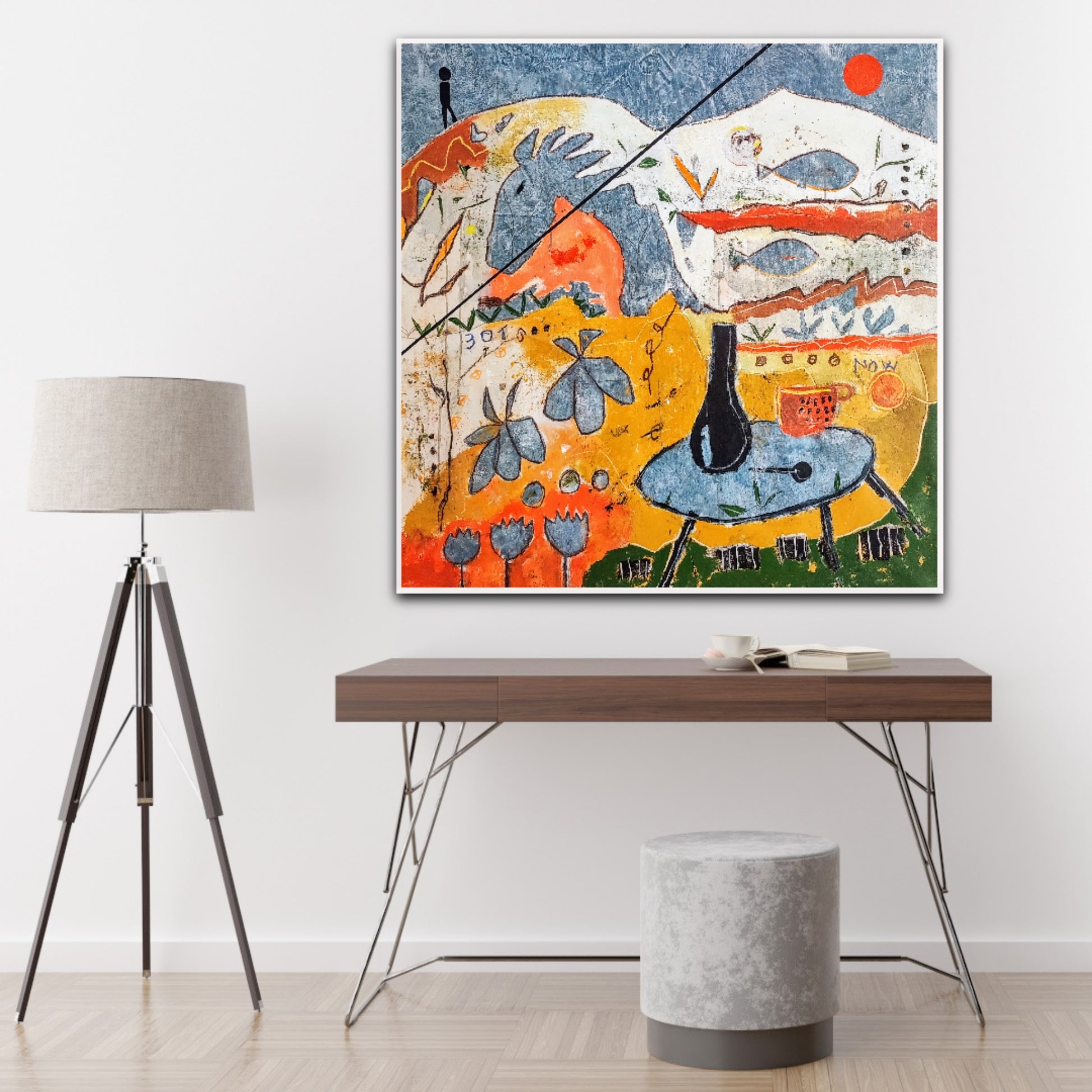 Técnica: acrílico, pigmentos, gesso, ceras, carboncillo y lápiz.