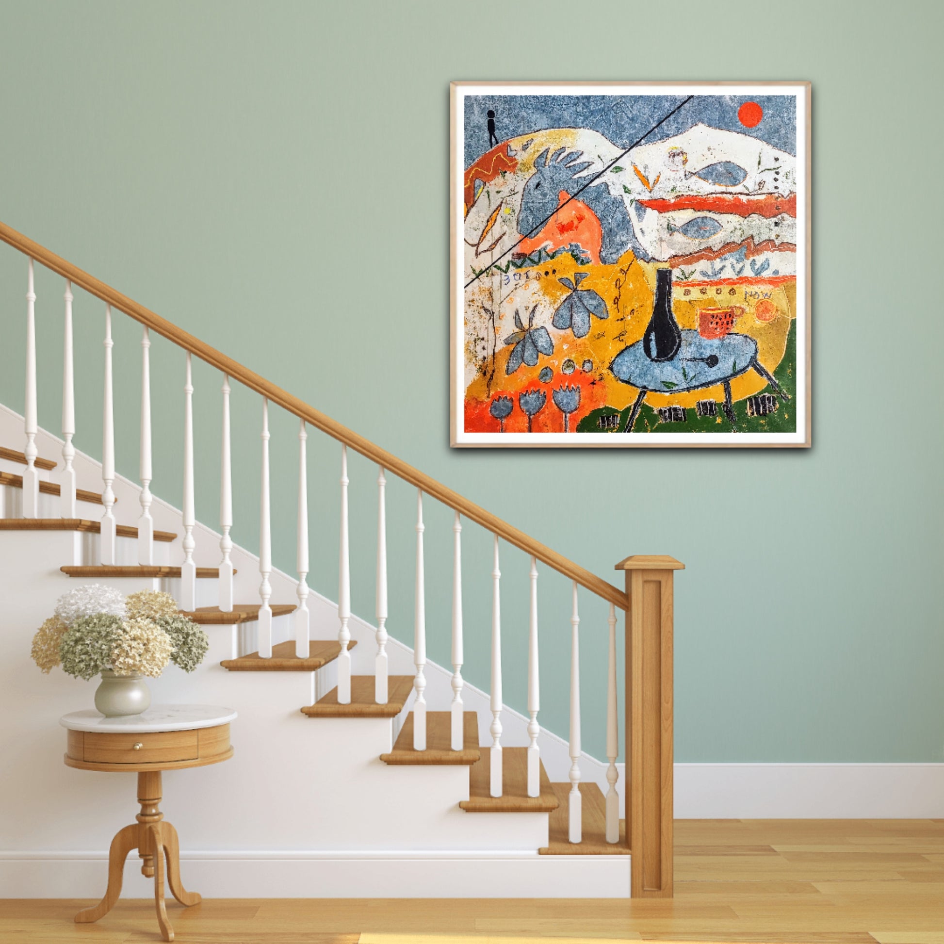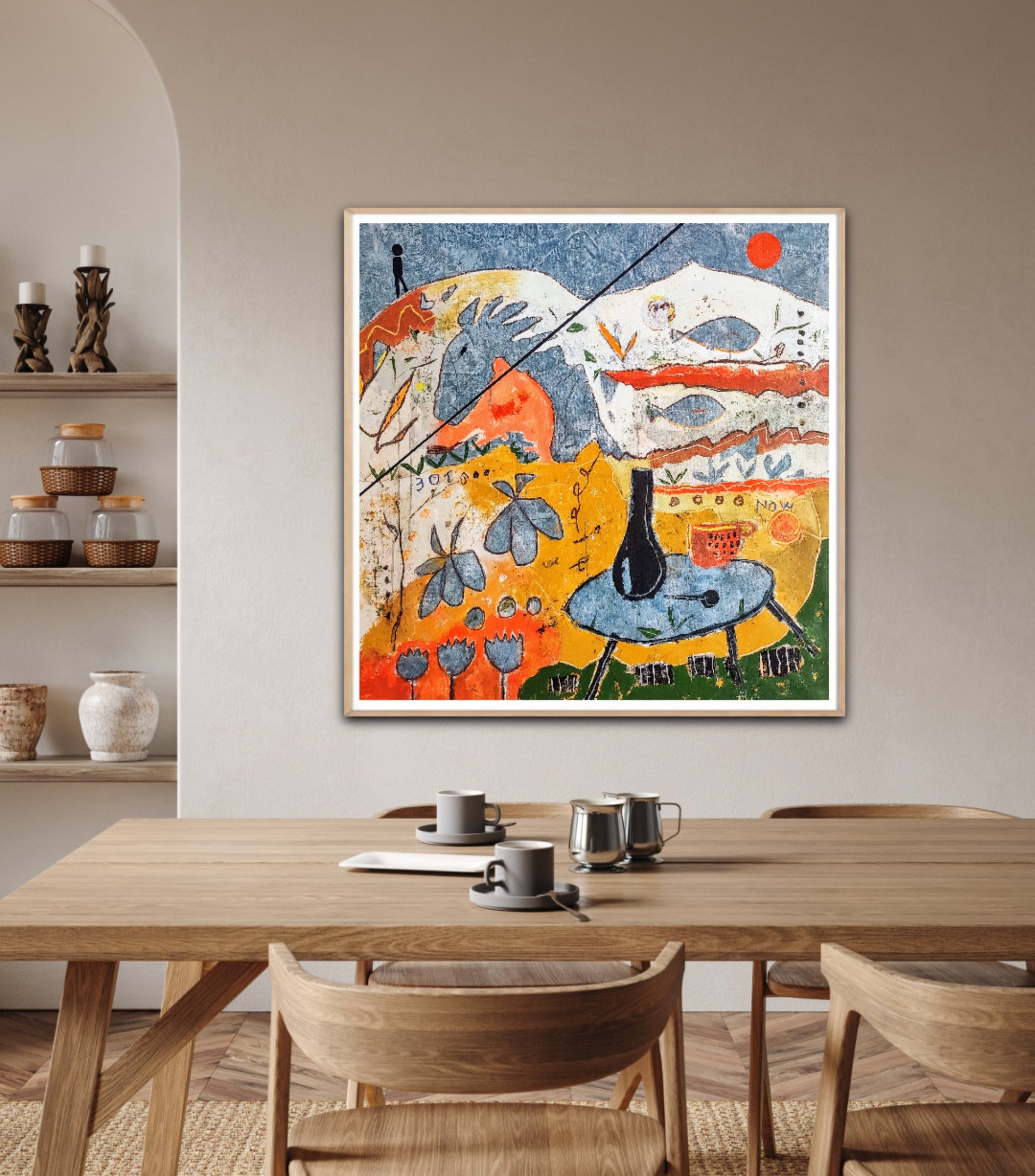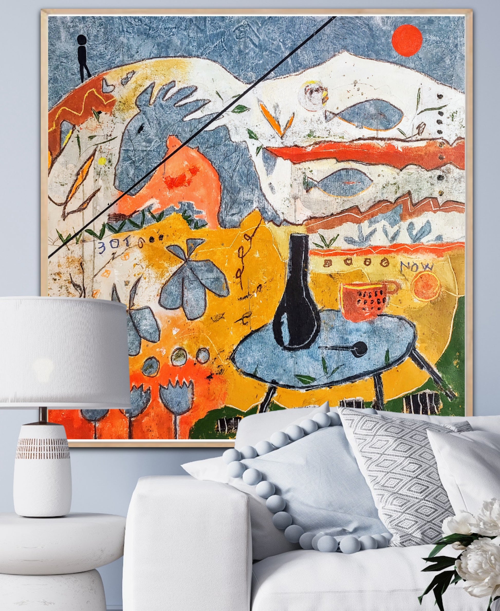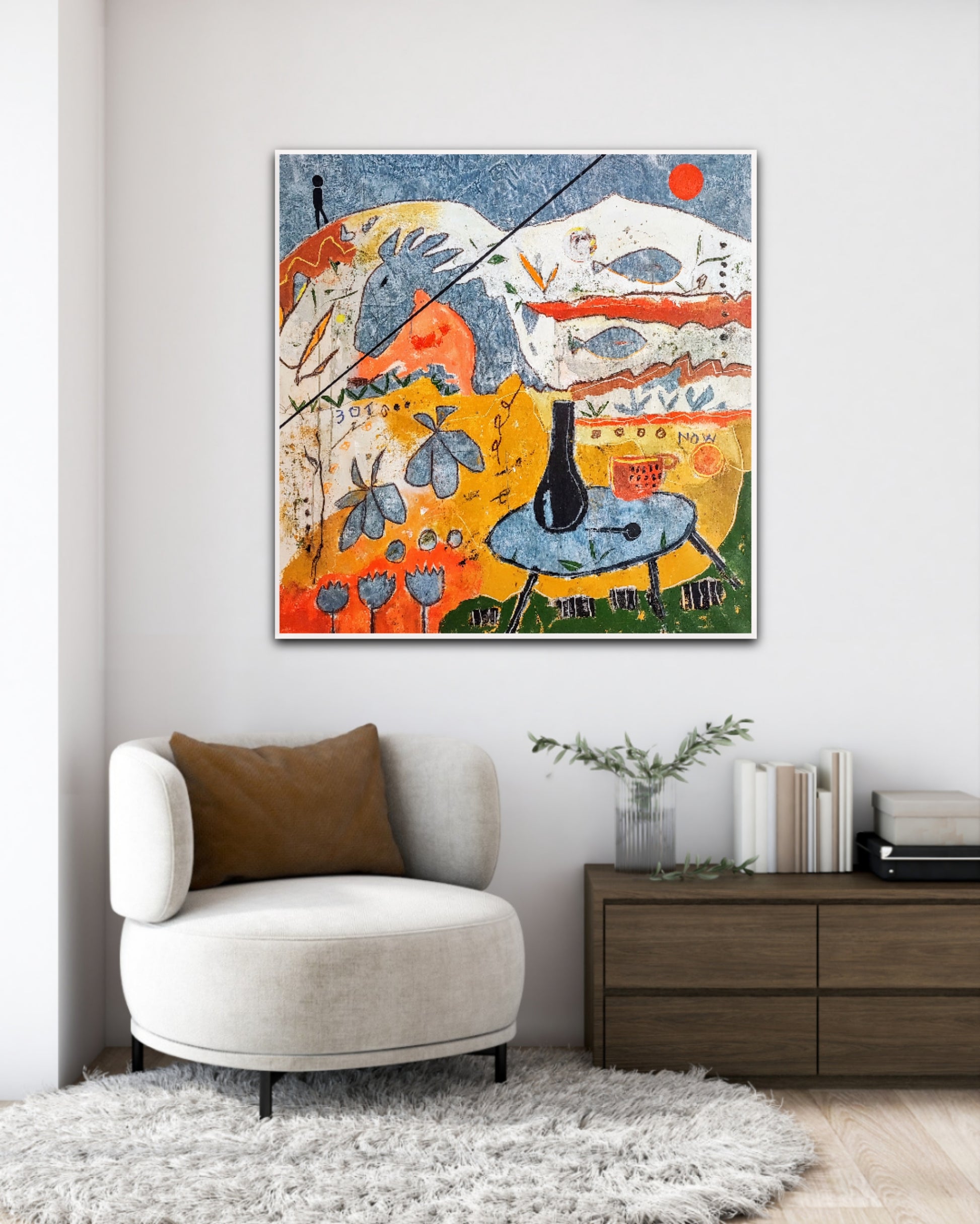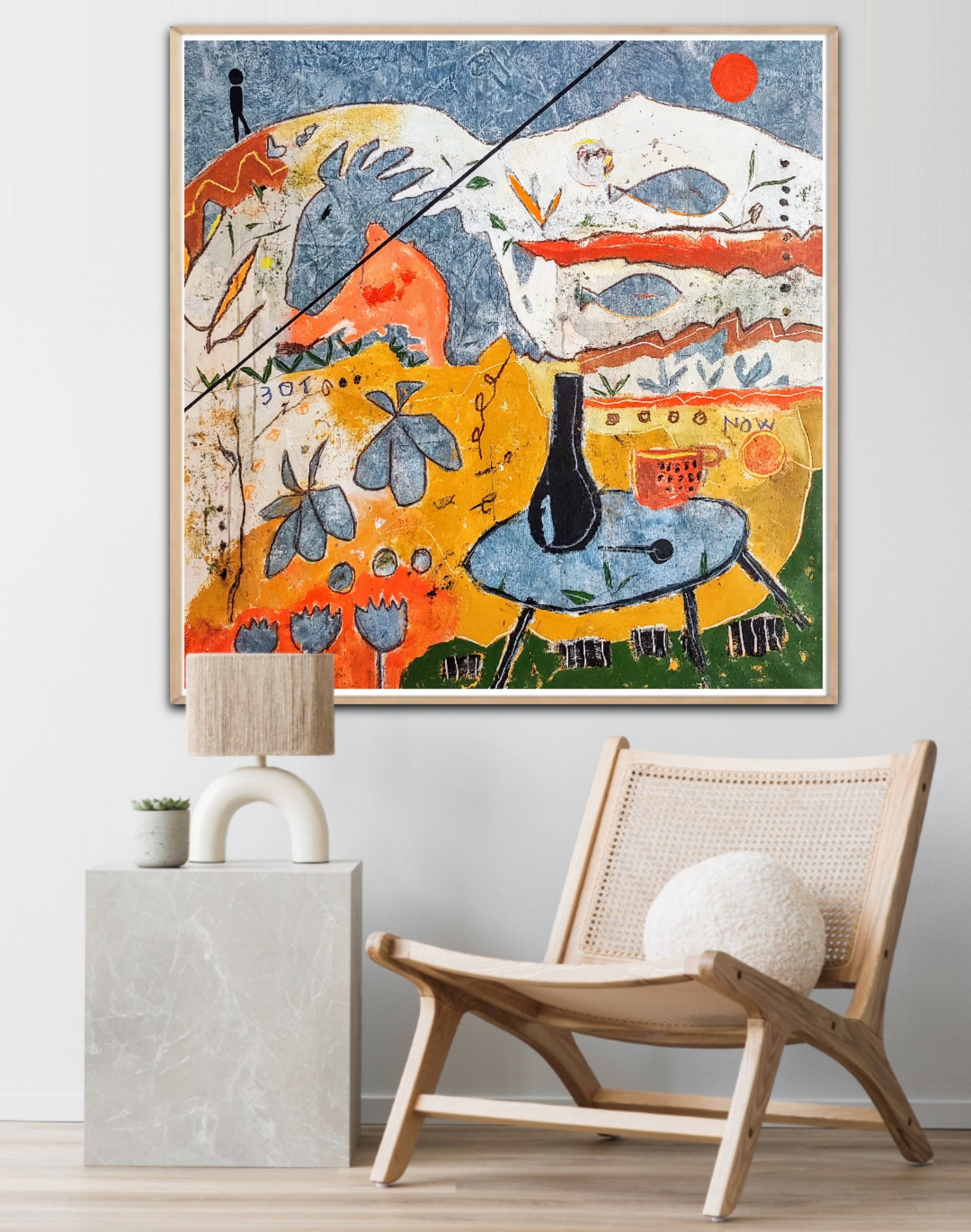 Técnica: acrílico, pigmentos, gesso, ceras, carboncillo y lápiz.