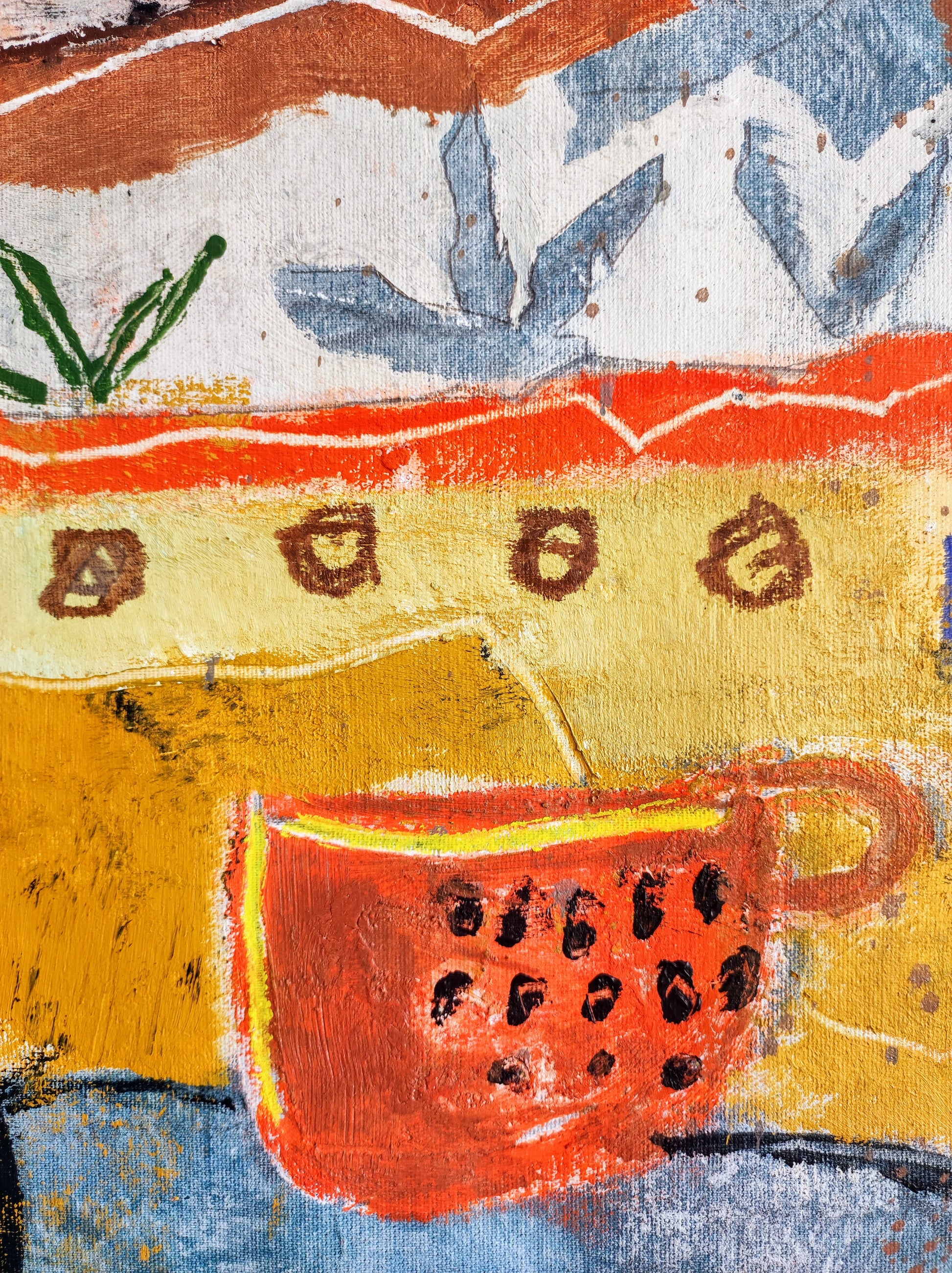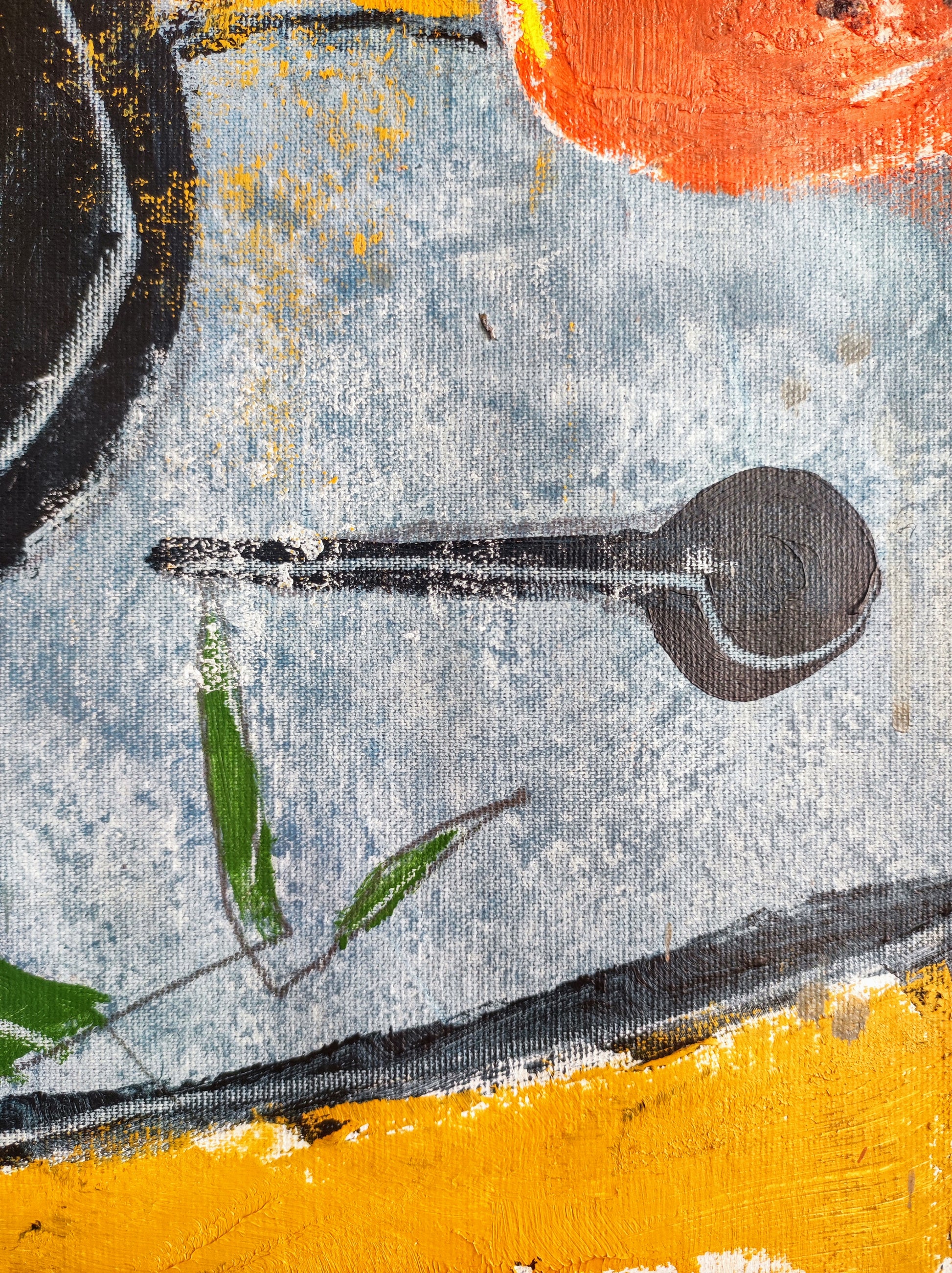 Cuadro trabajado desde la improvisación libre. Action painting con música de Clogs.