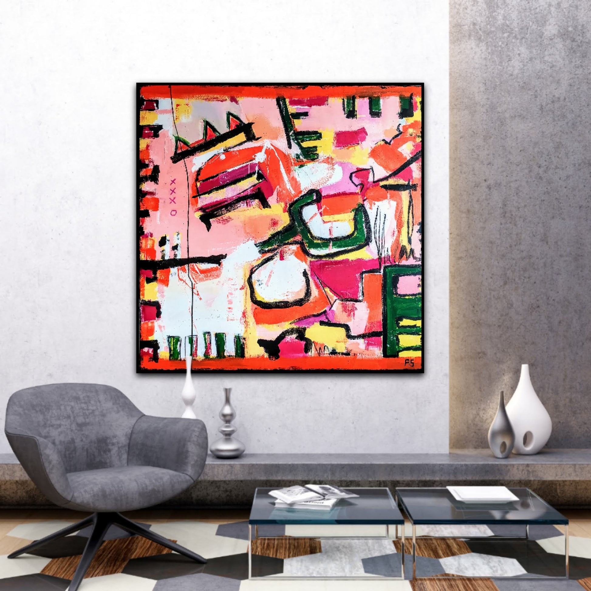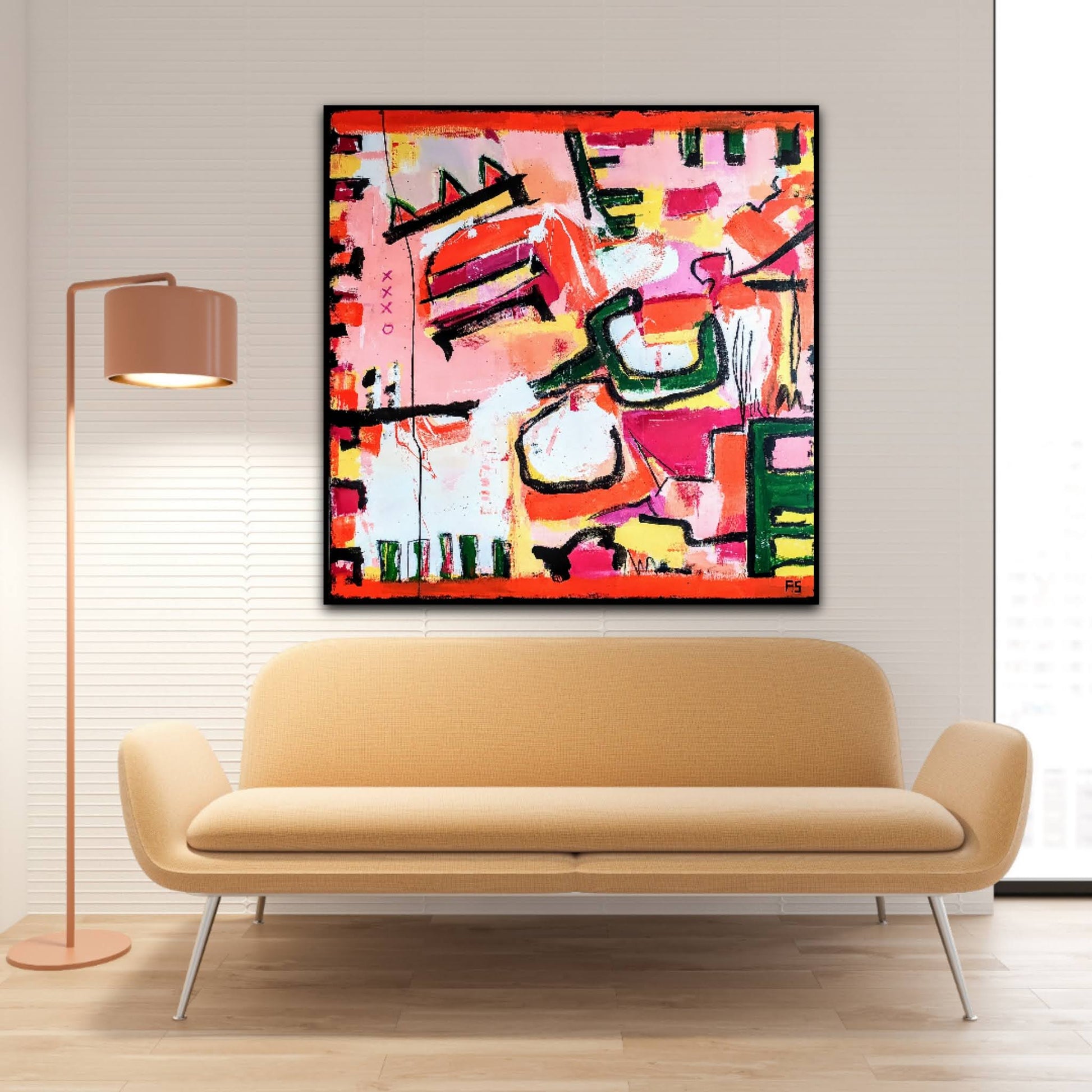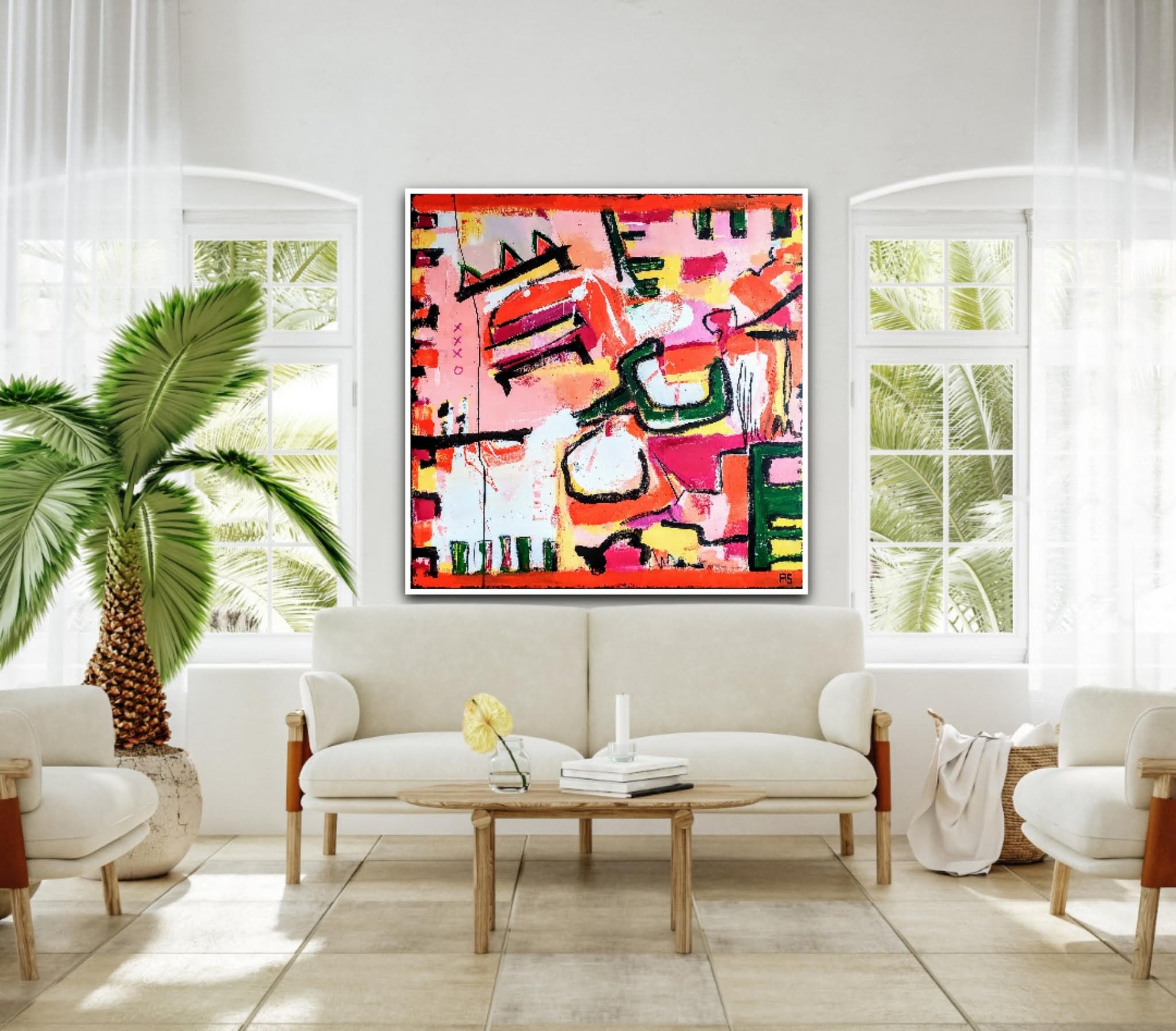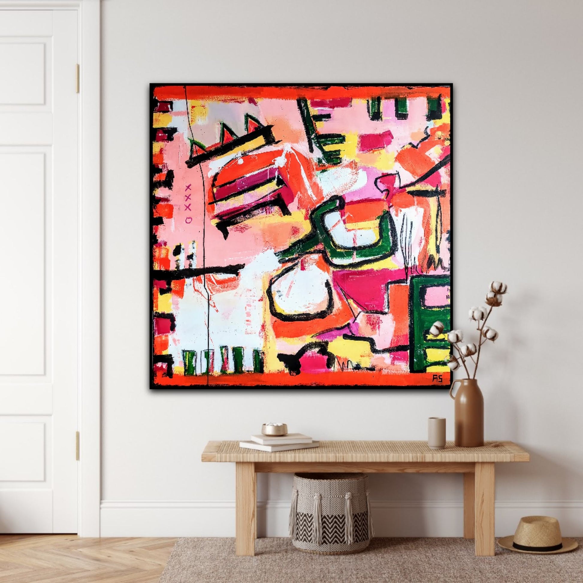 El cuadro tuvo diferentes enfoques durante el proceso creativo, hasta encontrar finalmente una composición donde una serie de formas a modo de piezas de un engranaje tratan de conectar. Piezas que actúan como personas hablando diferentes lenguajes que no llegan a entenderse pero conviven en cierta armonía.