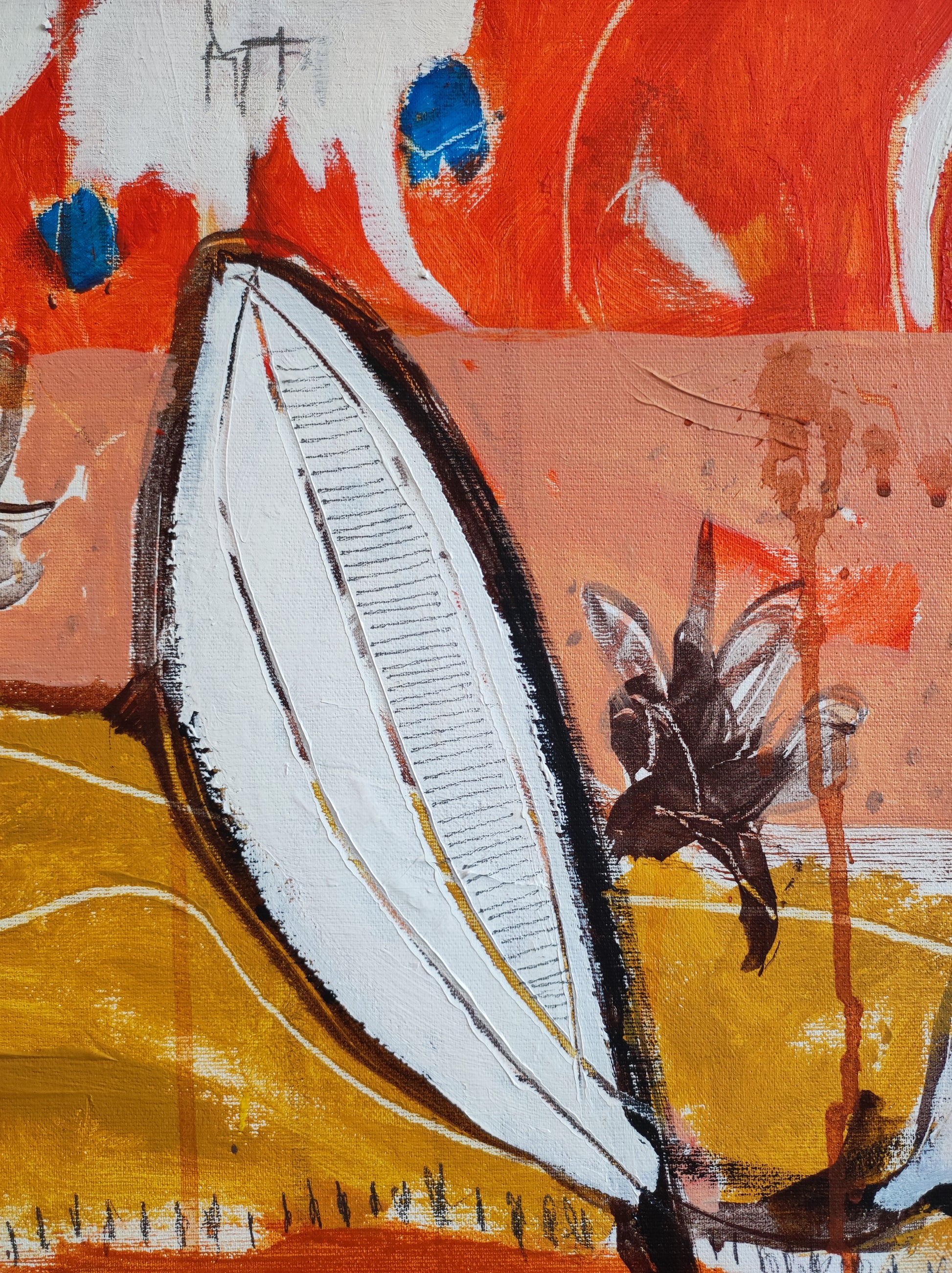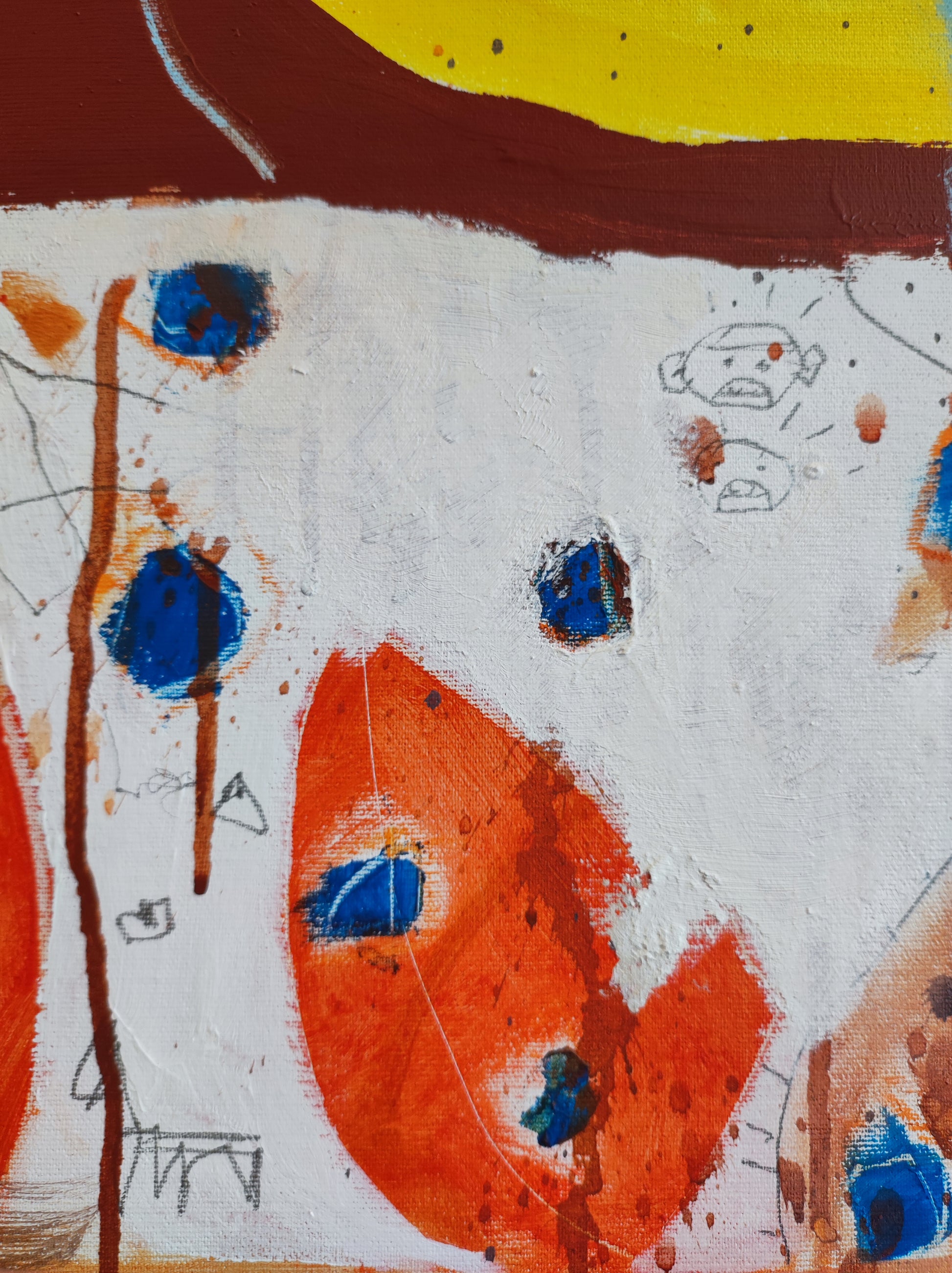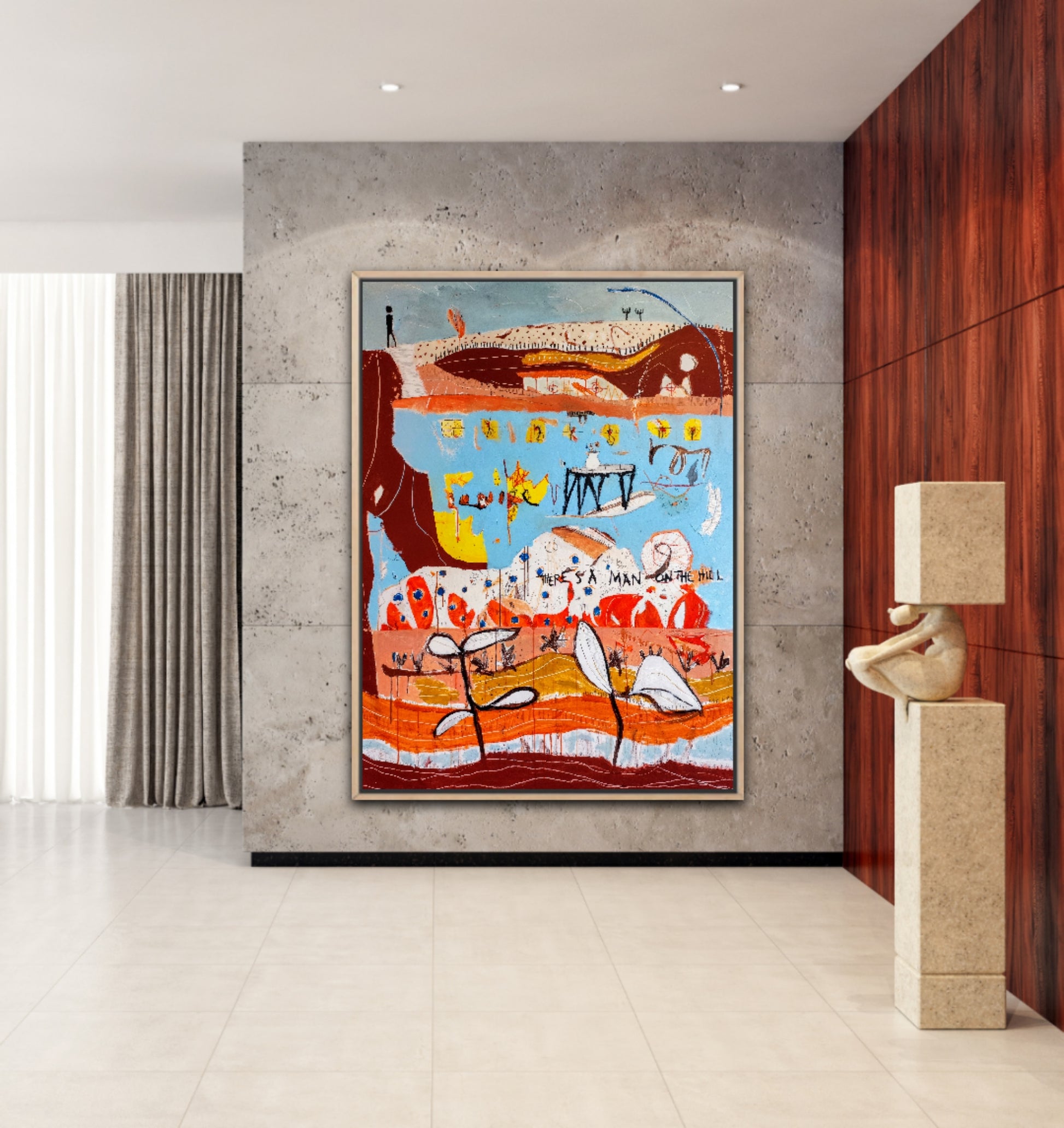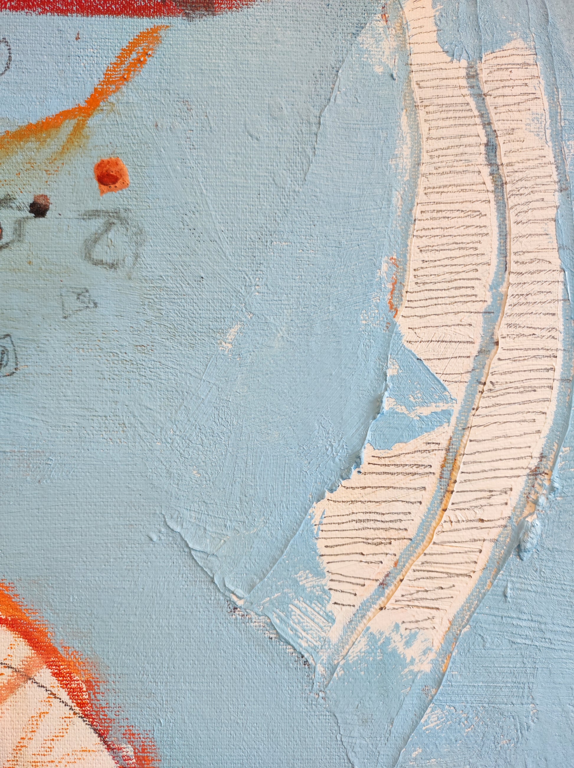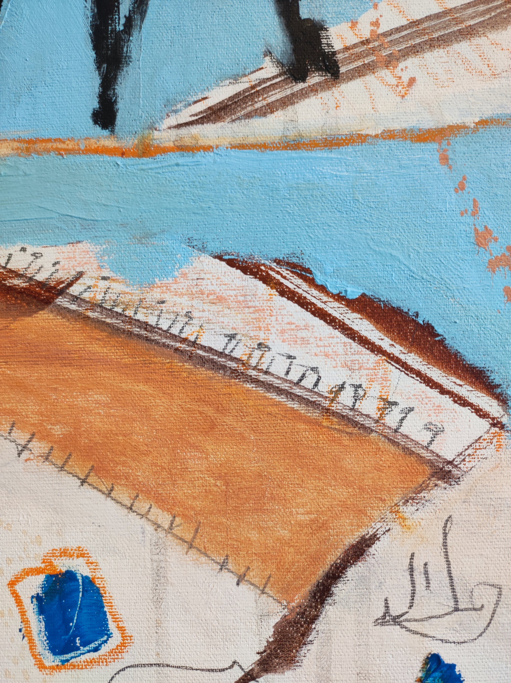 Técnica: acrílico, pigmentos, gesso, ceras, carboncillo y lápiz.