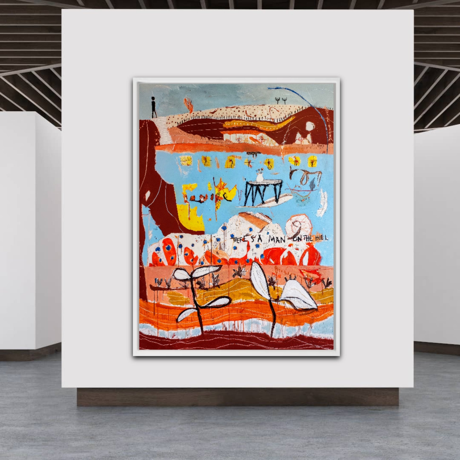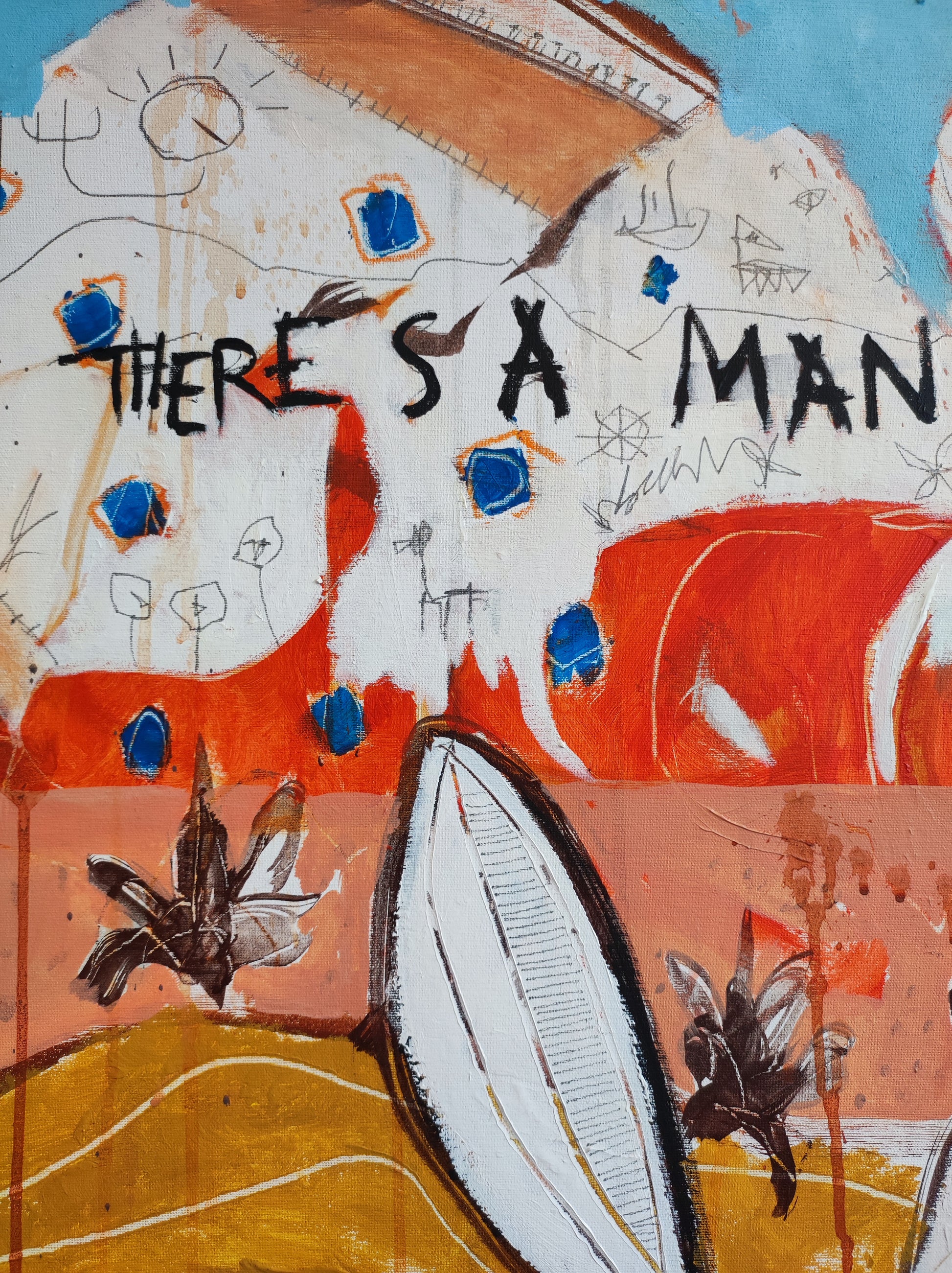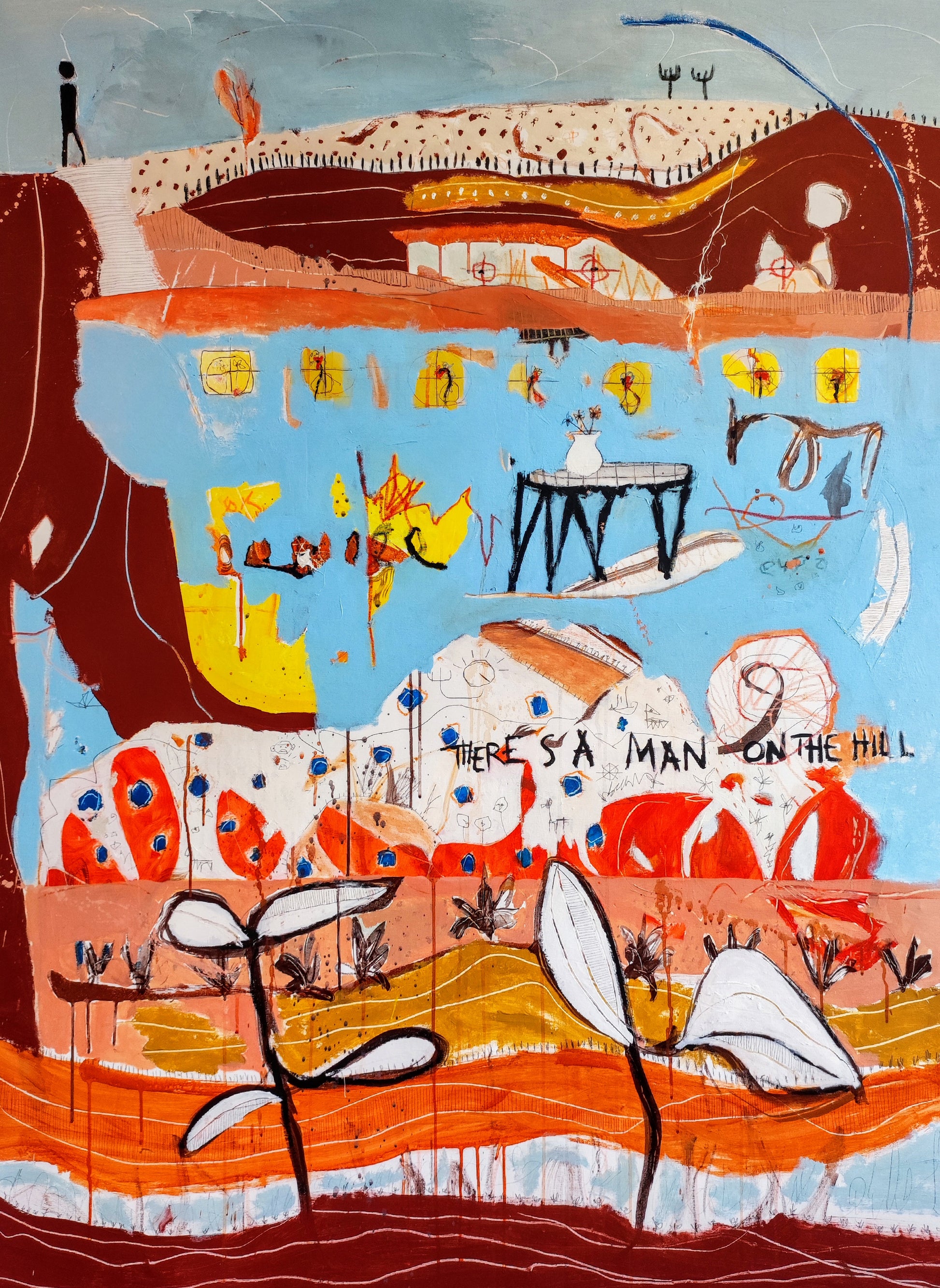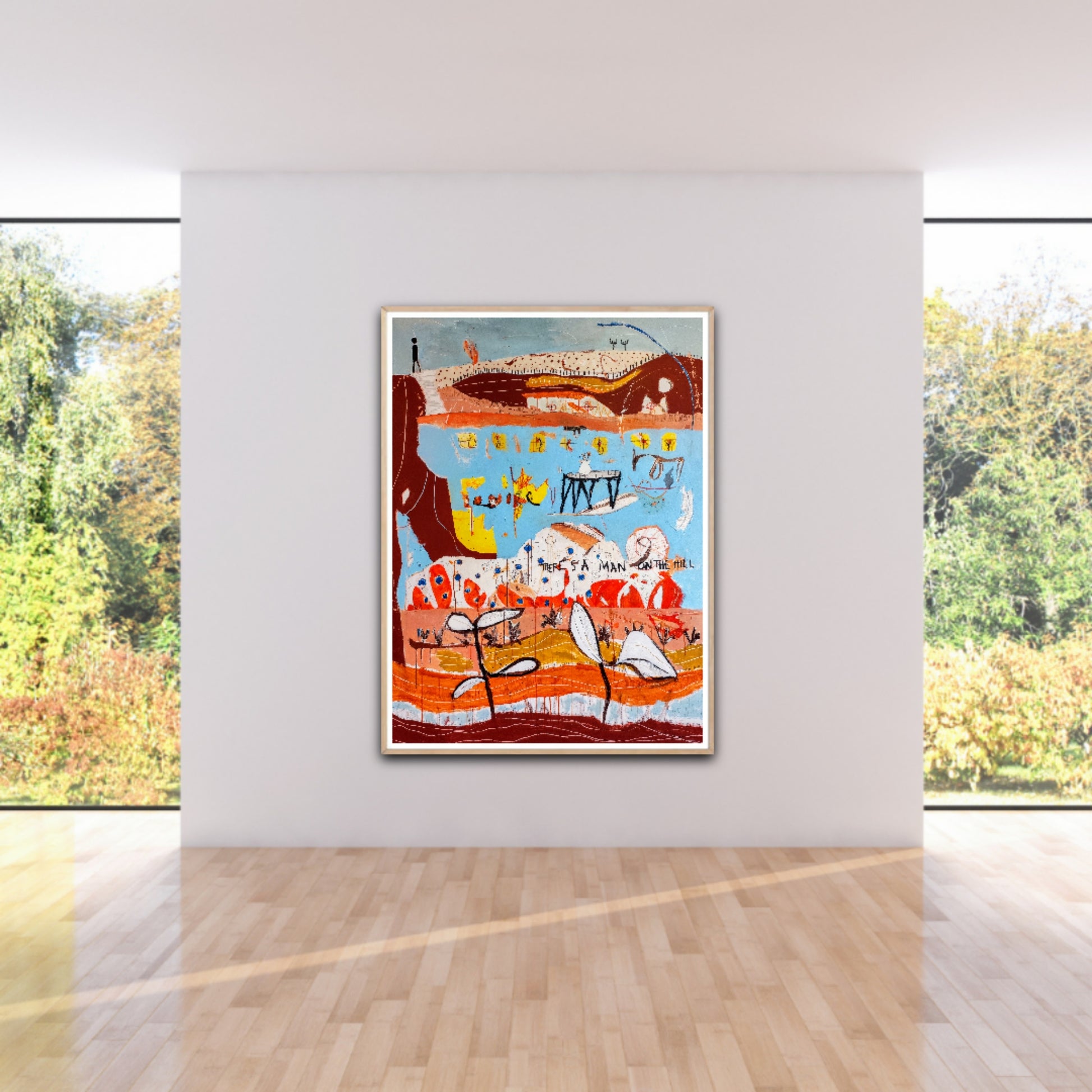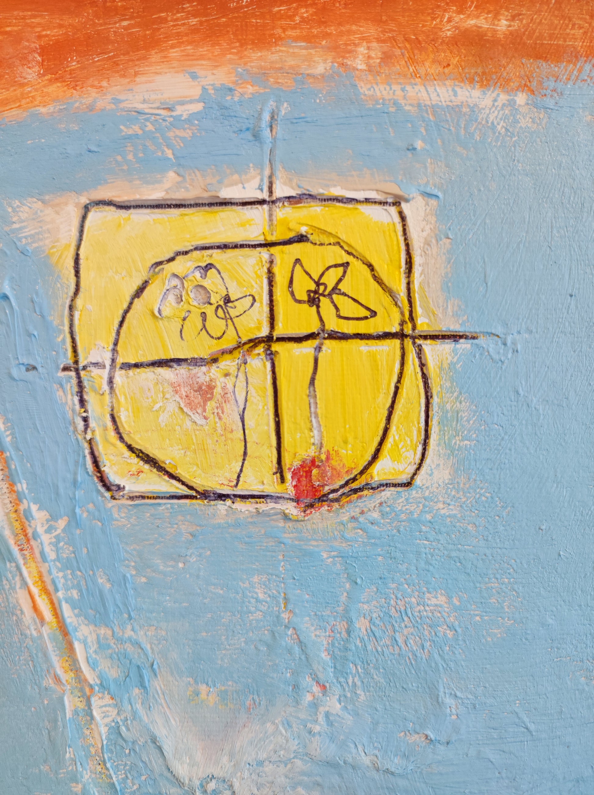 Técnica: acrílico, pigmentos, gesso, ceras, carboncillo y lápiz.