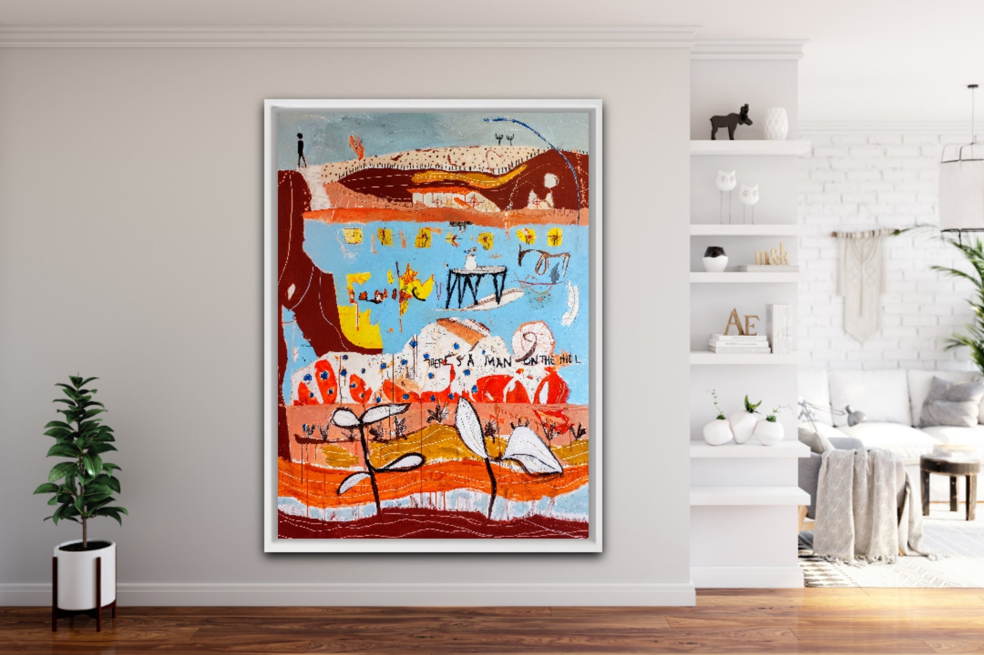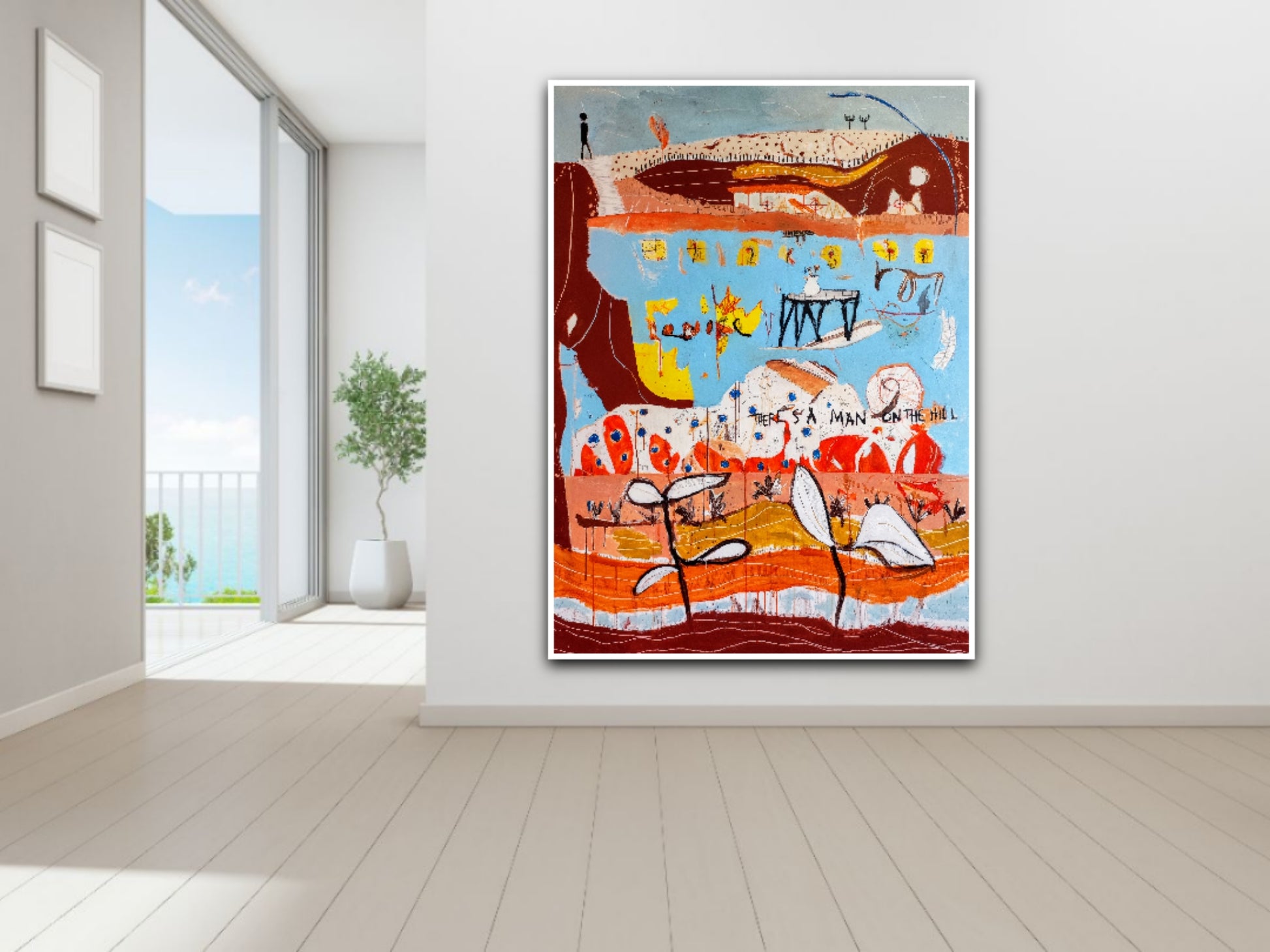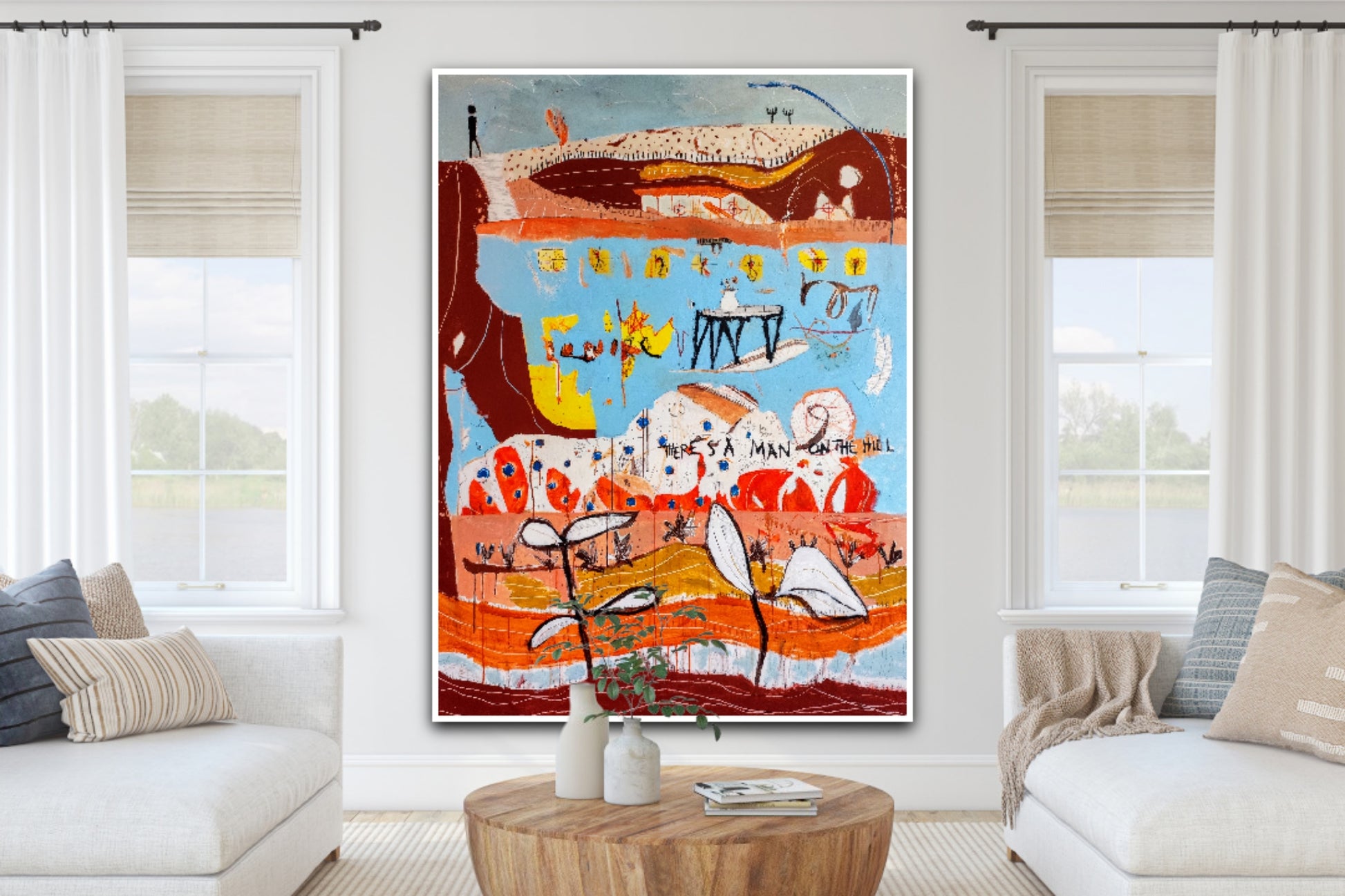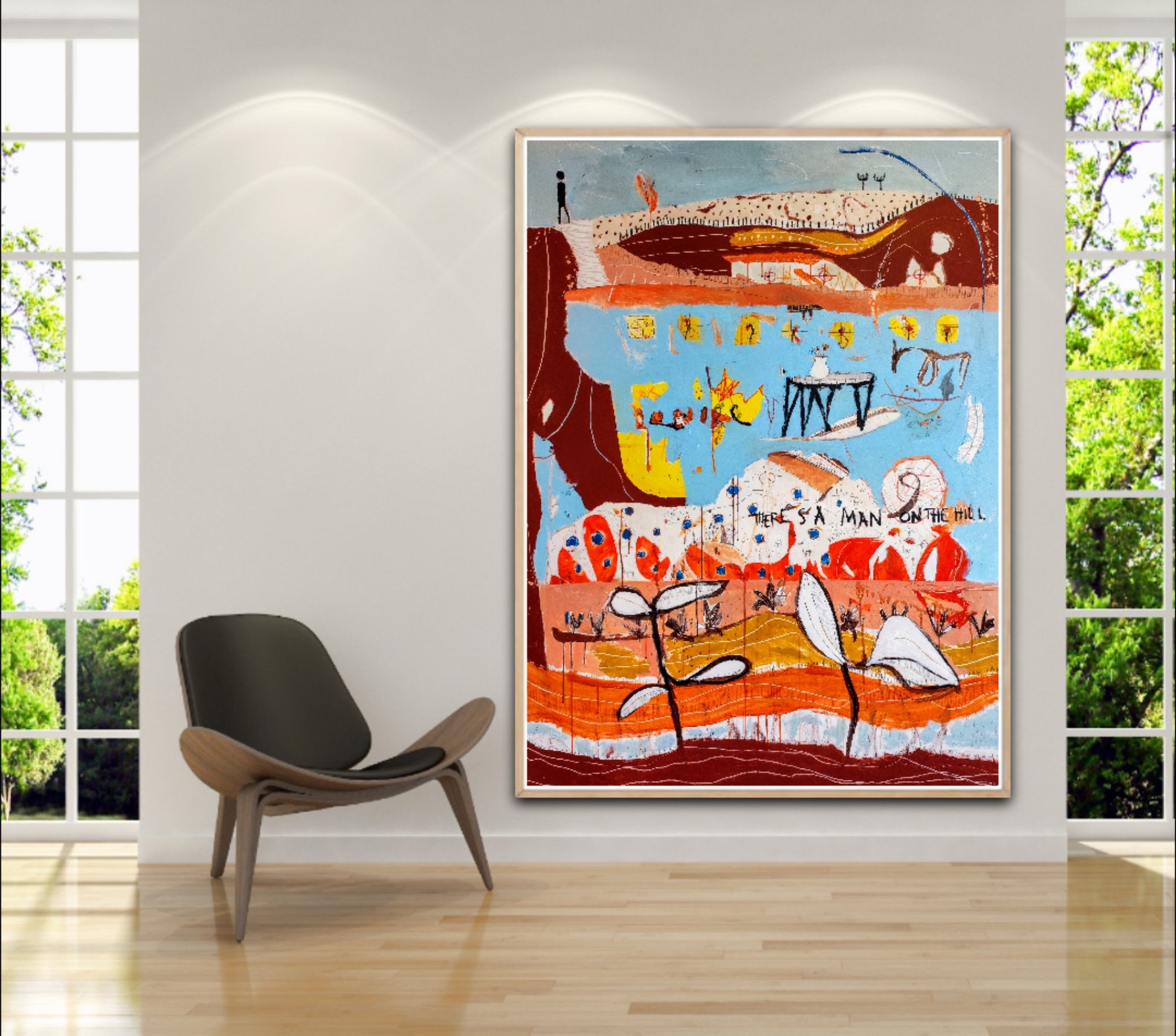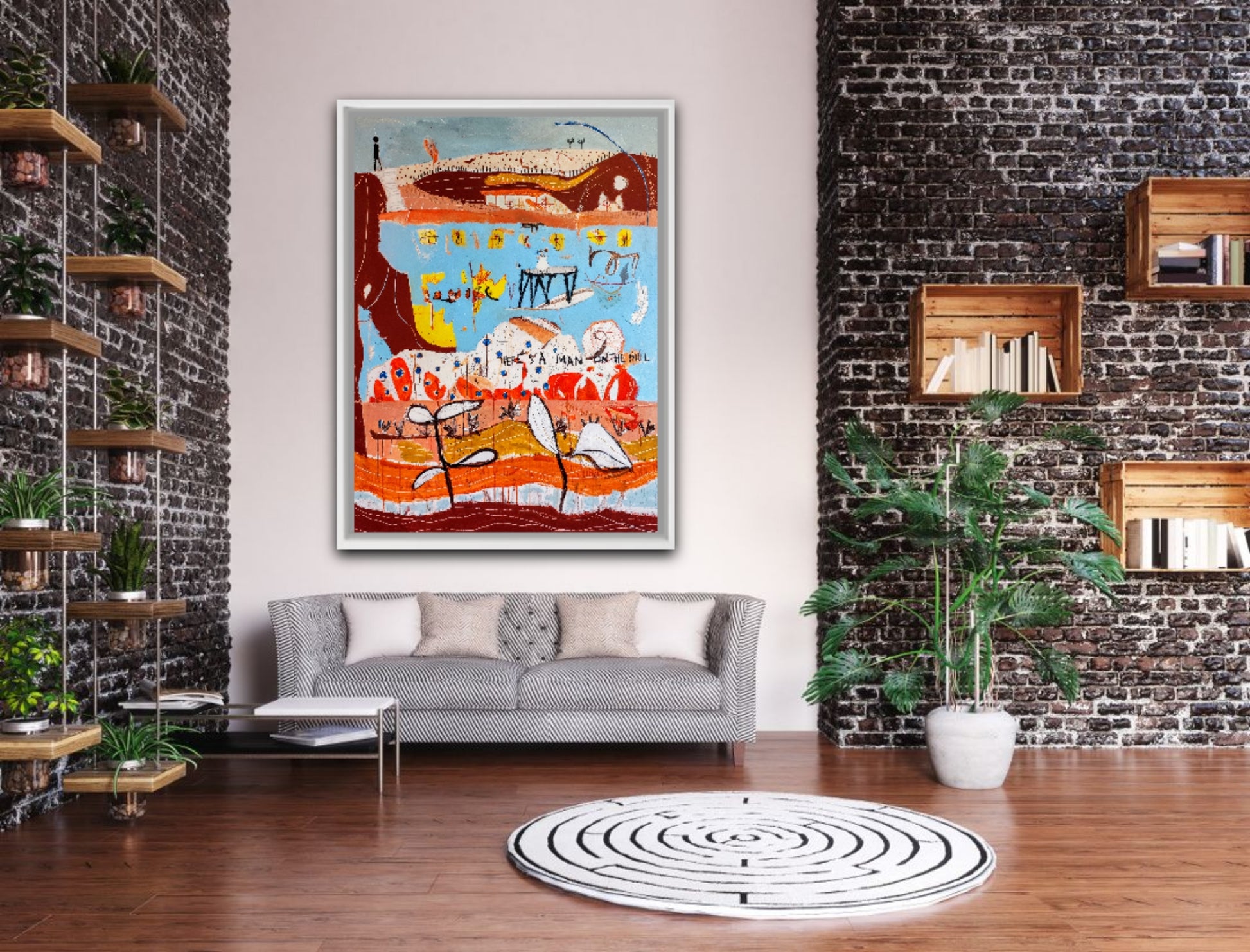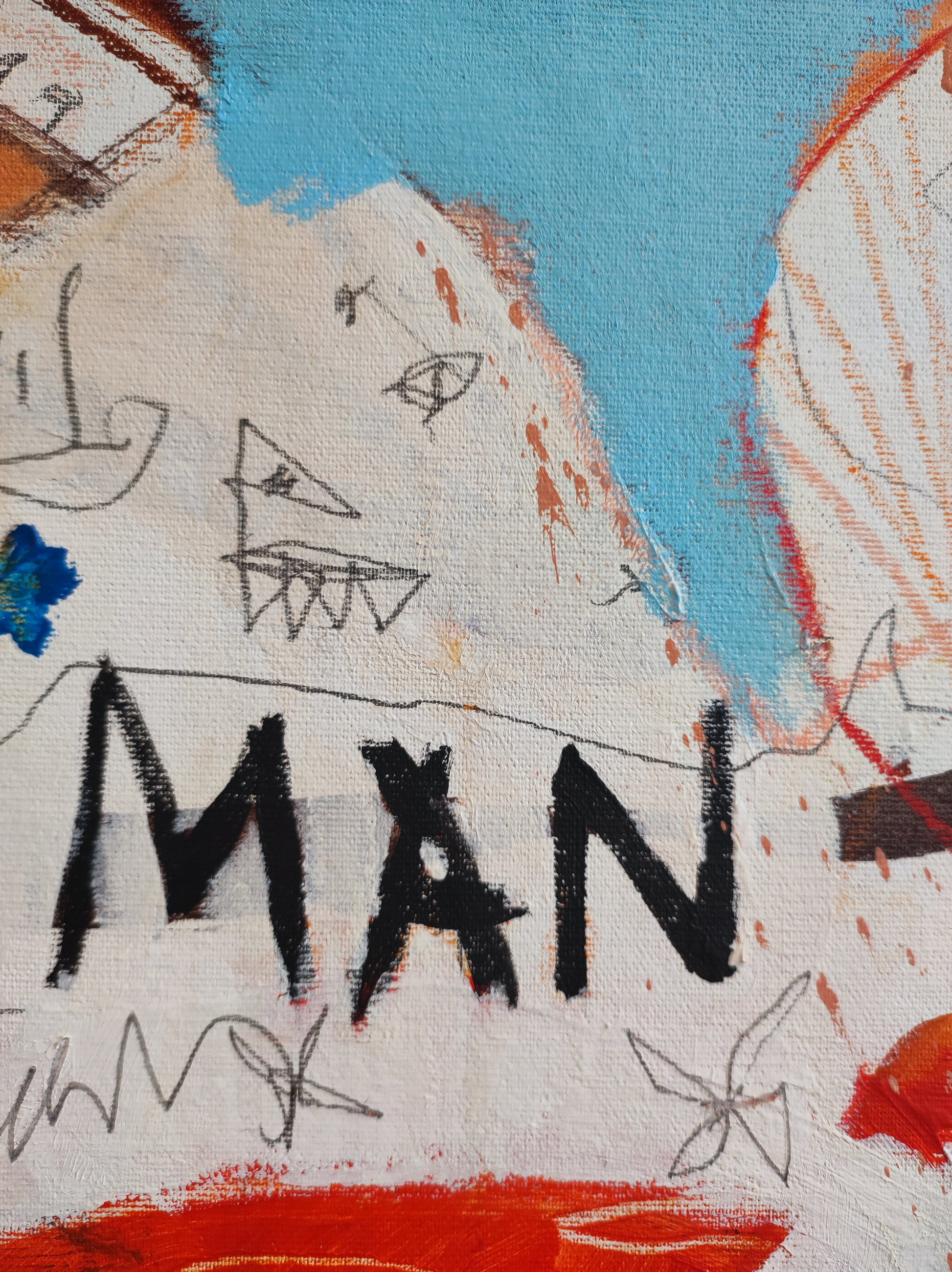 Técnica: acrílico, pigmentos, gesso, ceras, carboncillo y lápiz.