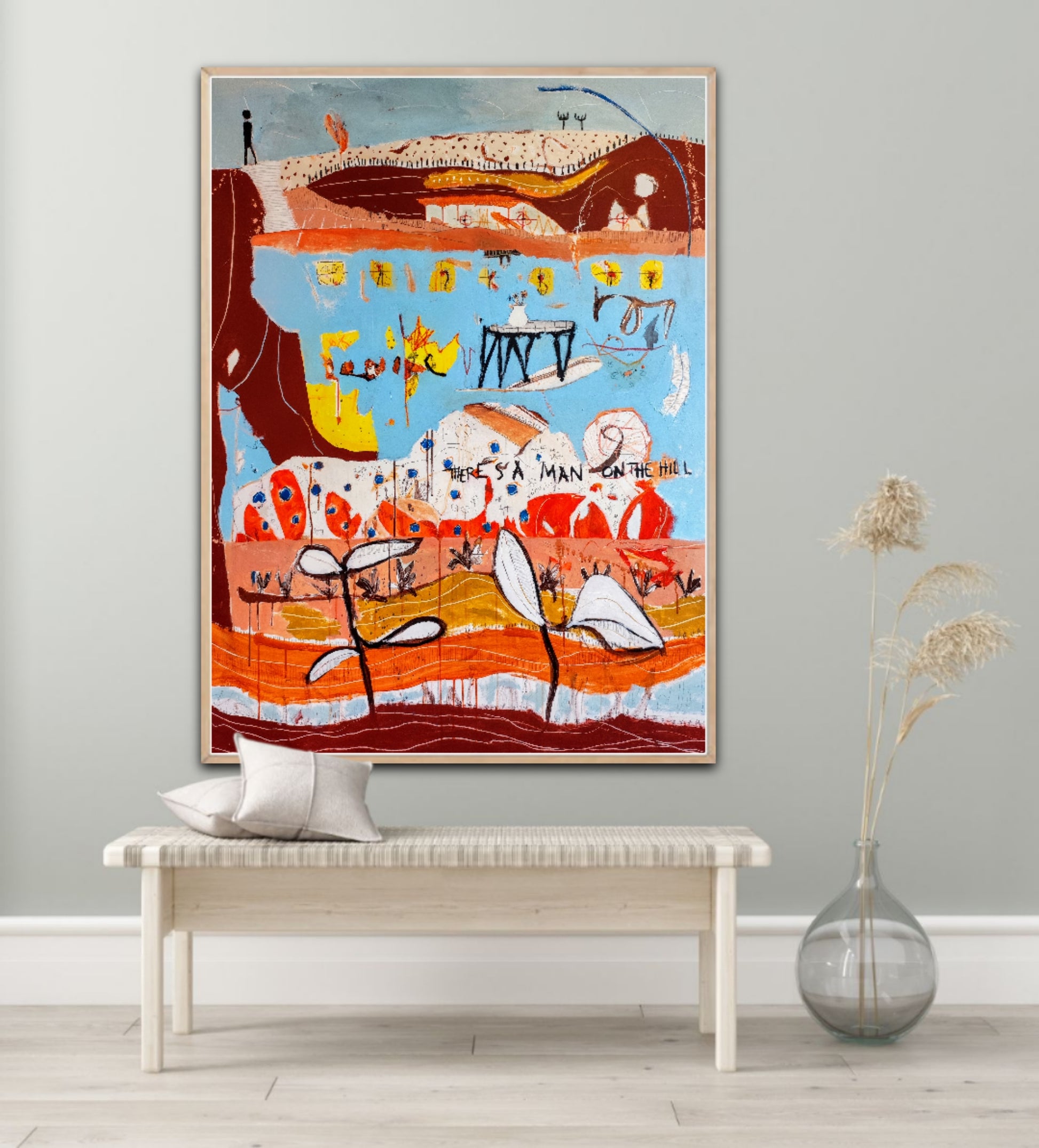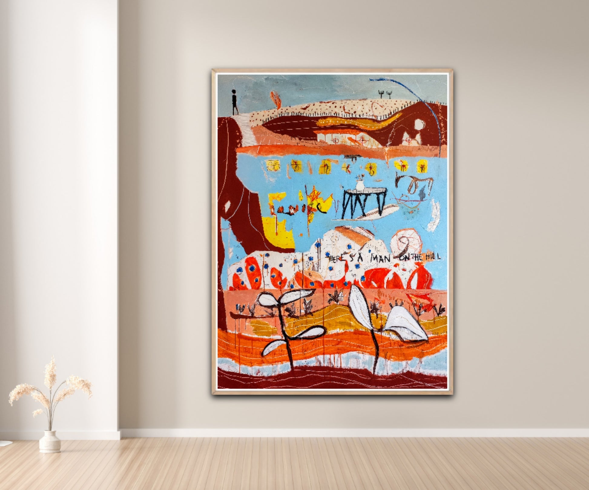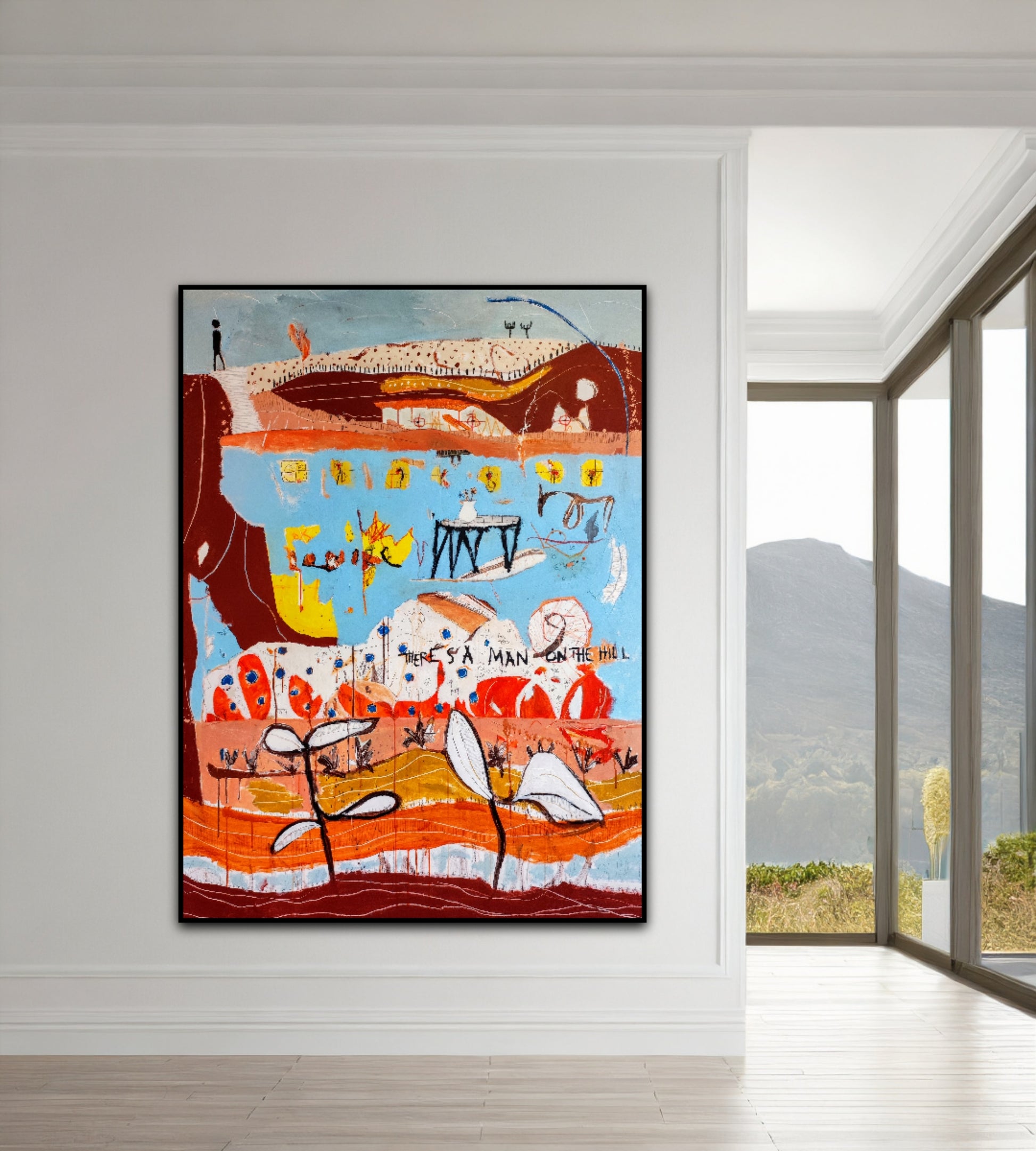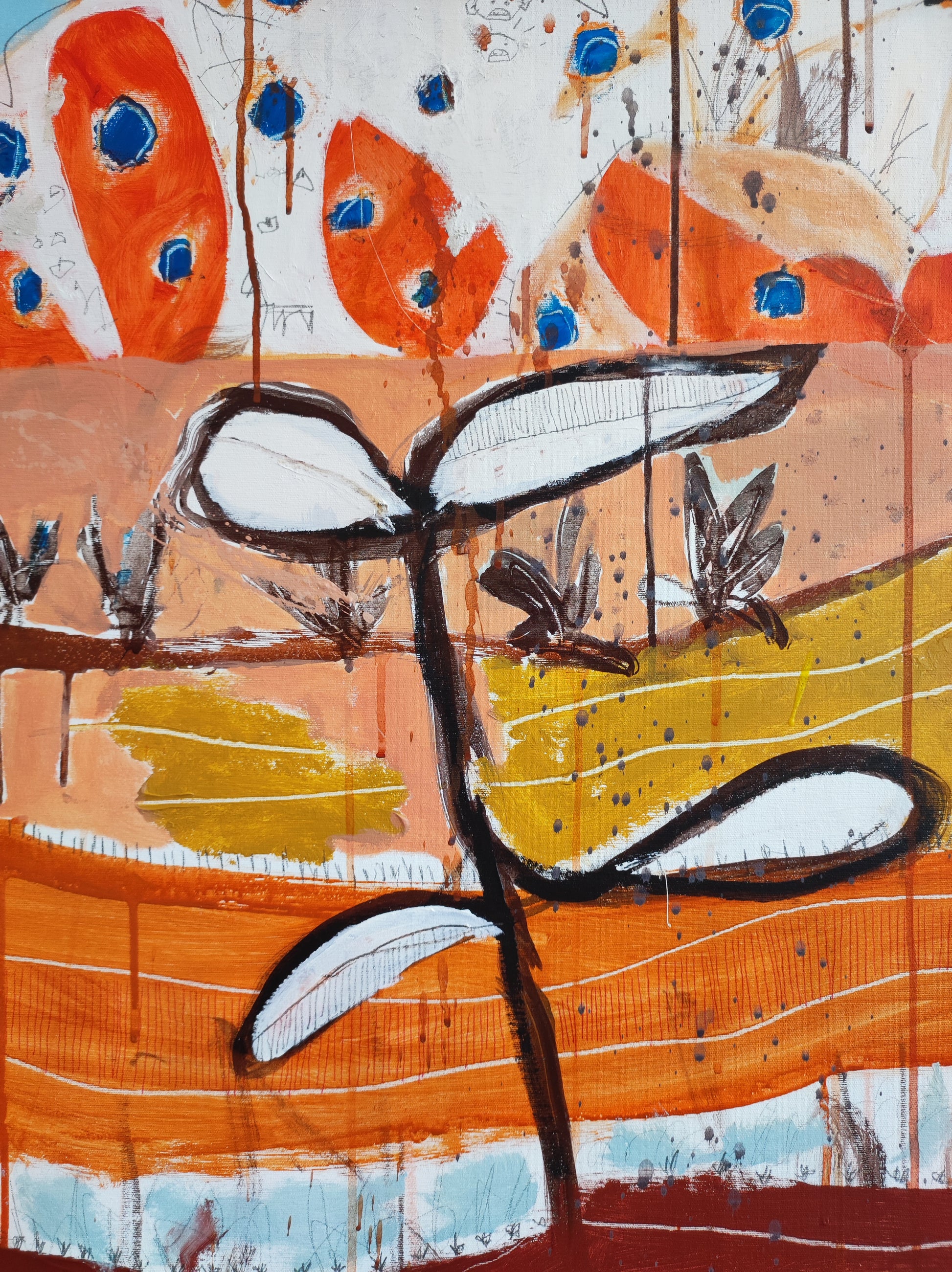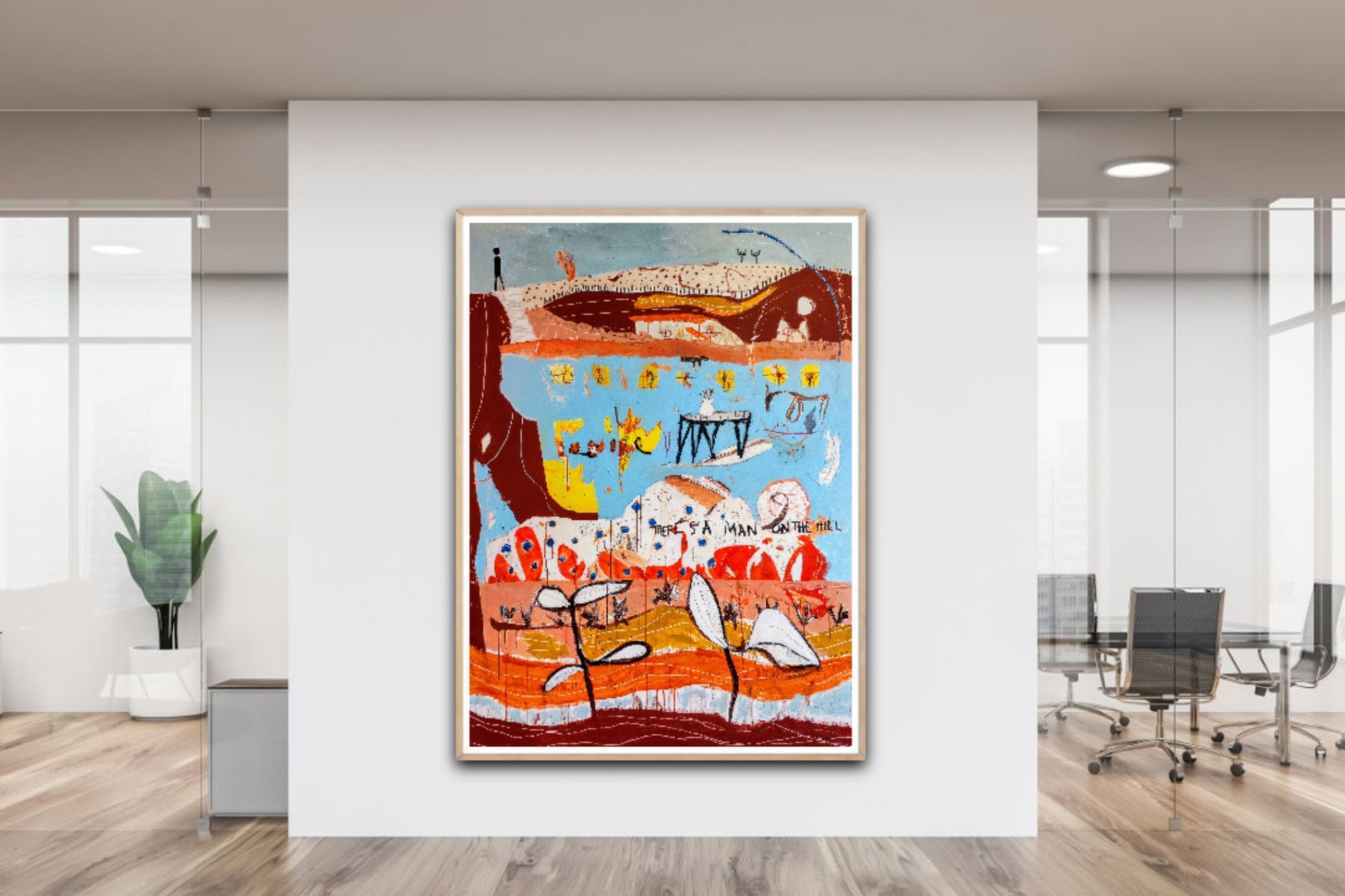 Técnica: acrílico, pigmentos, gesso, ceras, carboncillo y lápiz.