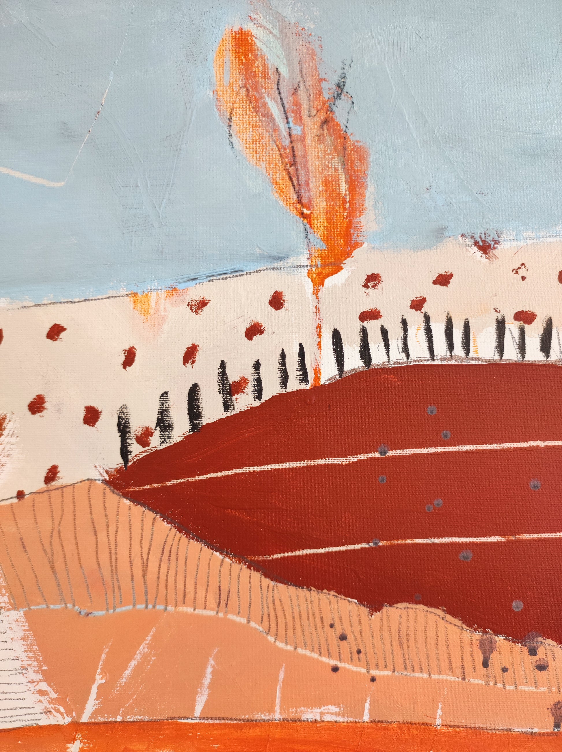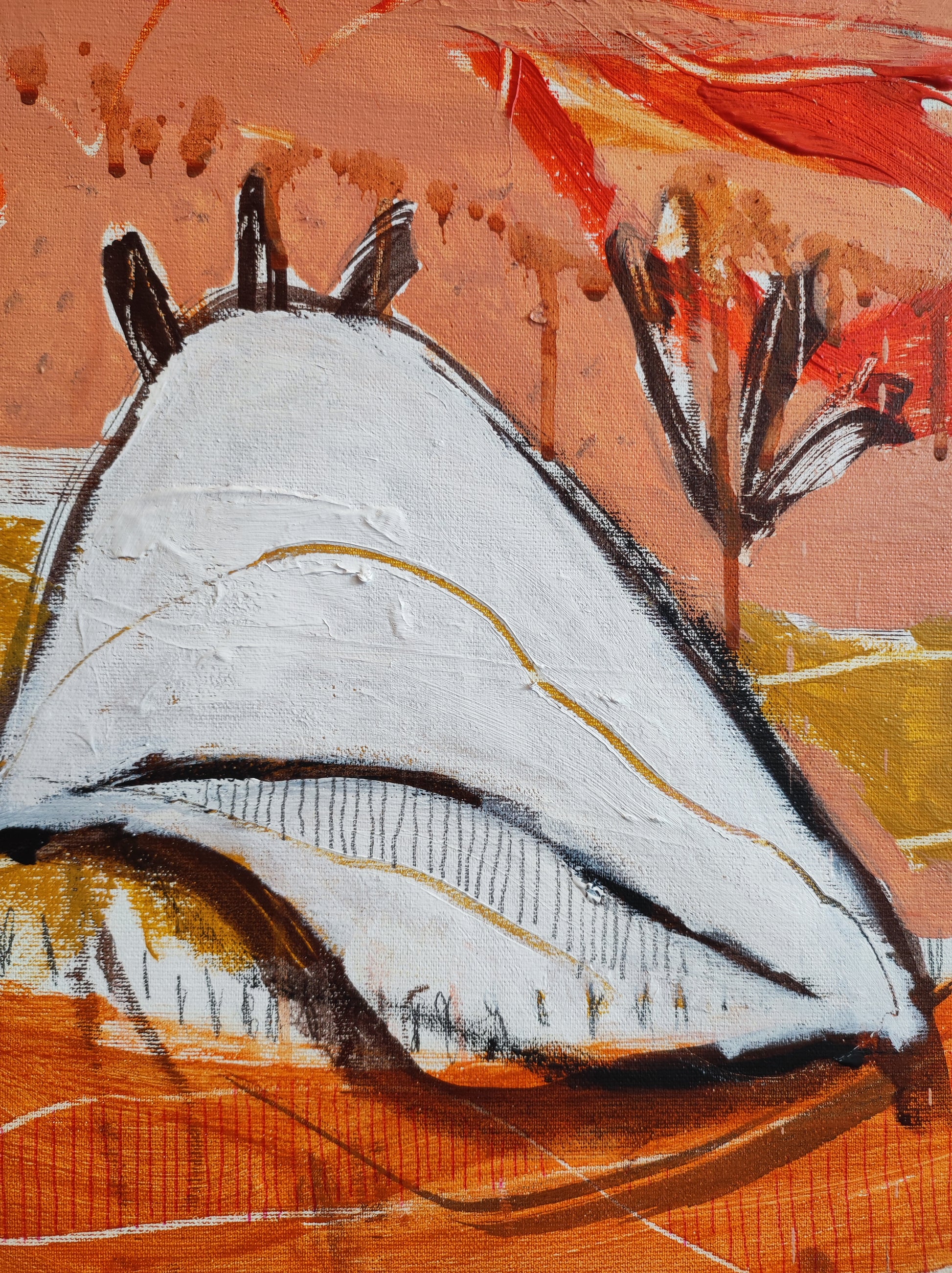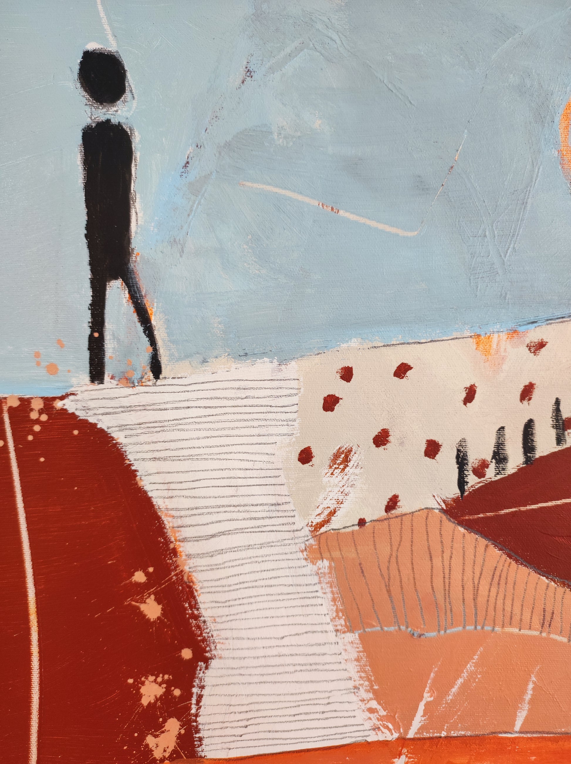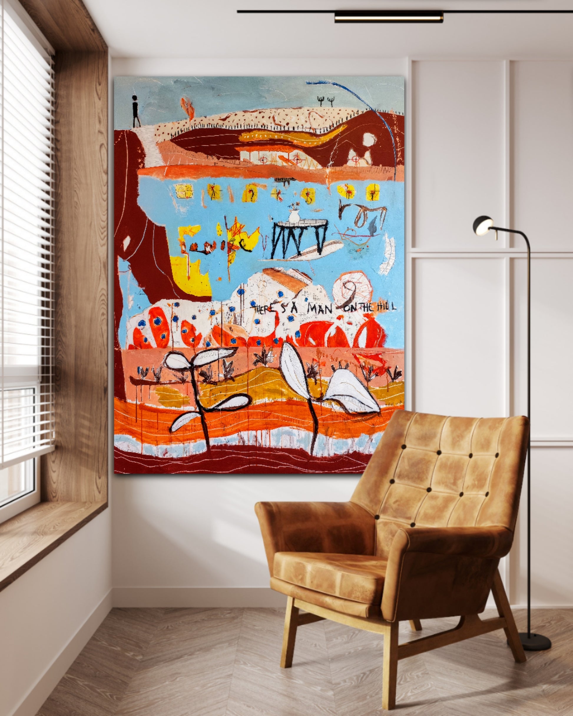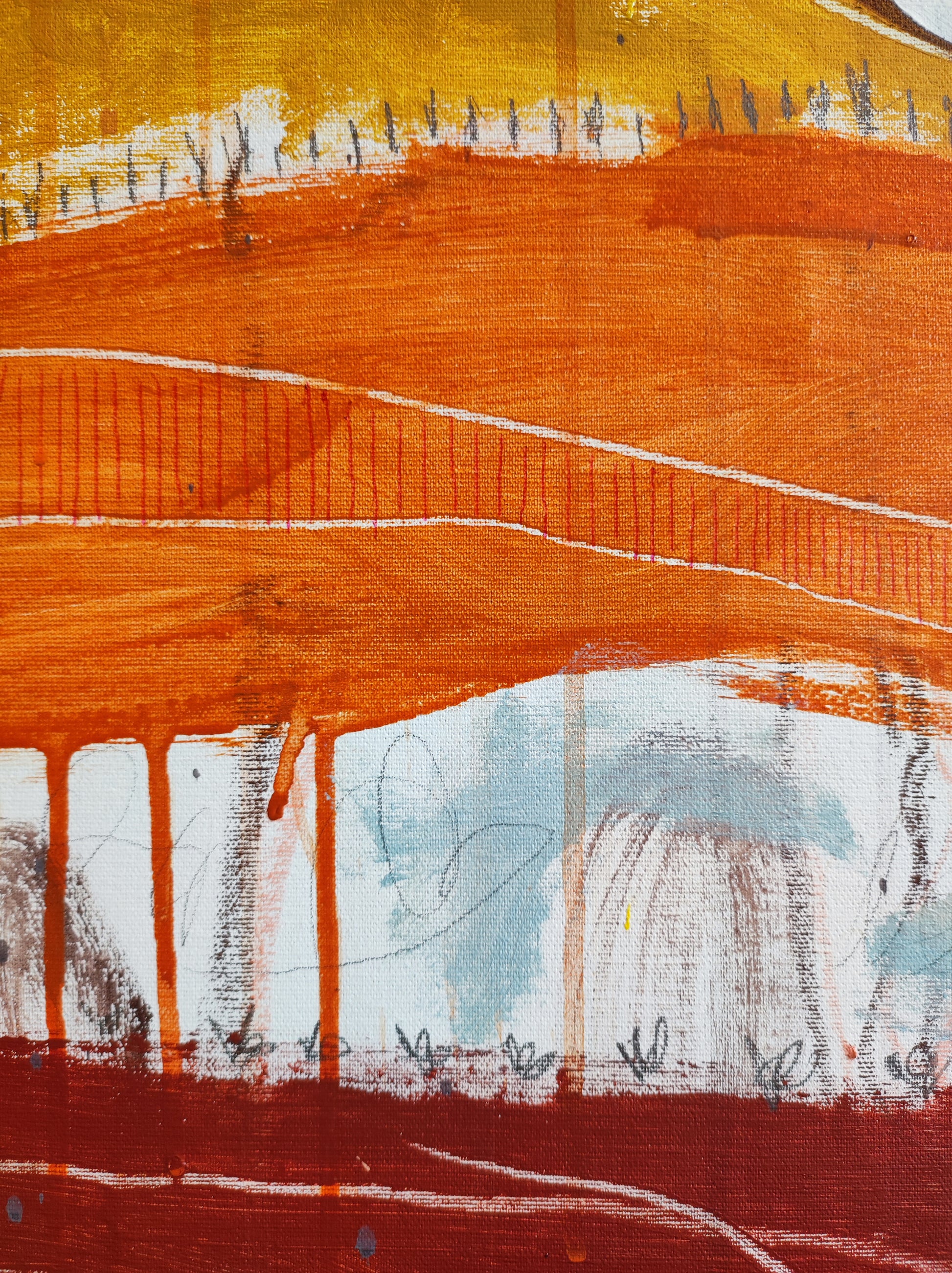 Técnica: acrílico, pigmentos, gesso, ceras, carboncillo y lápiz.