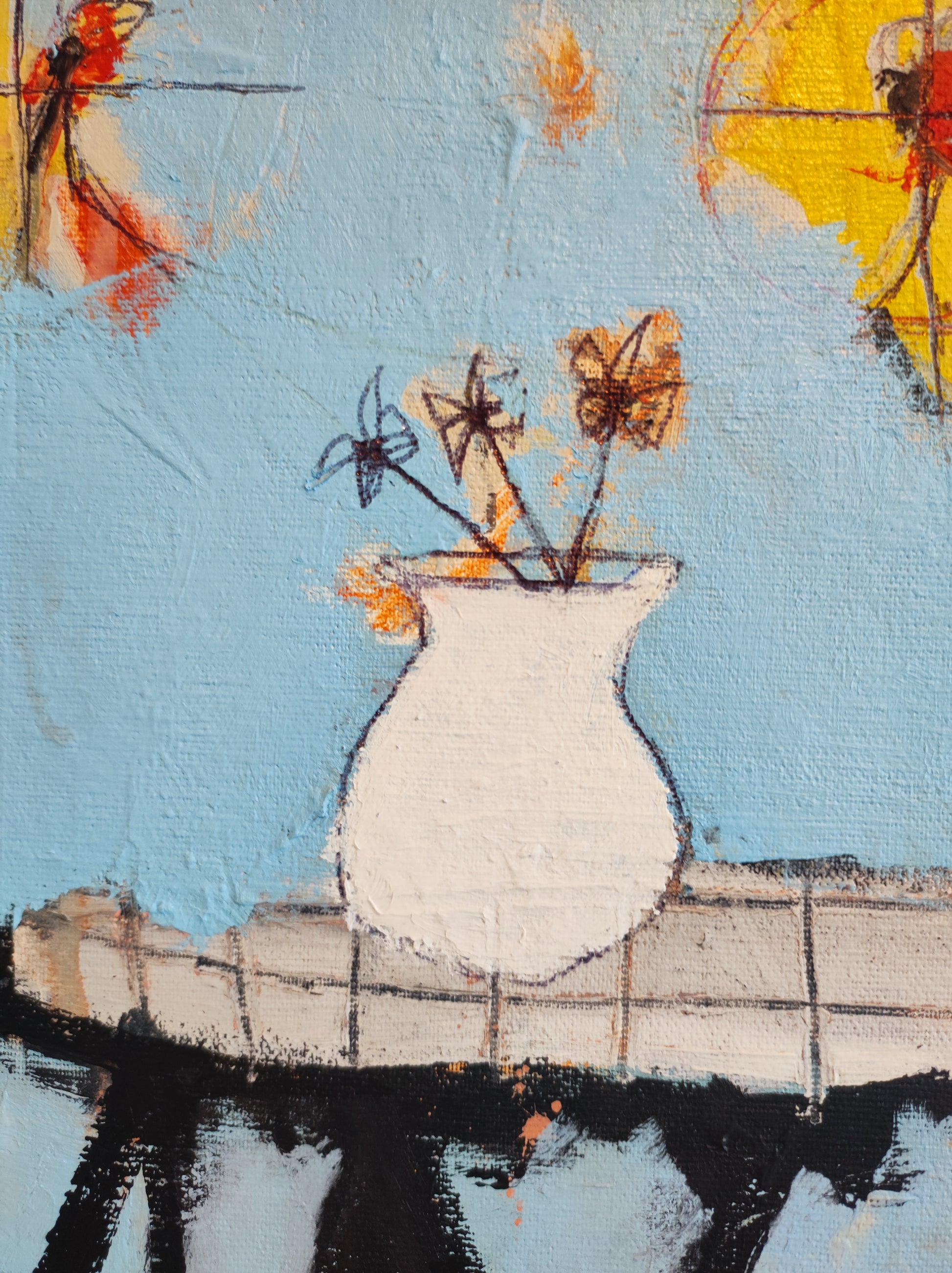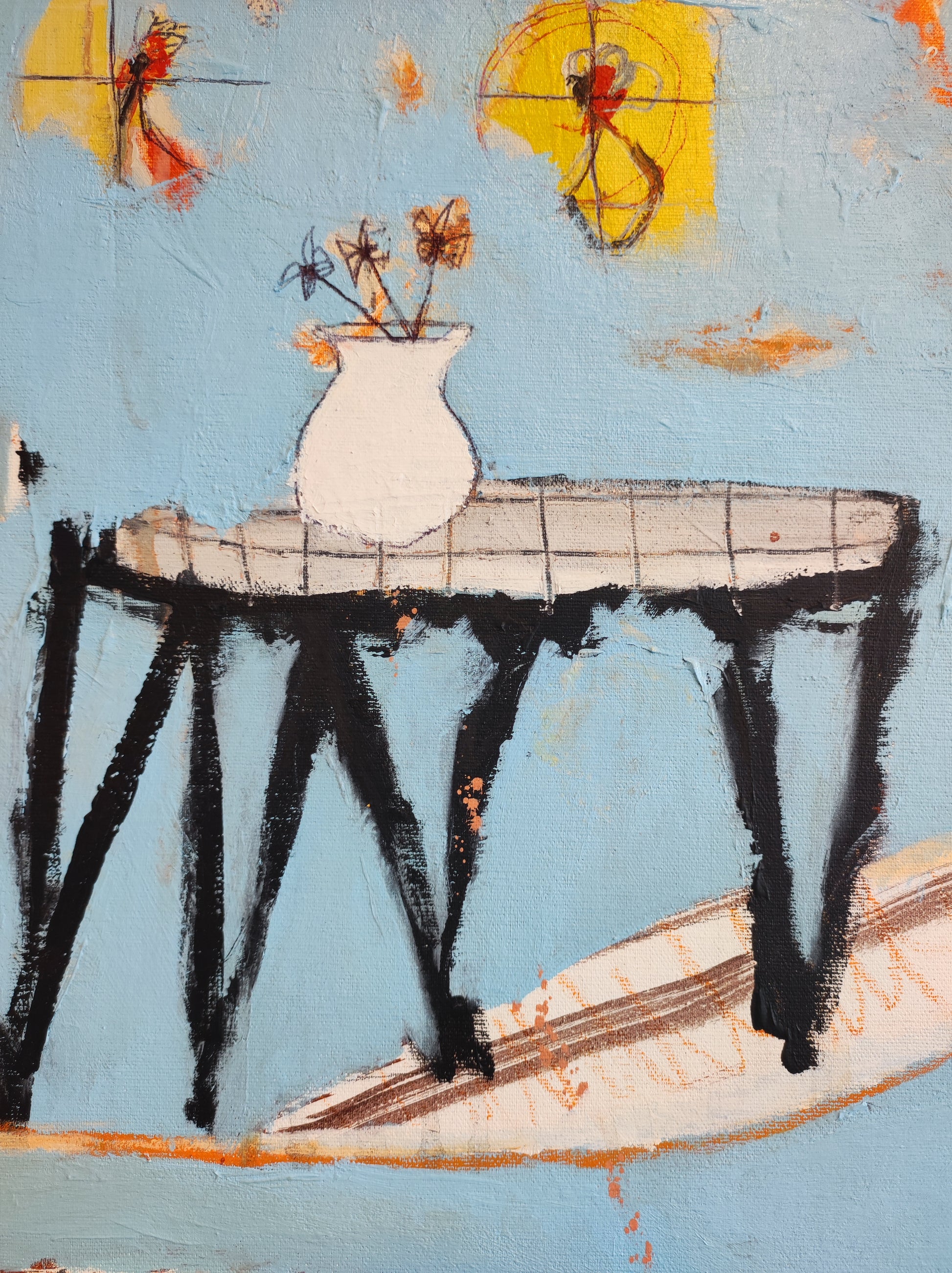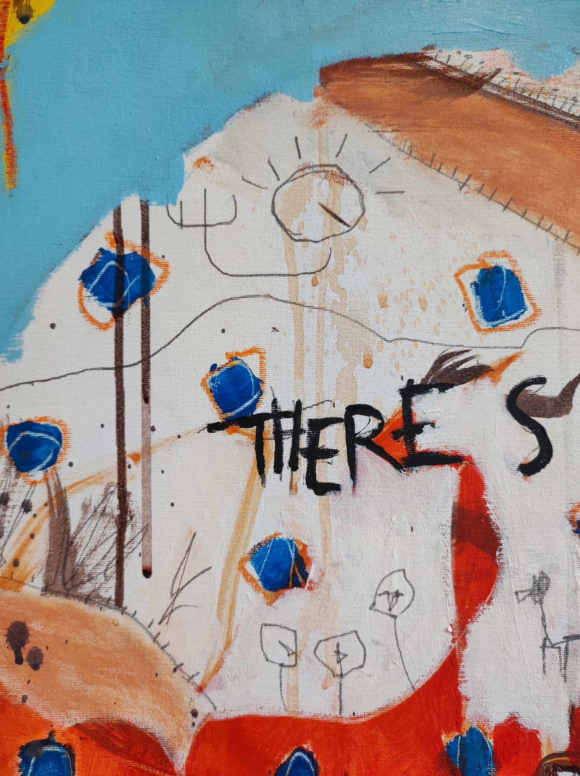 Pintura gestual, intuitiva, que deja que las cosas pasen y se apoya sobre lo que aparece. Aprovechando el accidente y aceptando las consecuencias.