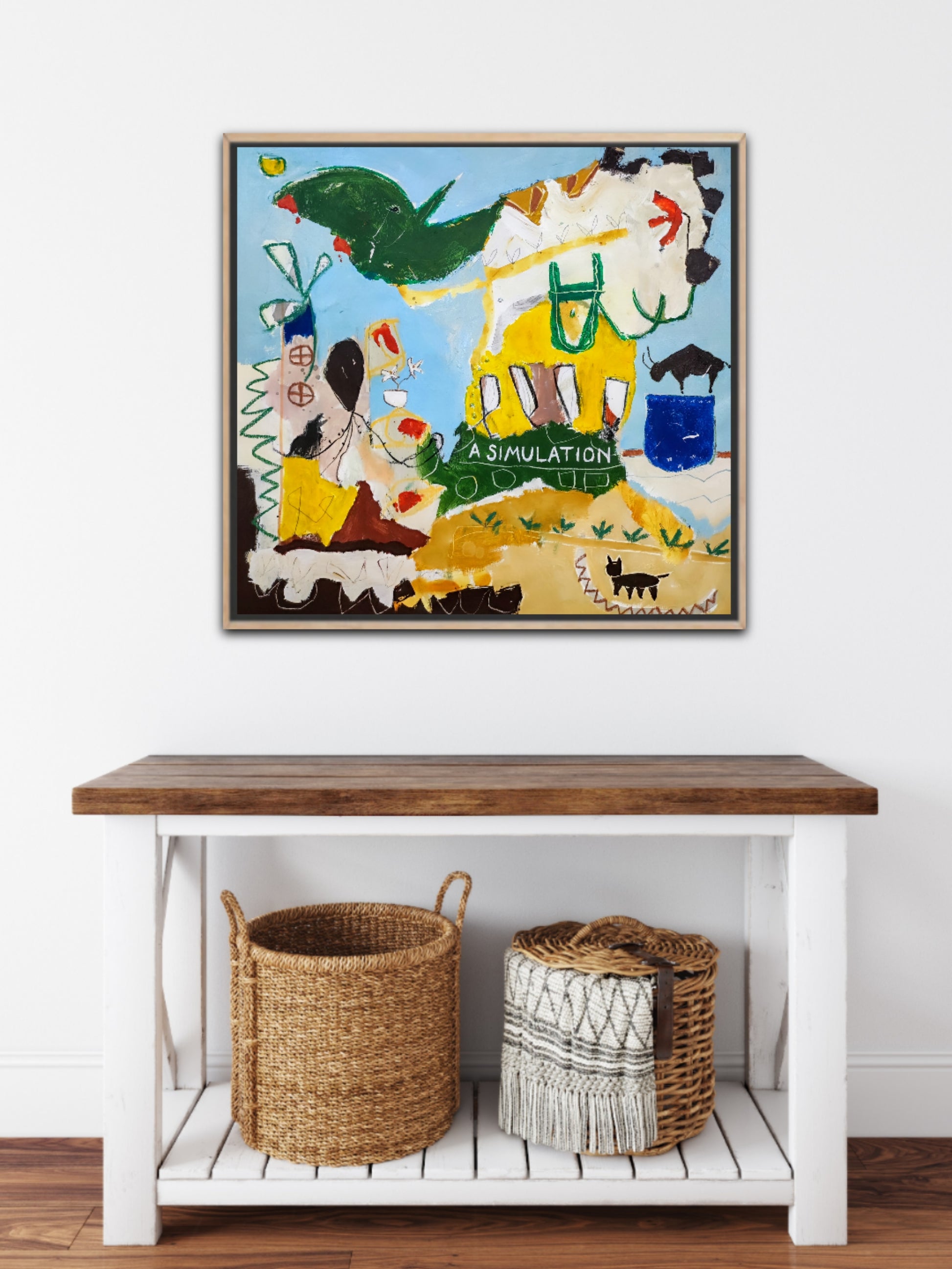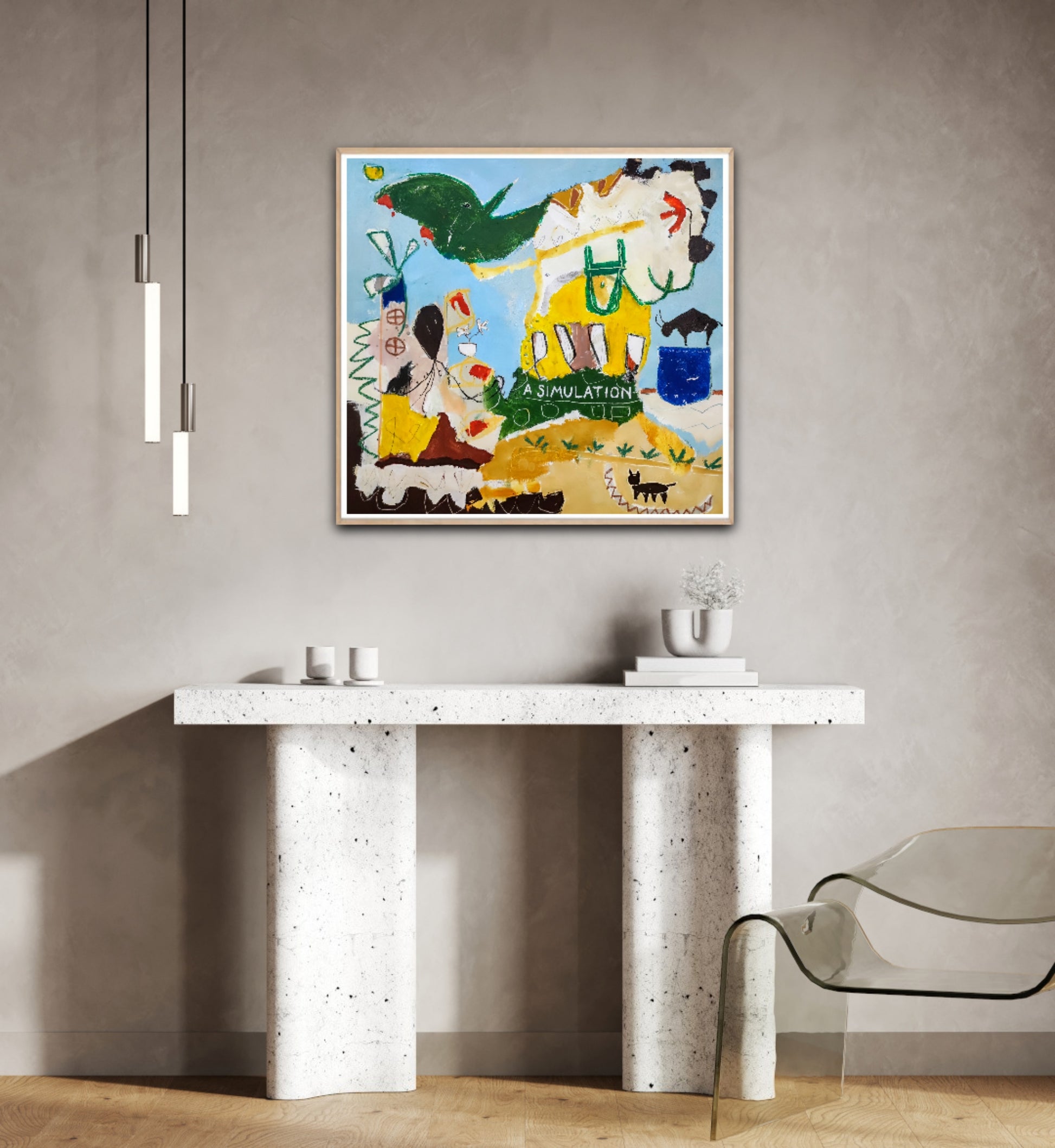 Técnica: acrílico, pigmentos, ceras, carboncillo, lápiz, pastel y tinta china.