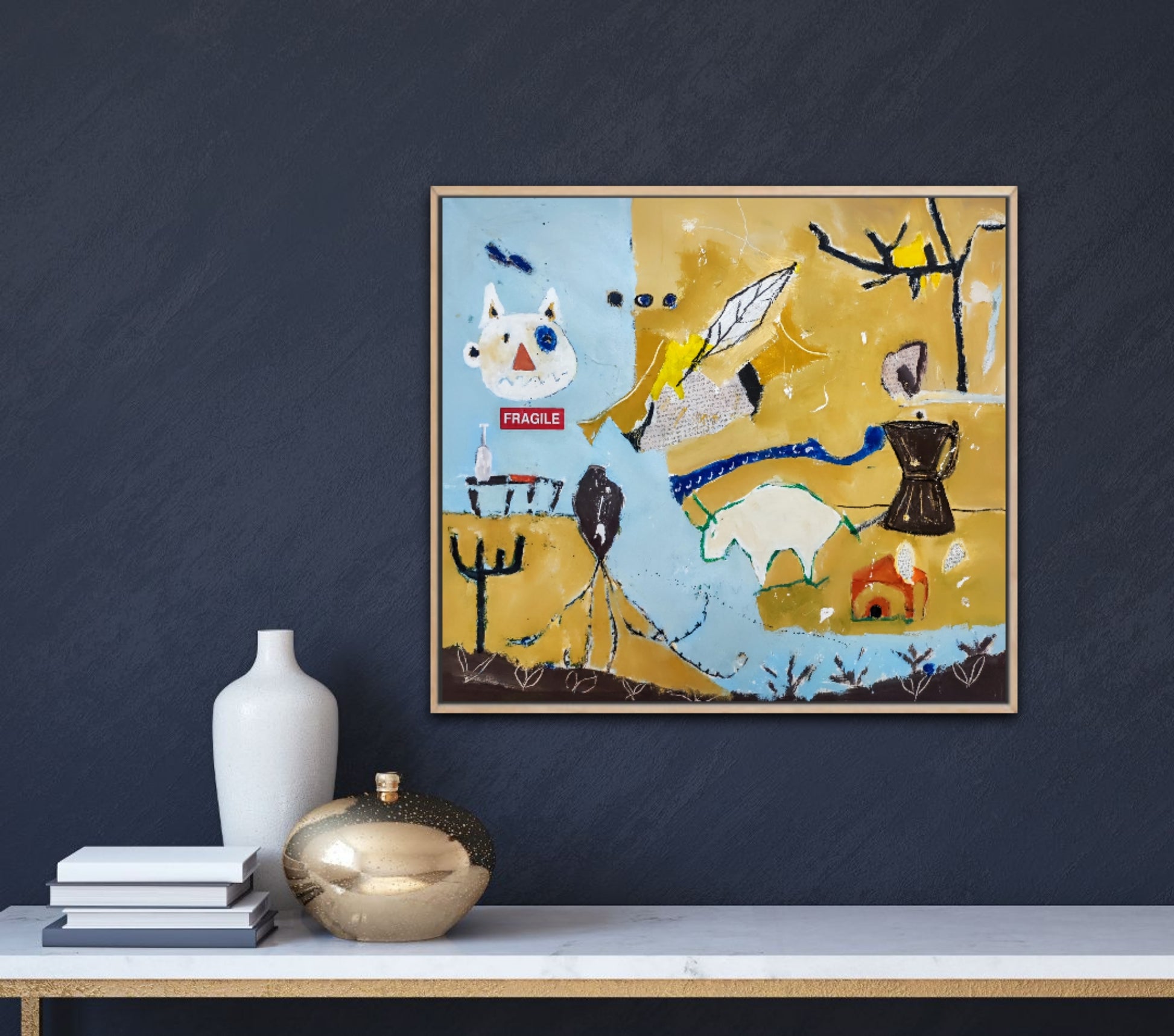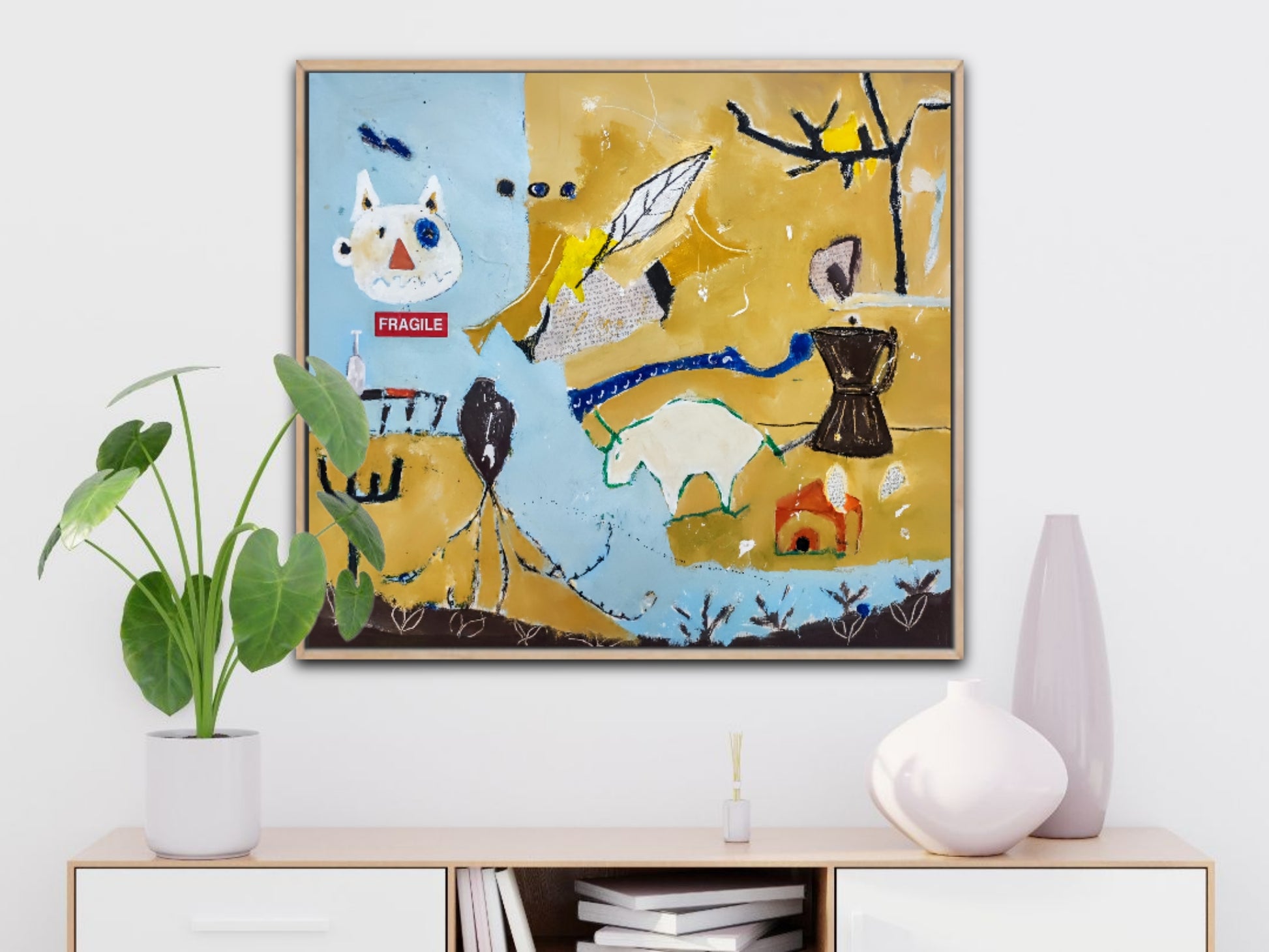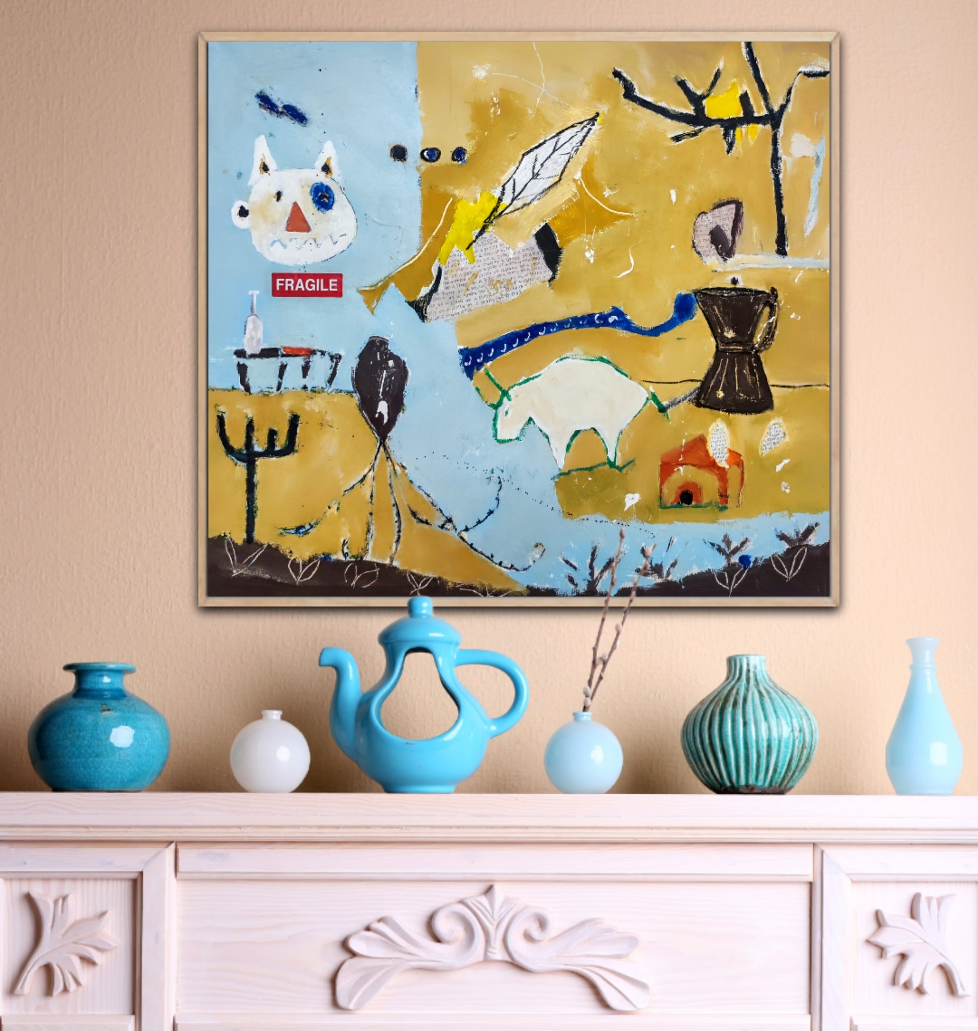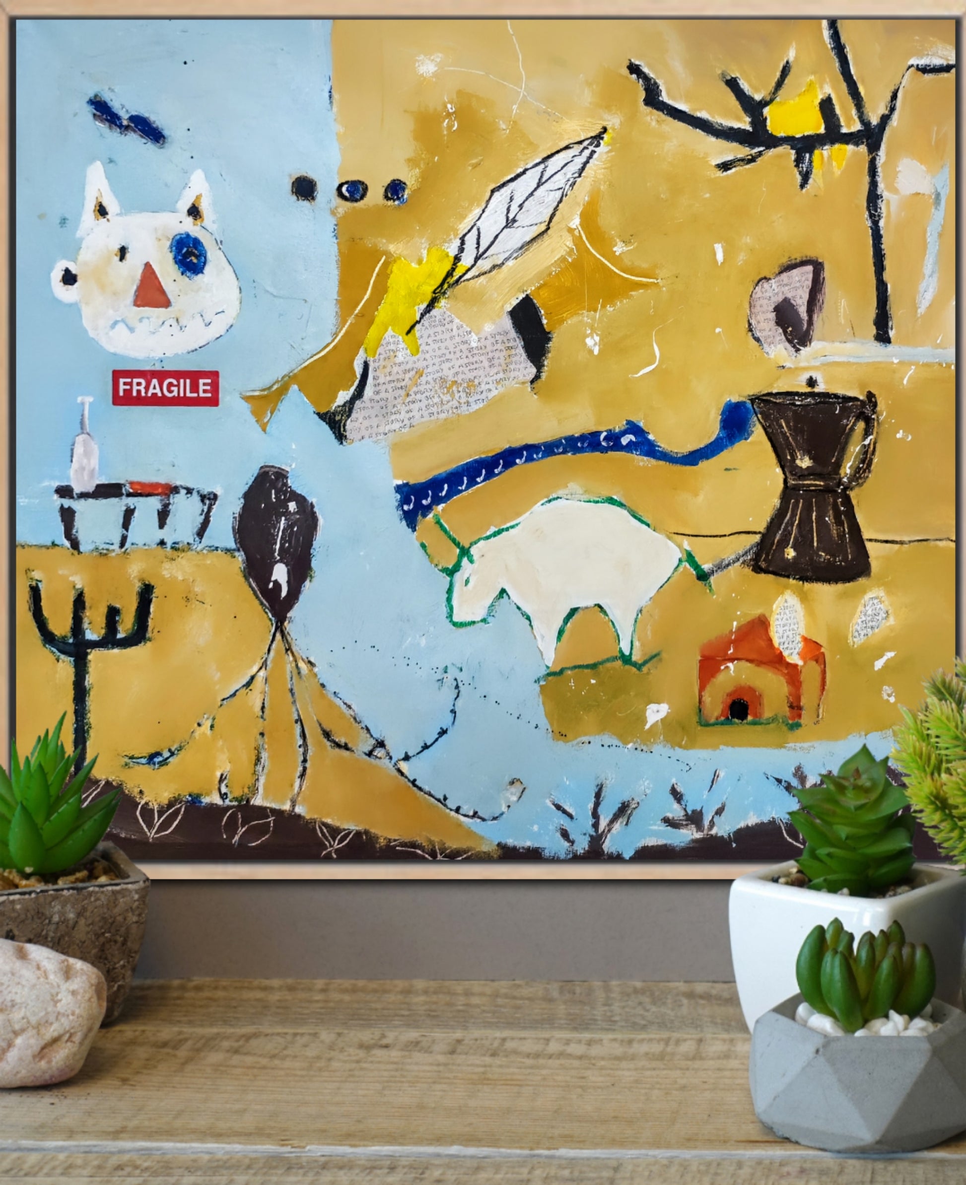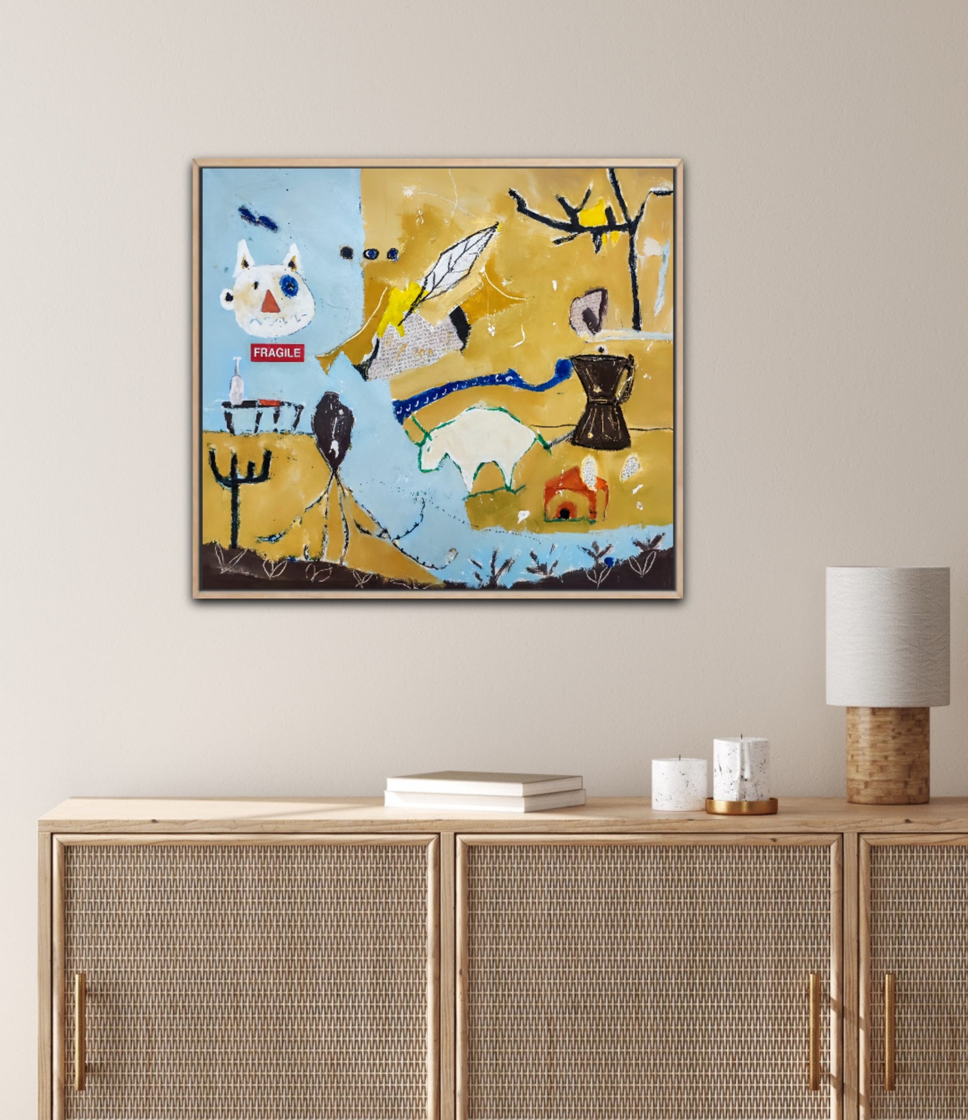Técnica: acrílico, pigmentos, ceras, carboncillo, lápiz, pastel y tinta china.
