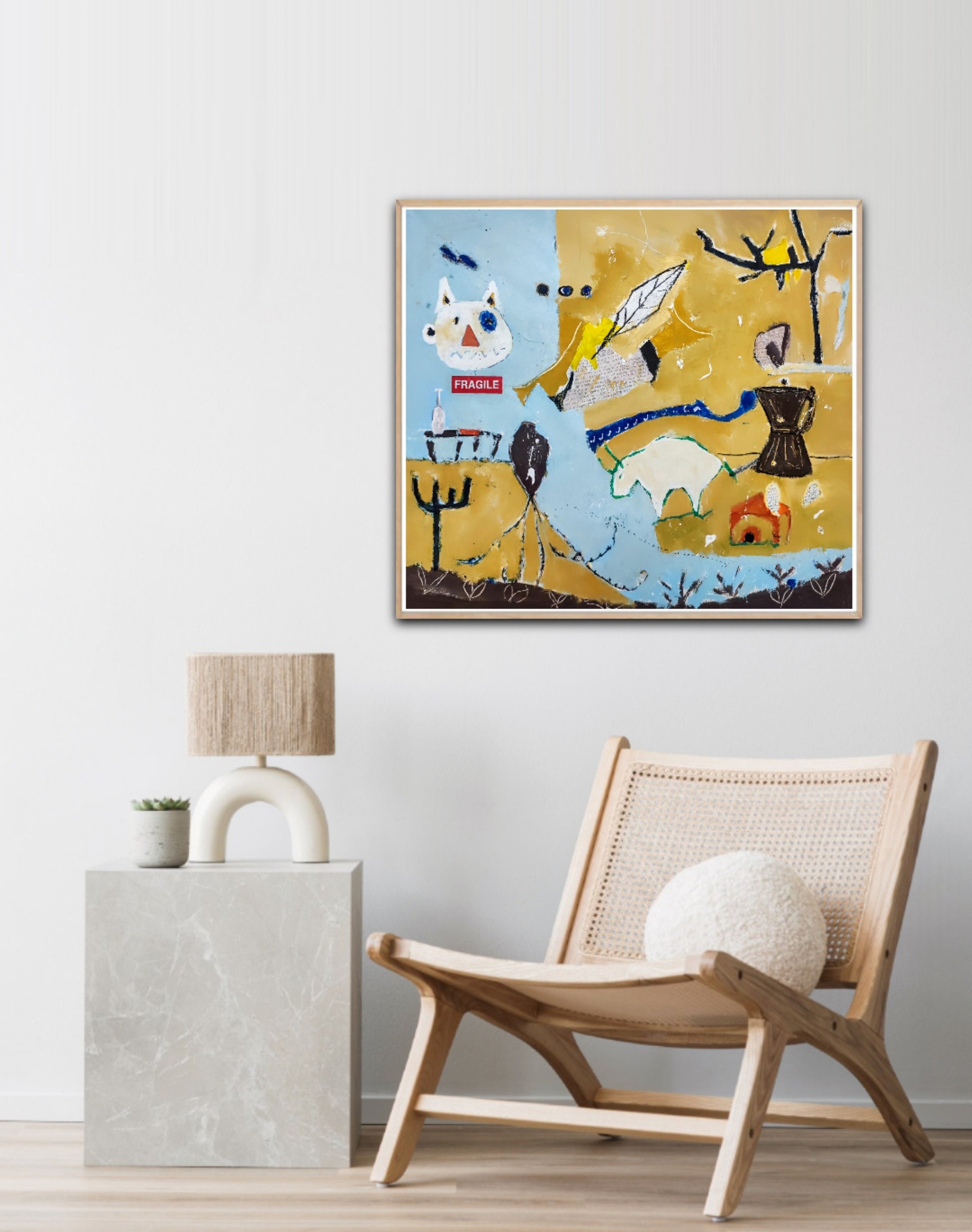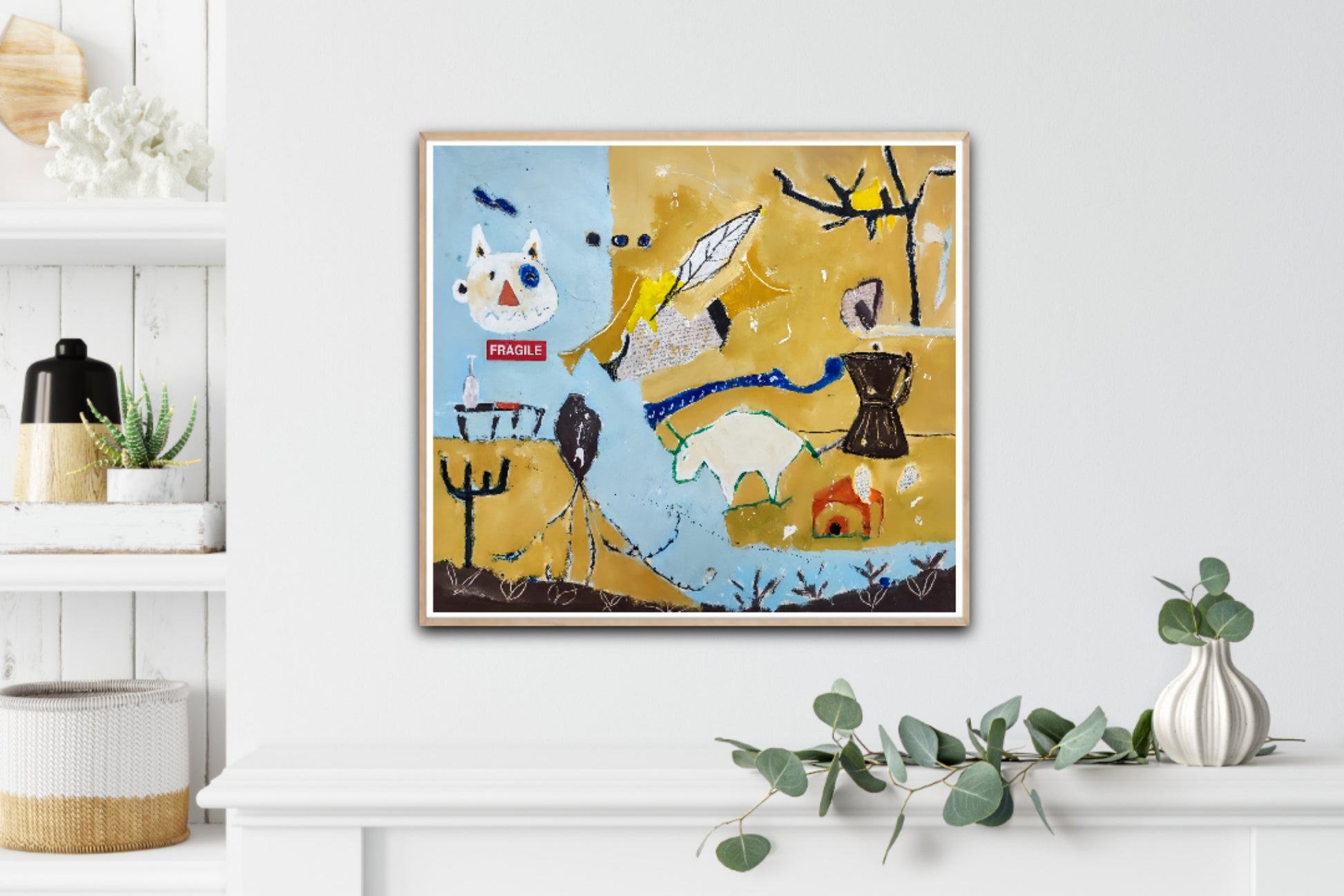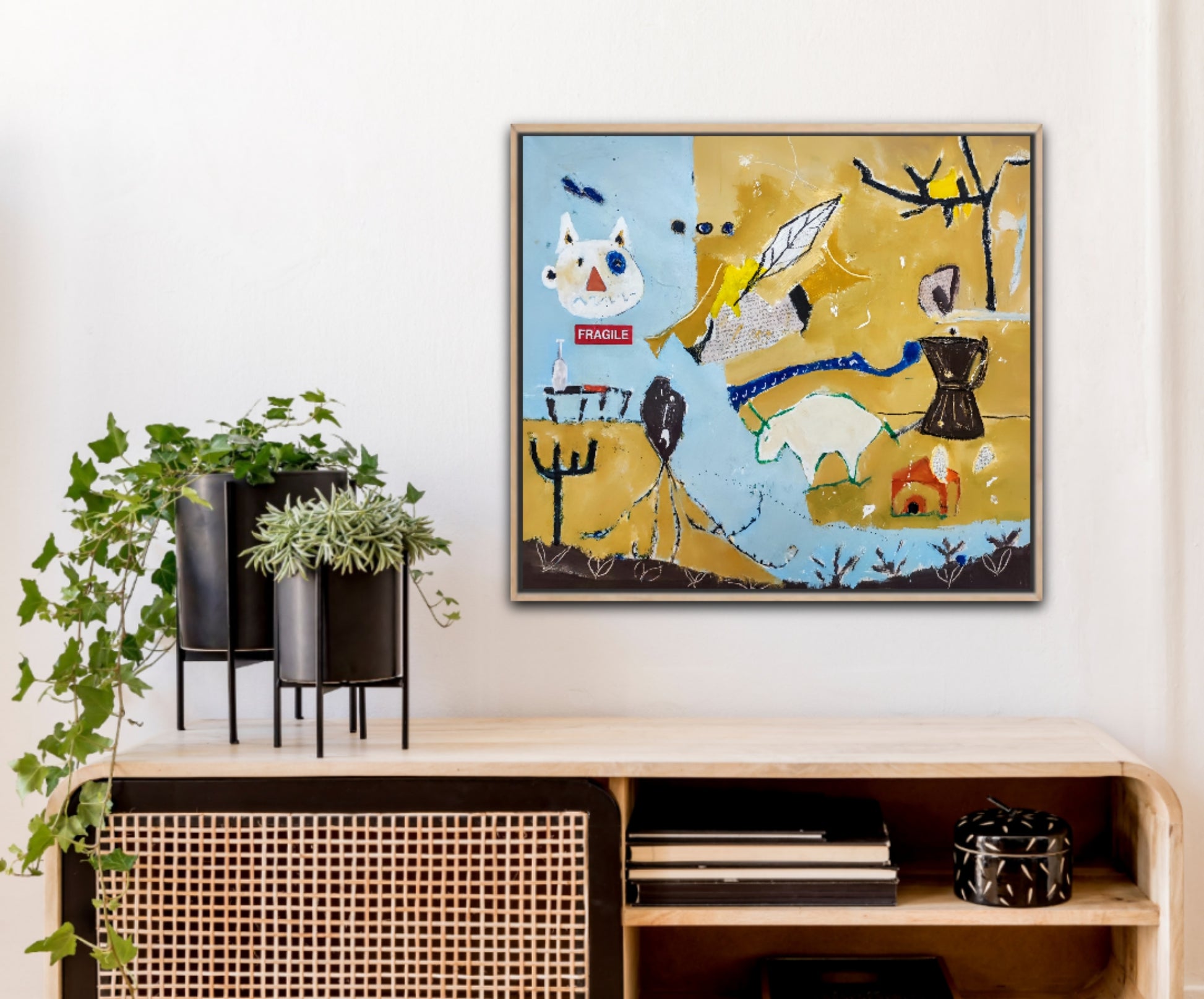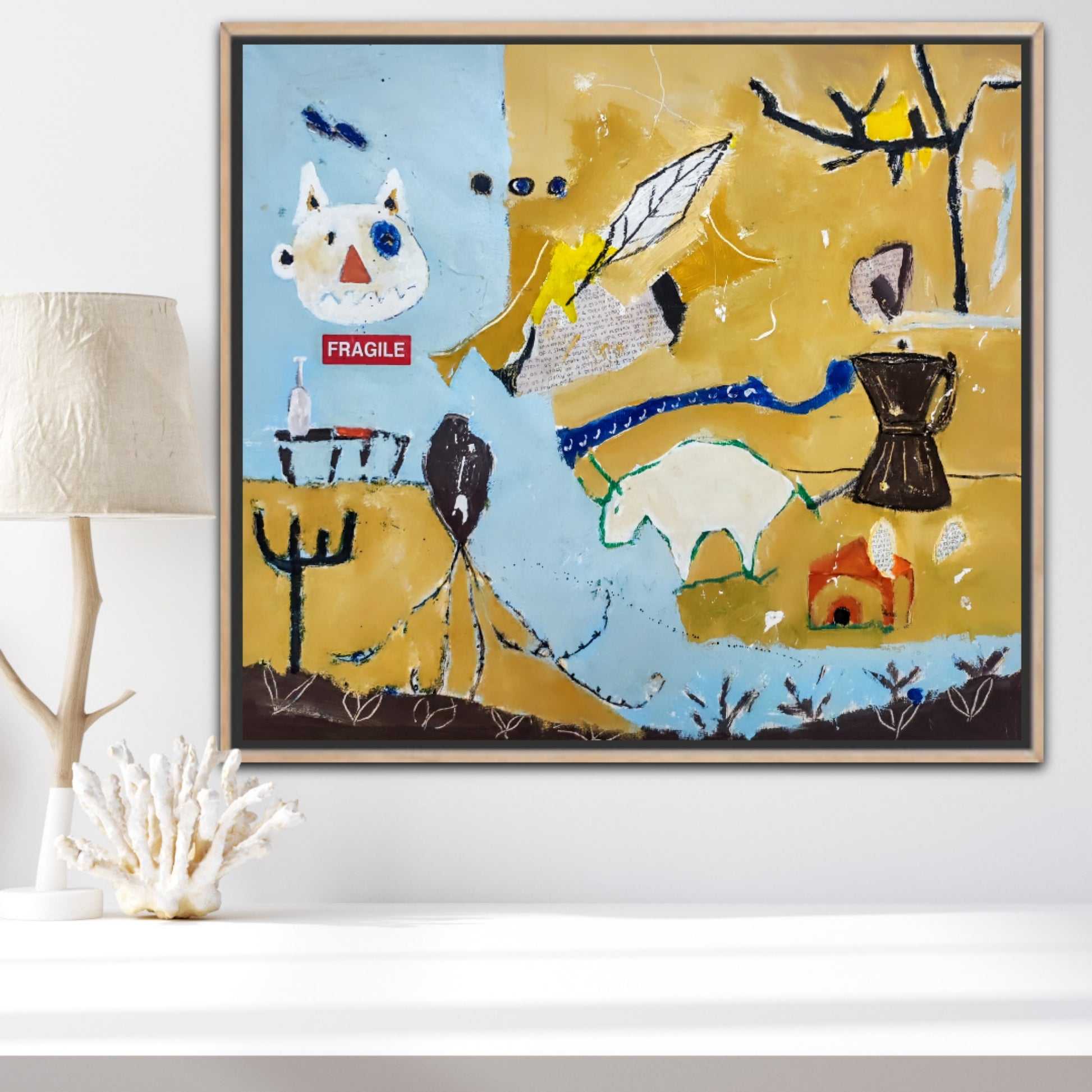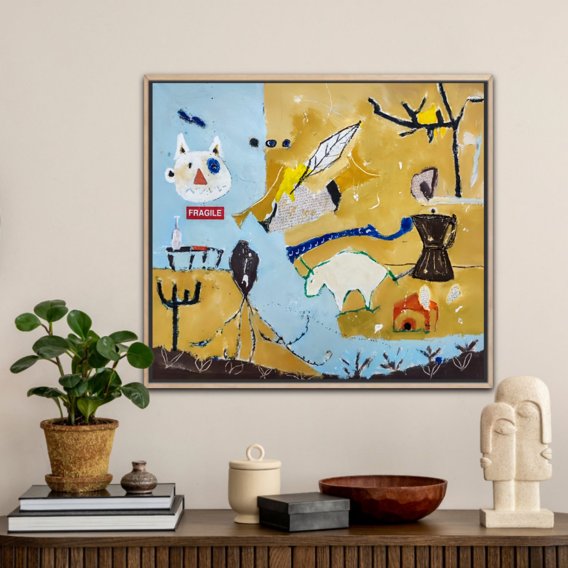Técnica: acrílico, pigmentos, ceras, carboncillo, lápiz, pastel y tinta china.