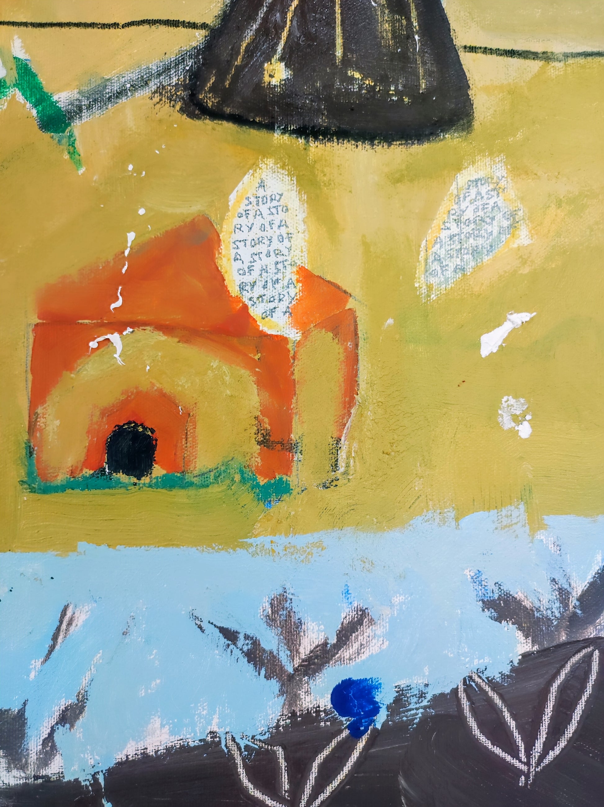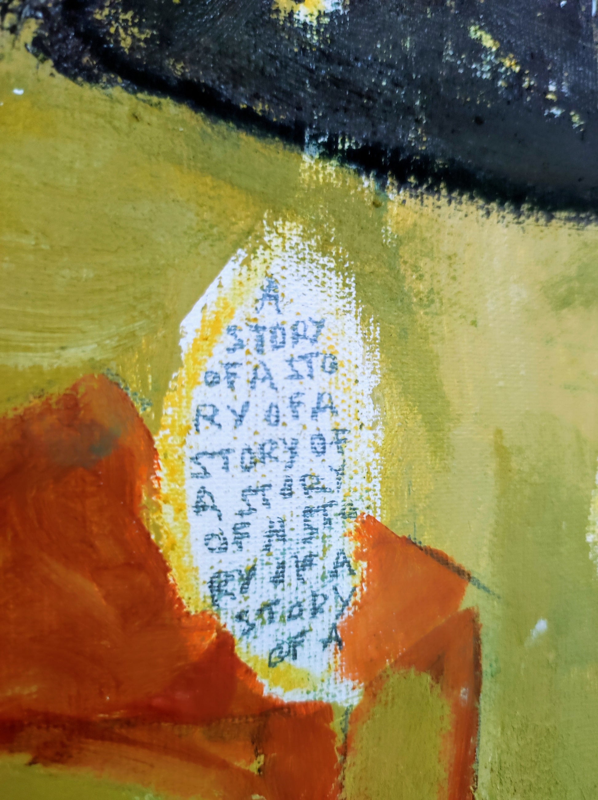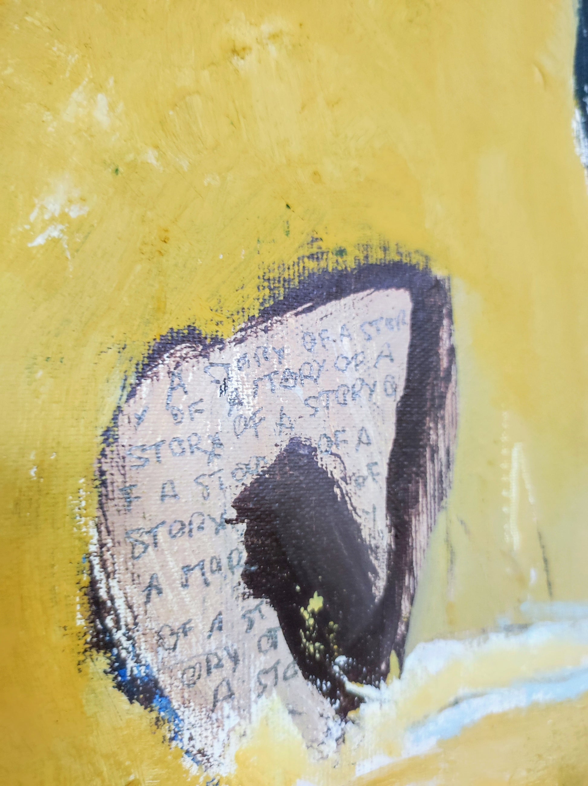 (en la obra se encuentra un fragmento de pincel que se rompió durante la realización de la obra)