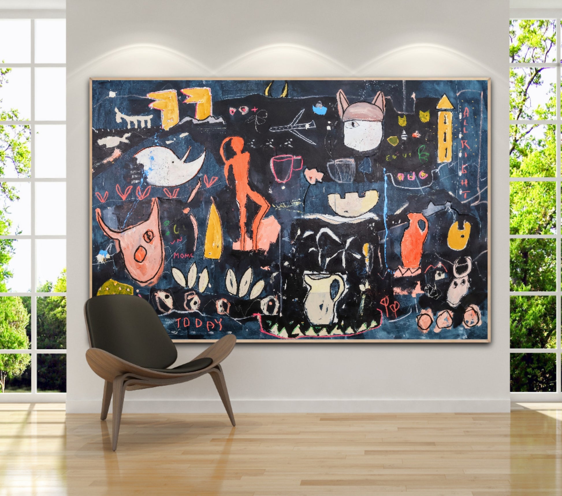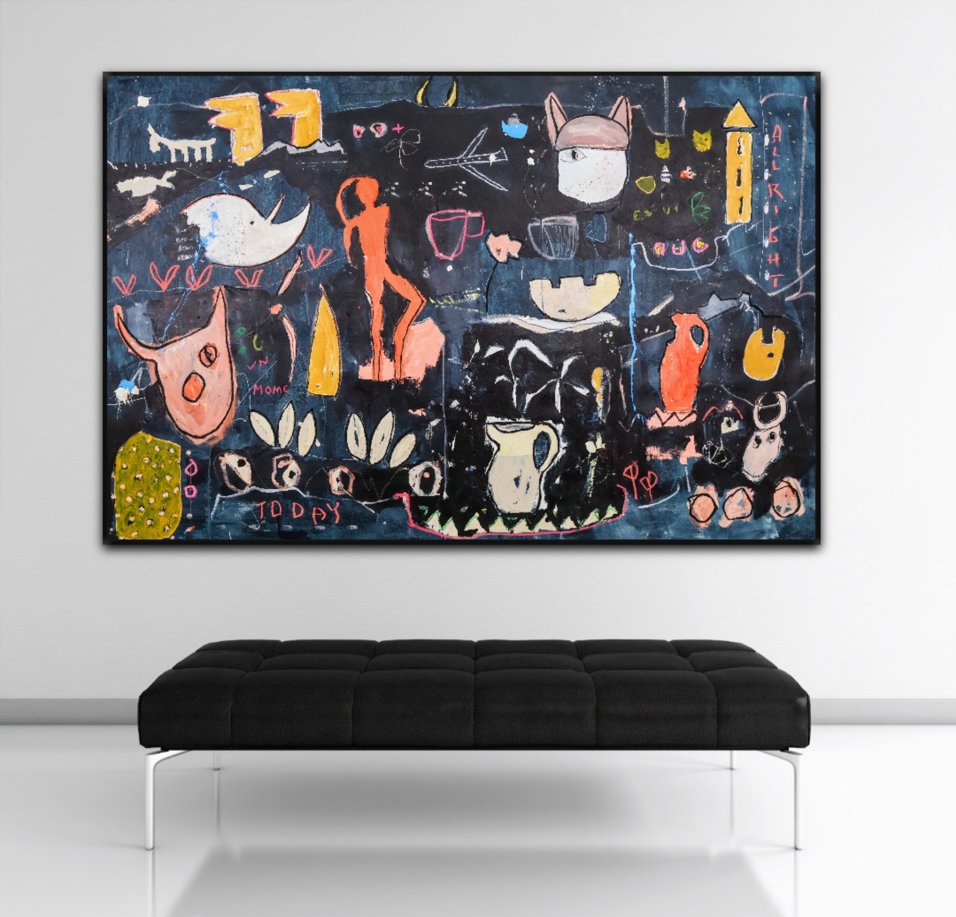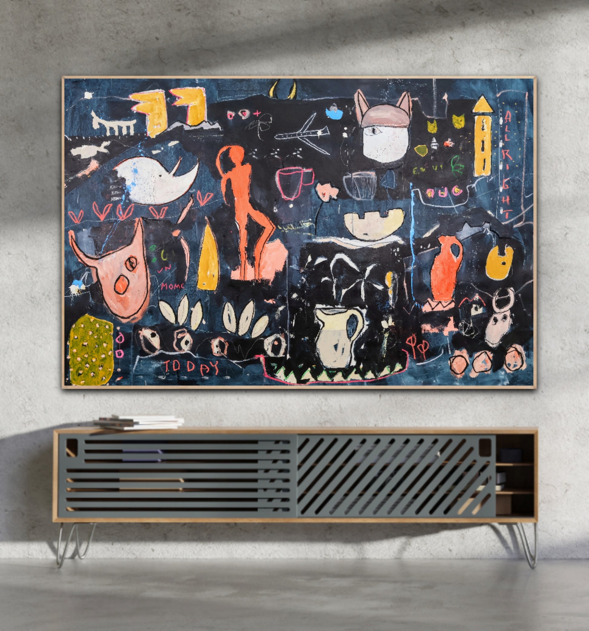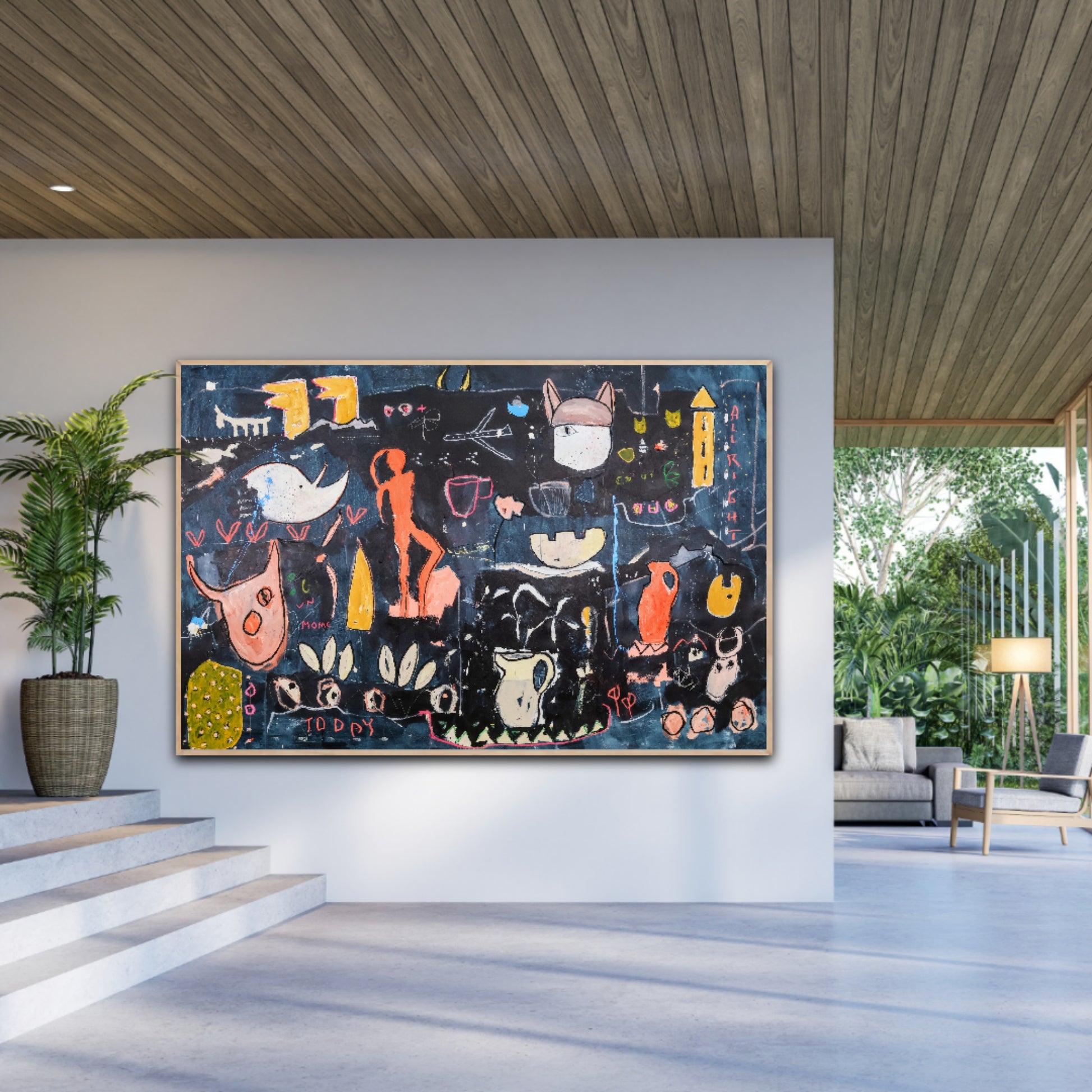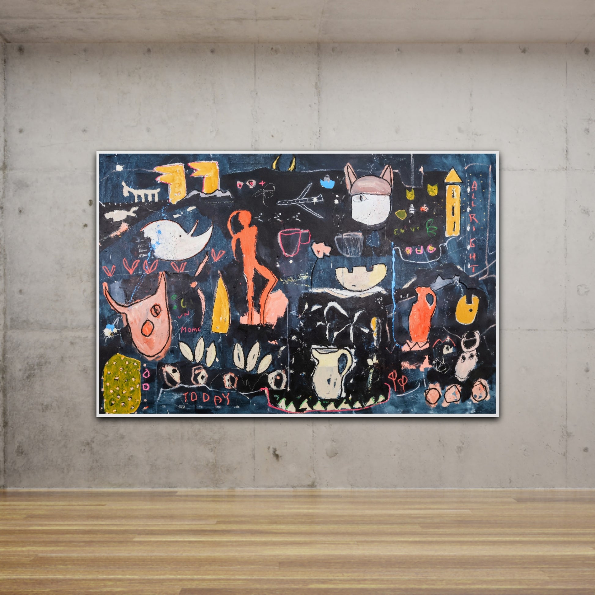 Técnica: acrílico, pigmentos, ceras, tempera, lápiz y carboncillo.