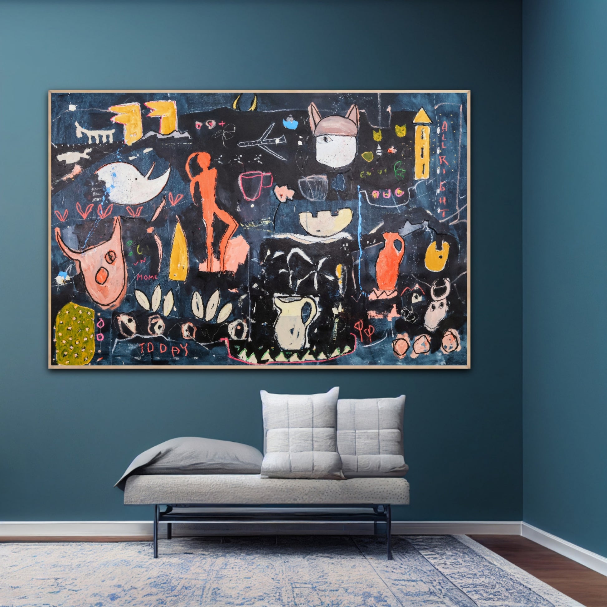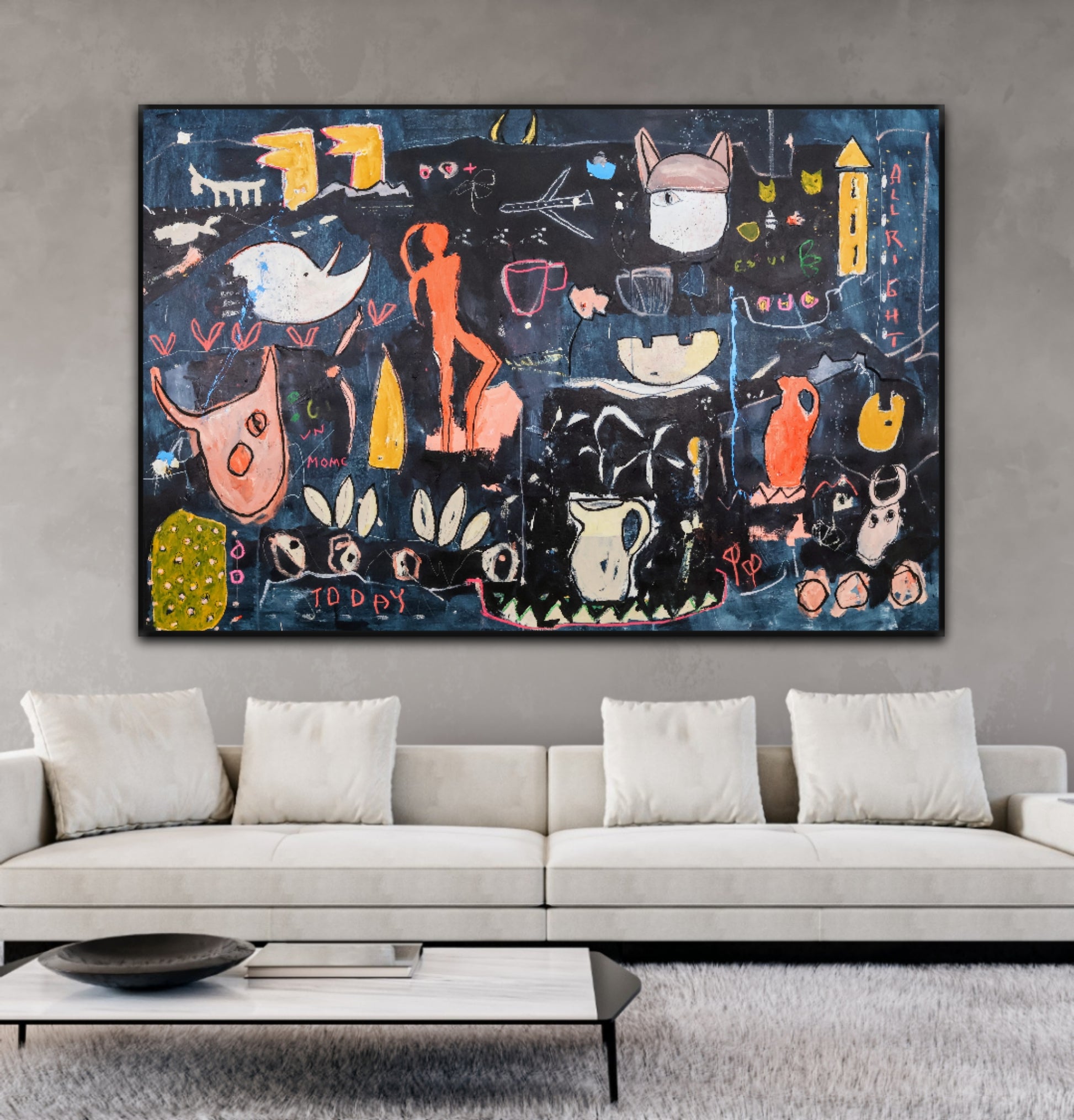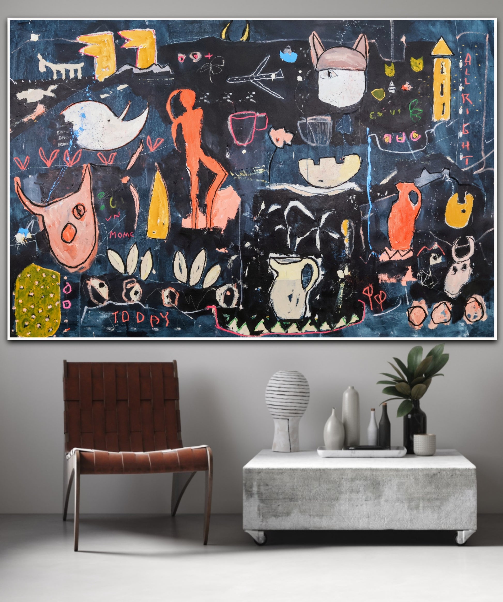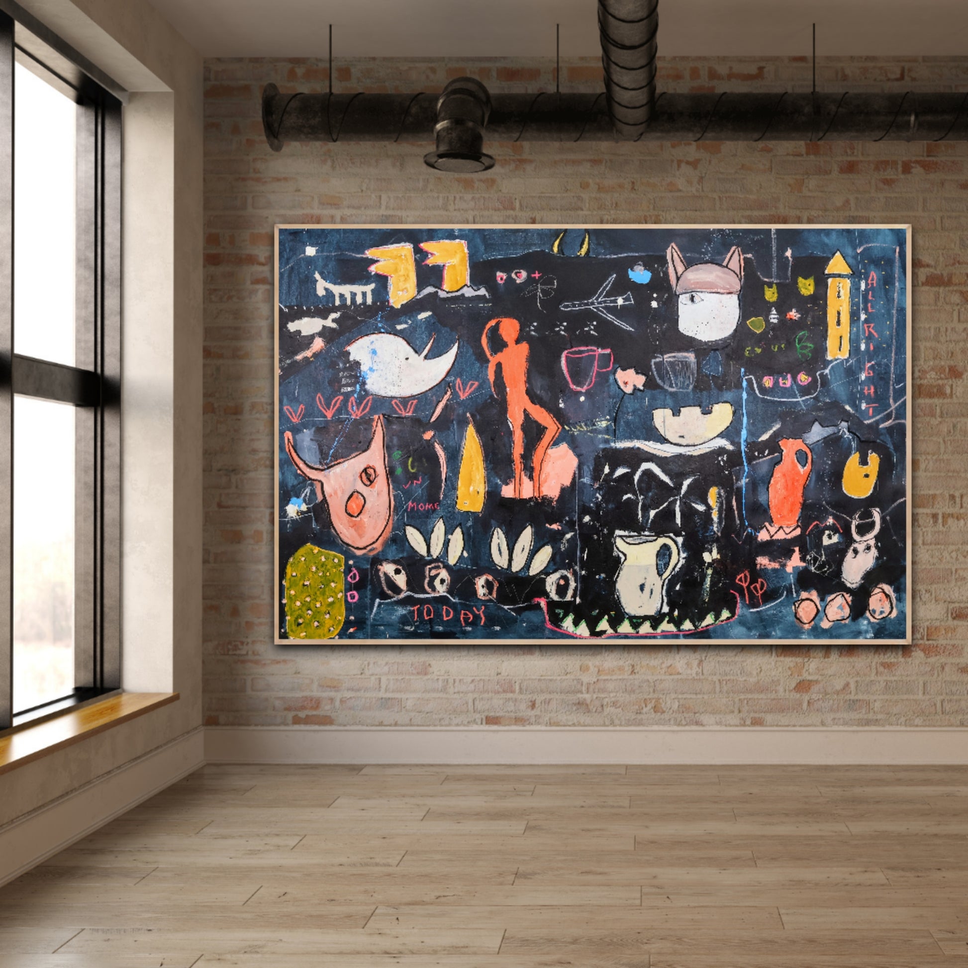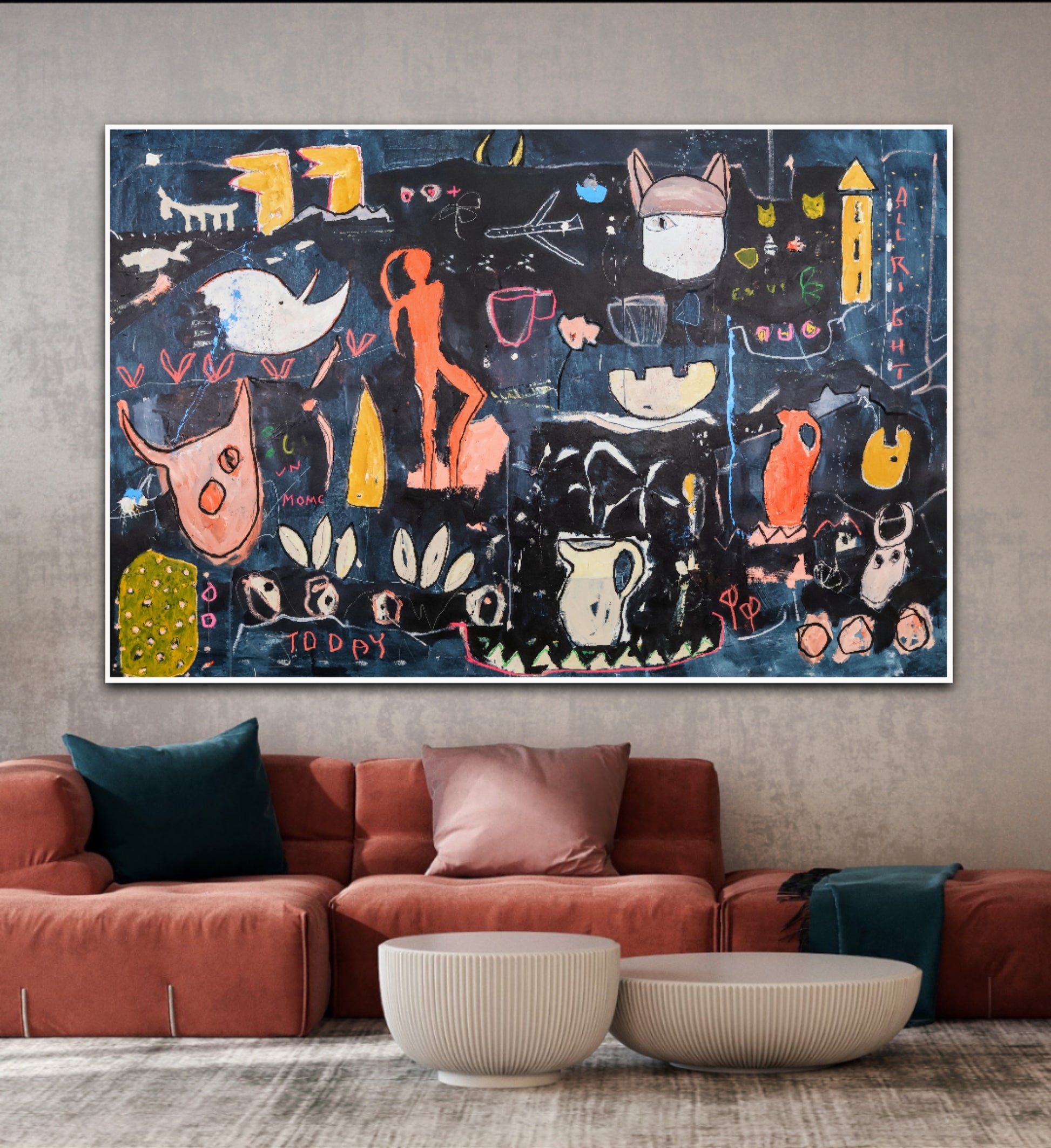 Técnica: acrílico, pigmentos, ceras, tempera, lápiz y carboncillo.