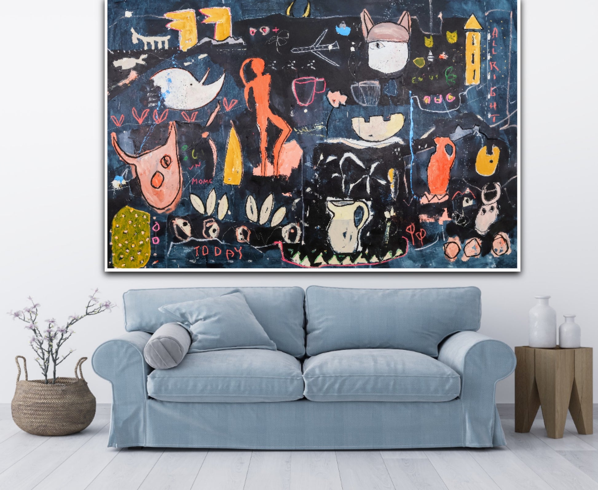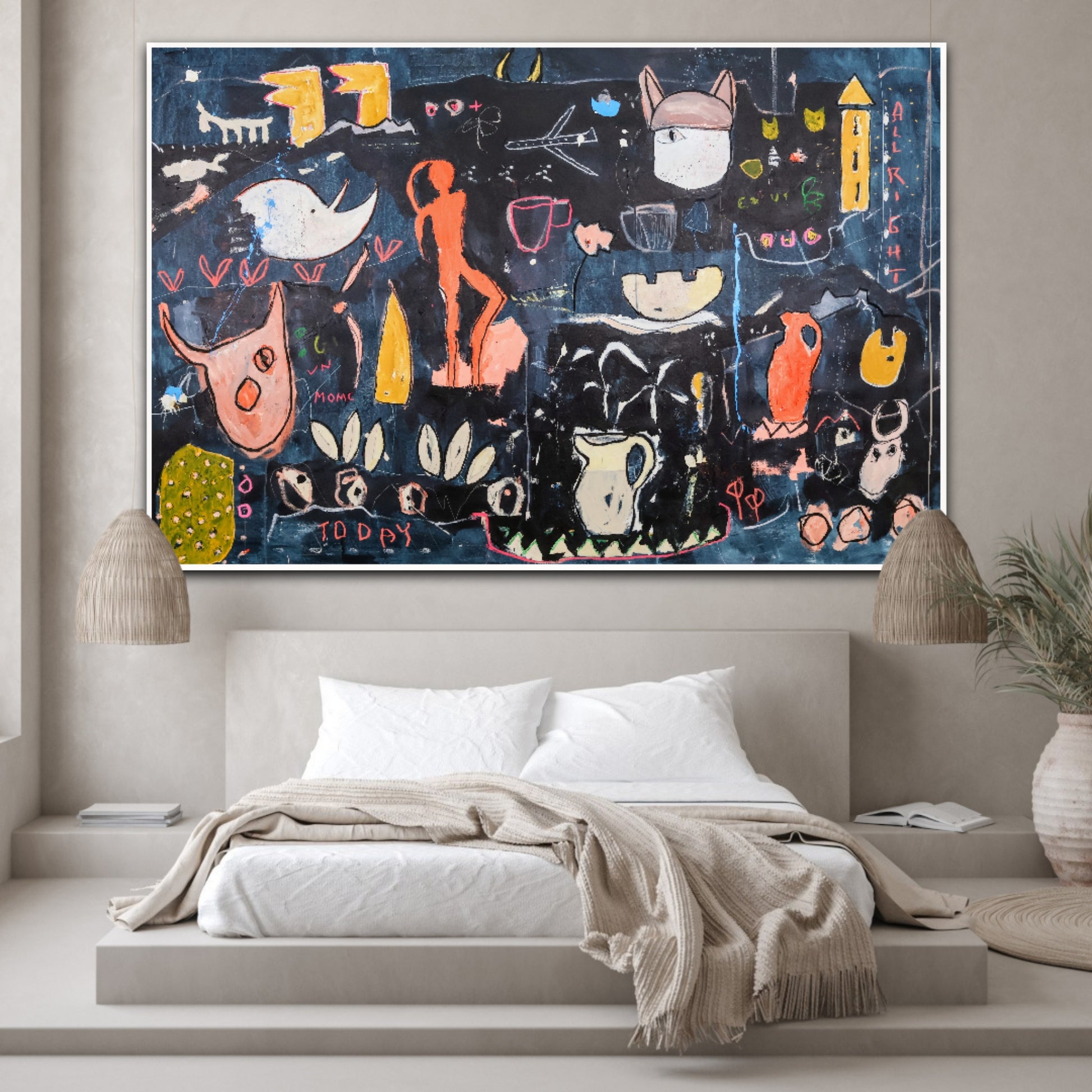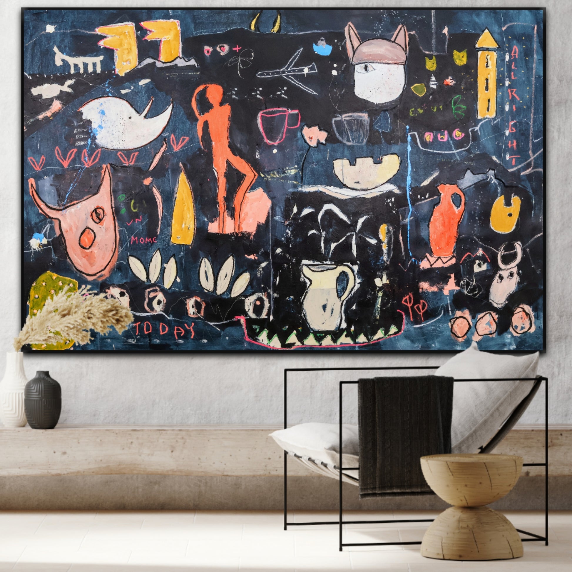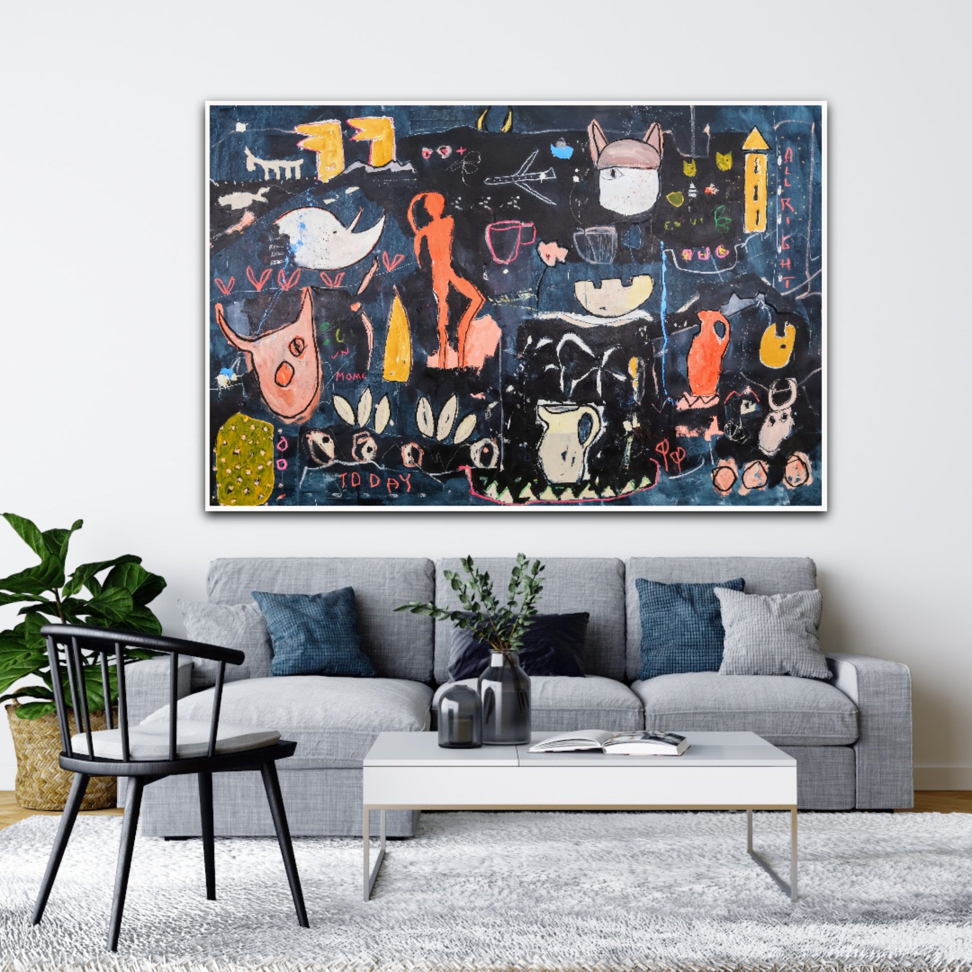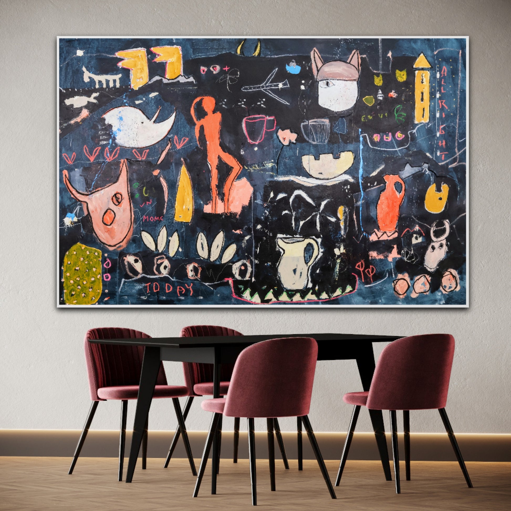 Técnica: acrílico, pigmentos, ceras, tempera, lápiz y carboncillo.