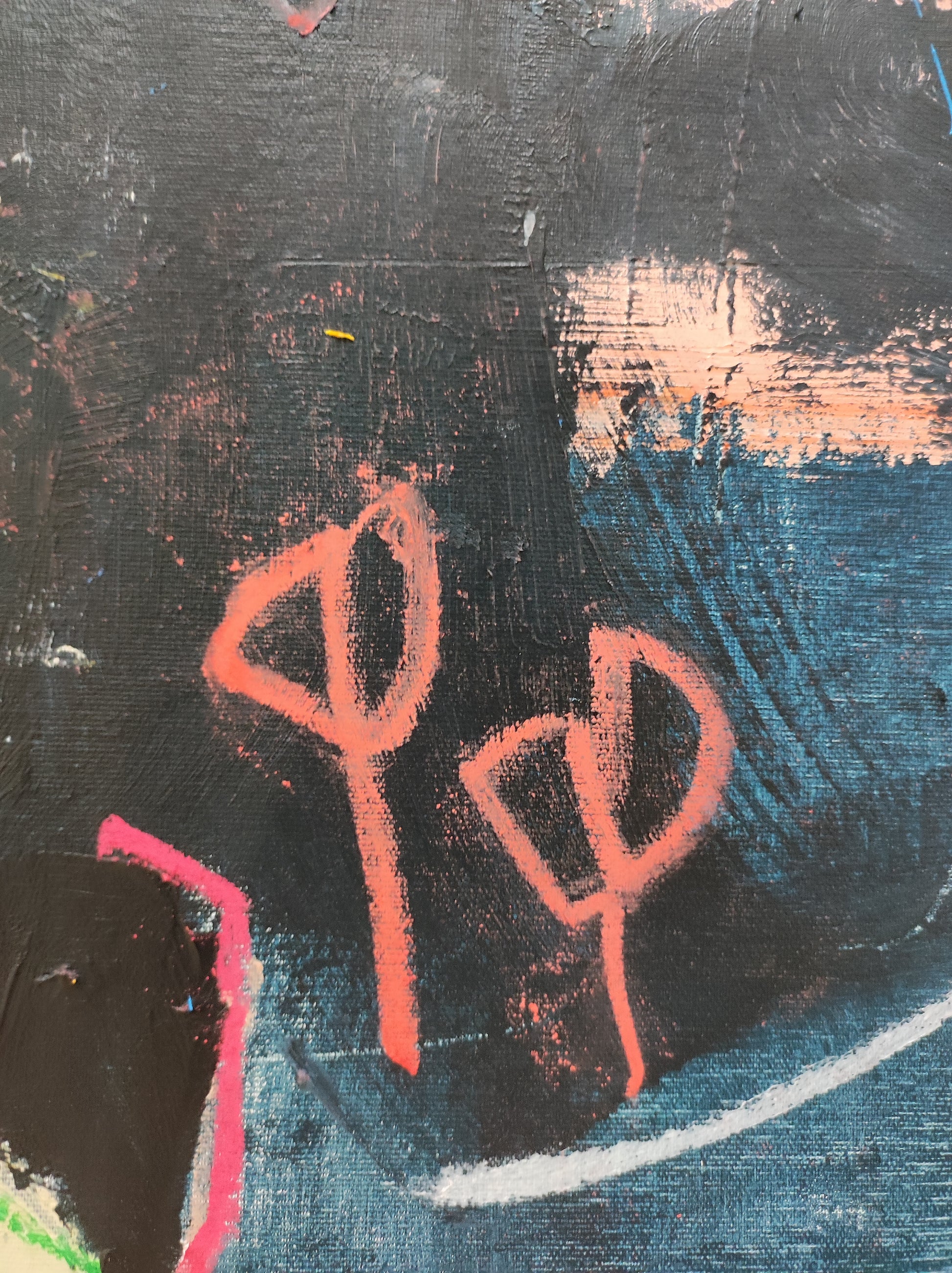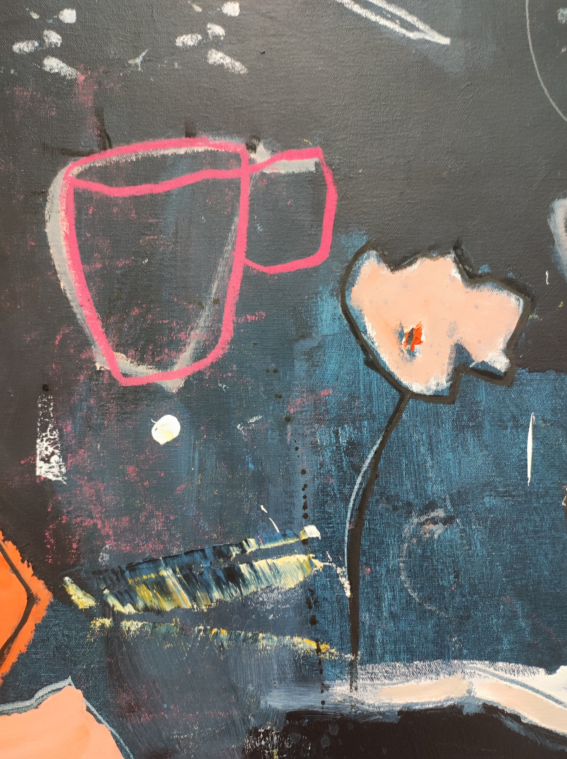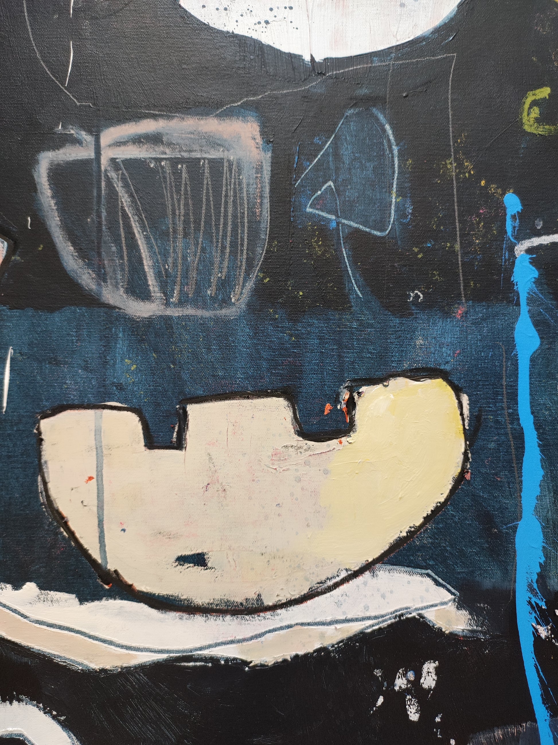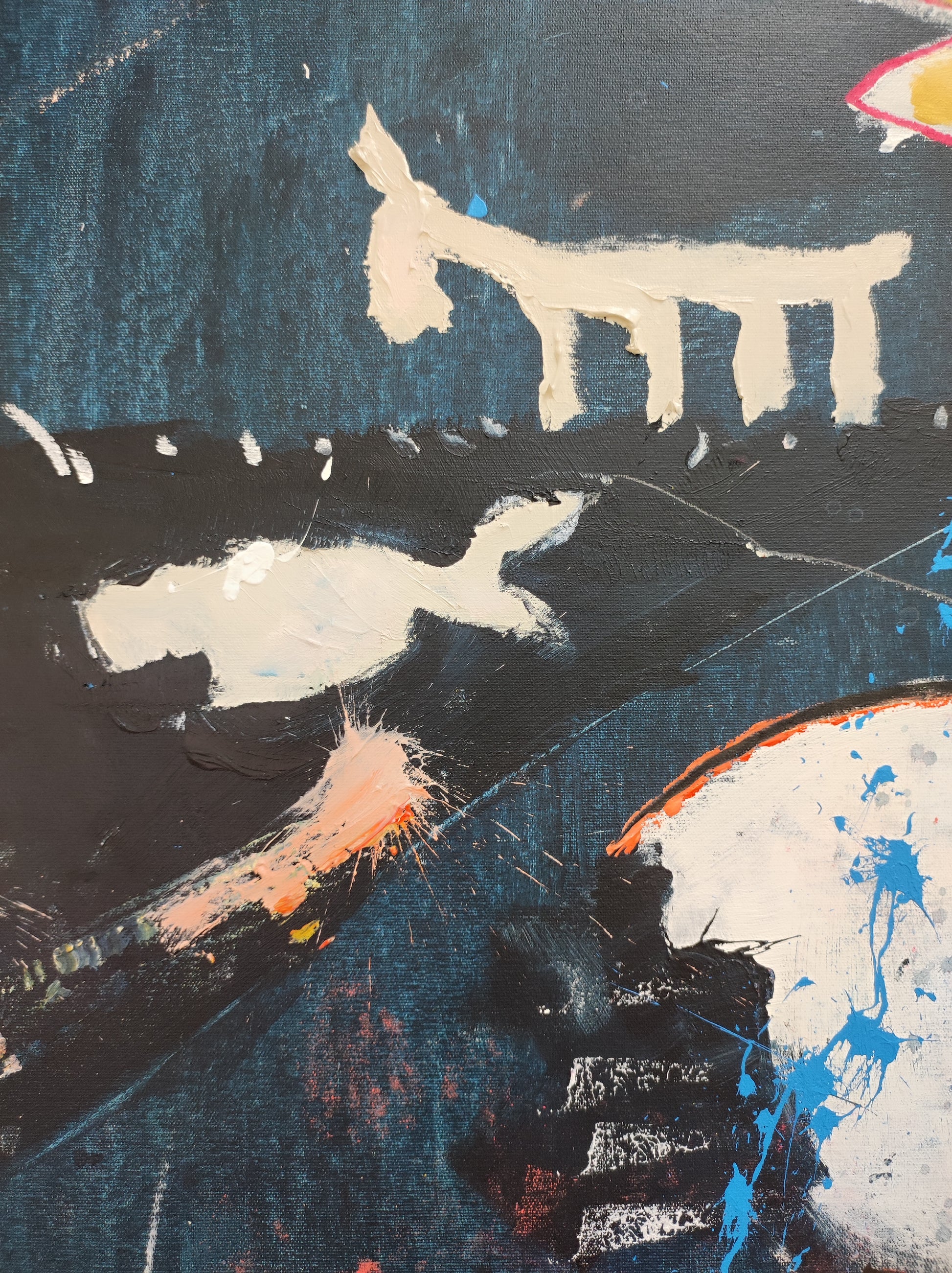 Cuadro trabajado desde la improvisación libre. Action painting con música de Los Planetas, Lagartija Nick y Enrique Morente...