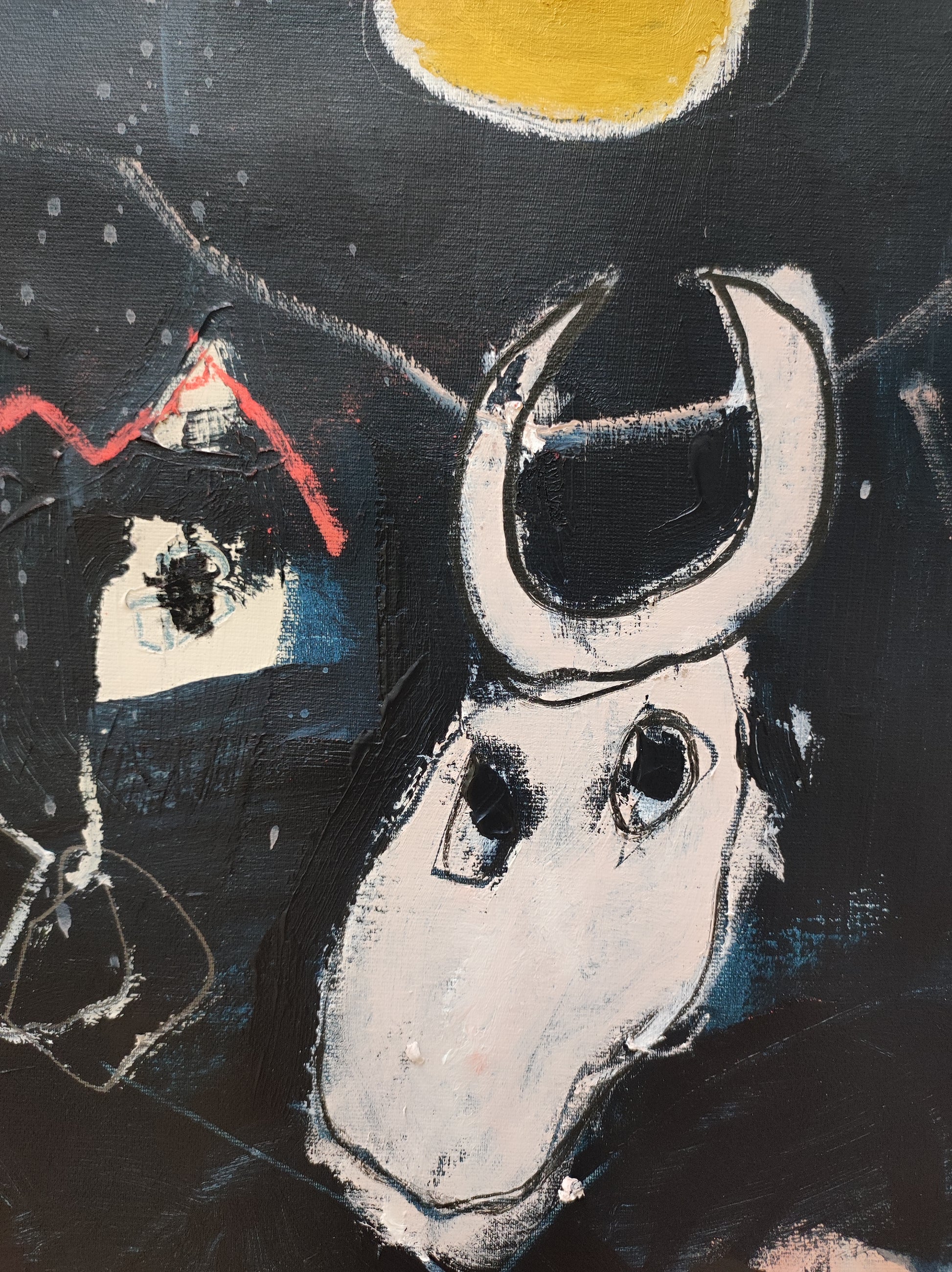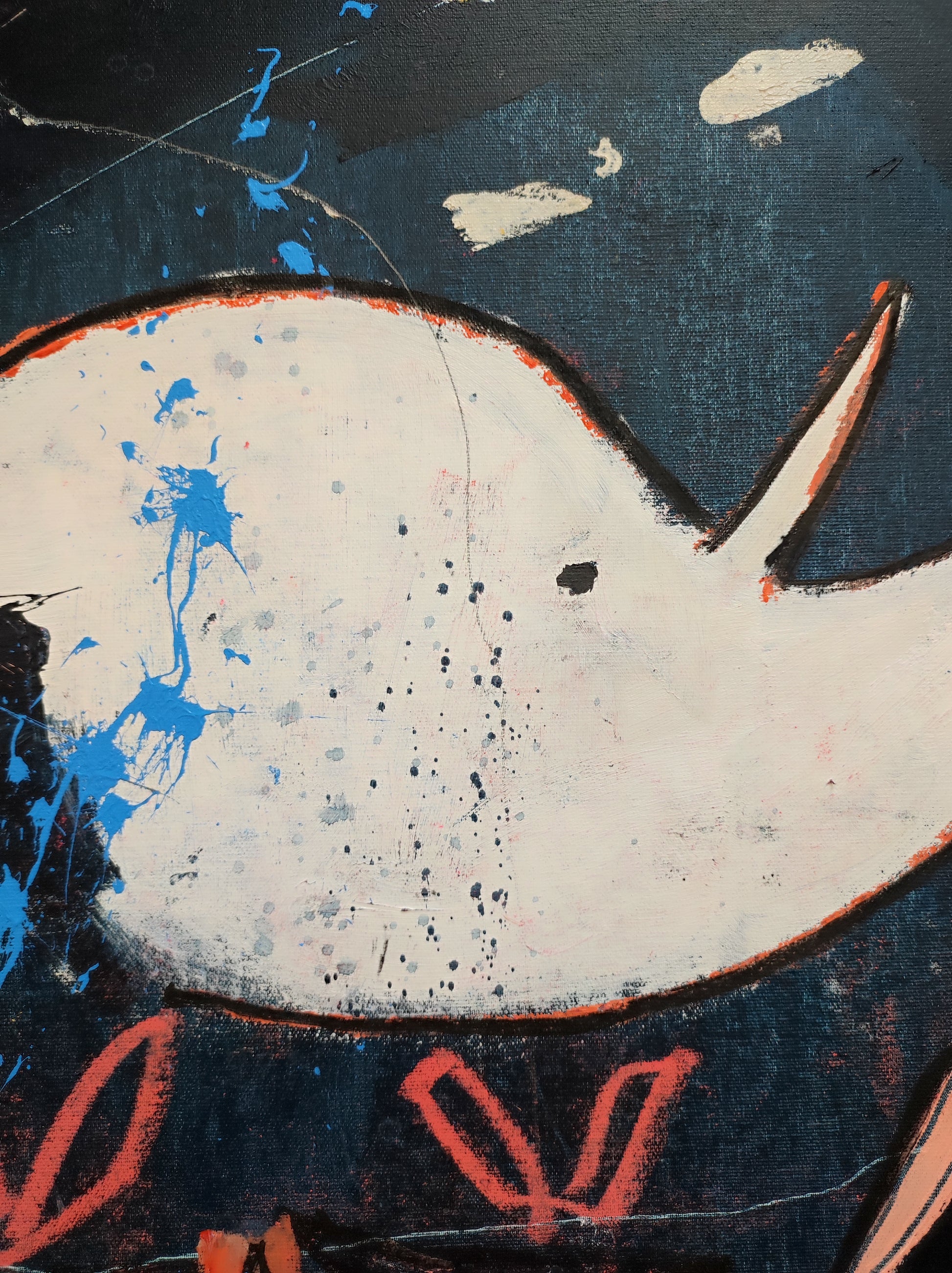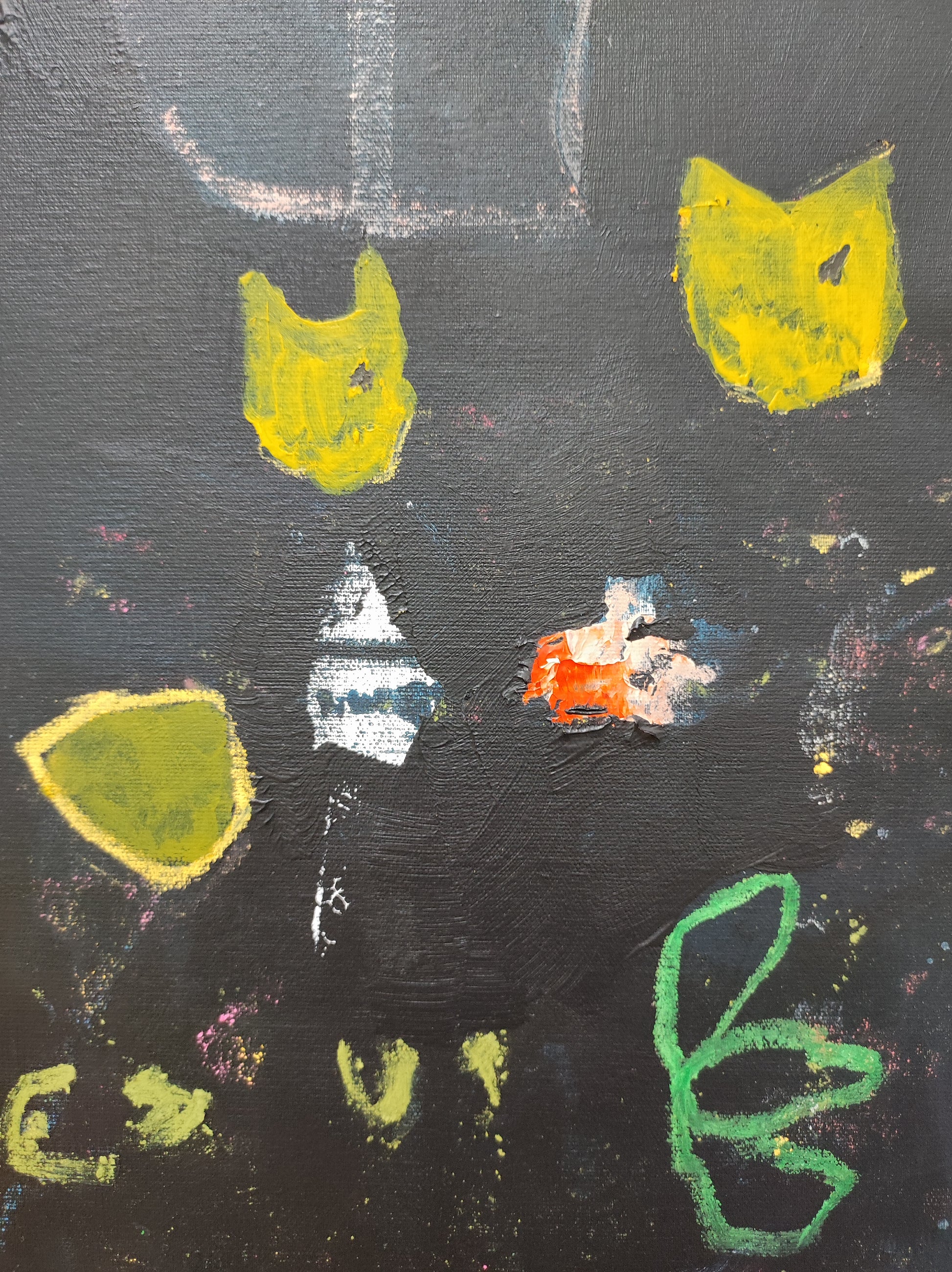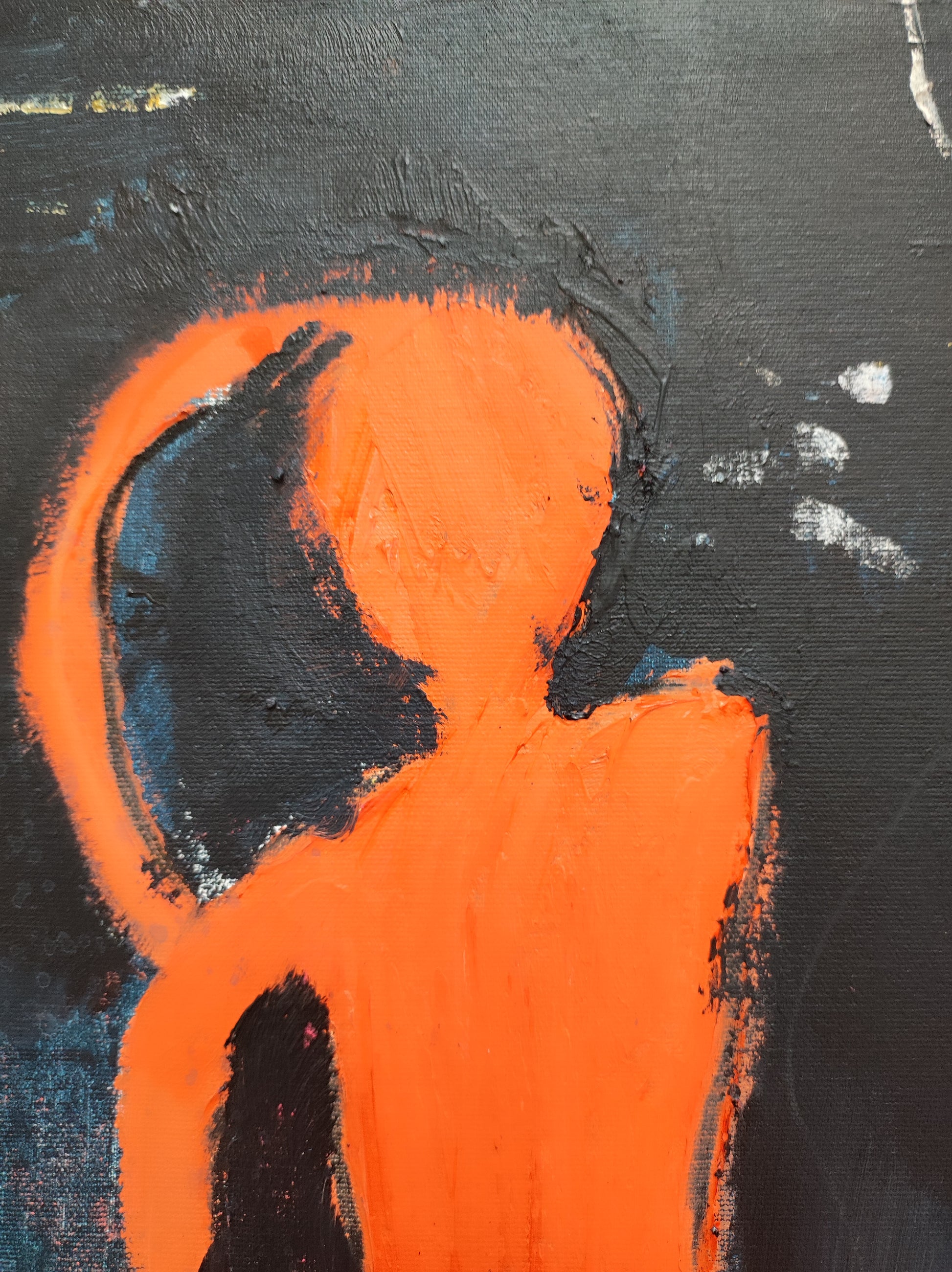 Cuadro trabajado desde la improvisación libre. Action painting con música de Los Planetas, Lagartija Nick y Enrique Morente...
