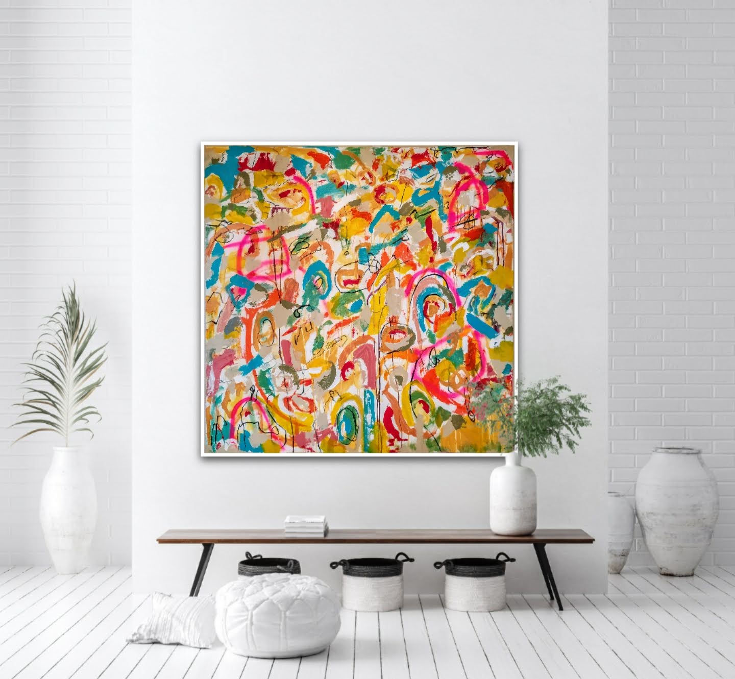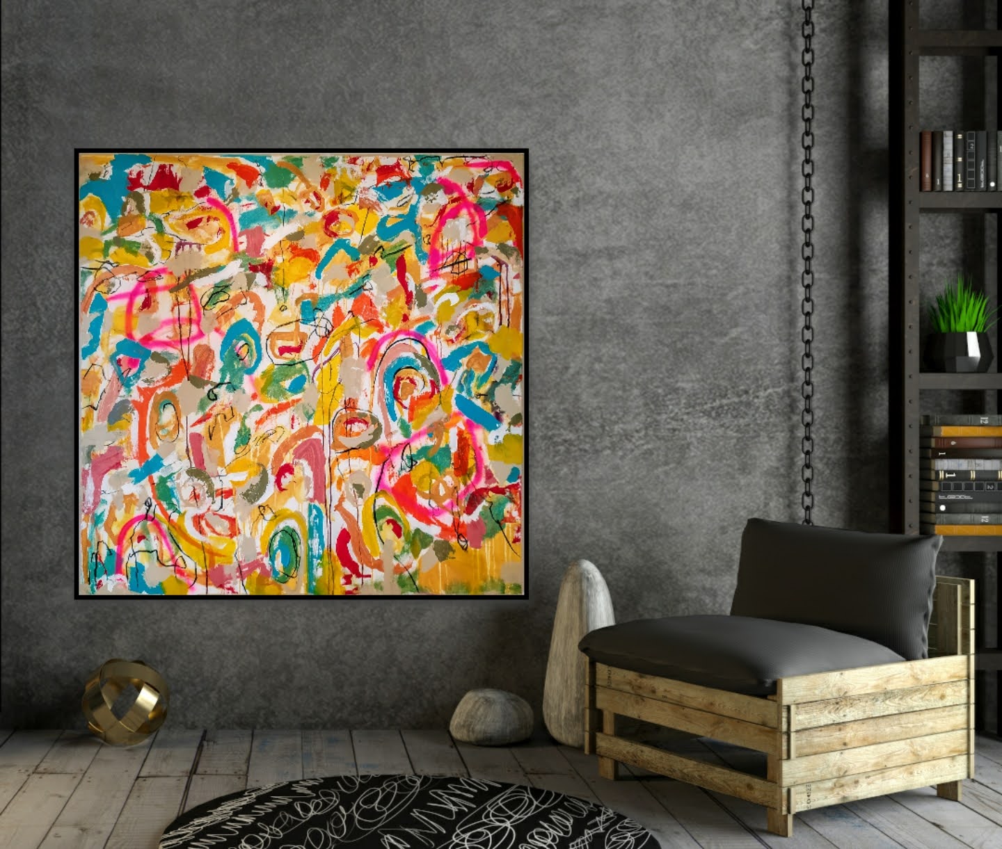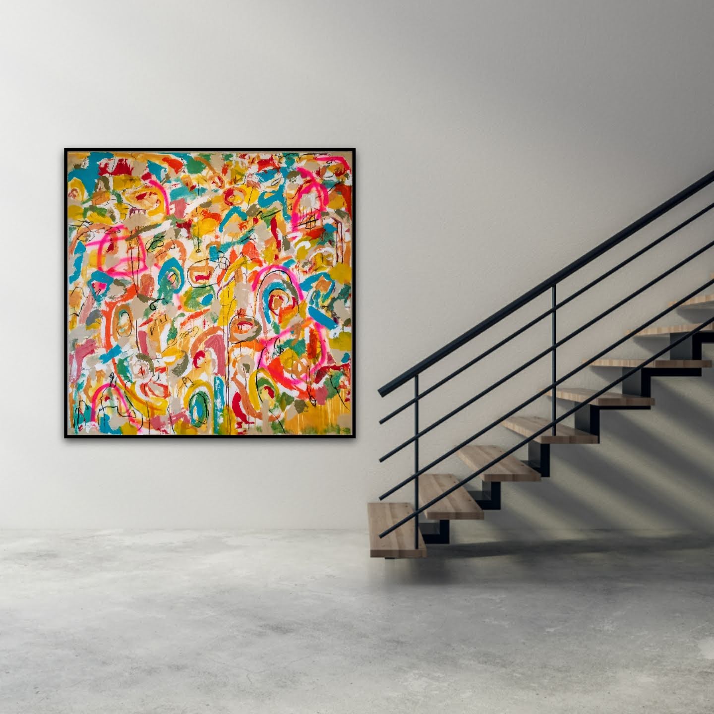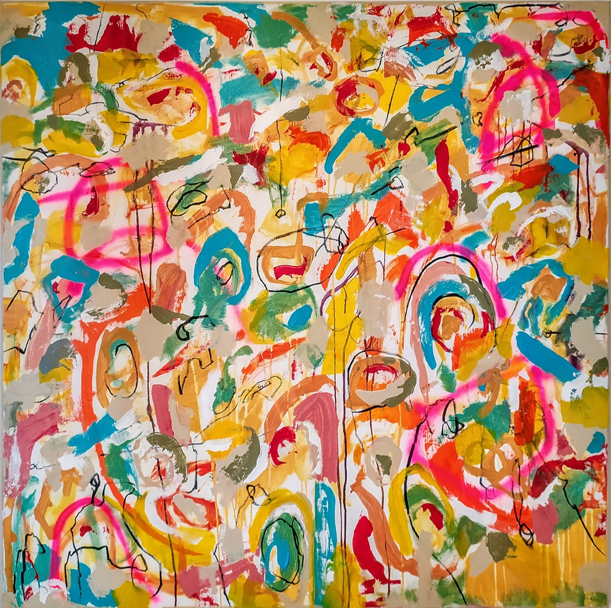 Técnica: mixed media: acrílico, pintura en spray, carboncillo, ceras y tintas al alcohol.