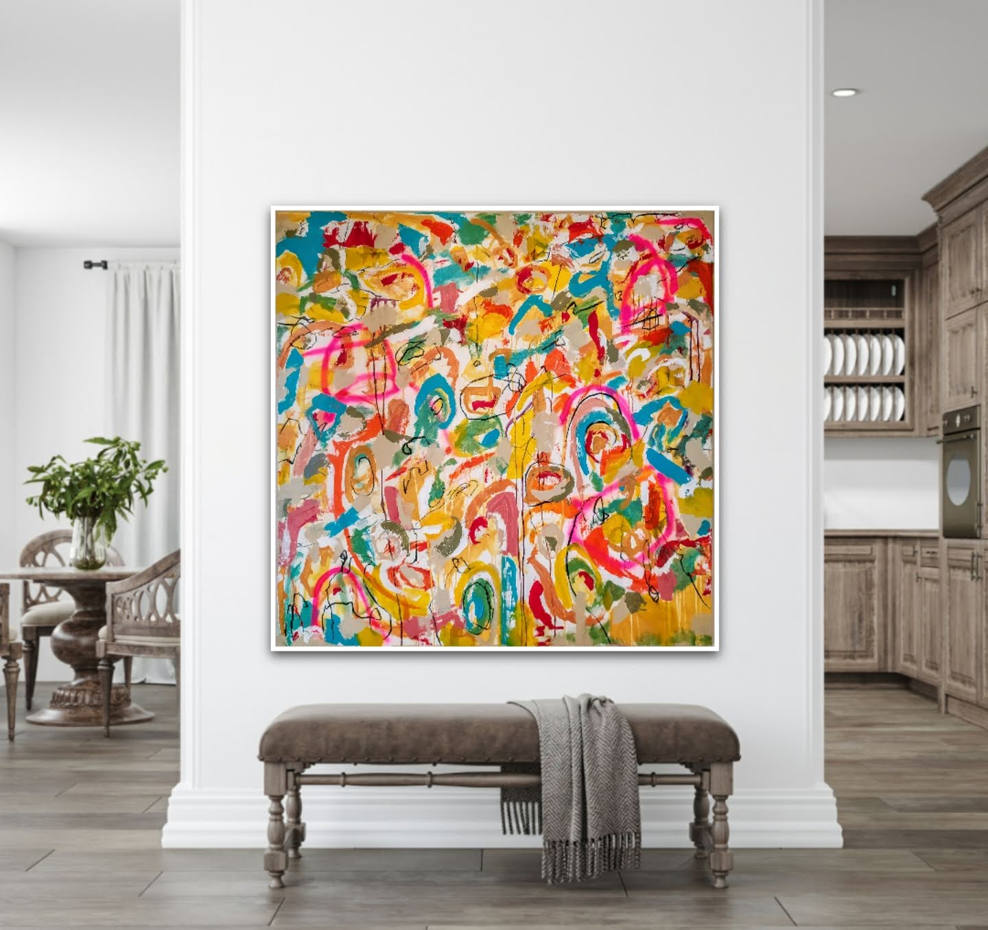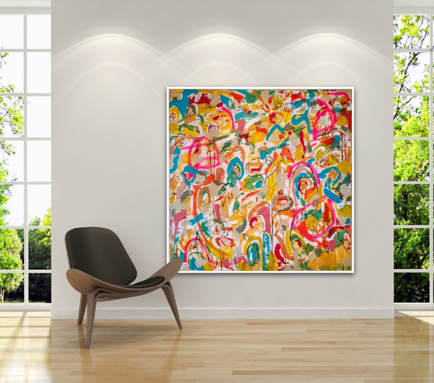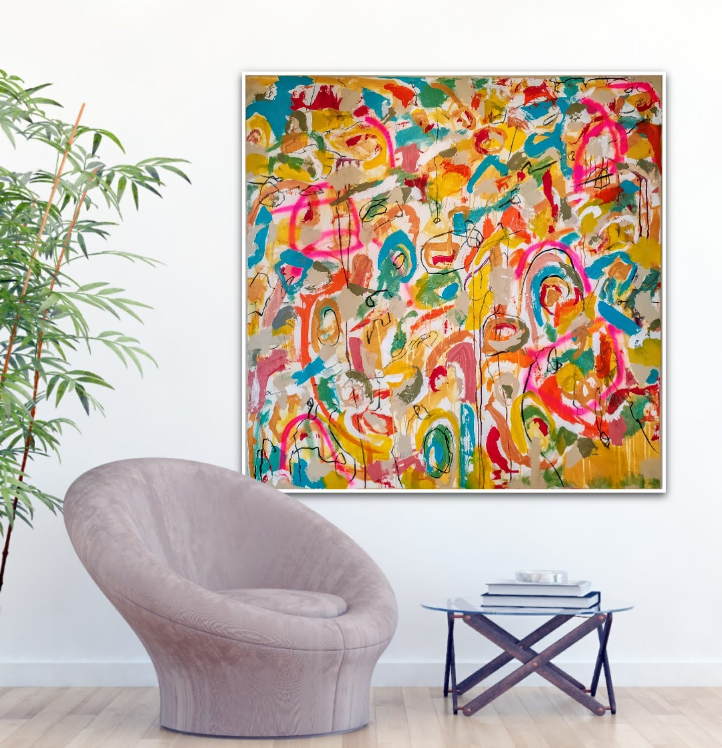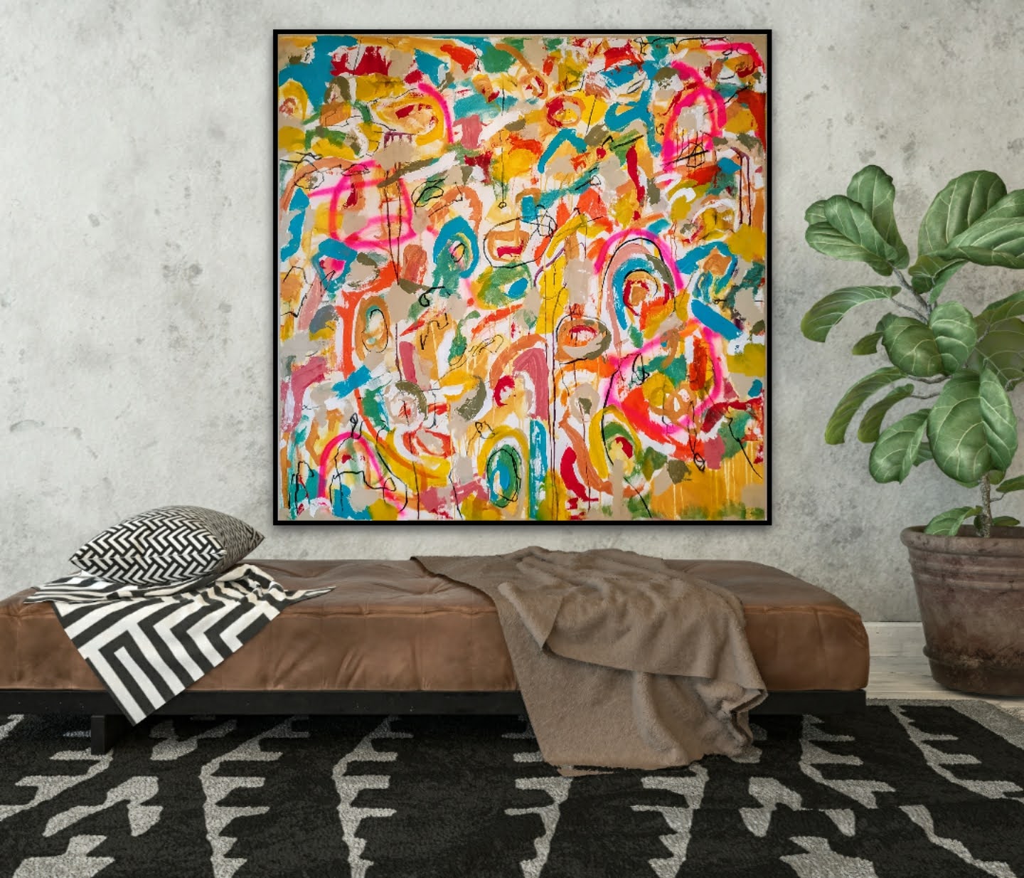 Técnica: mixed media: acrílico, pintura en spray, carboncillo, ceras y tintas al alcohol.