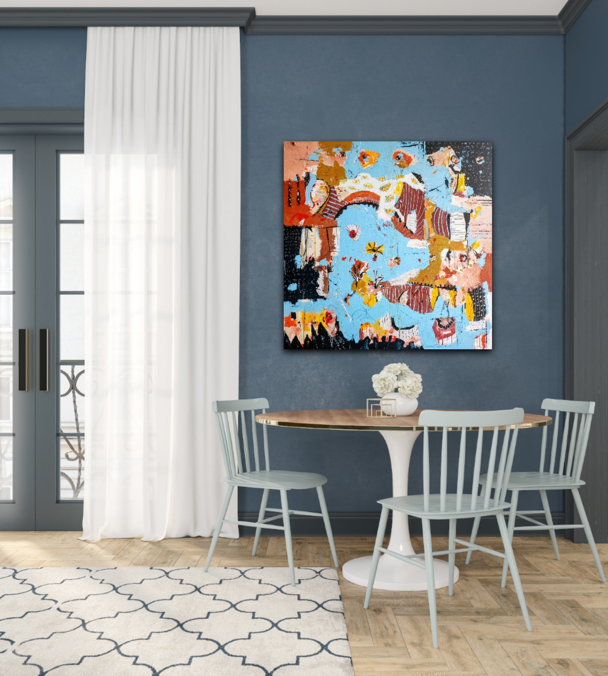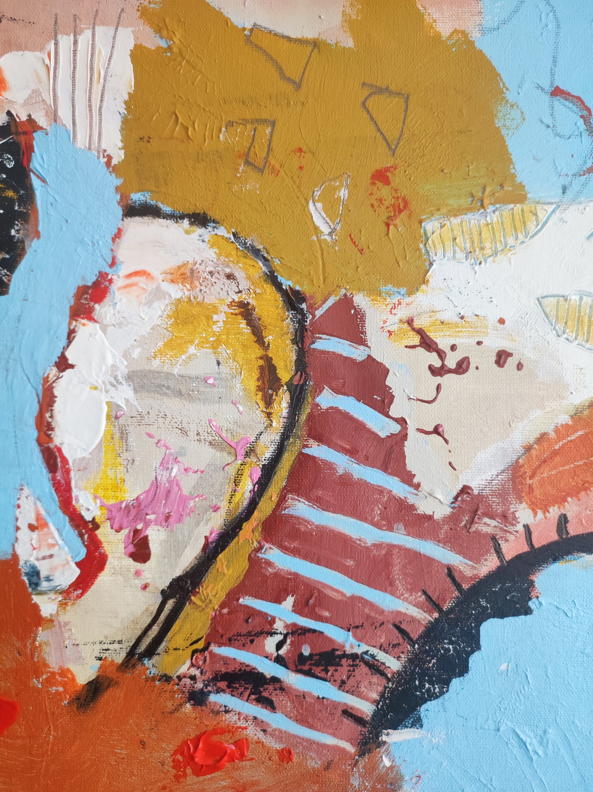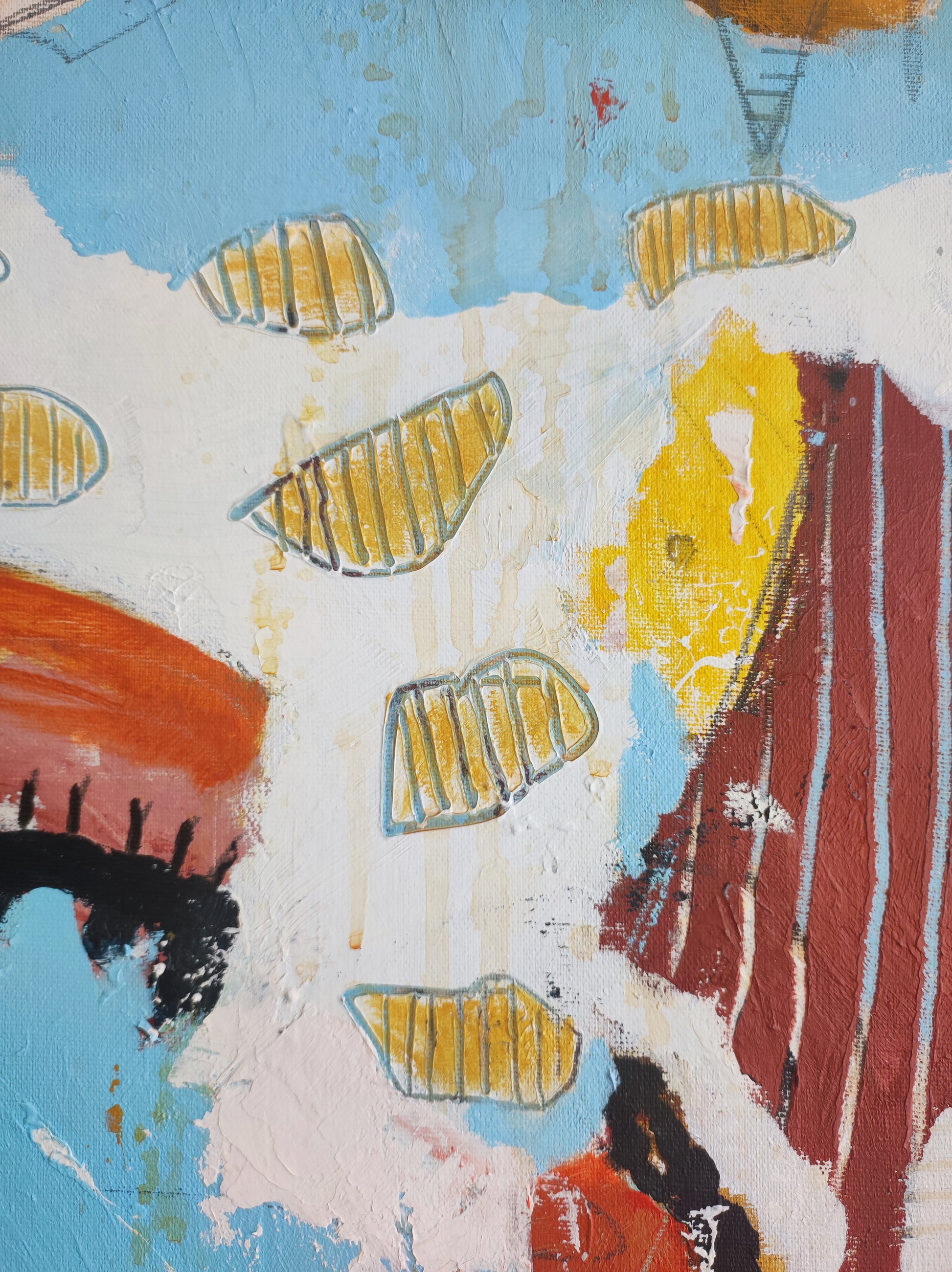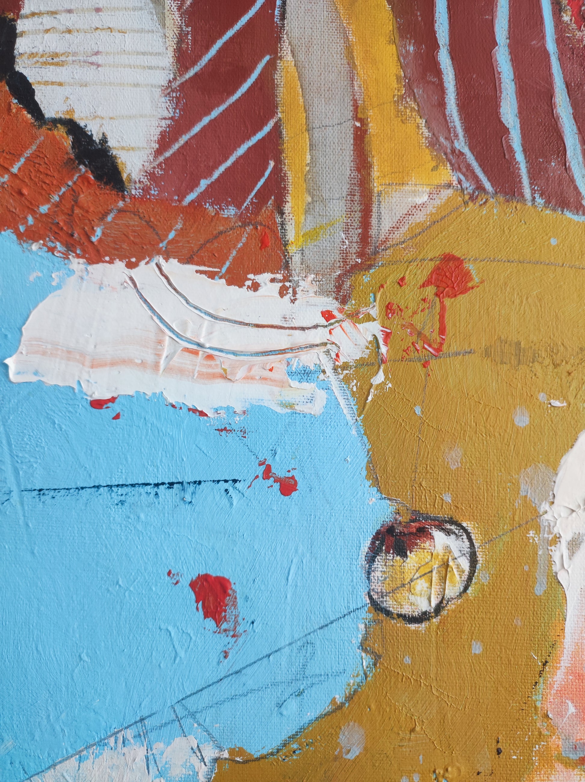 Cuadro trabajado desde la improvisación libre. Action painting con música de Thelonious Monk, John Coltrane, Miles Davis y Dizzy Gillespie.