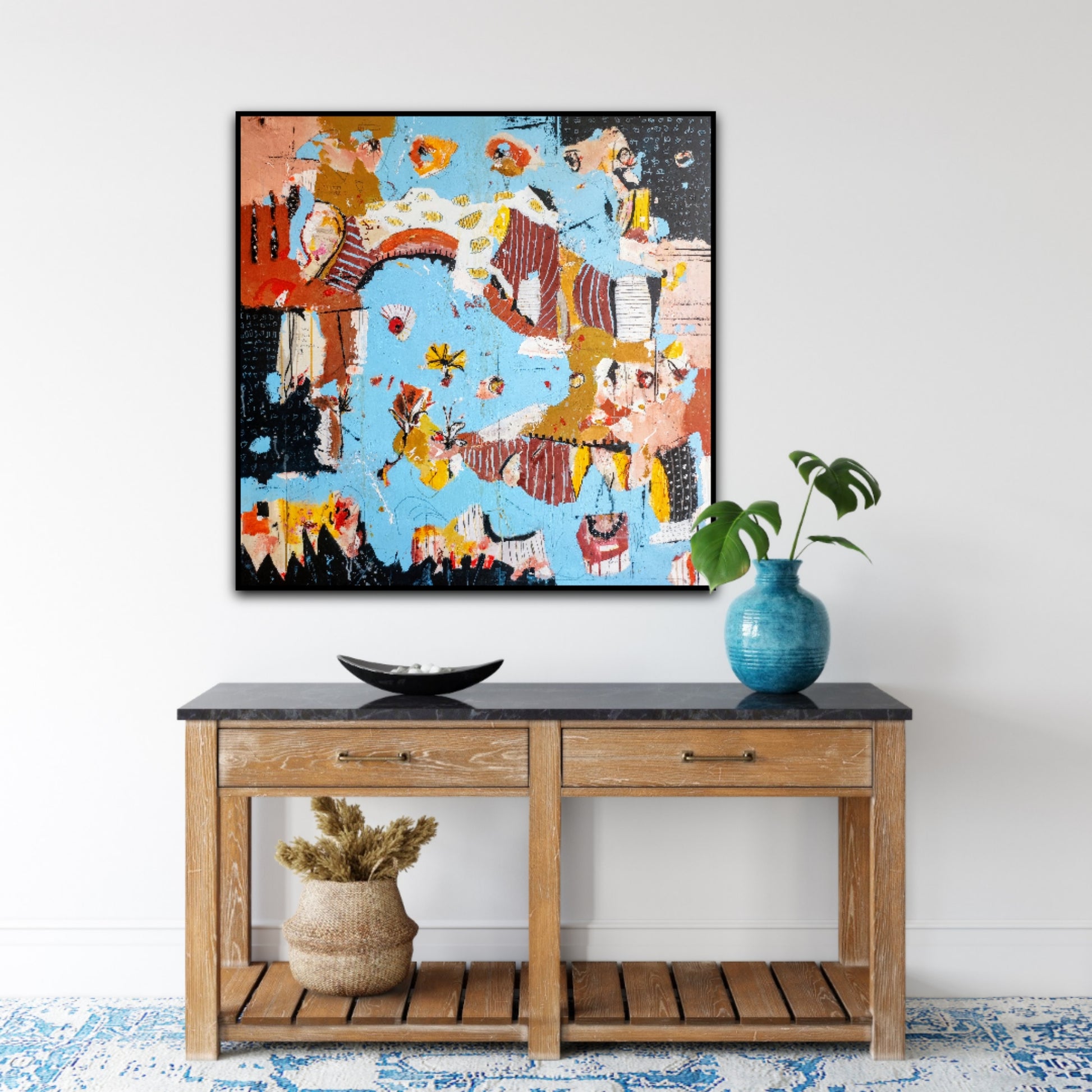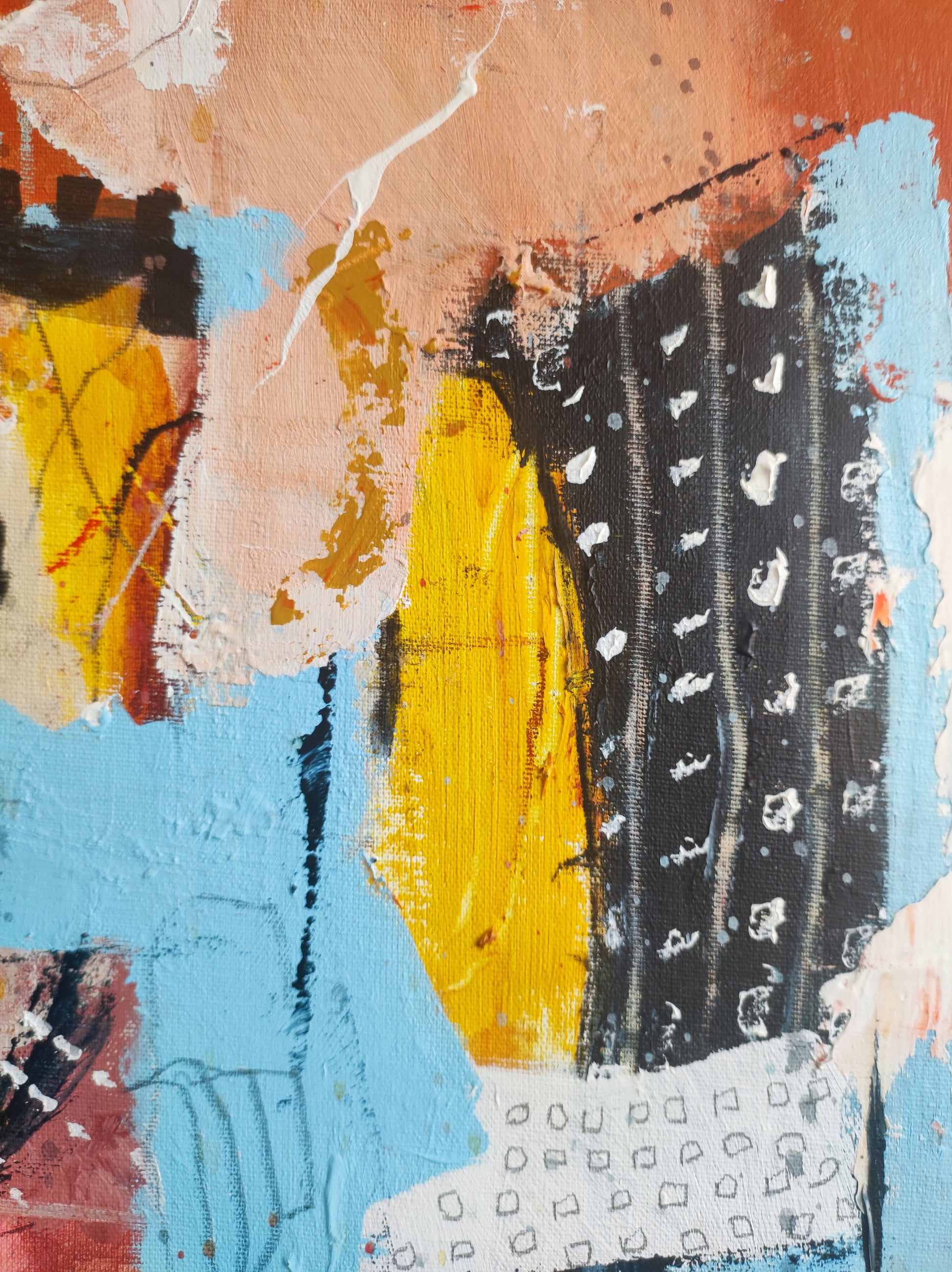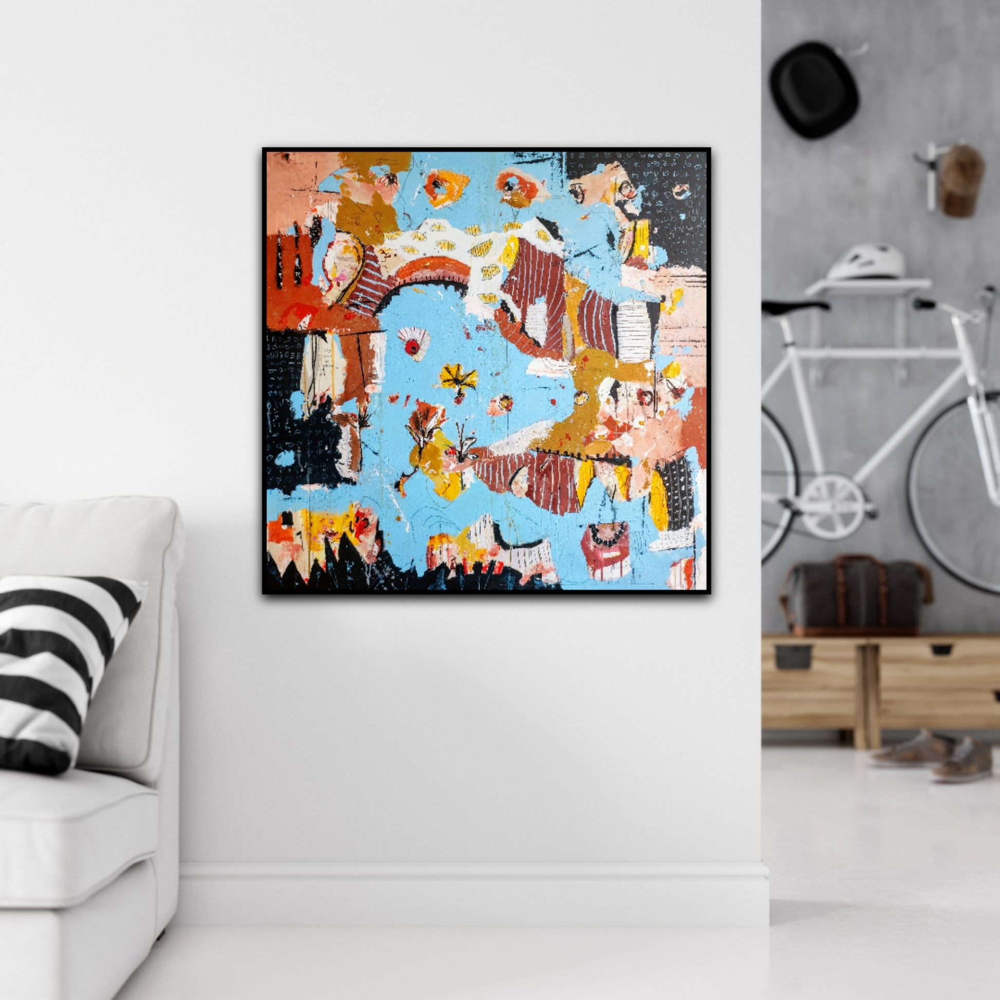 Cuadro trabajado desde la improvisación libre. Action painting con música de Thelonious Monk, John Coltrane, Miles Davis y Dizzy Gillespie.
