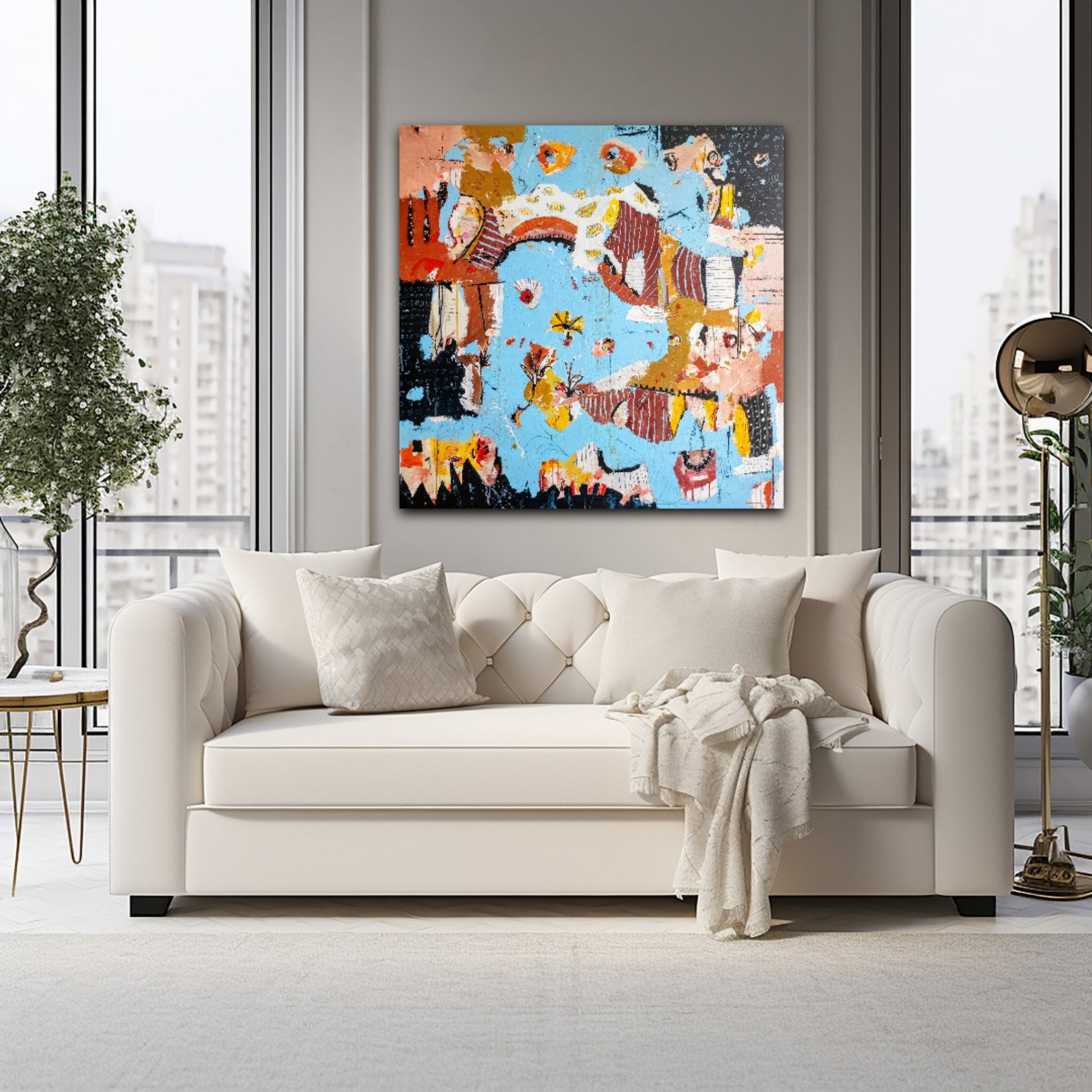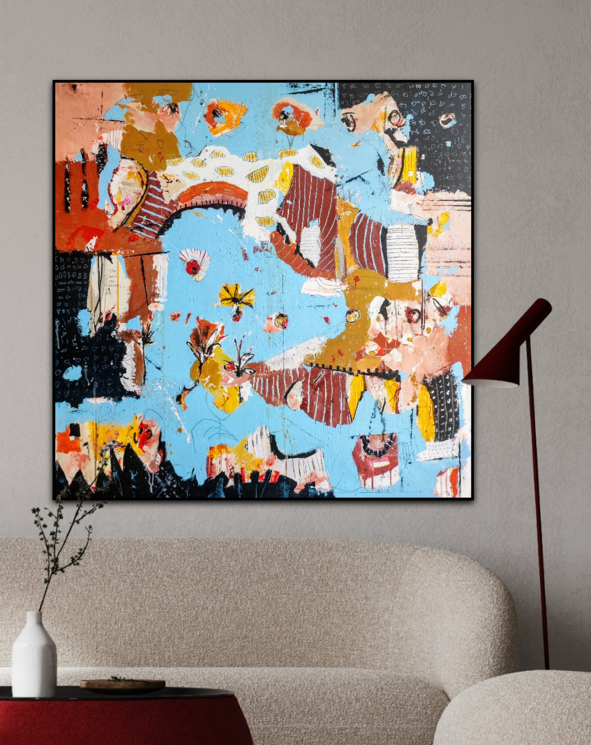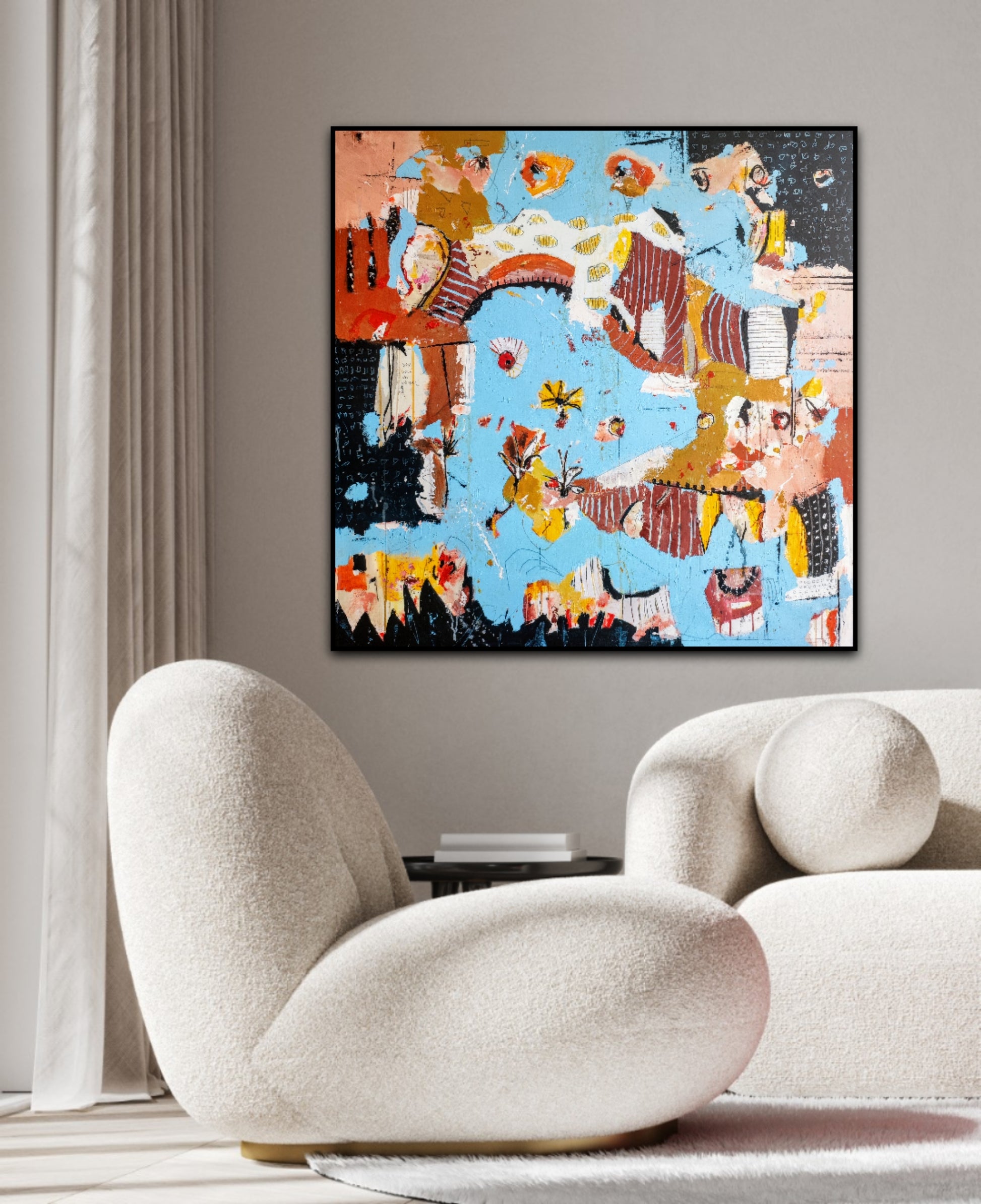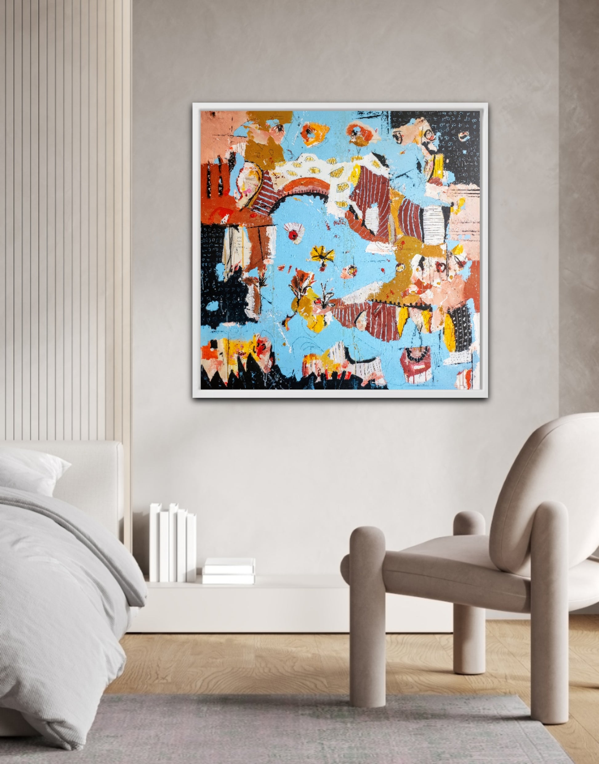 Cuadro trabajado desde la improvisación libre. Action painting con música de Thelonious Monk, John Coltrane, Miles Davis y Dizzy Gillespie.