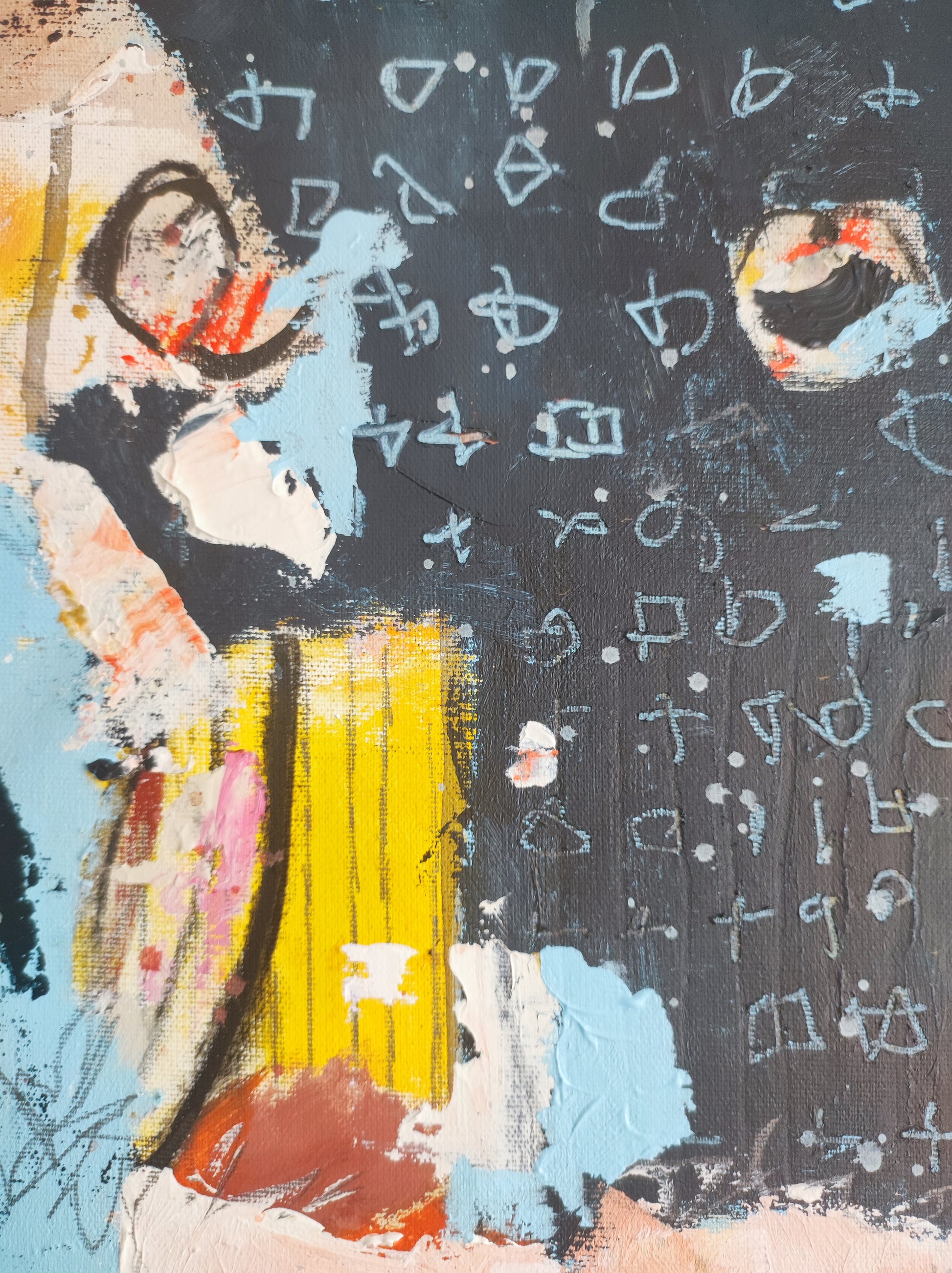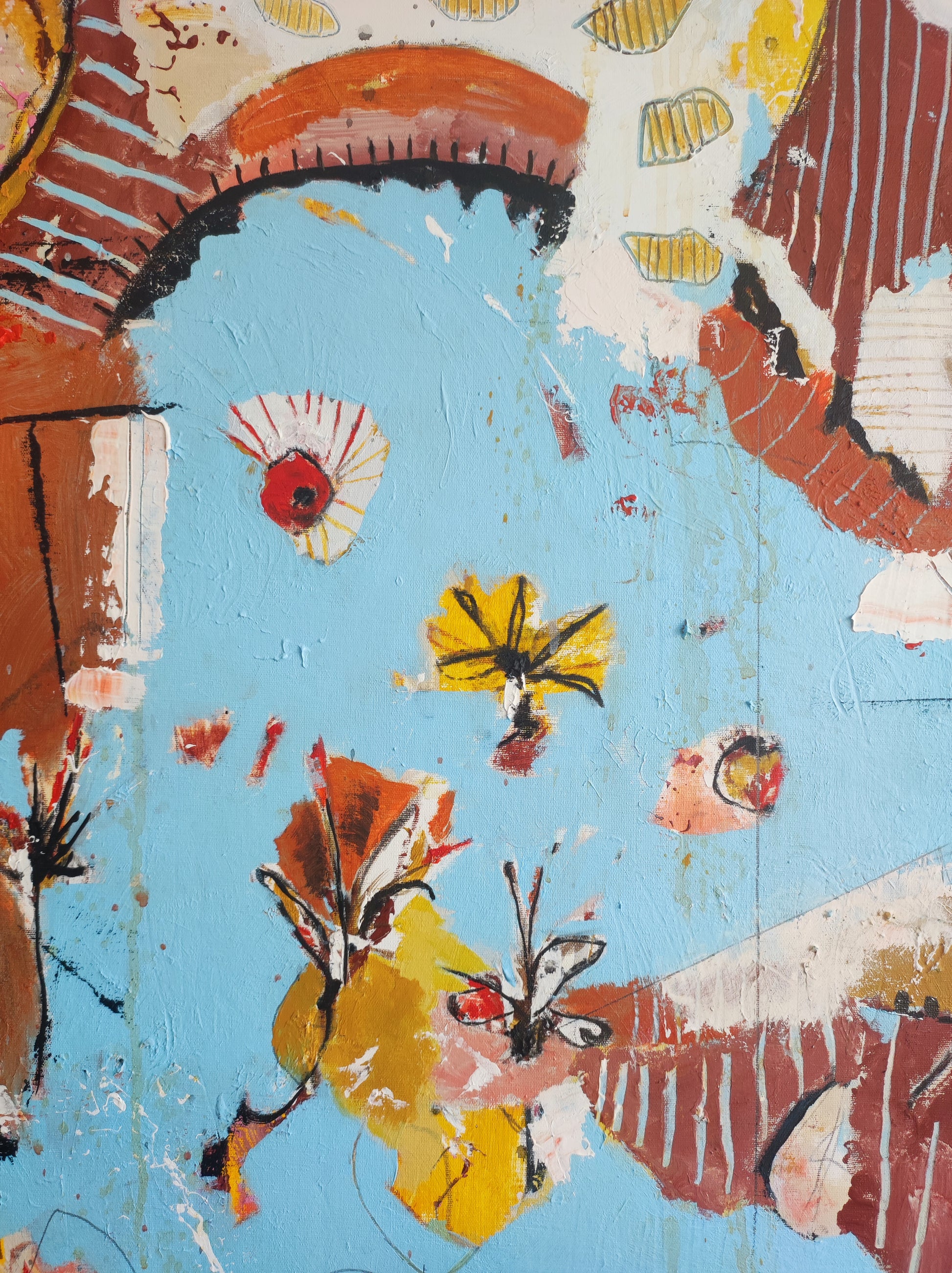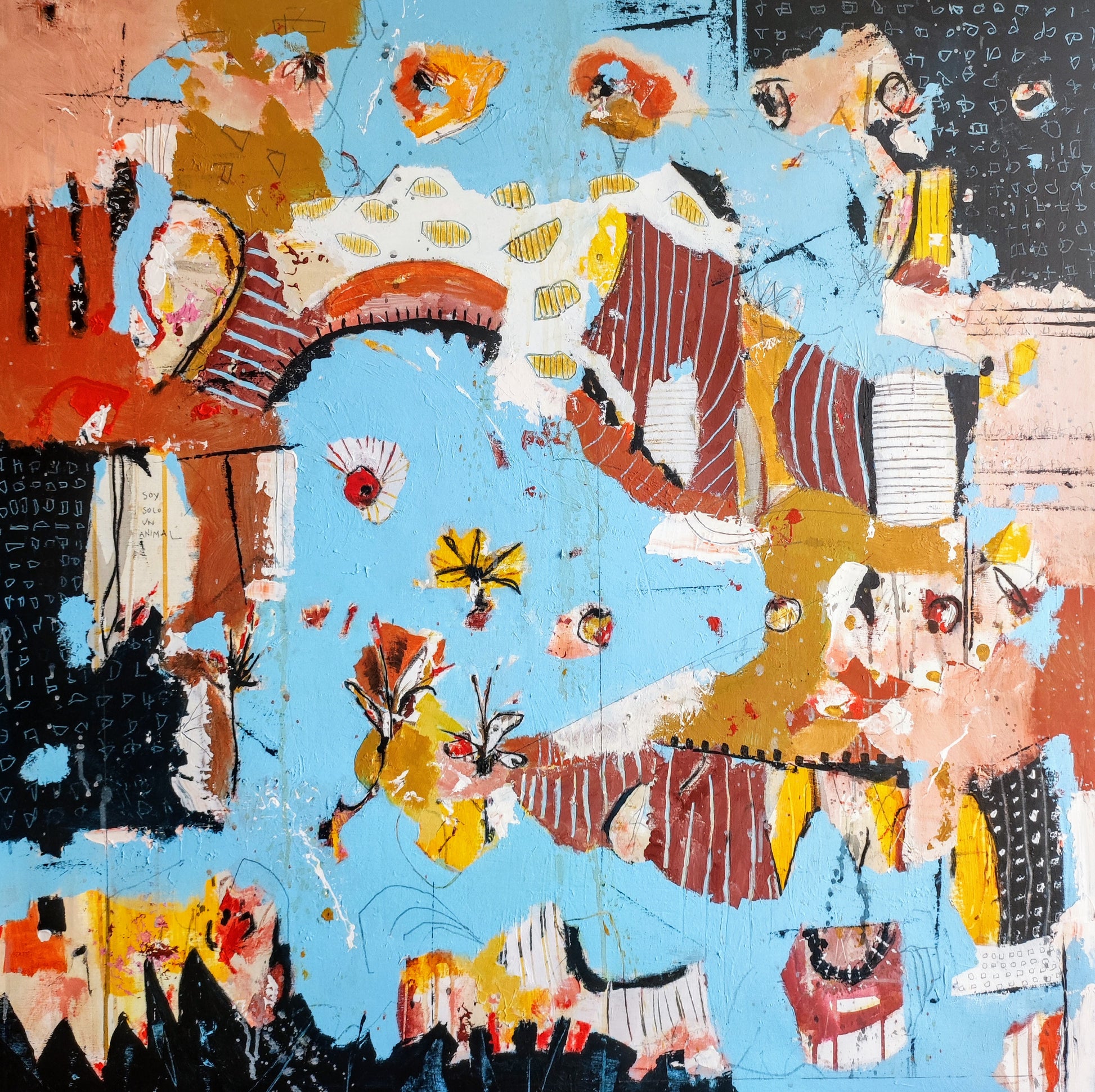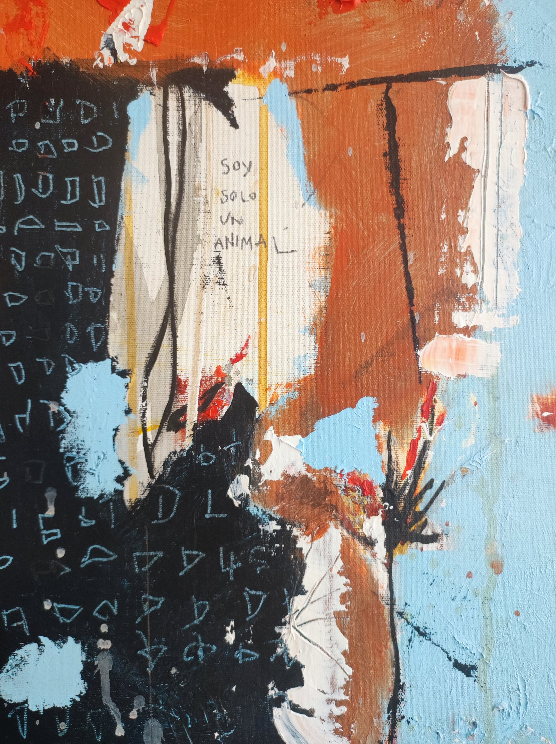 Técnica: acrílico, tinta china, gesso, carboncillo y lápiz.