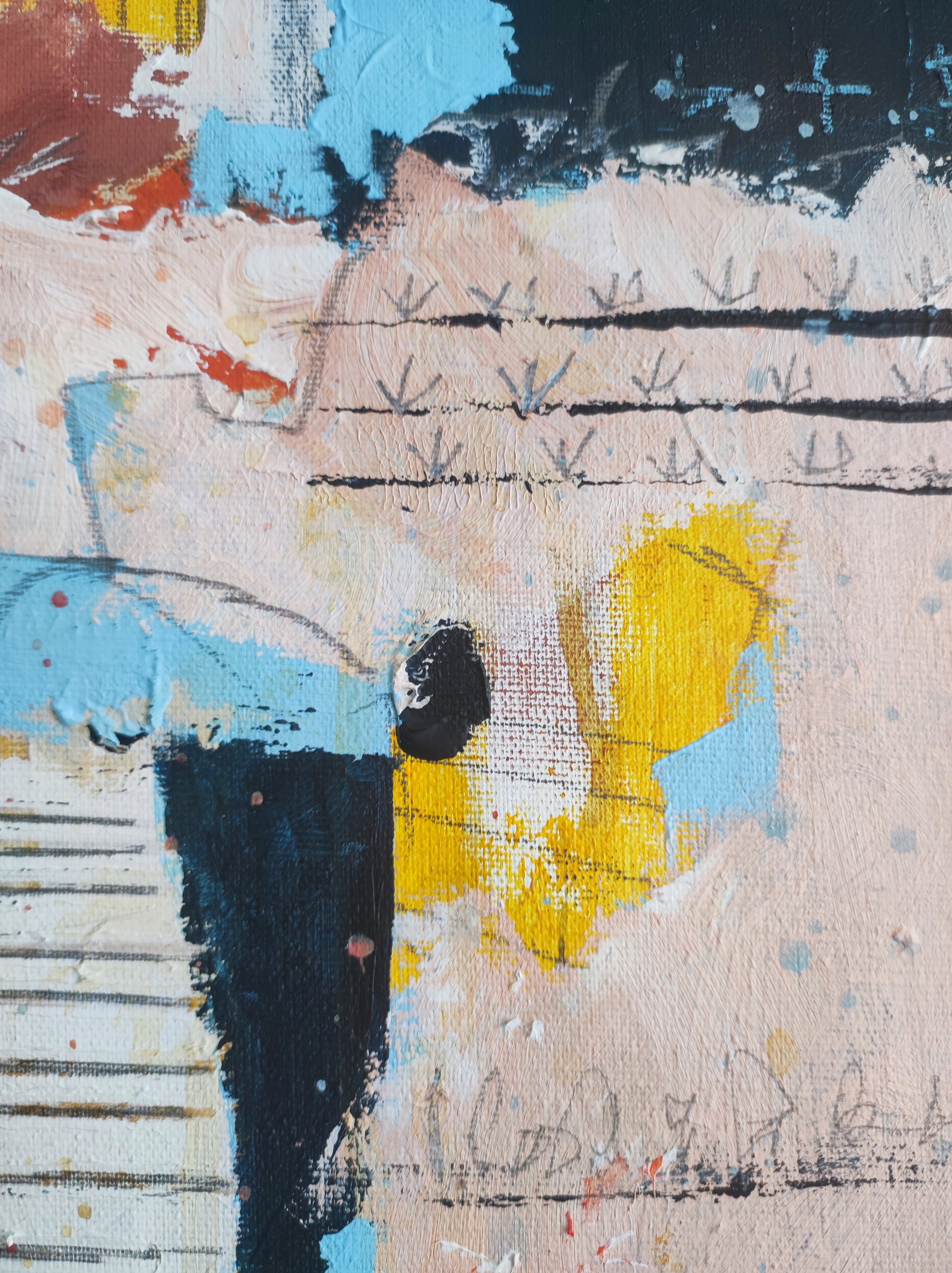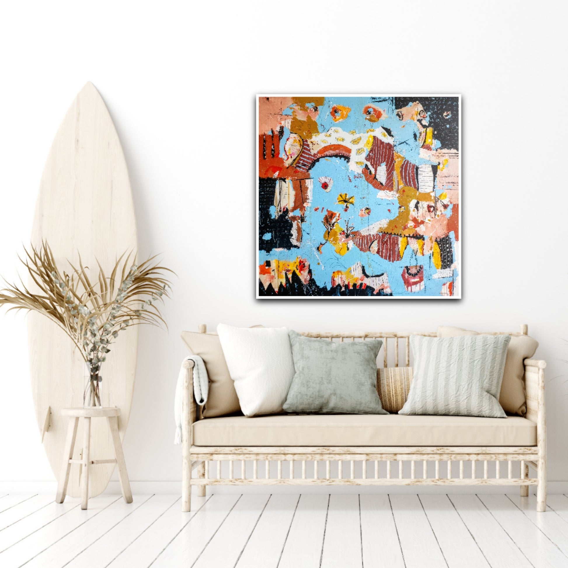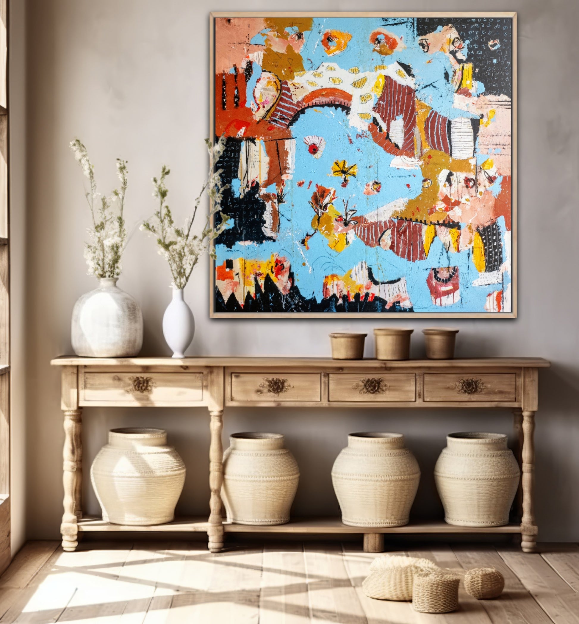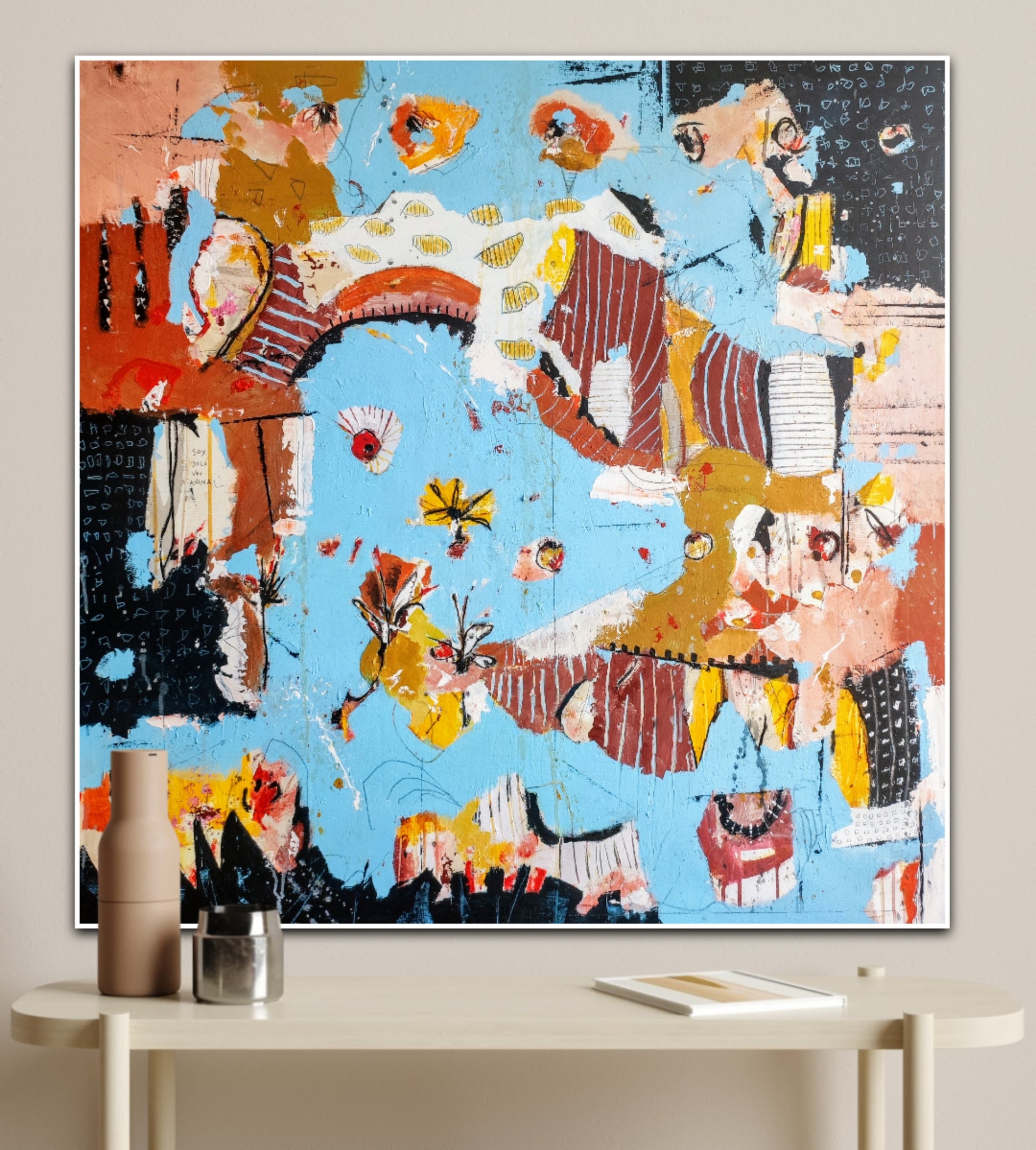Técnica: acrílico, tinta china, gesso, carboncillo y lápiz.