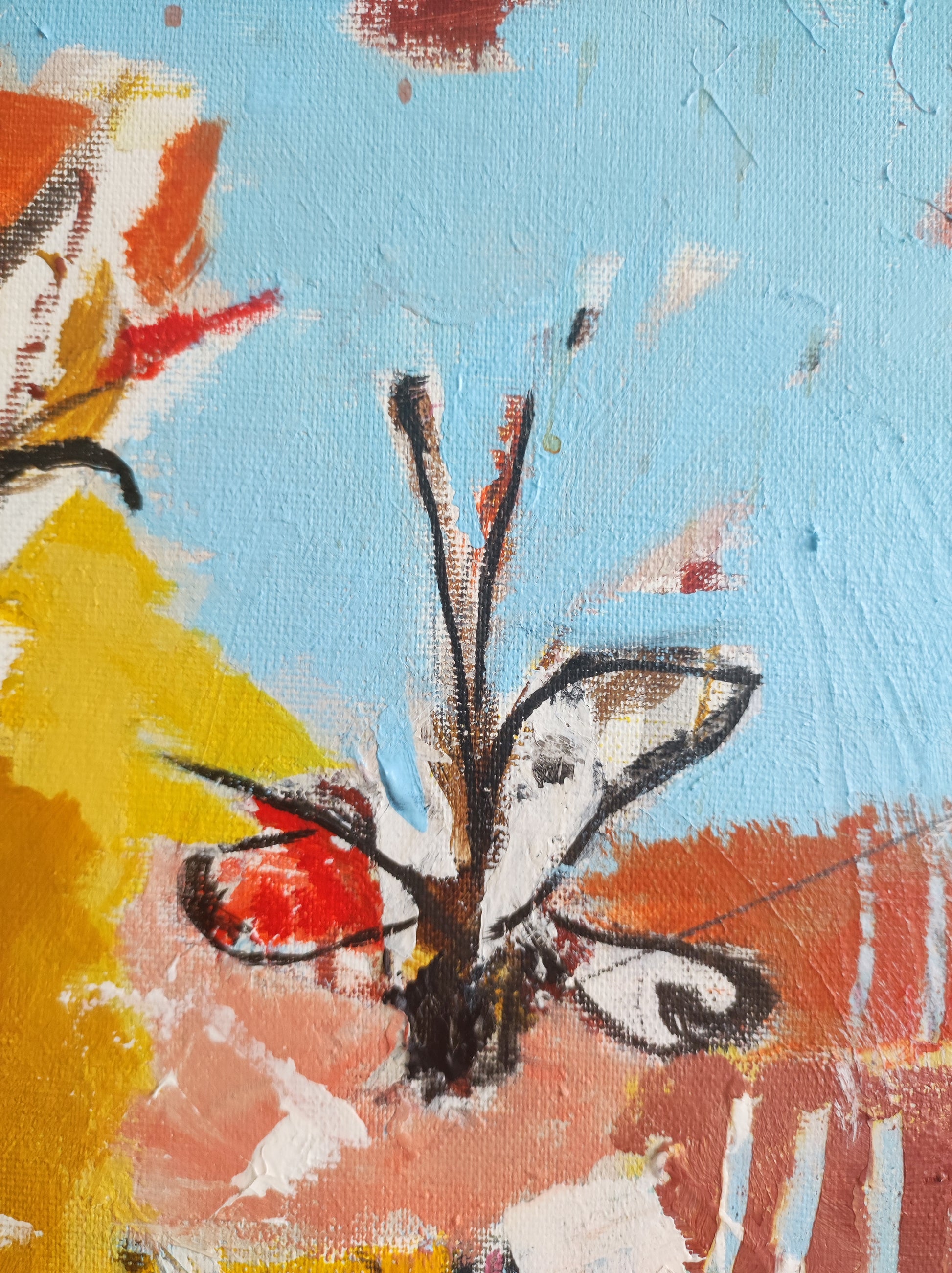 Pintura gestual, intuitiva, que deja que las cosas pasen y se apoya sobre lo que aparece. Aprovechando el accidente y aceptando las consecuencias.