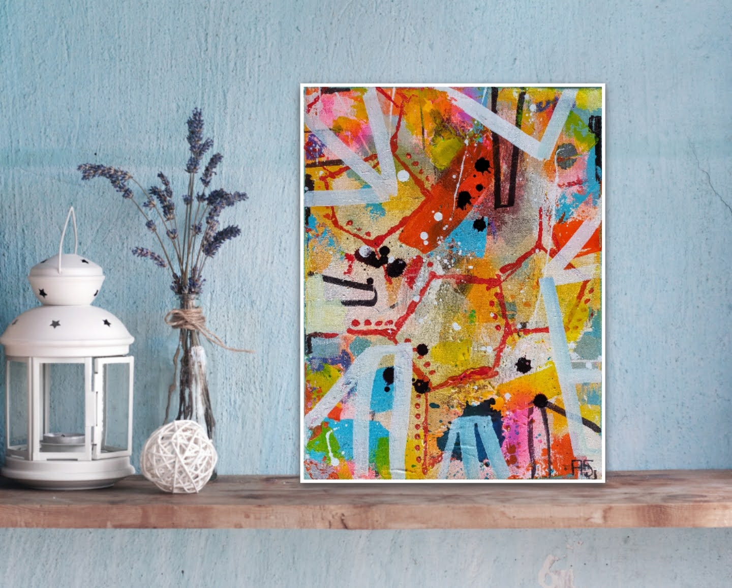 Cuadro trabajado desde la improvisación libre. Action painting con música de Elliot Smith.