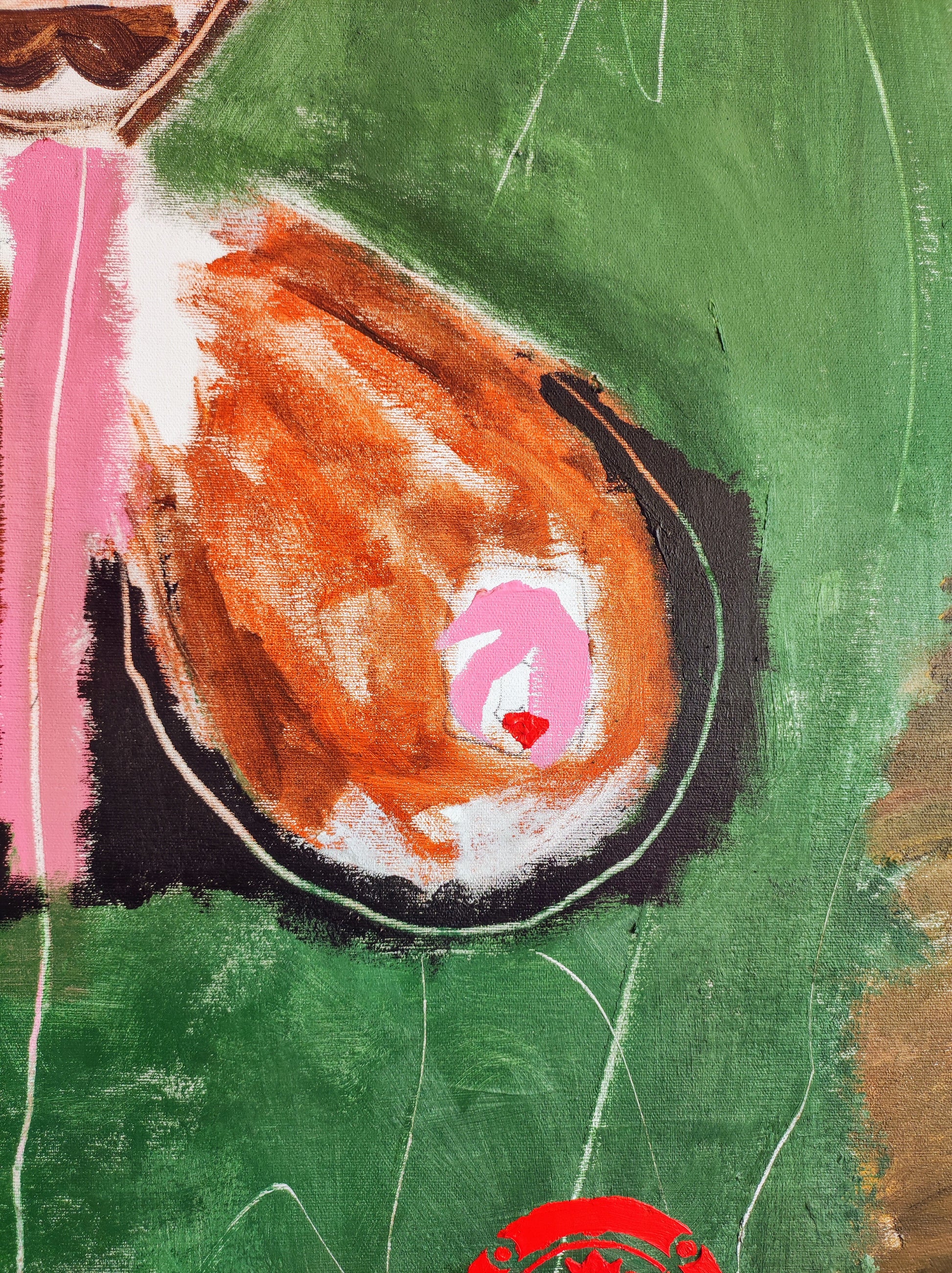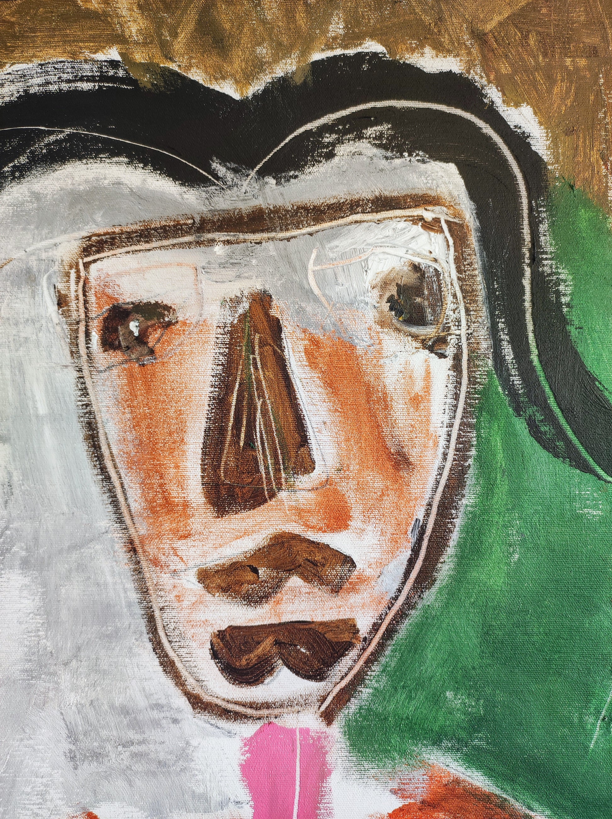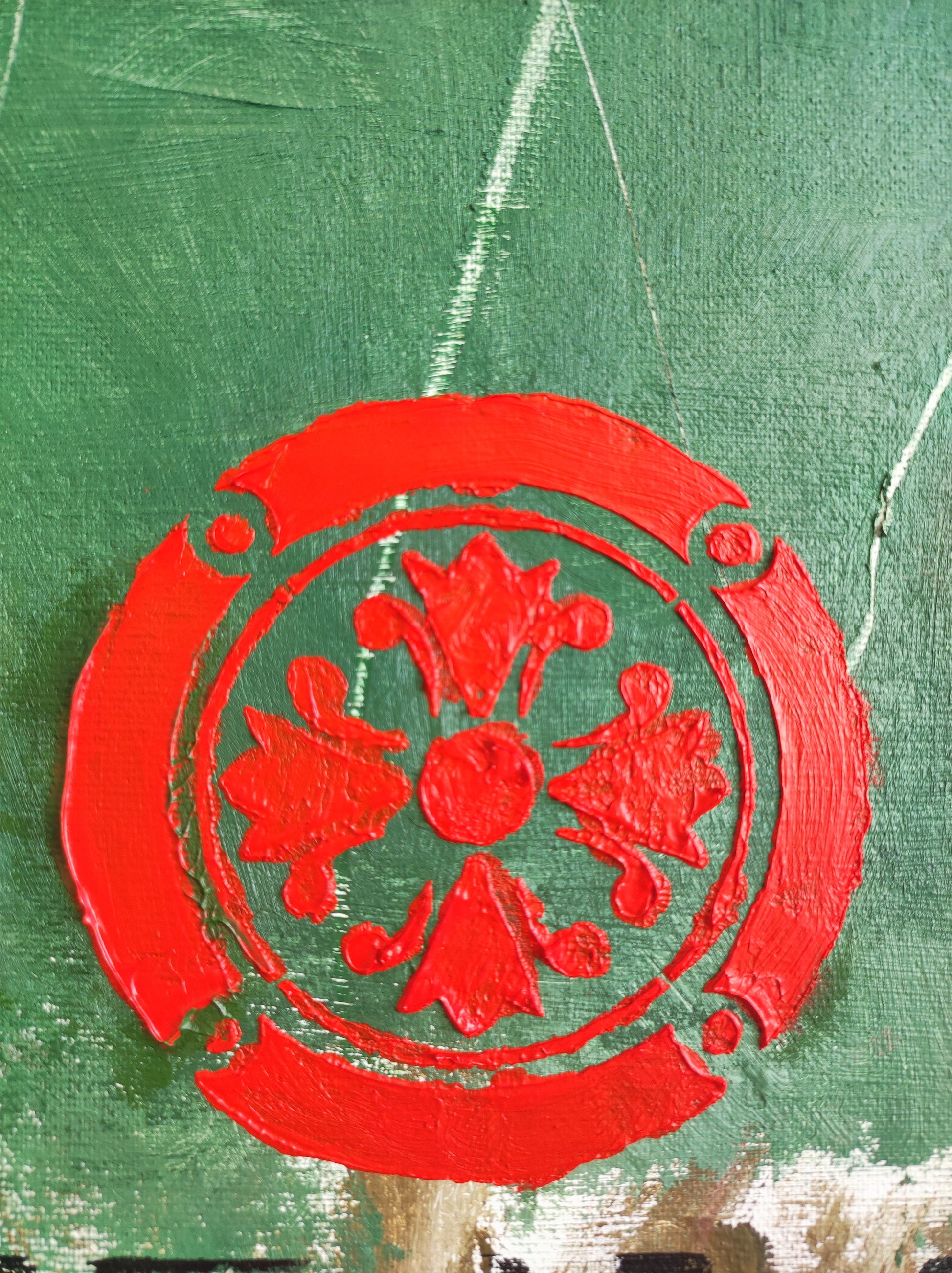 Pintura gestual, intuitiva, que deja que las cosas pasen y se apoya sobre lo que aparece. Aprovechando el accidente y aceptando las consecuencias.