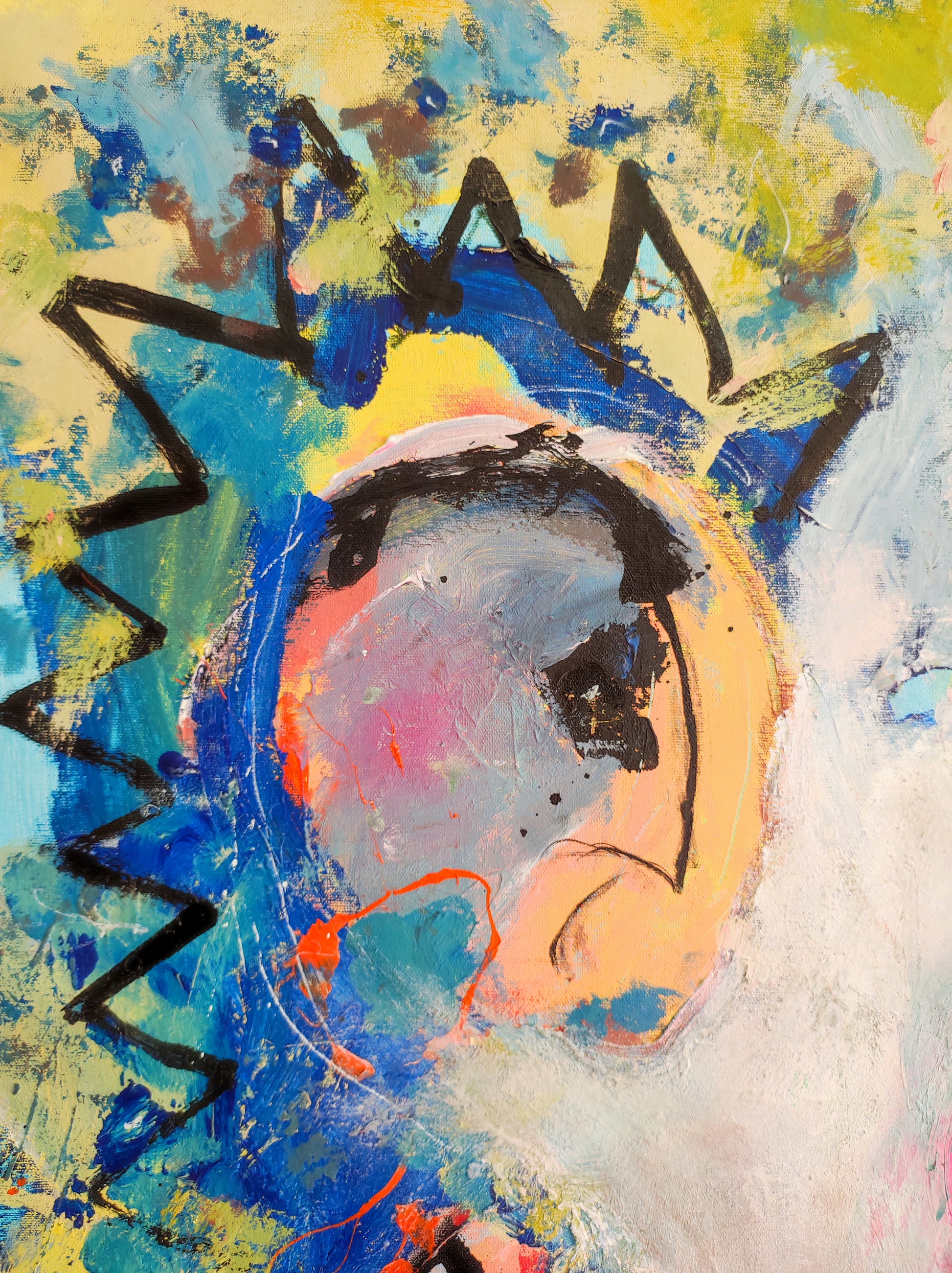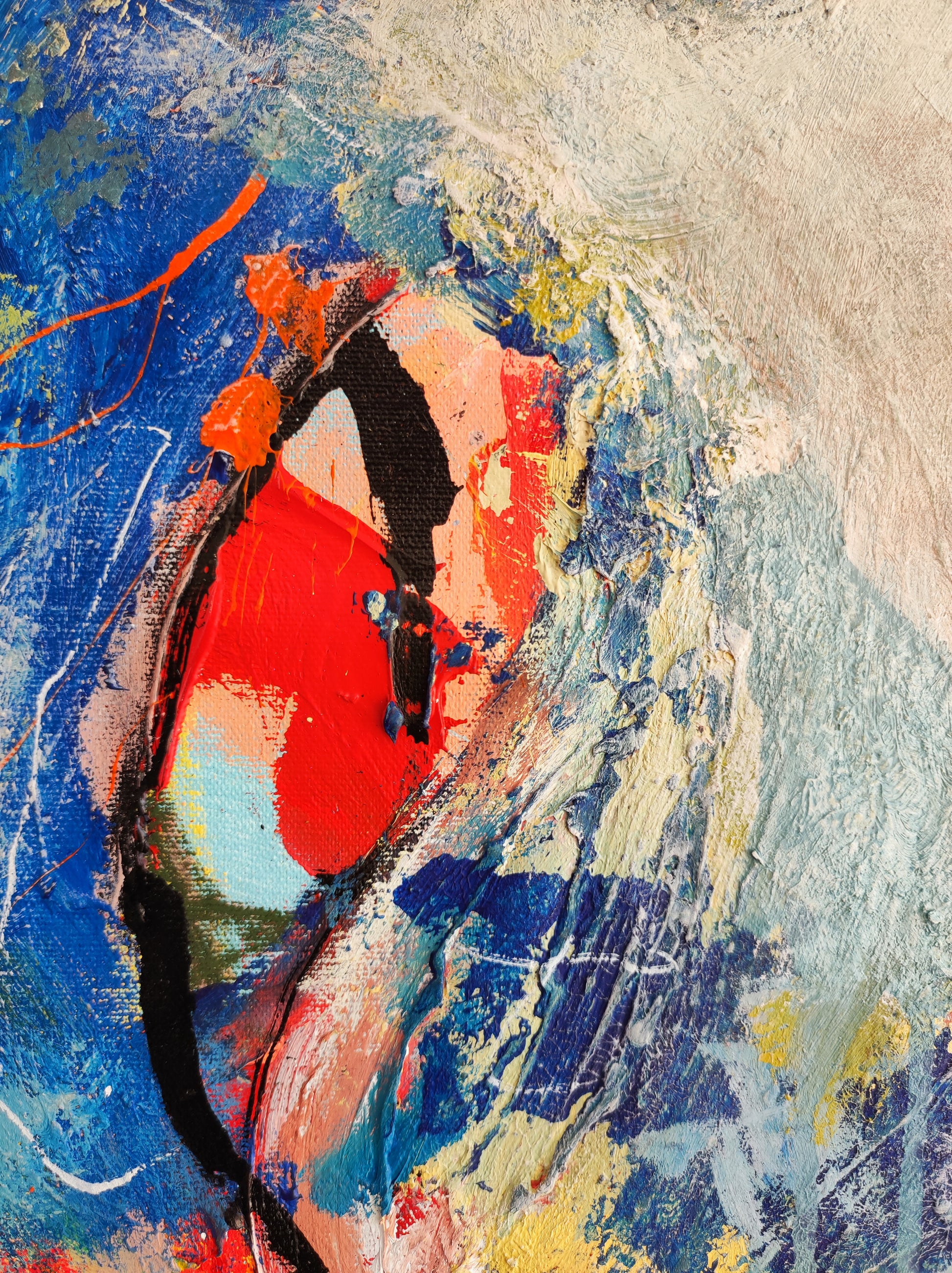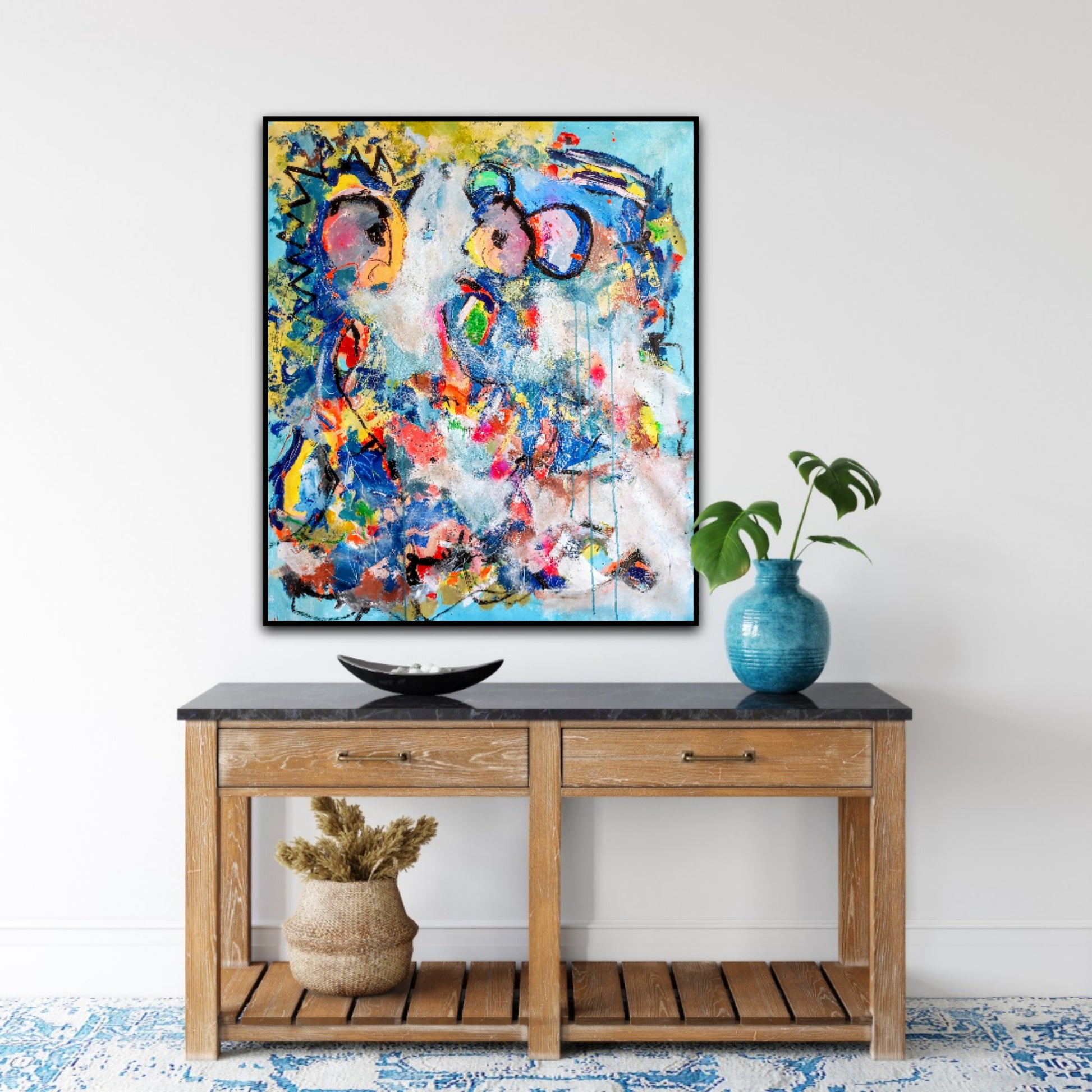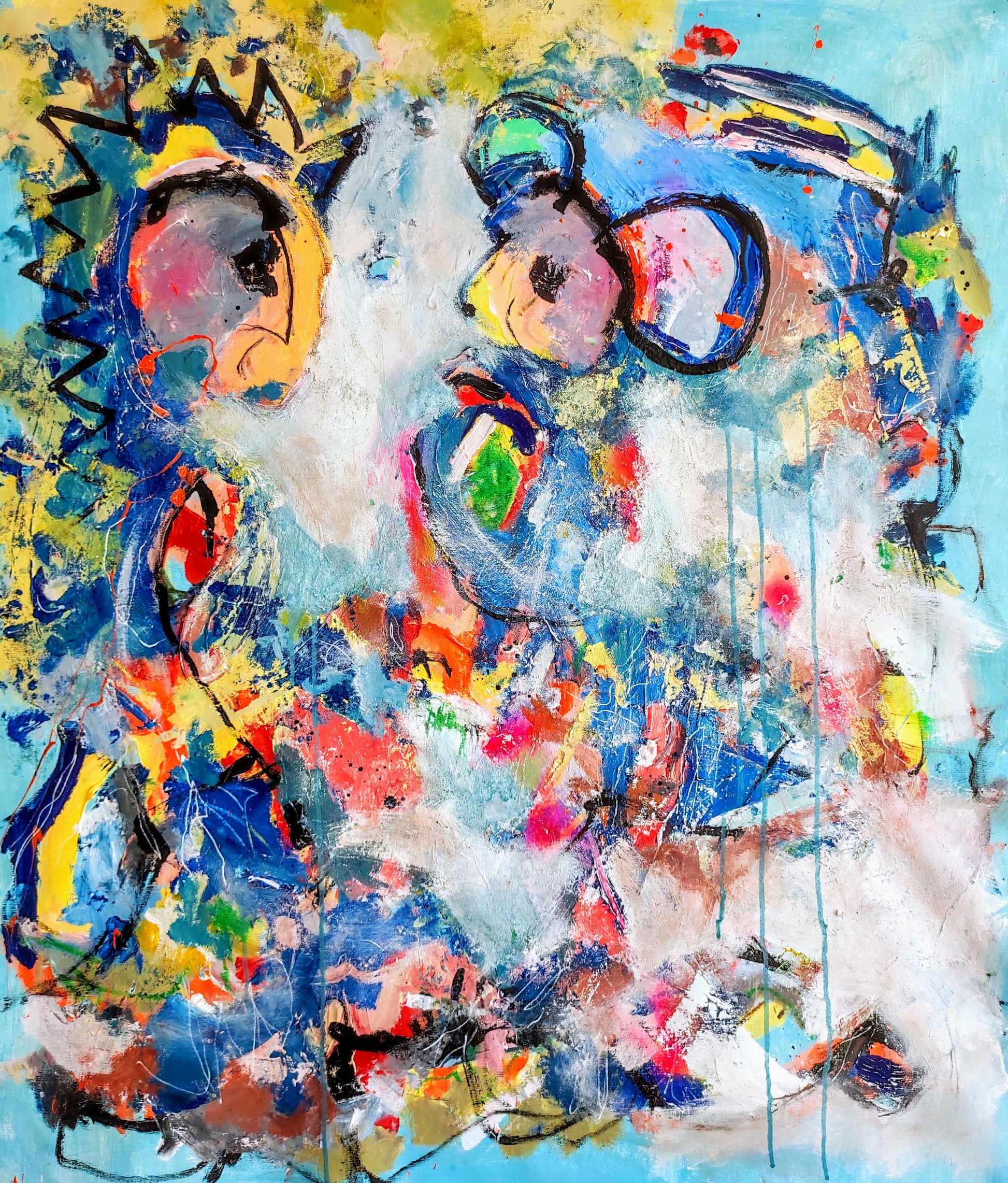 Técnica: mixed media: acrílico, pigmentos, gesso, pintura en spray, tinta china y ceras.