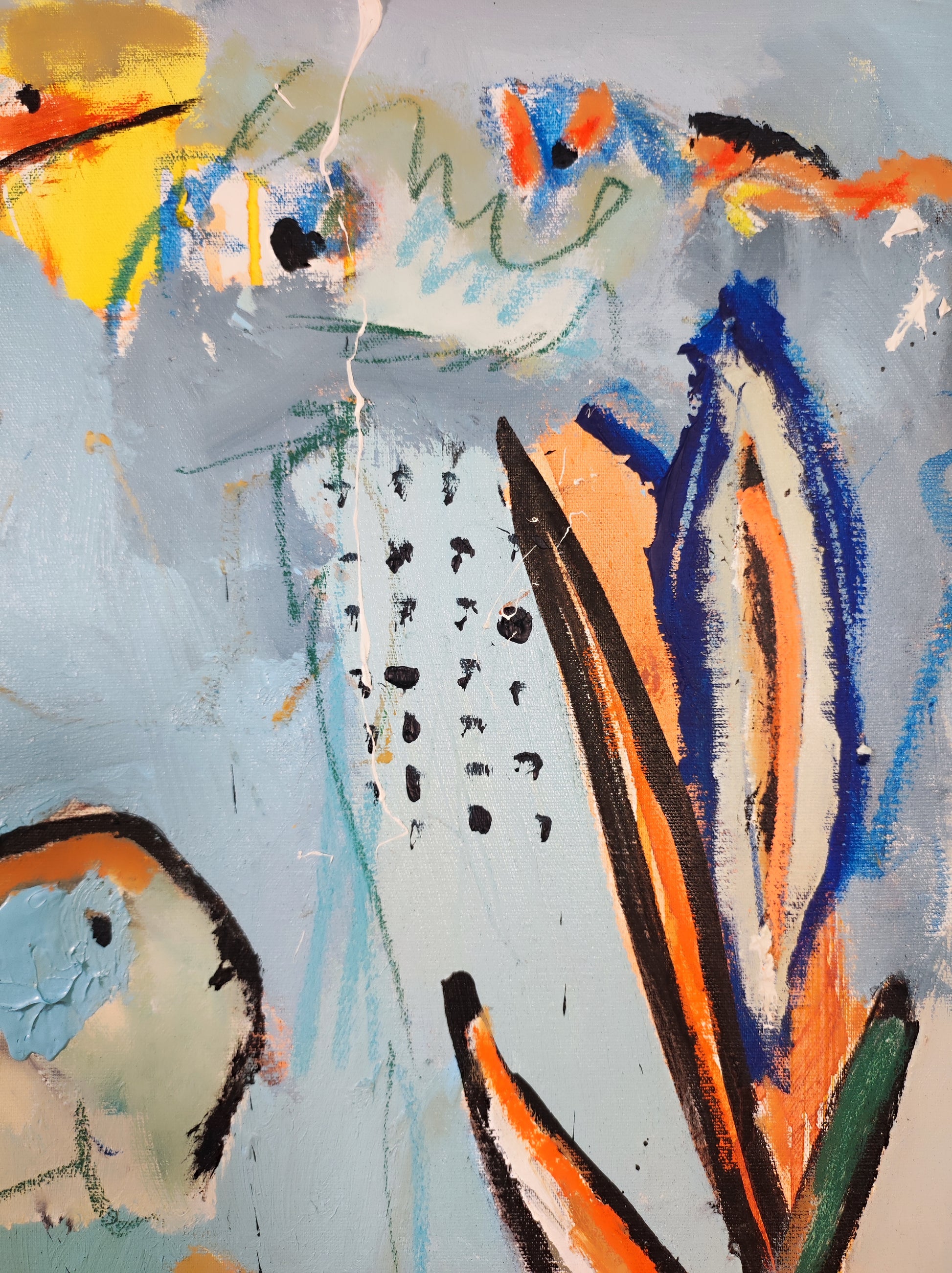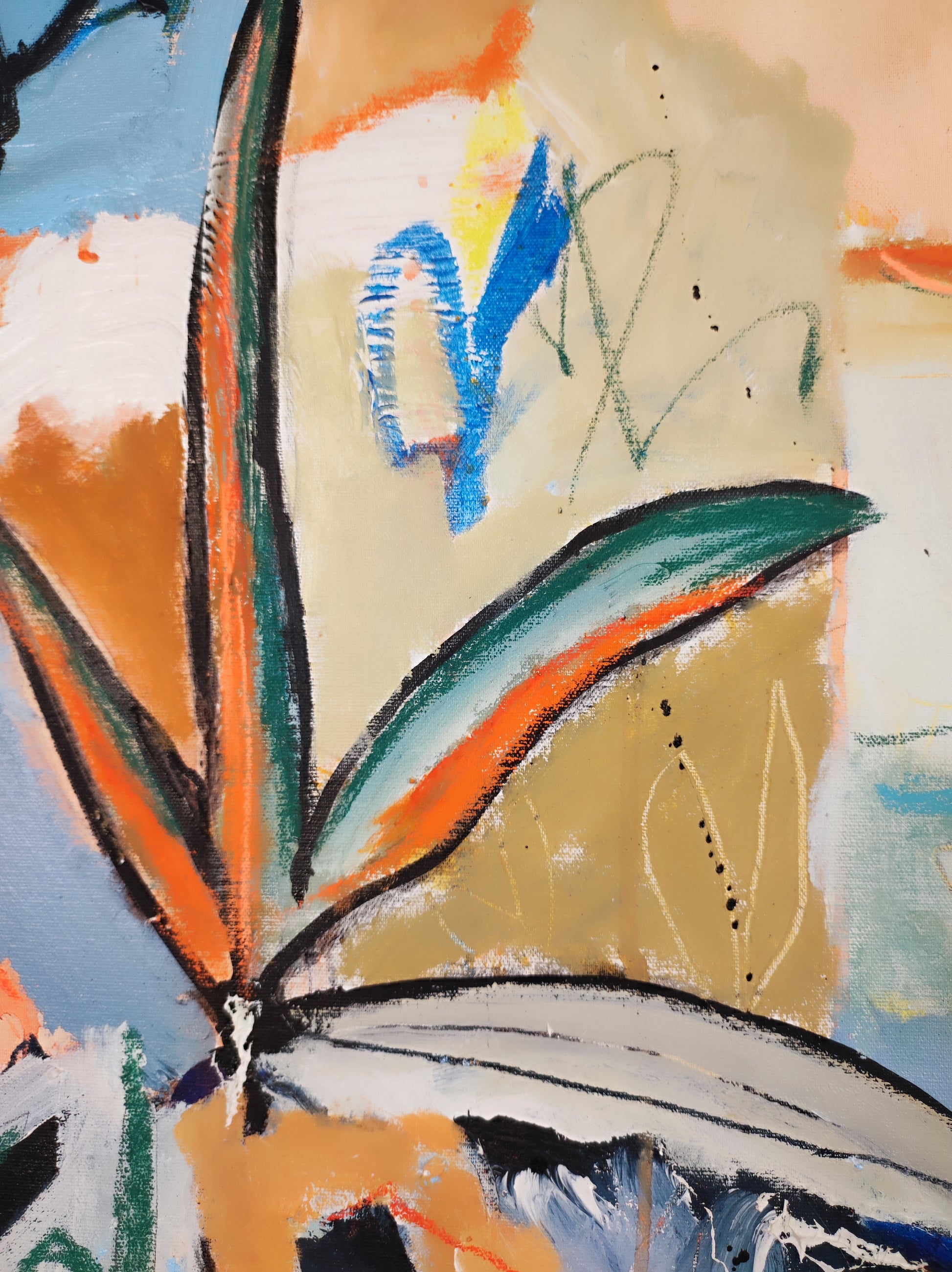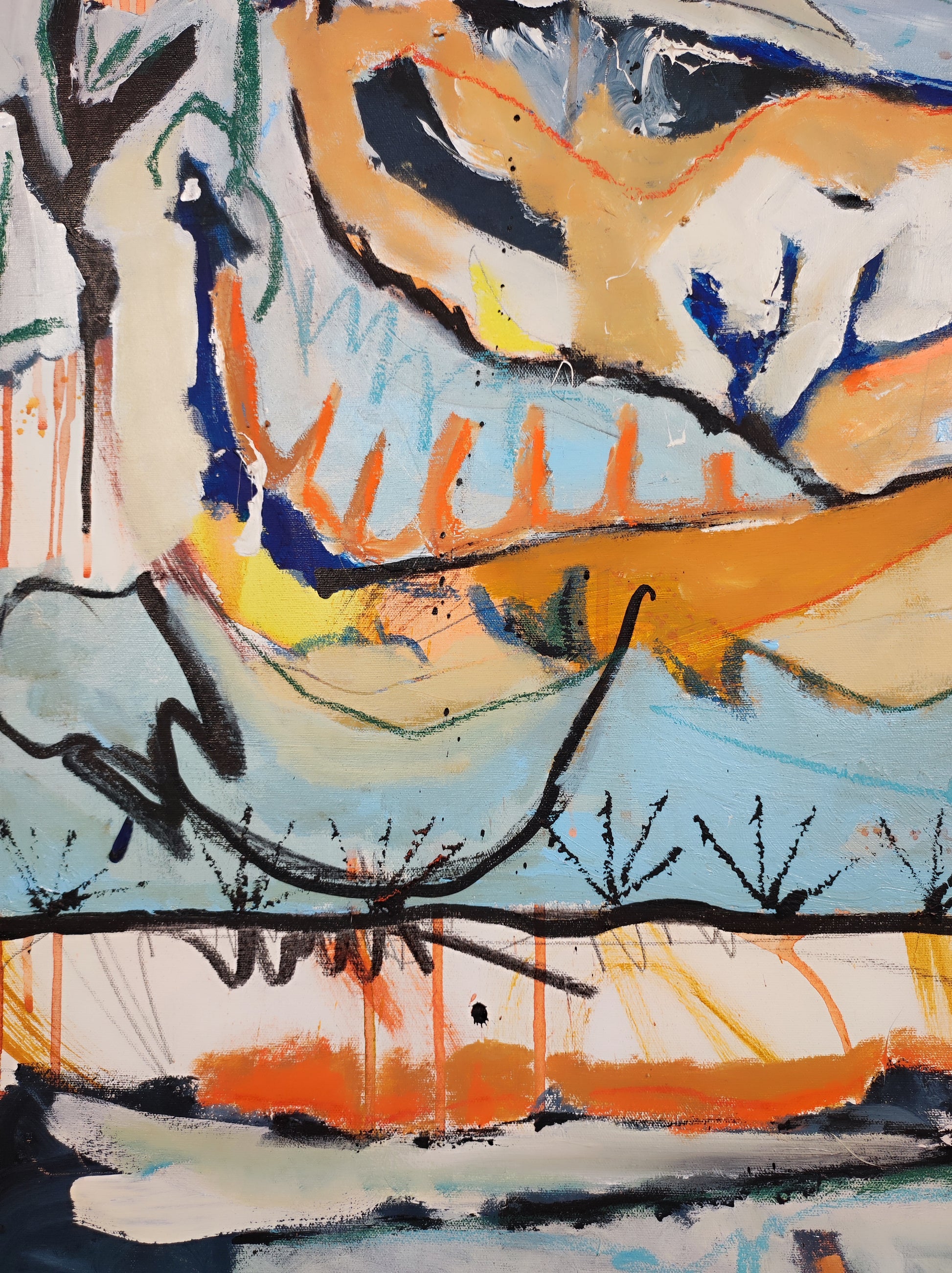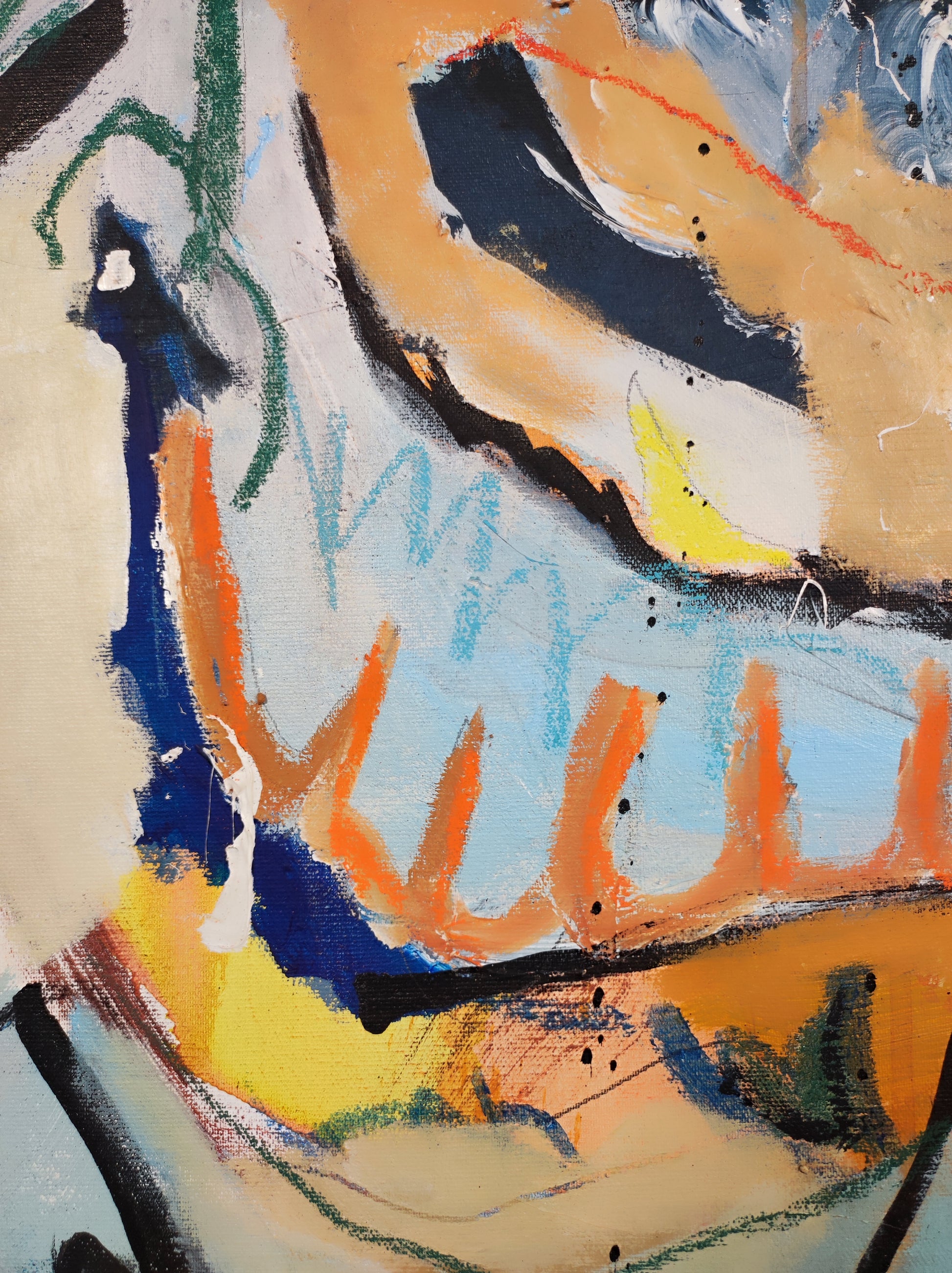 Cuadro trabajado desde la improvisación libre. Action painting con música de Morrisey.