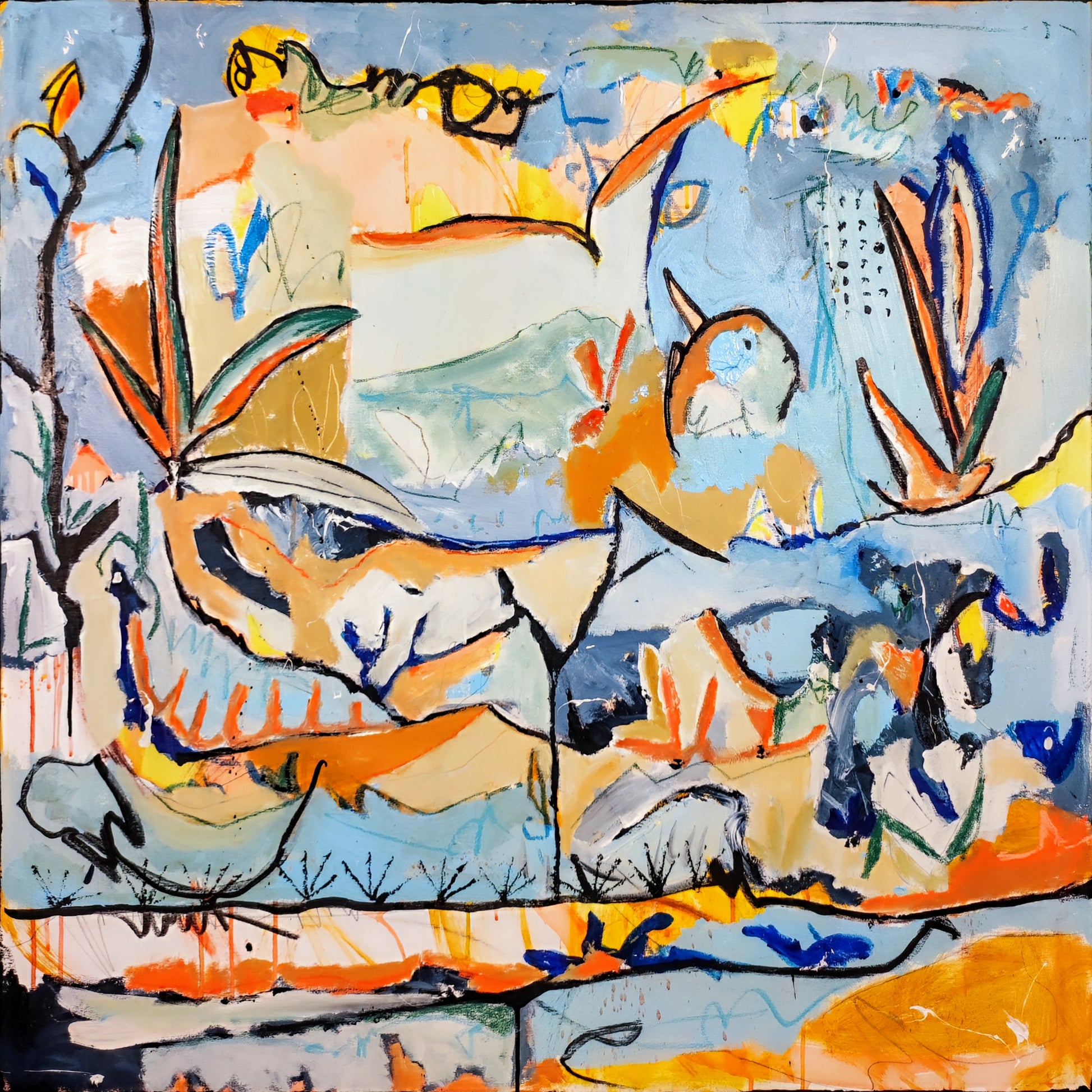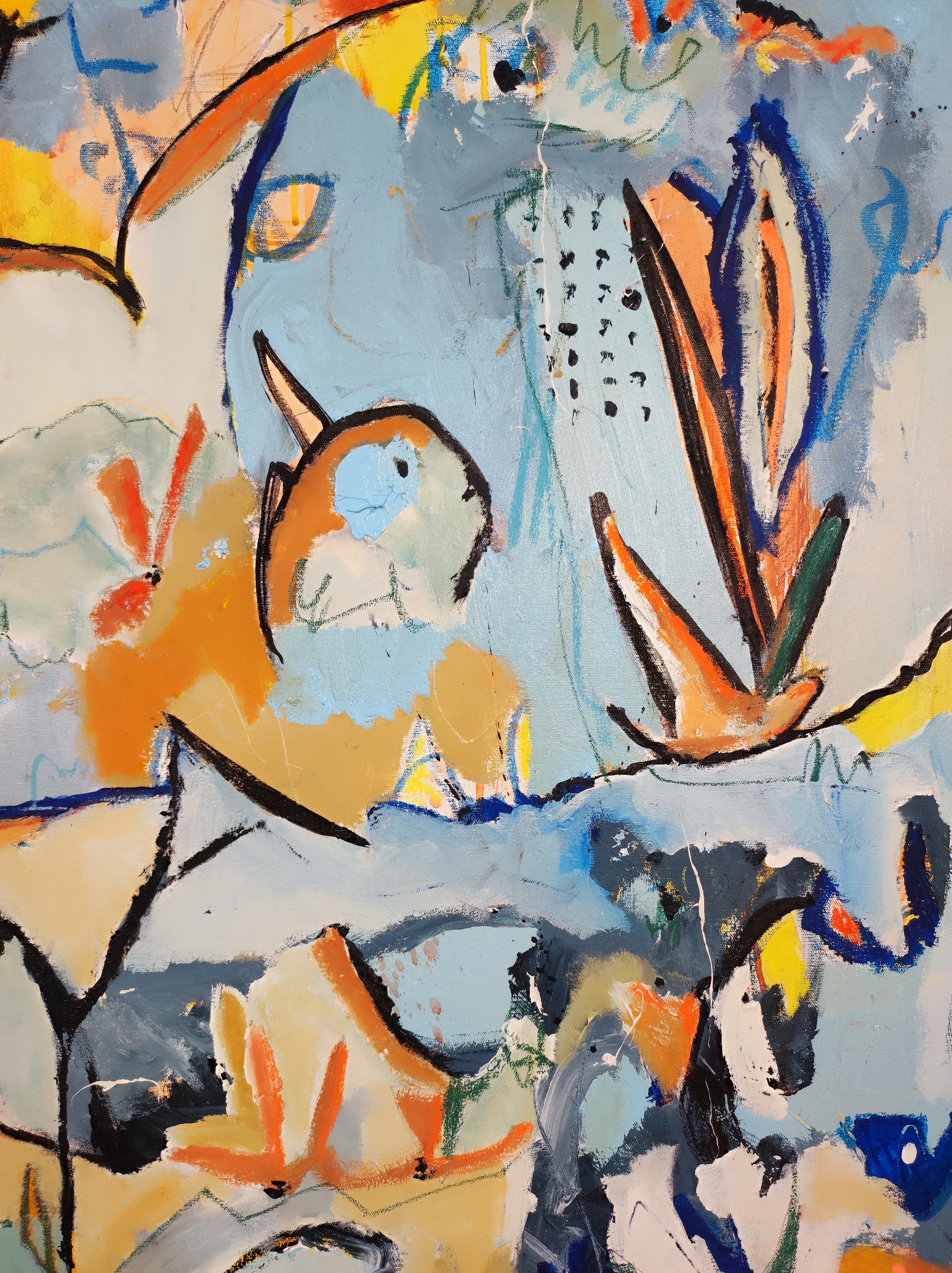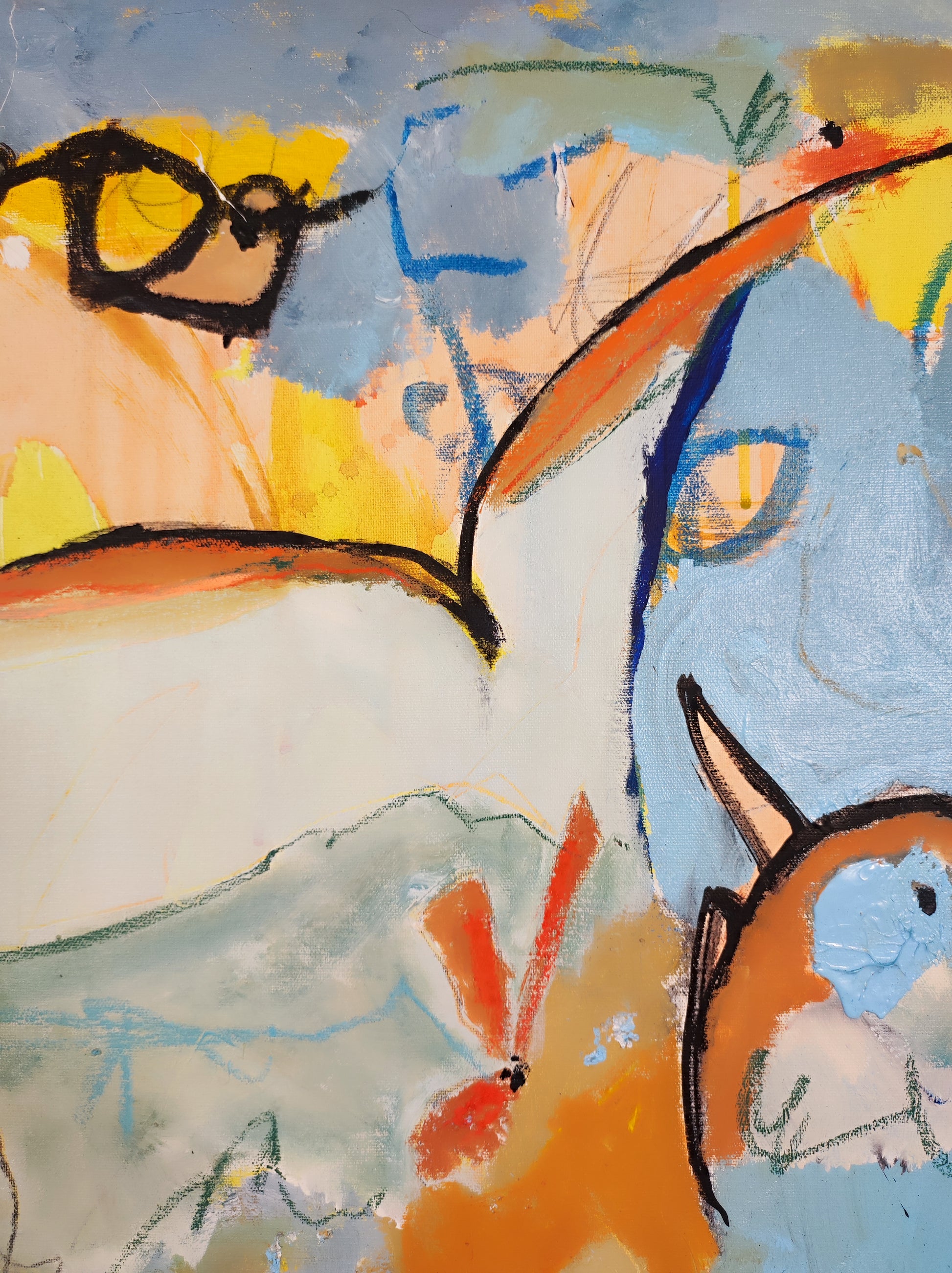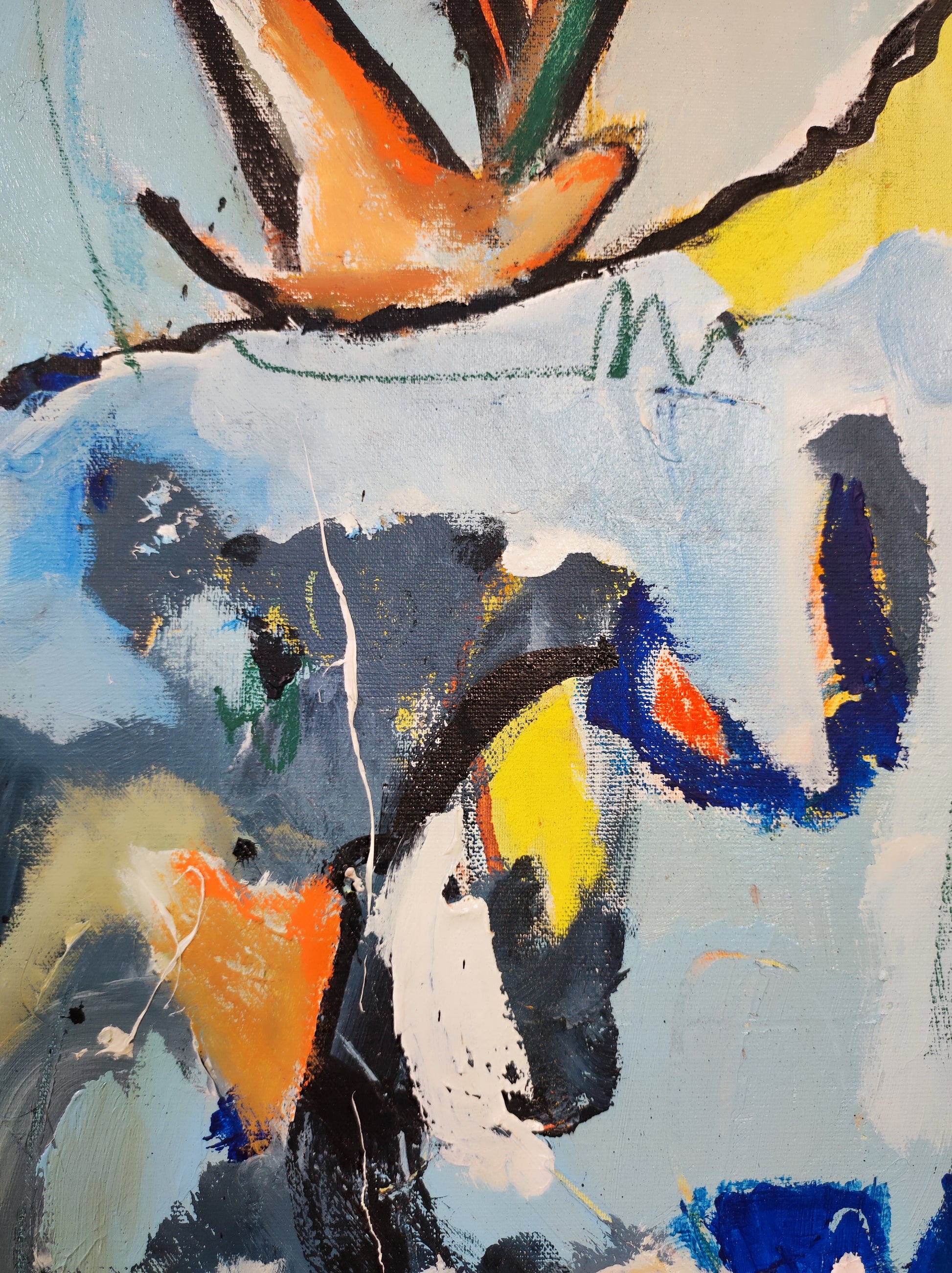 Cuadro trabajado desde la improvisación libre. Action painting con música de Morrisey.