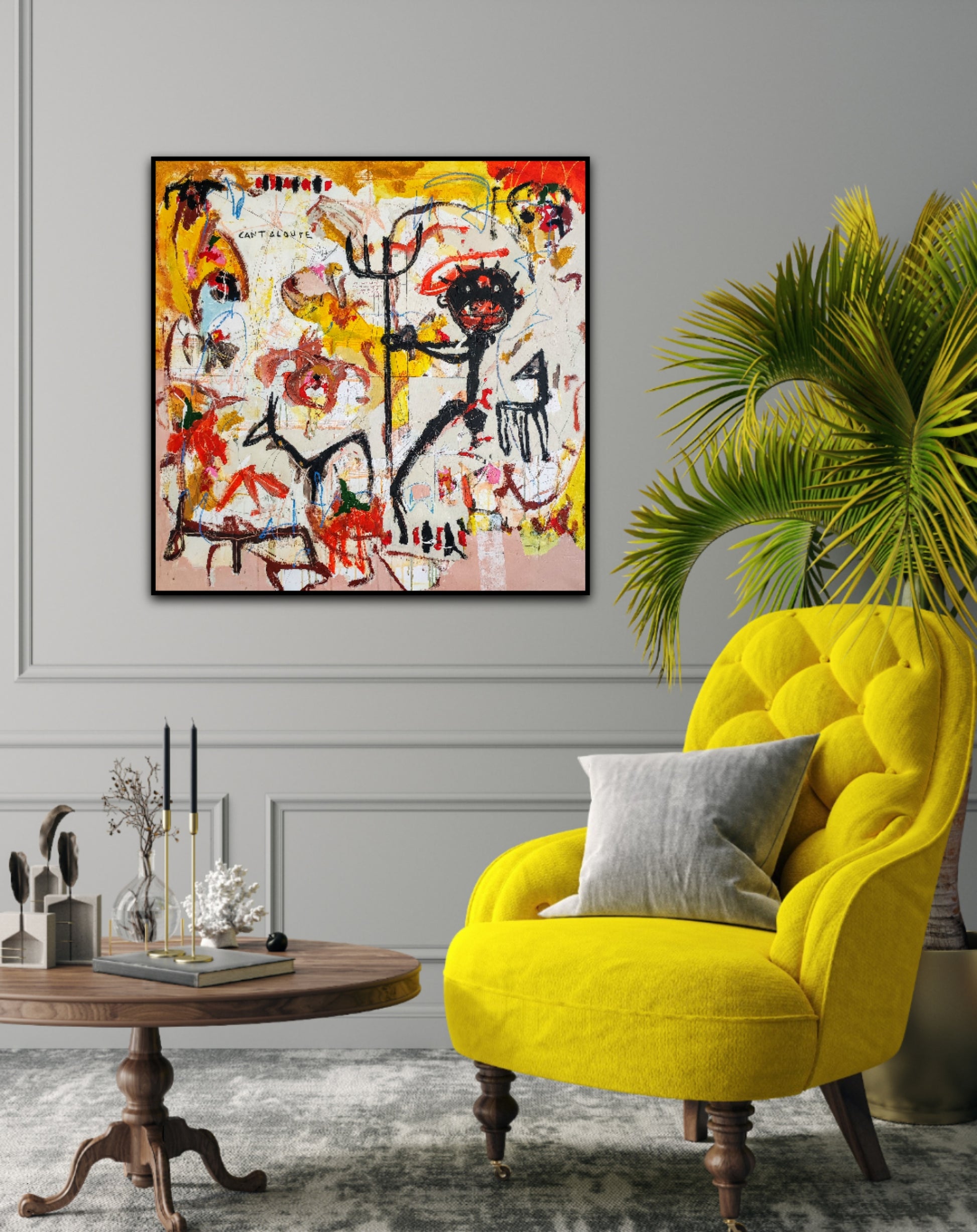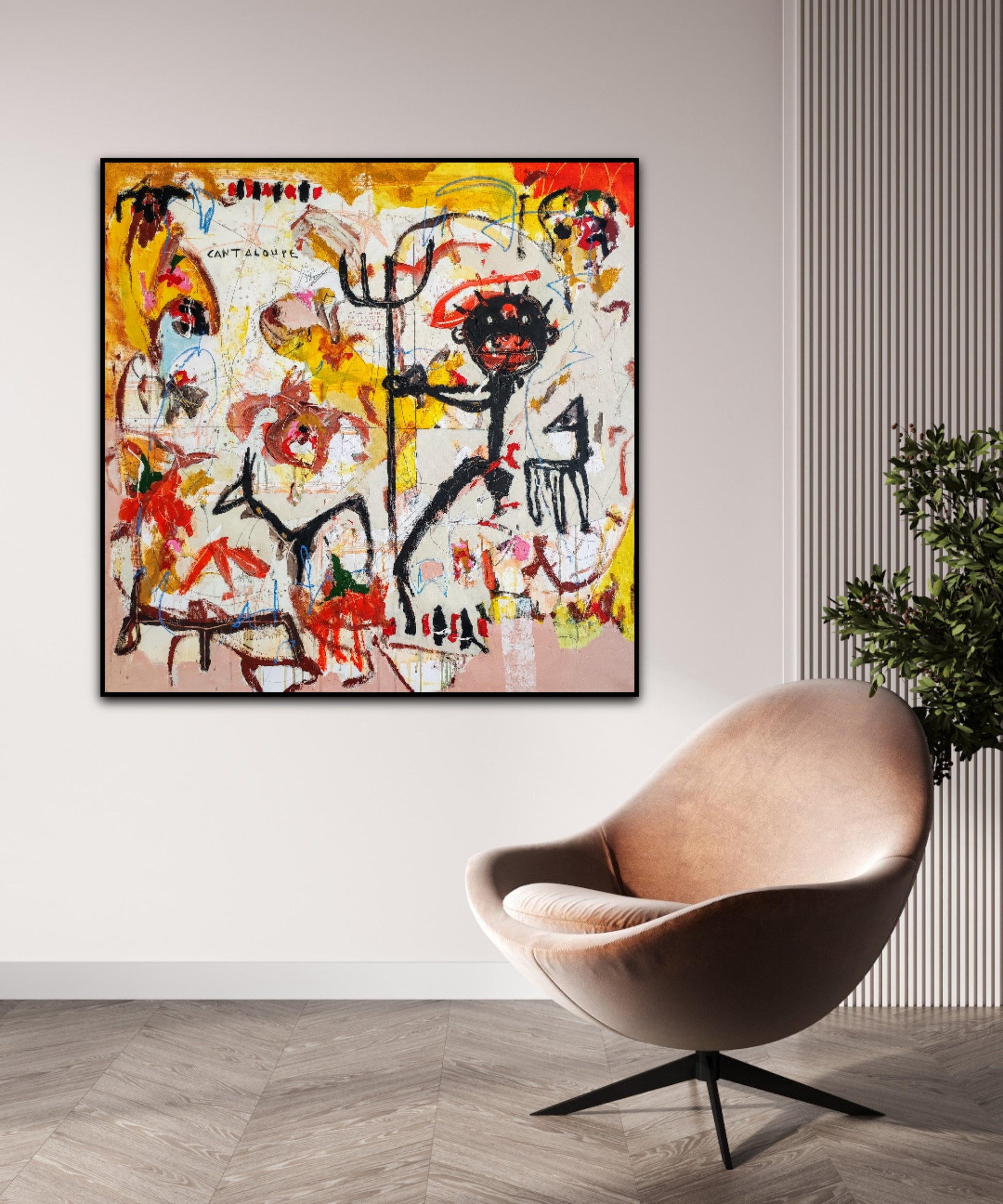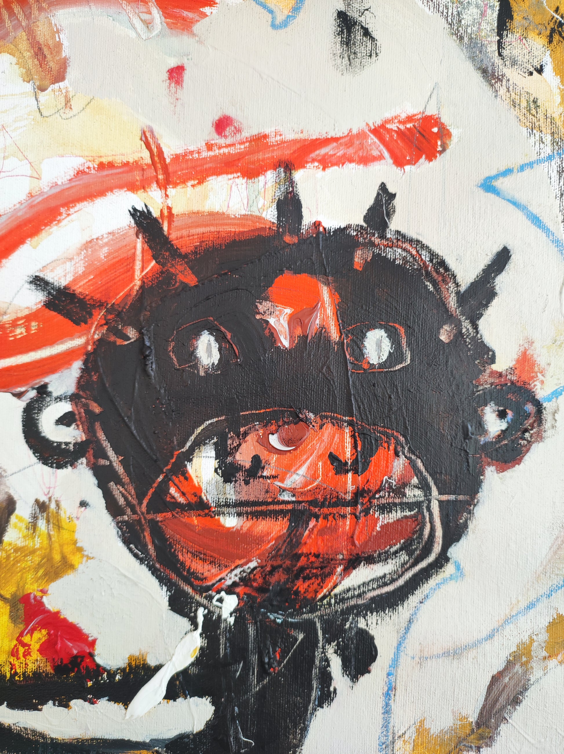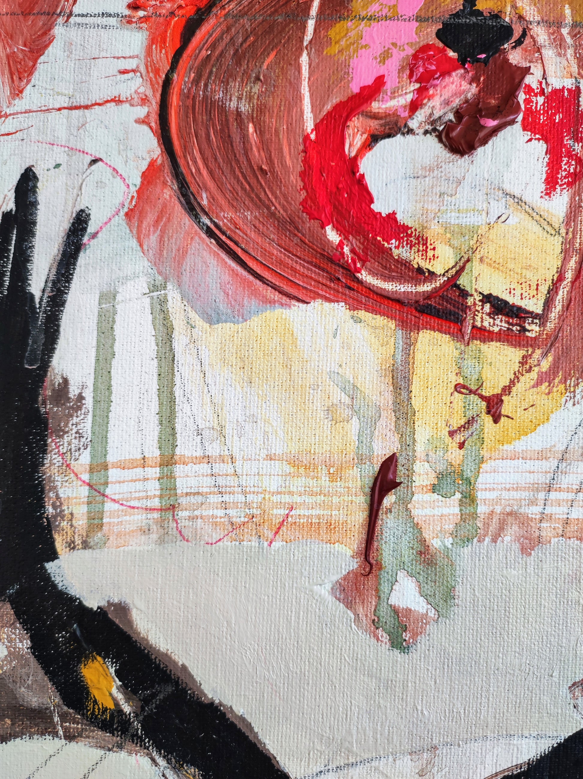 Pintura gestual, intuitiva, que deja que las cosas pasen y se apoya sobre lo que aparece. Aprovechando el accidente y aceptando las consecuencias.