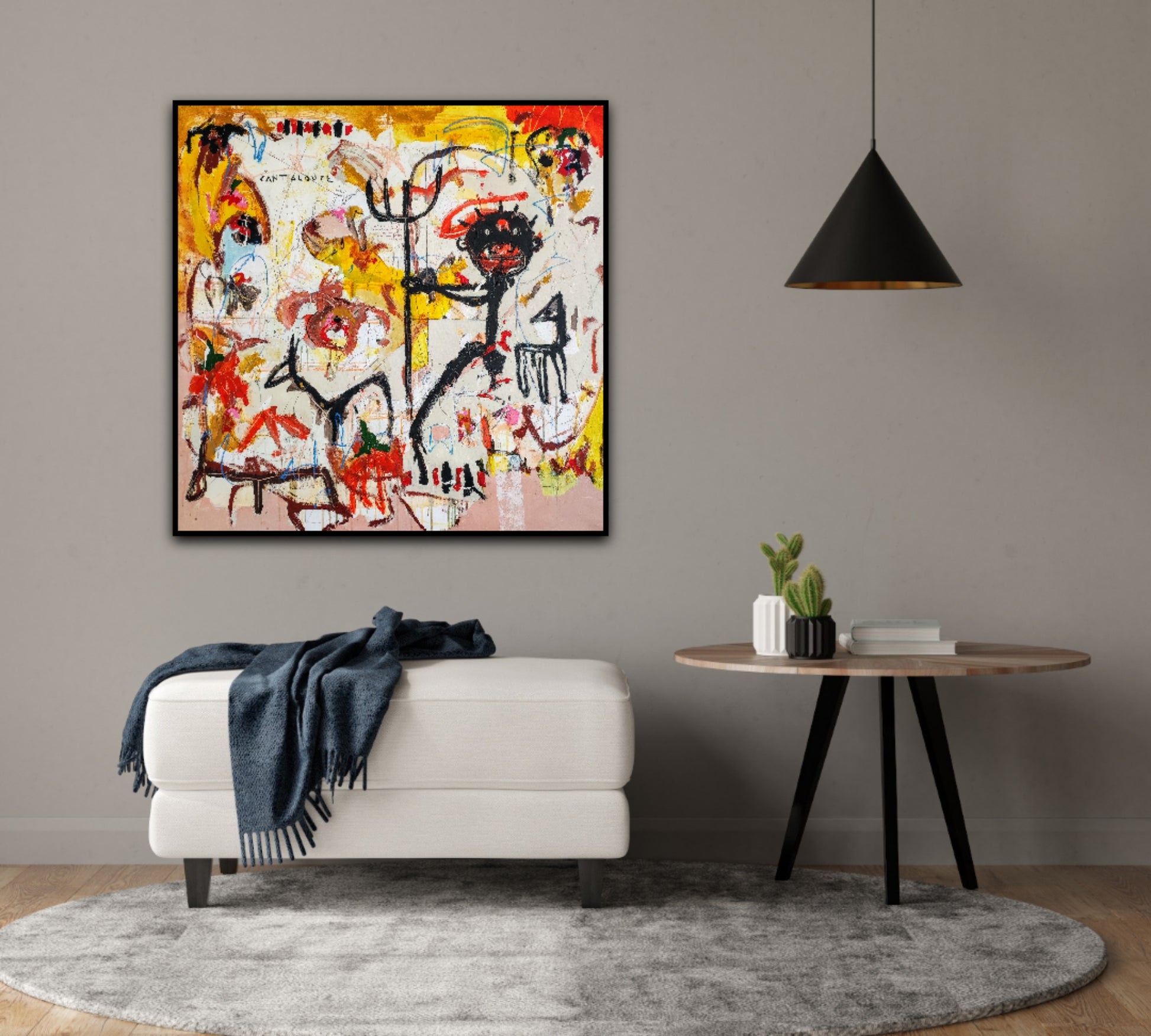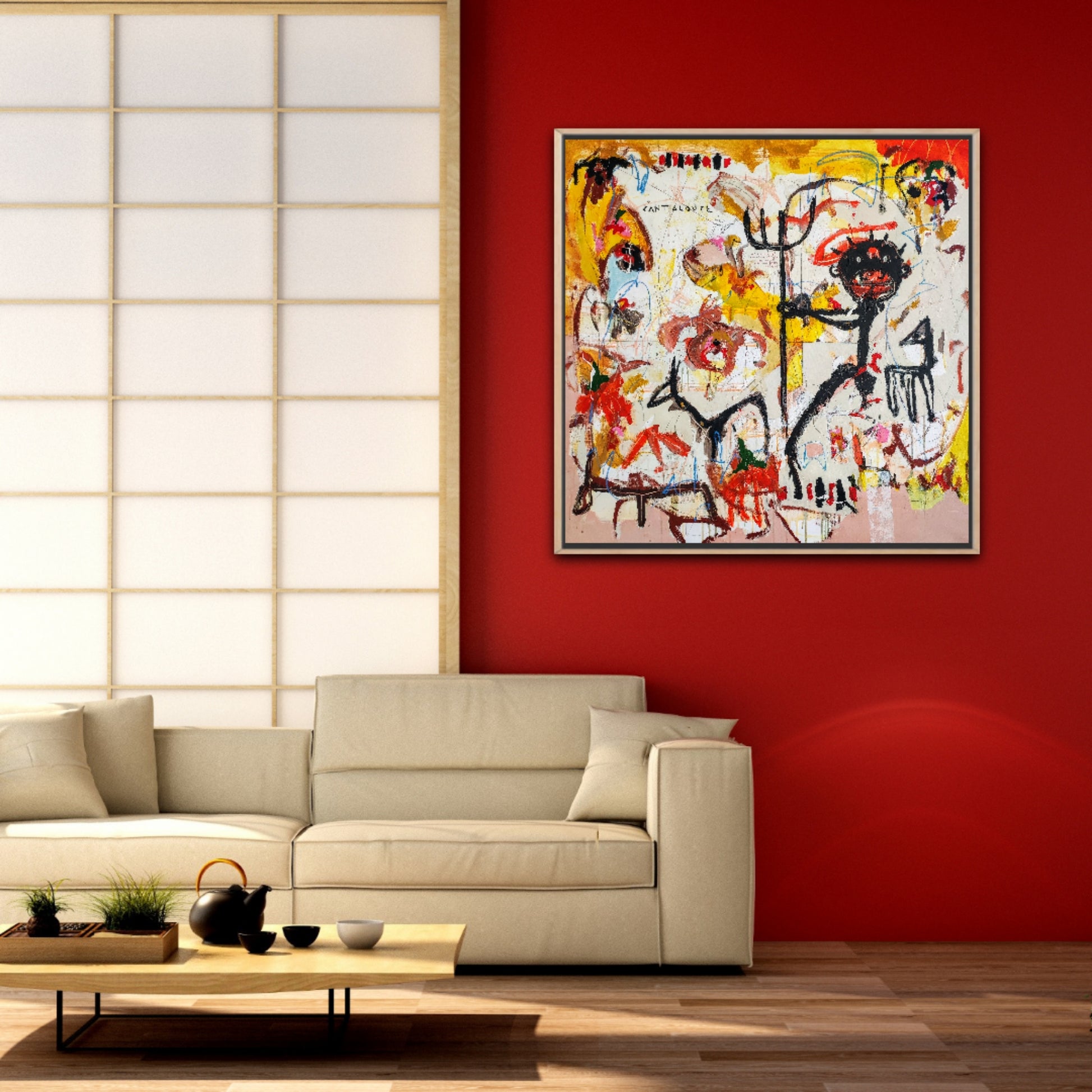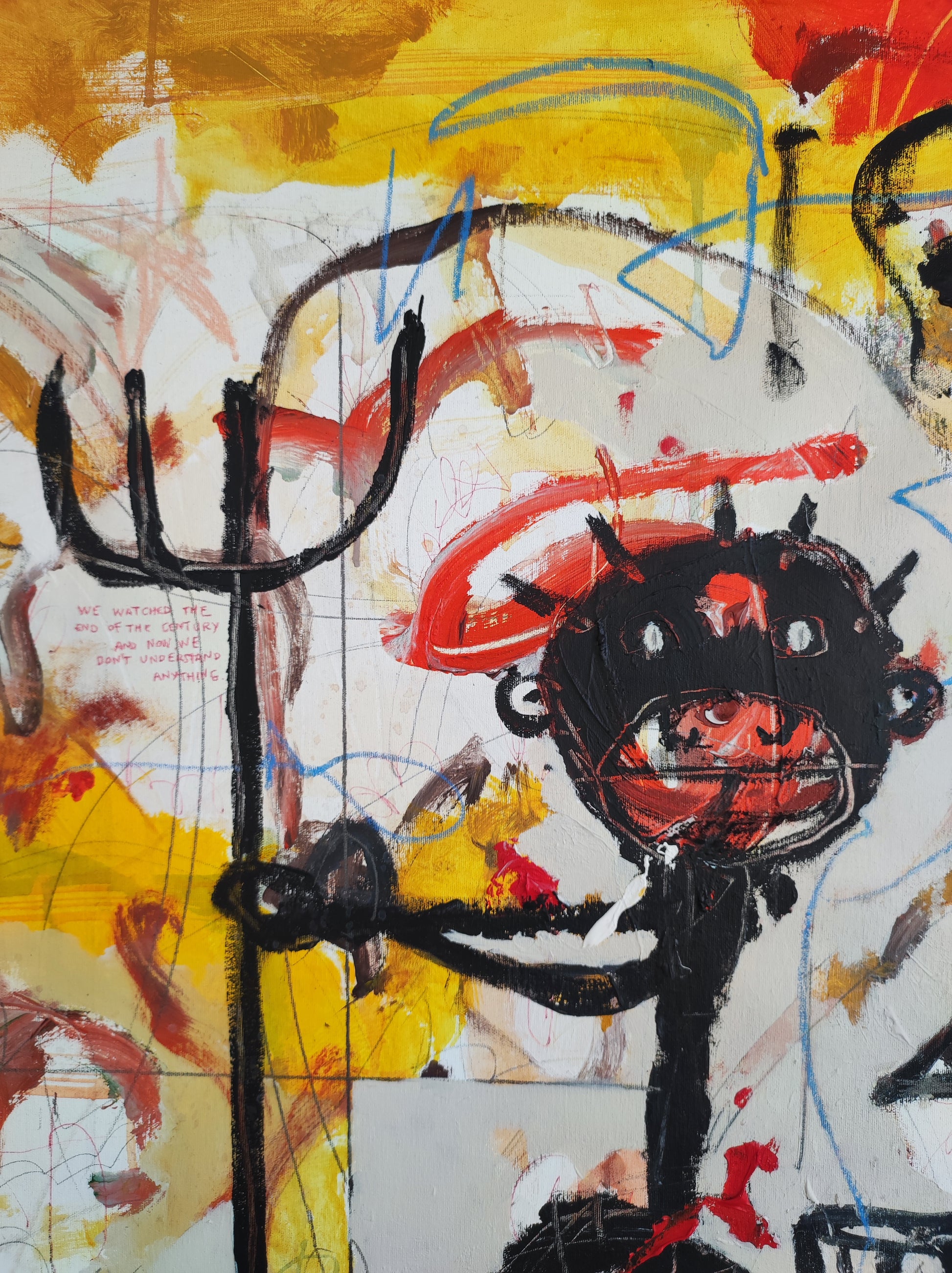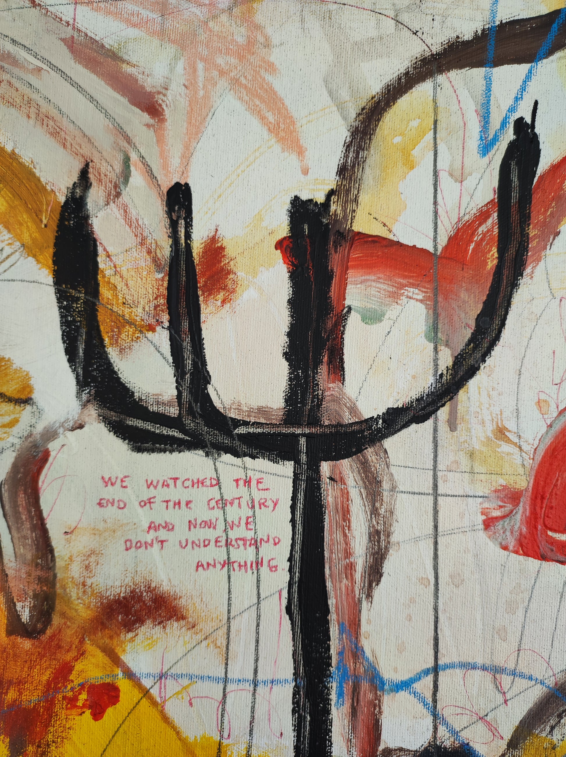 Técnica: acrílico, pigmentos, ceras, carboncillo y lápiz.