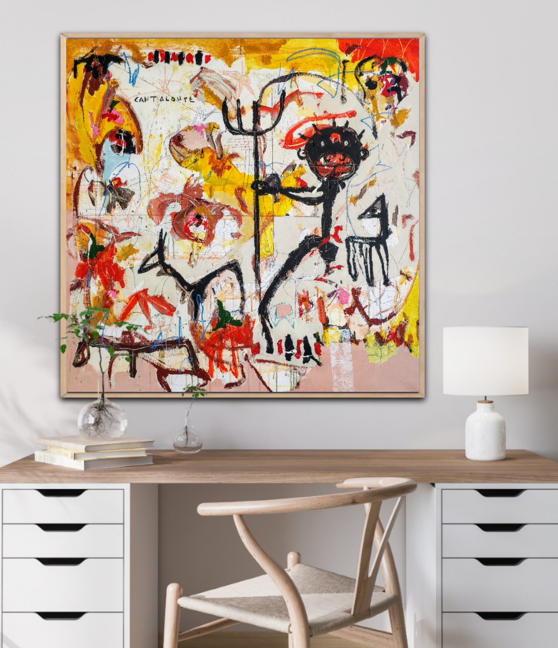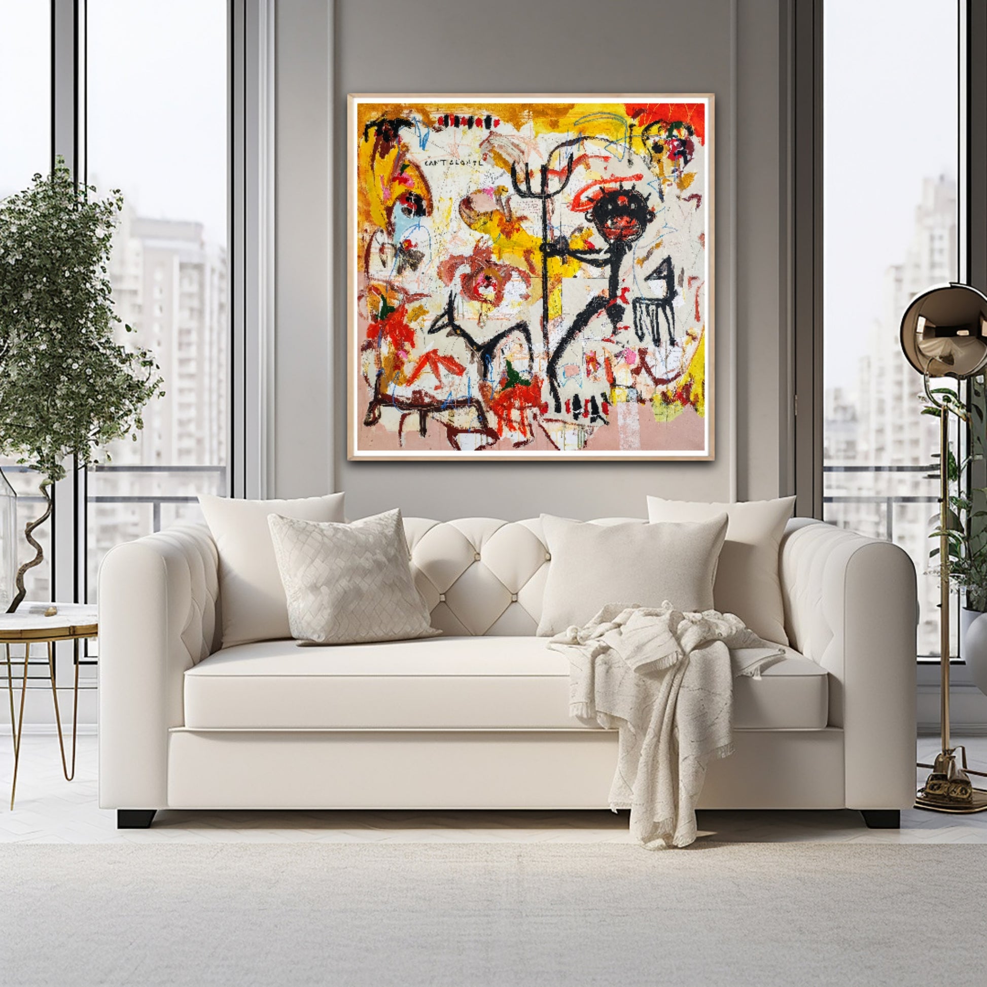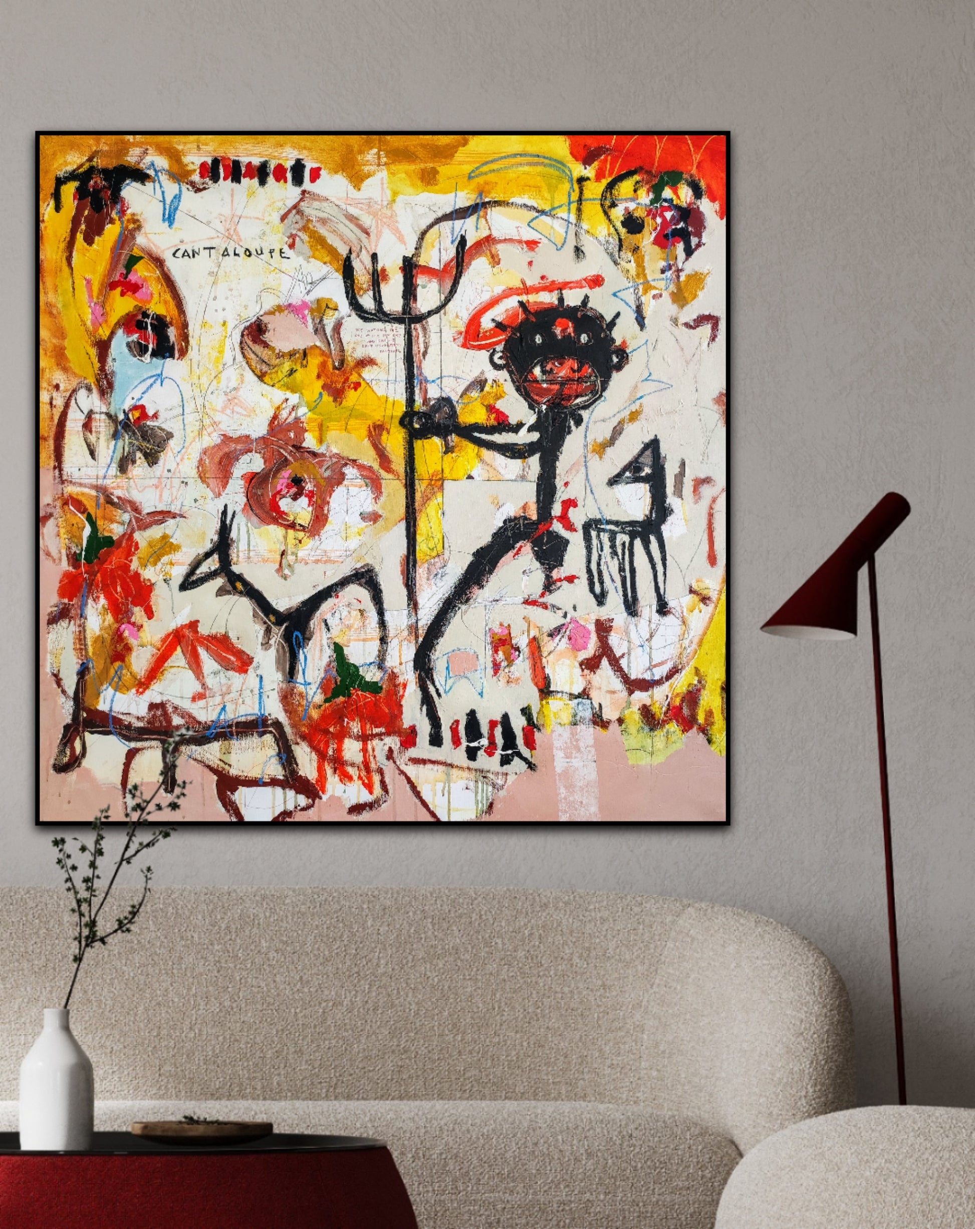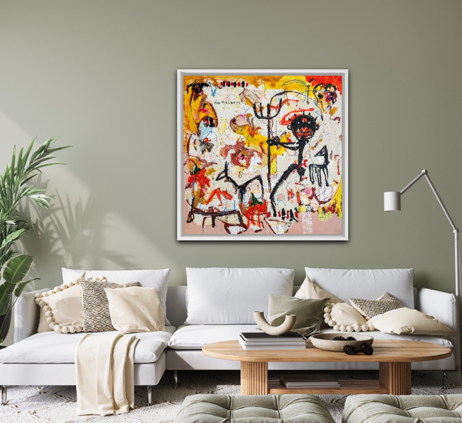 Técnica: acrílico, pigmentos, ceras, carboncillo y lápiz.