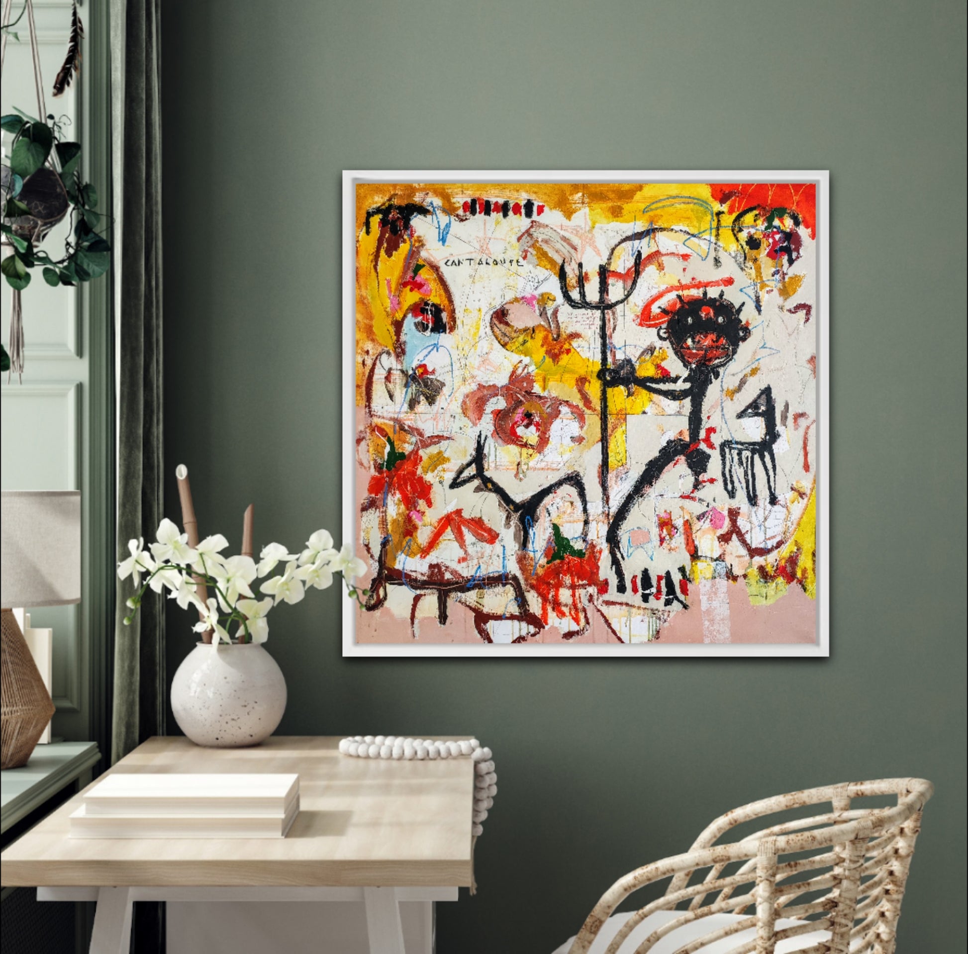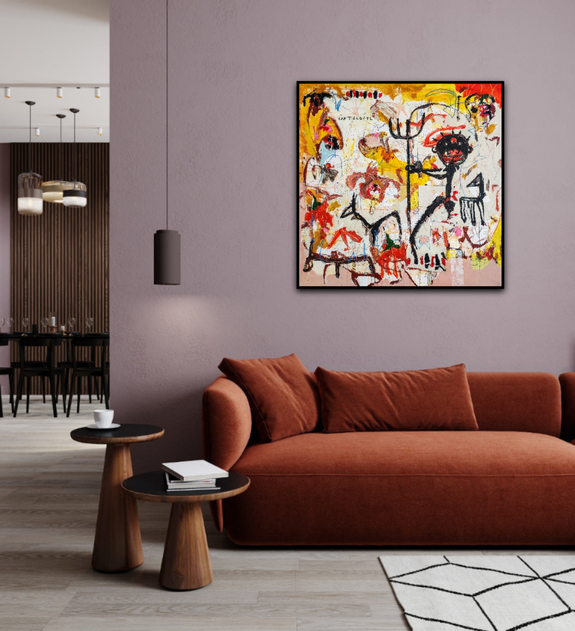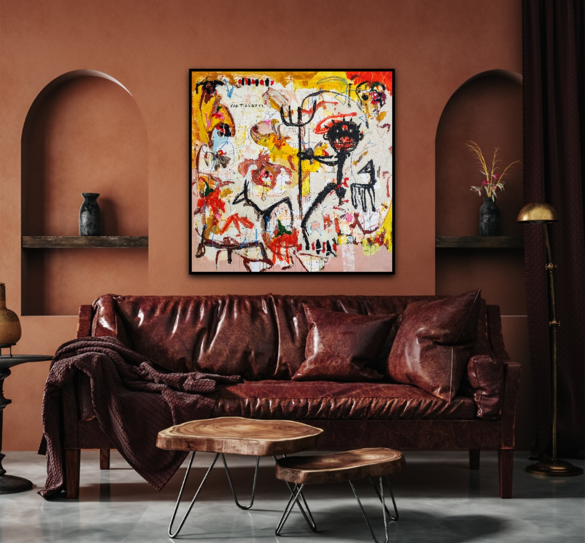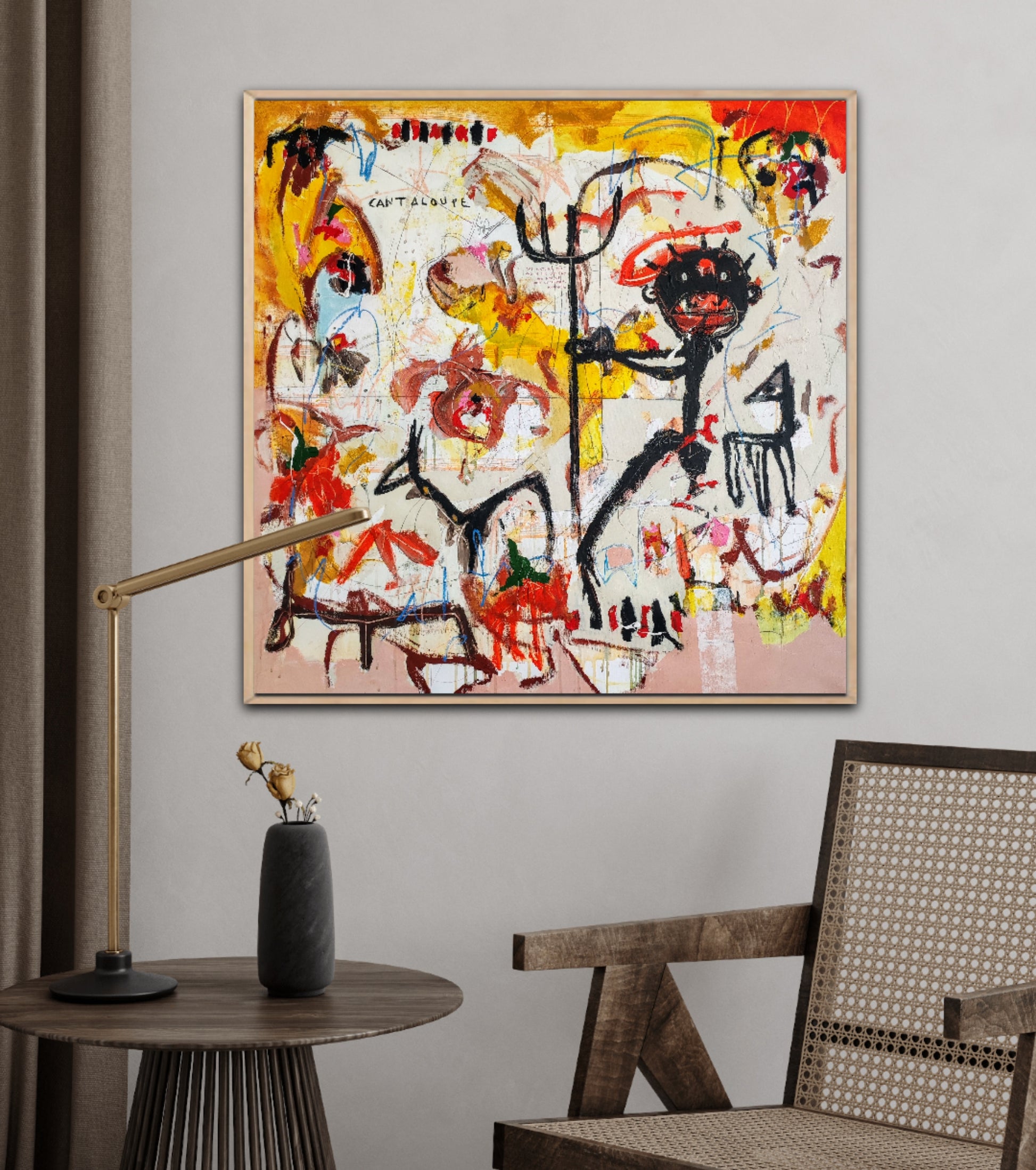 Técnica: acrílico, pigmentos, ceras, carboncillo y lápiz.
