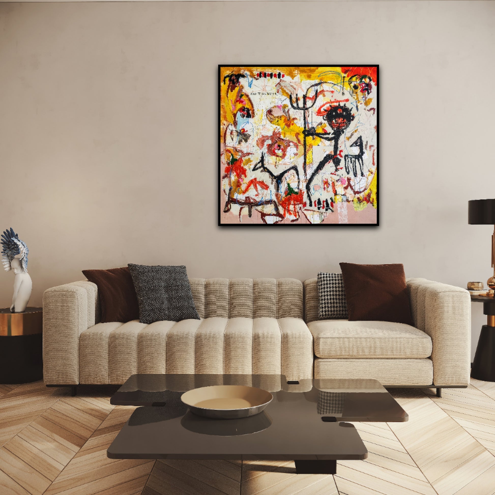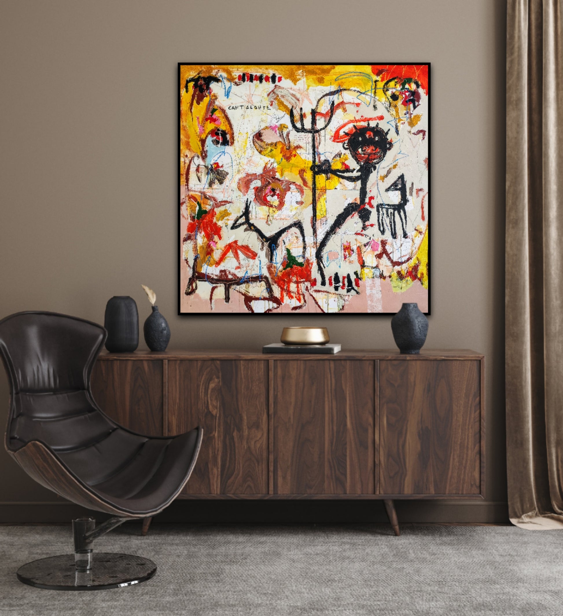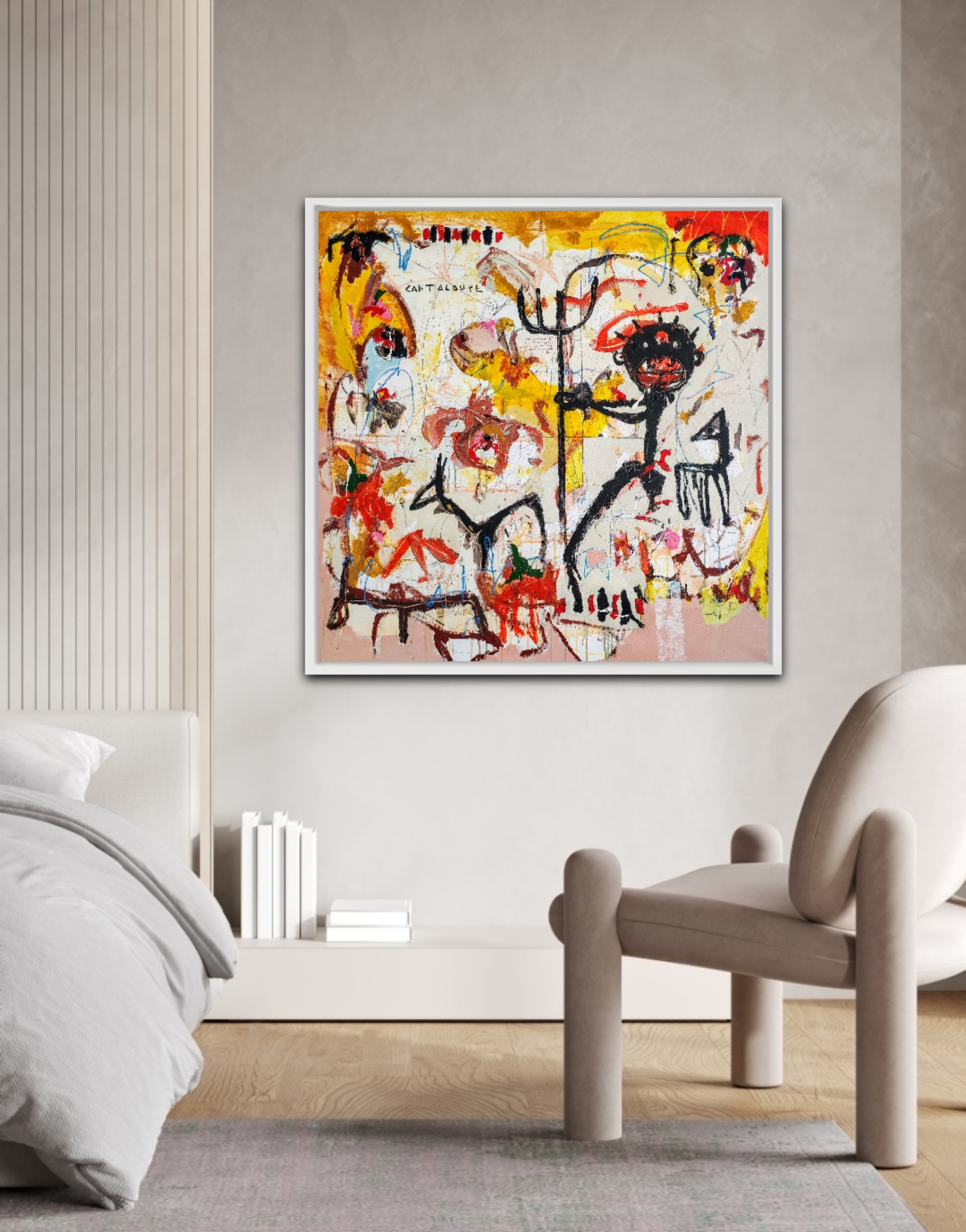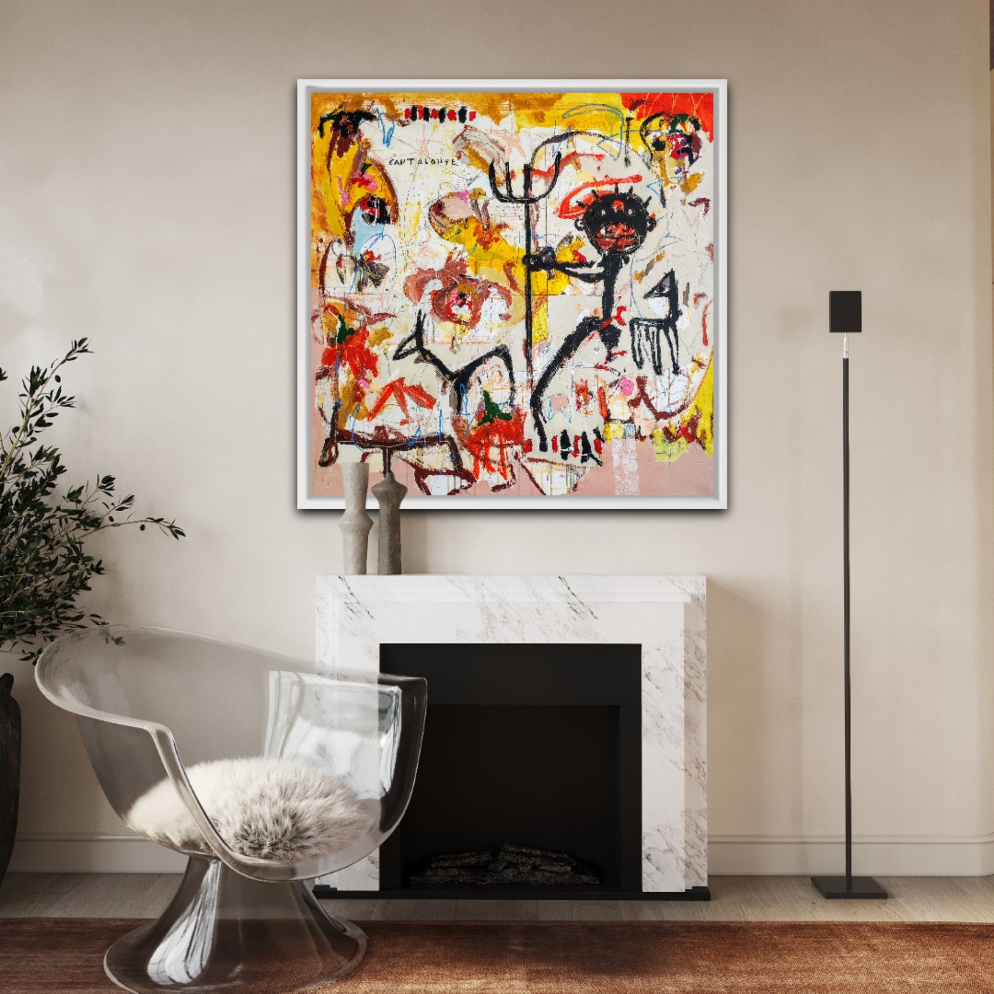 Técnica: acrílico, pigmentos, ceras, carboncillo y lápiz.