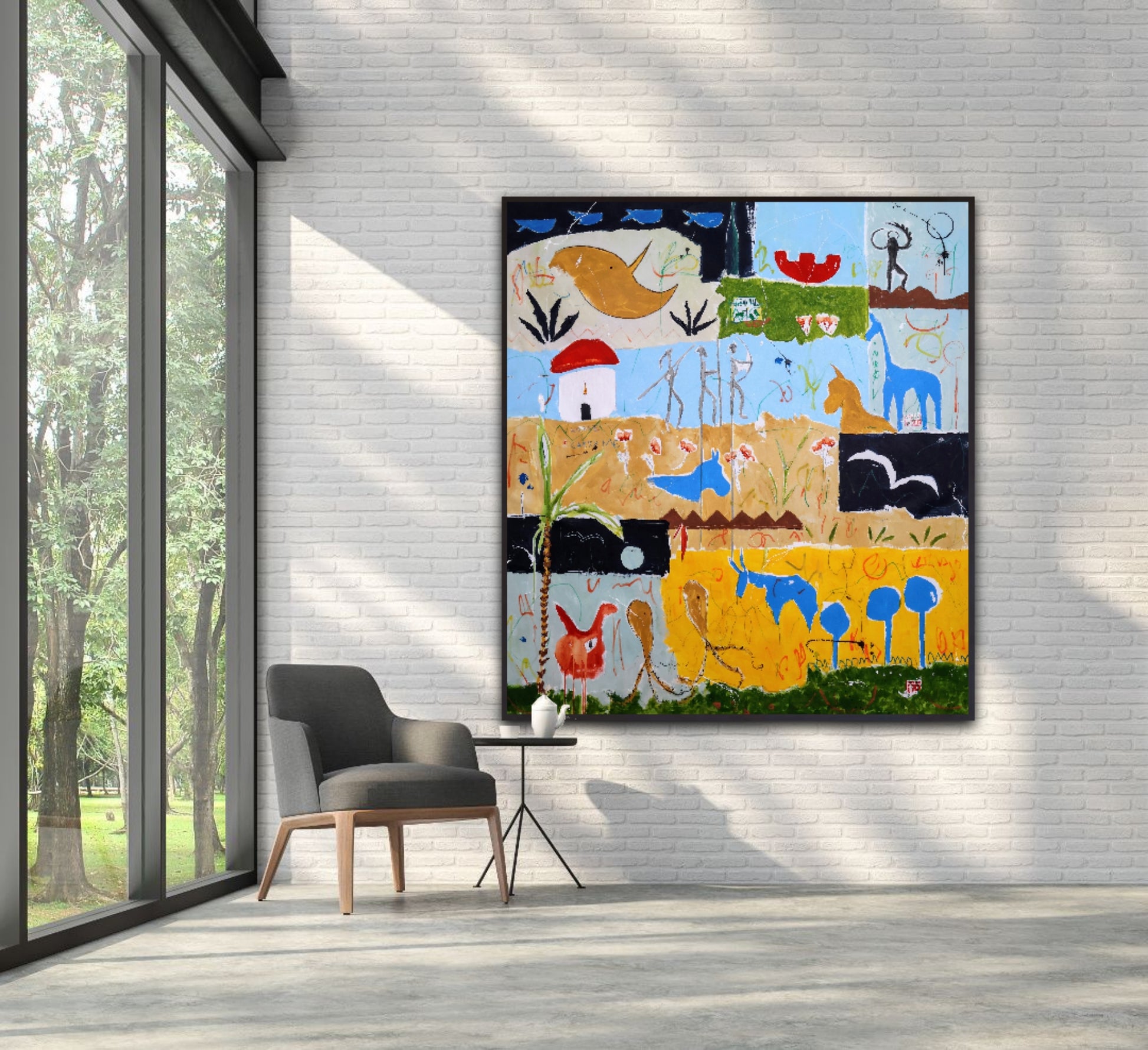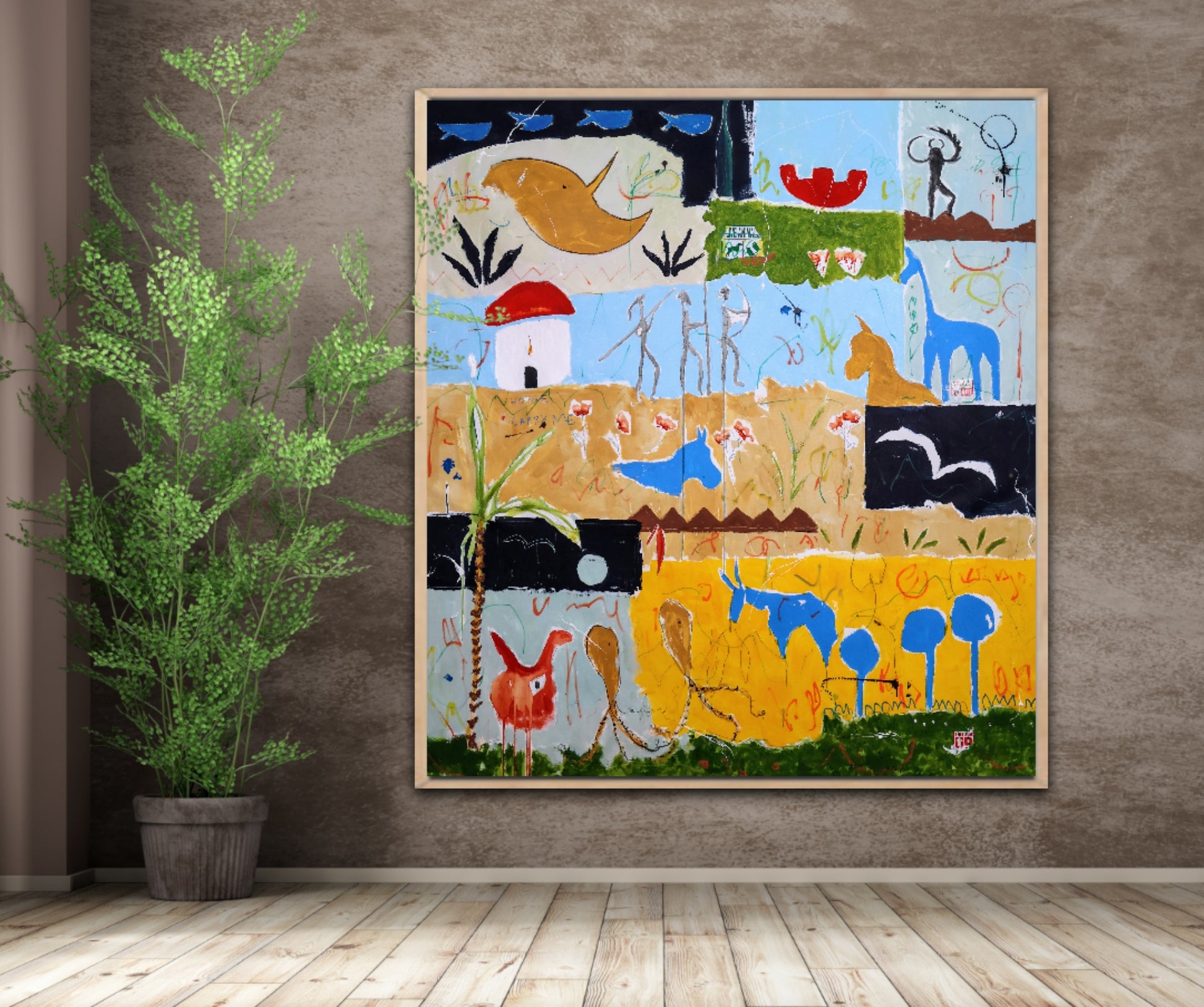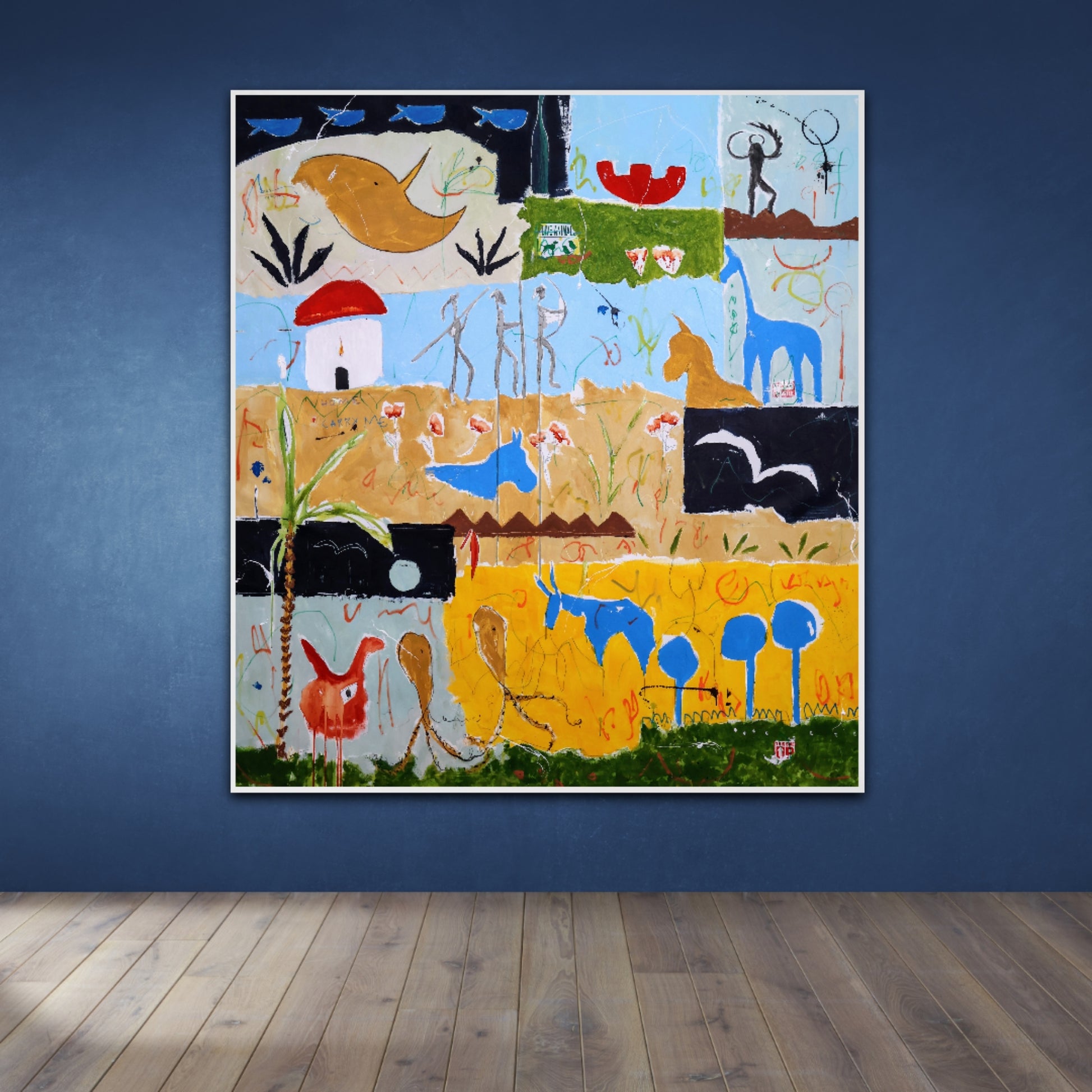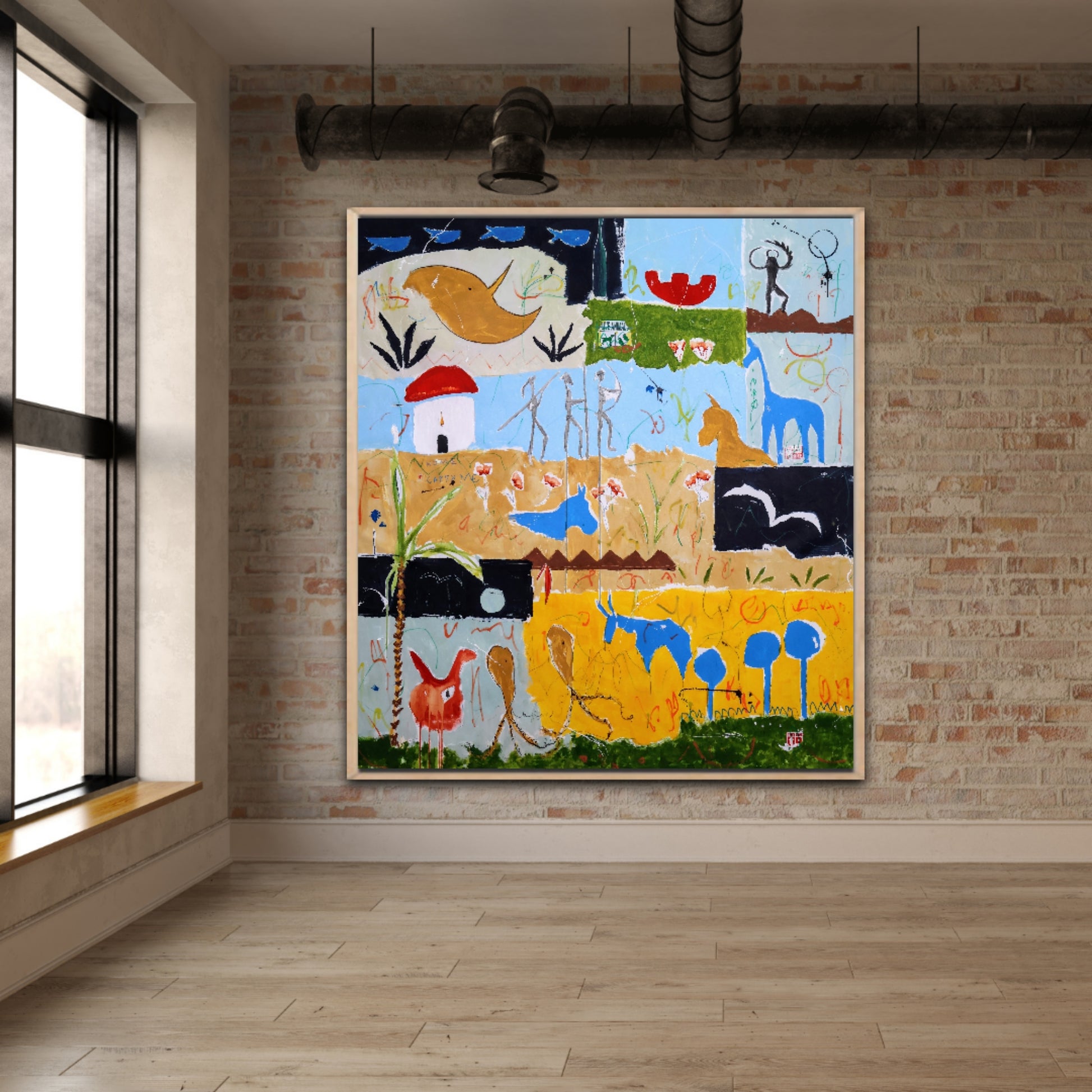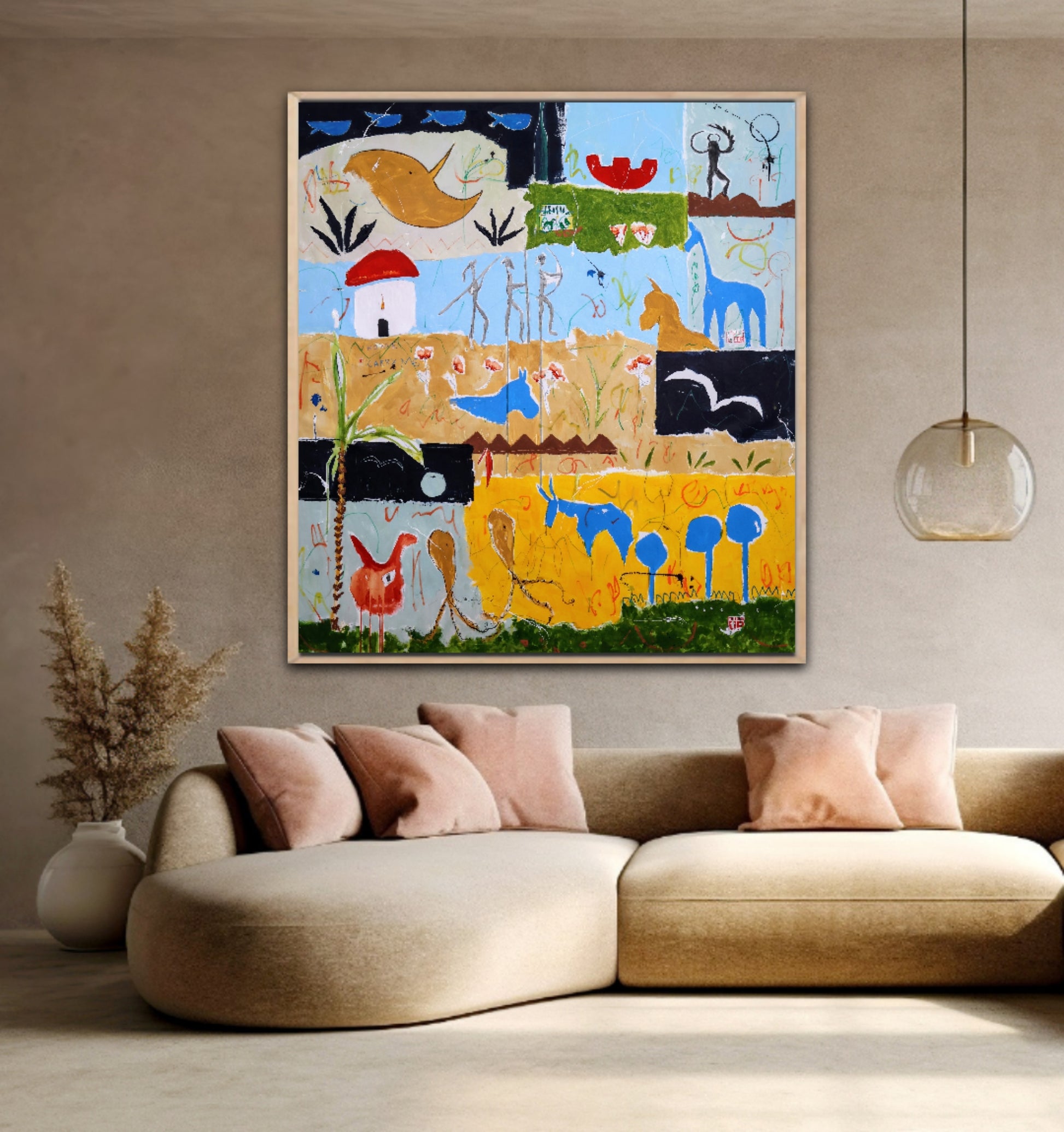 Técnica: acrílico, pigmentos, lápiz, gesso y adhesivos.