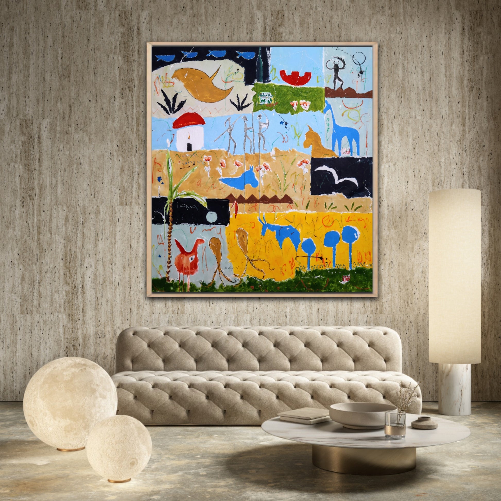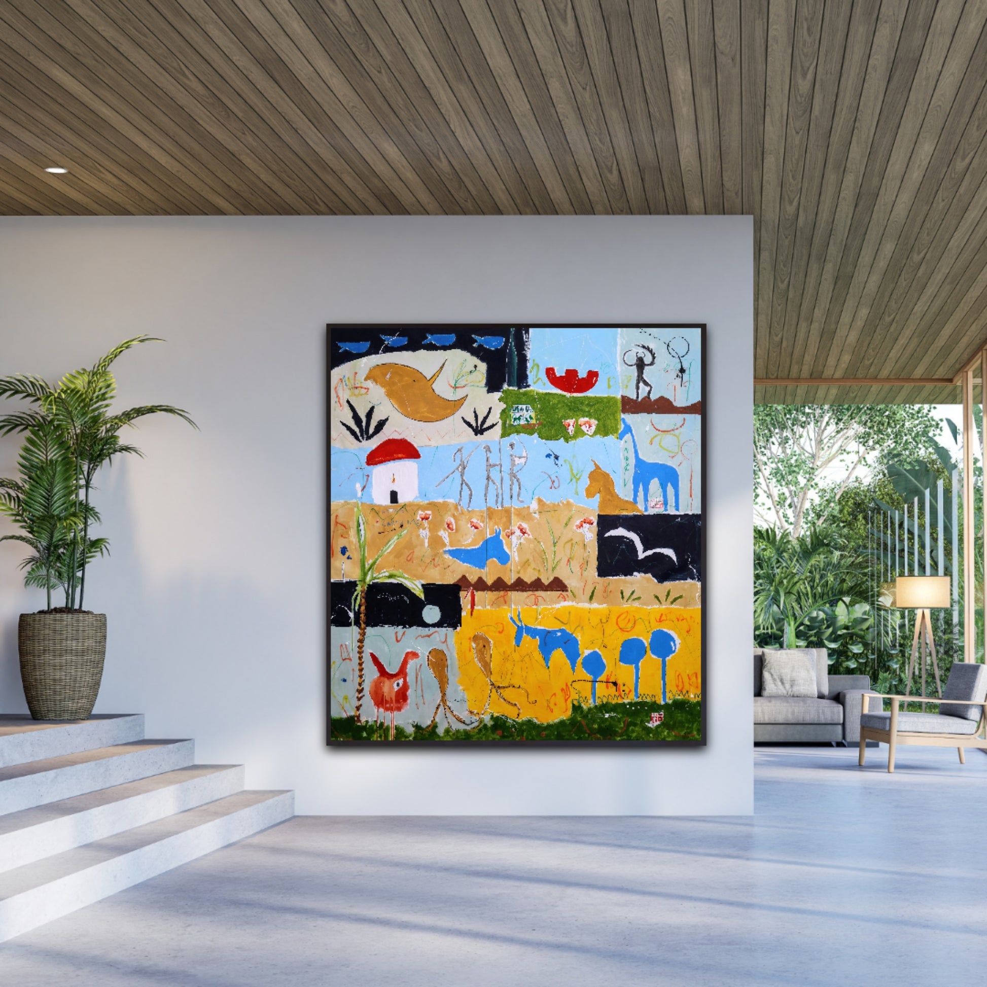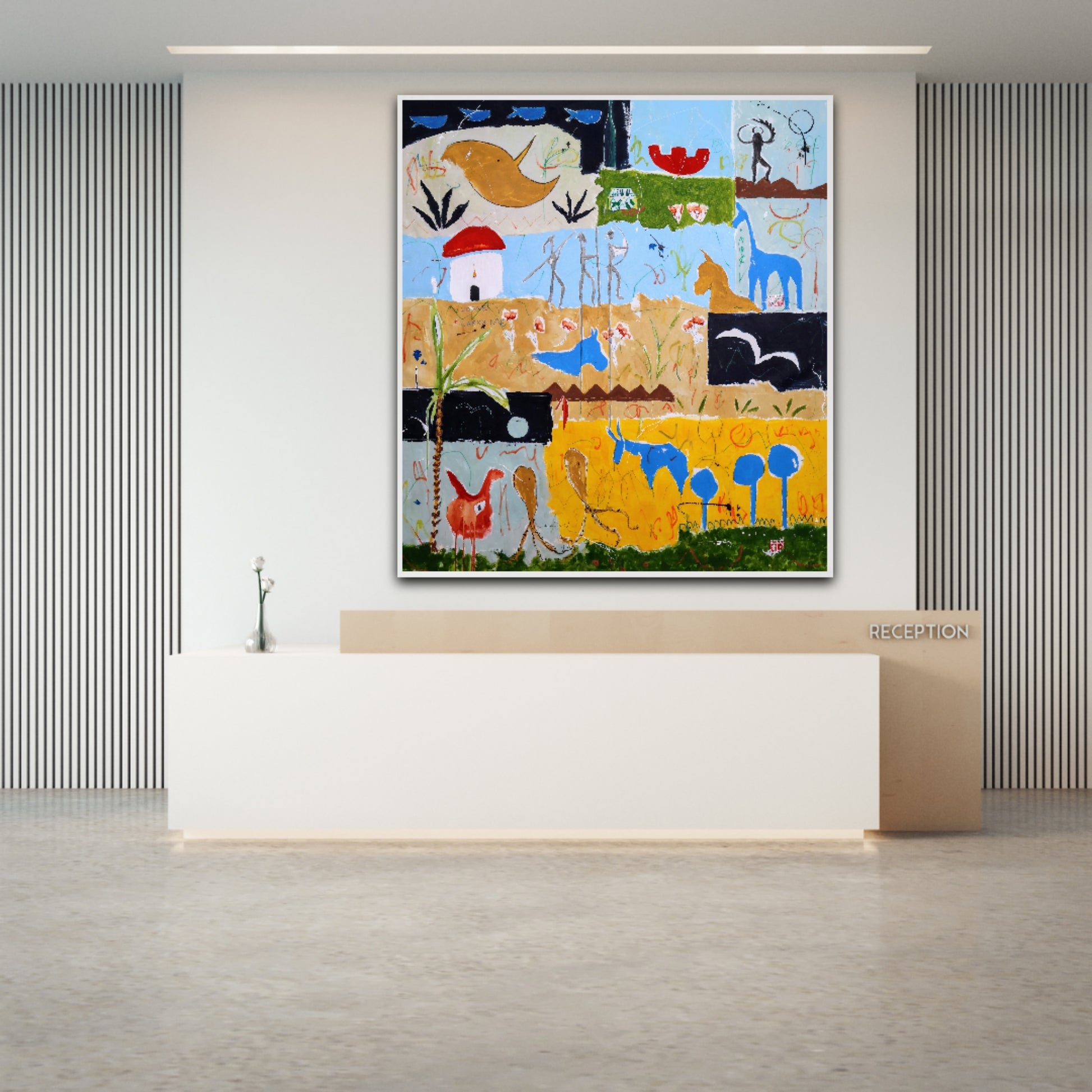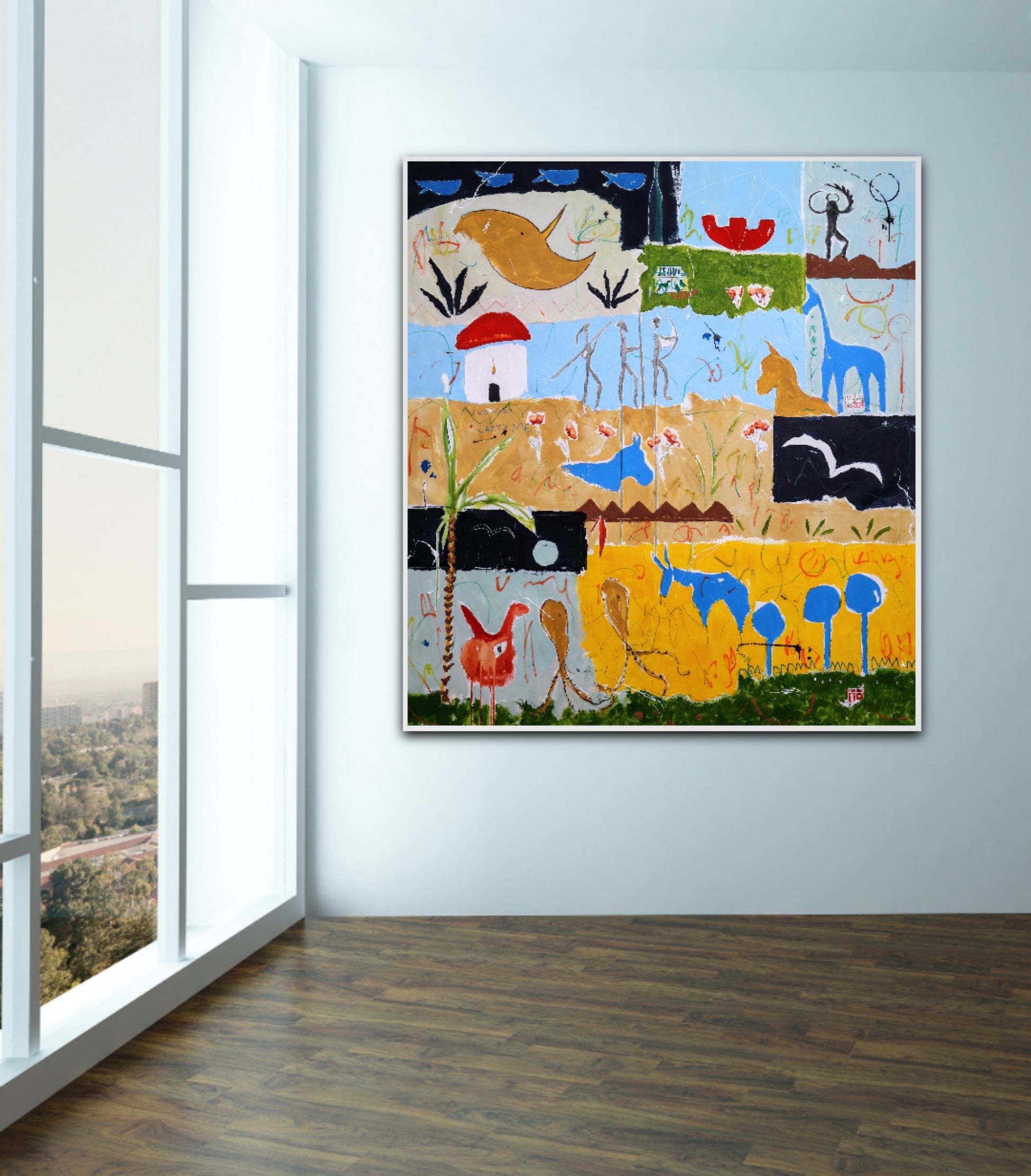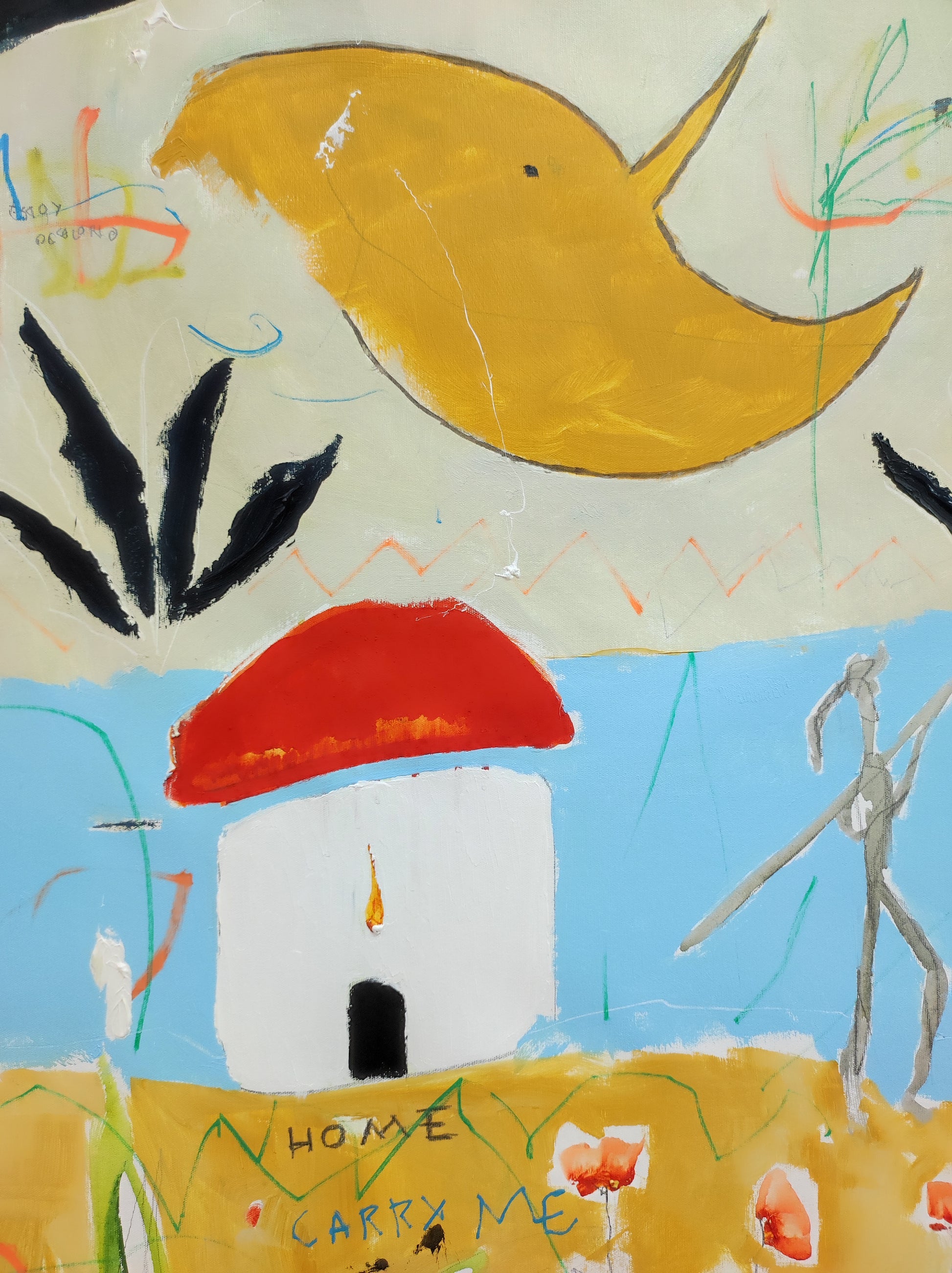 Técnica: acrílico, pigmentos, lápiz, gesso y adhesivos.