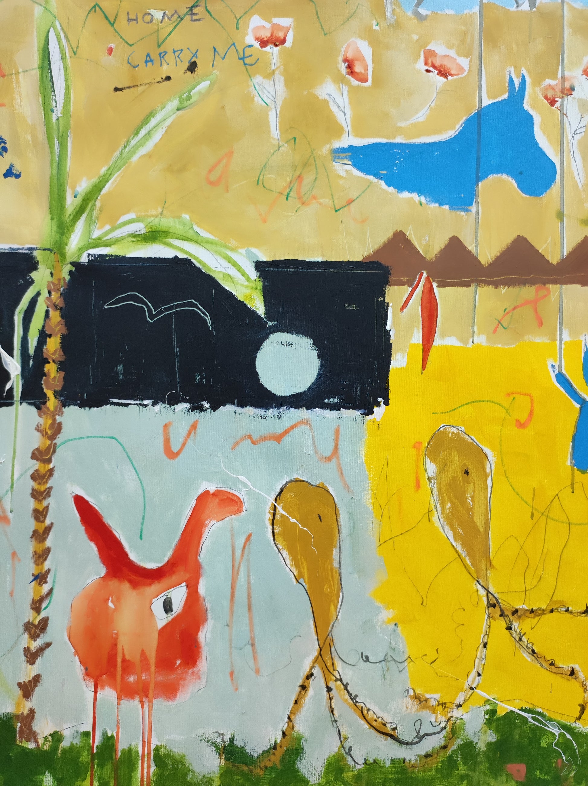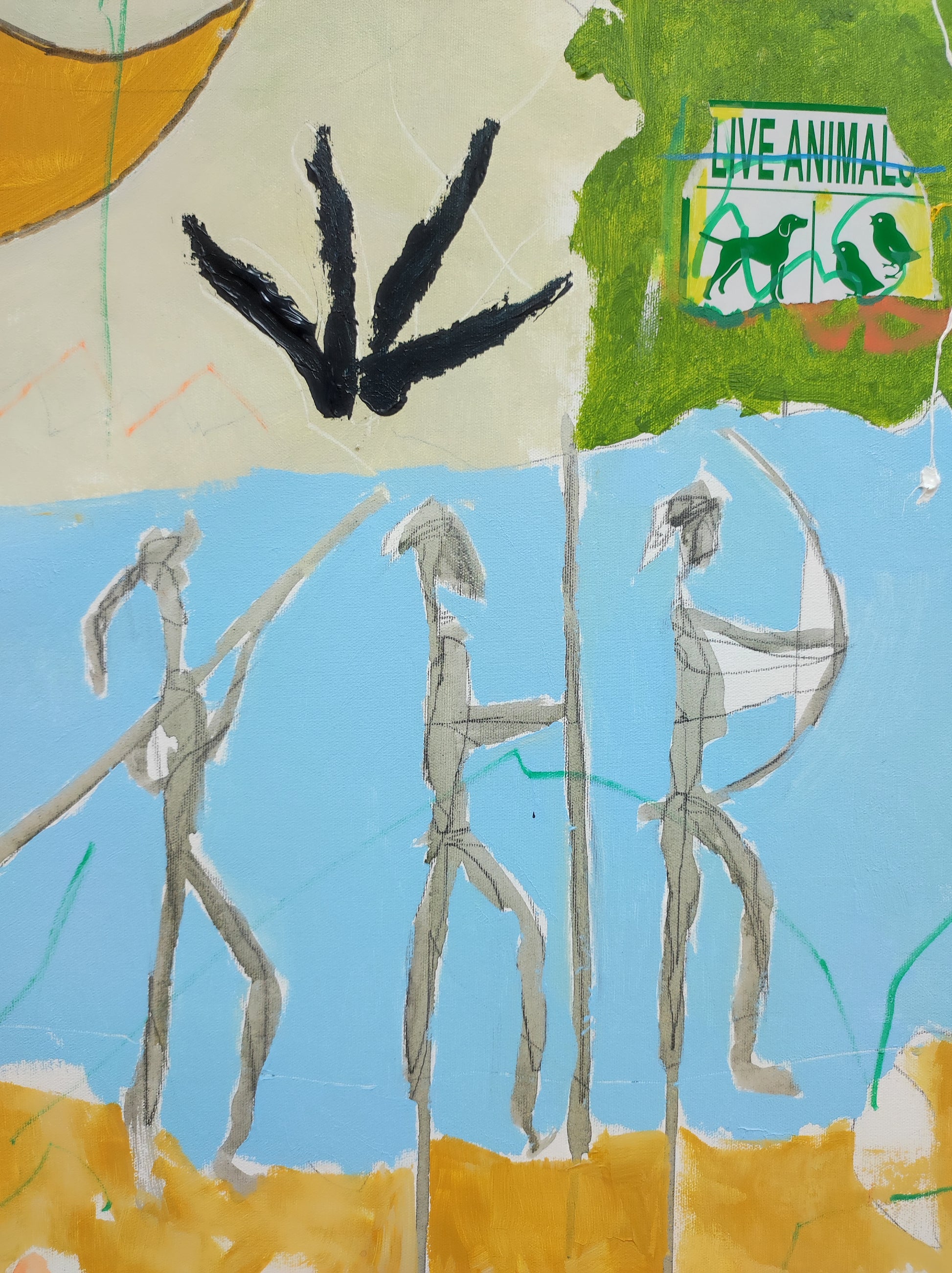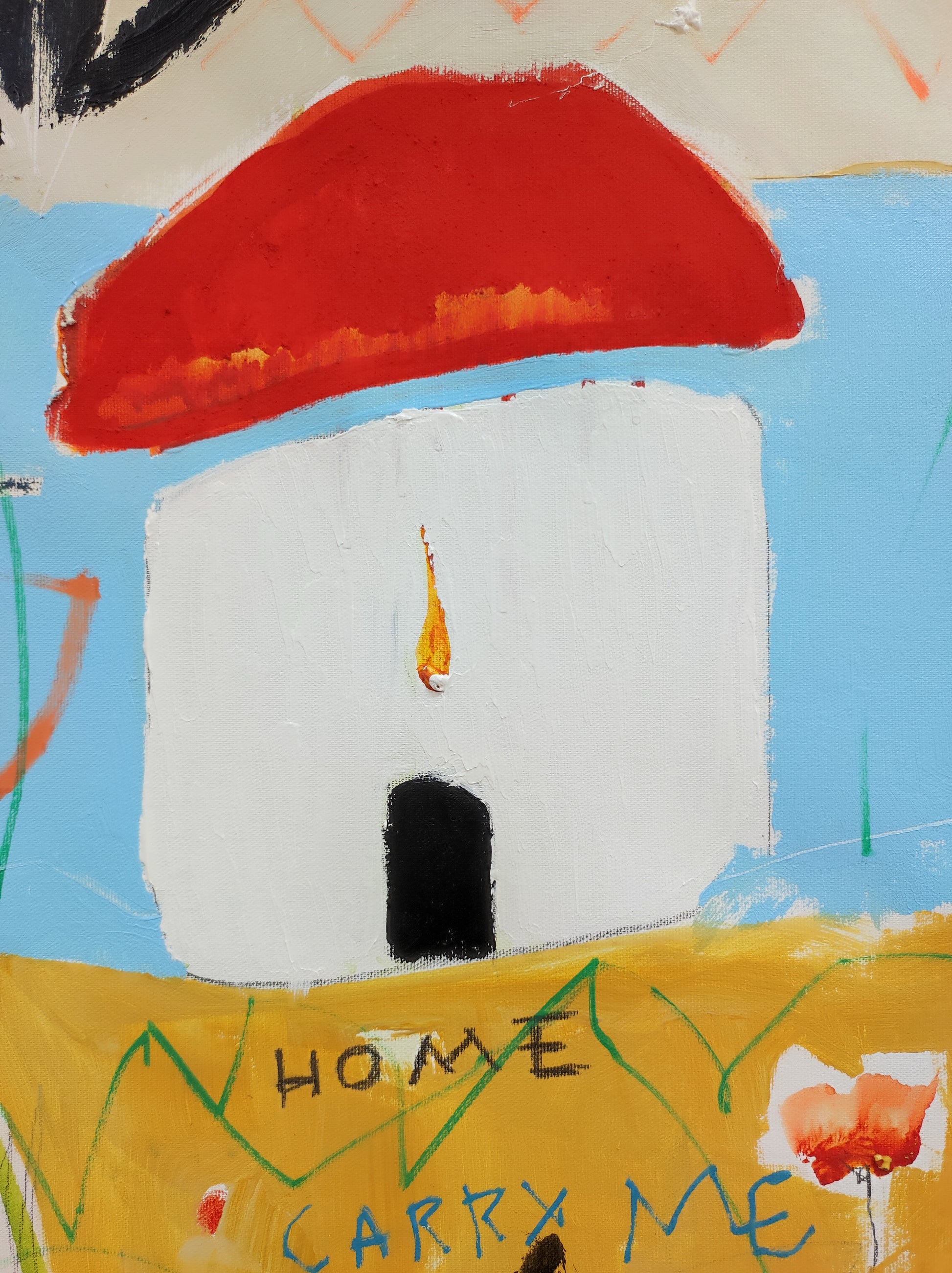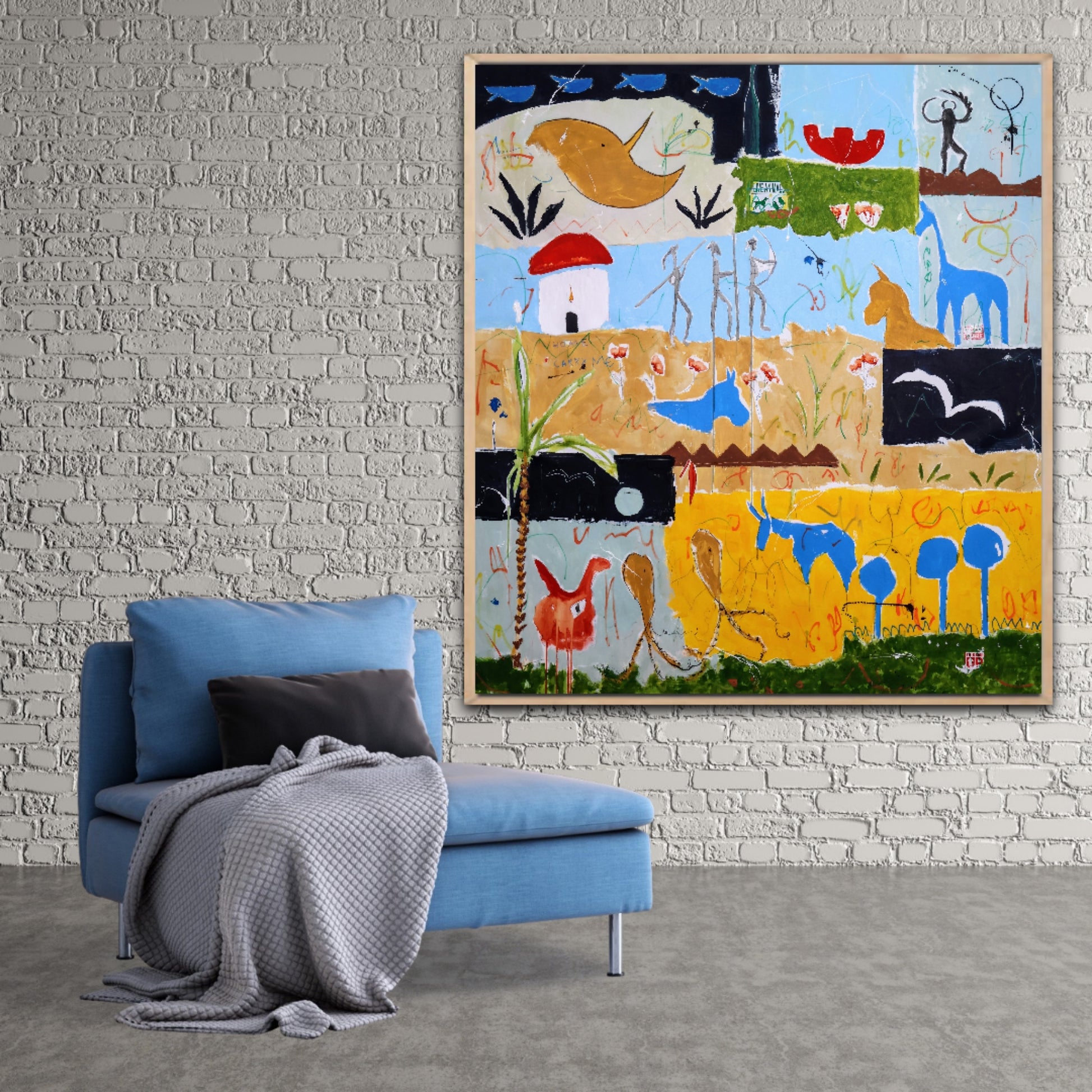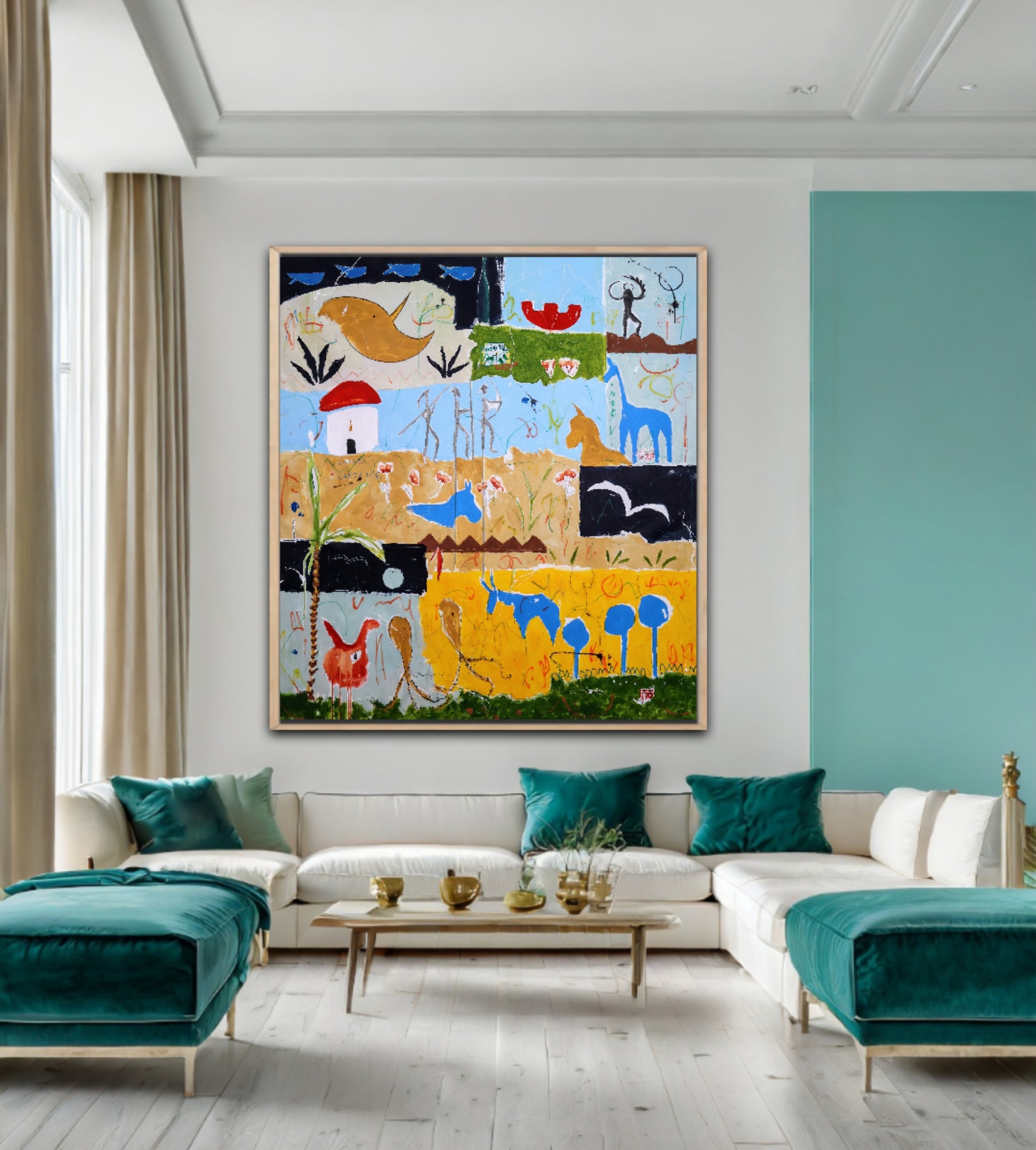 Técnica: acrílico, pigmentos, lápiz, gesso y adhesivos.