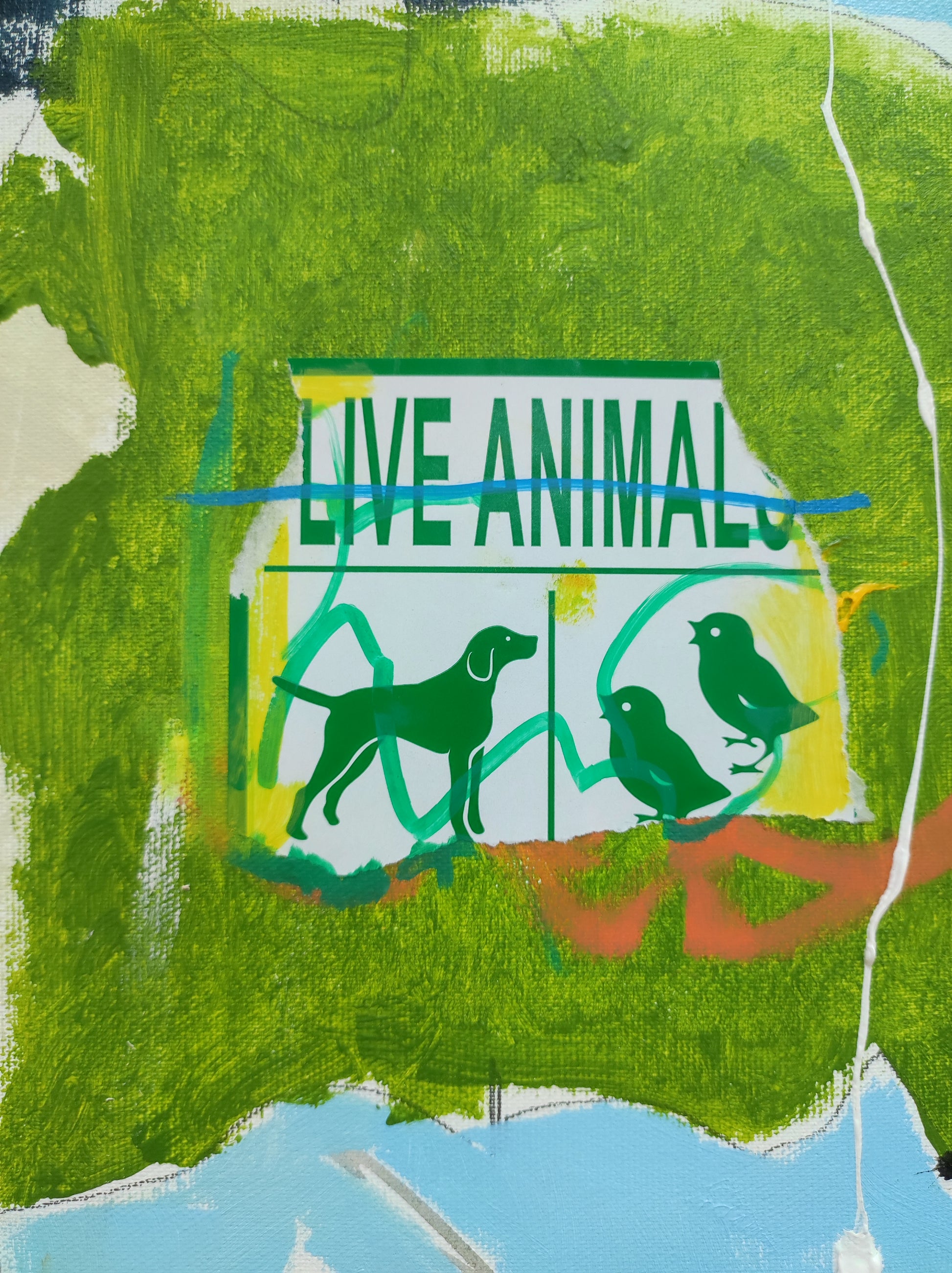Tratamos a los animales como un recurso (como símbolo de ello la obra incluye fragmentos de etiquetas para el transporte de animales vivos).