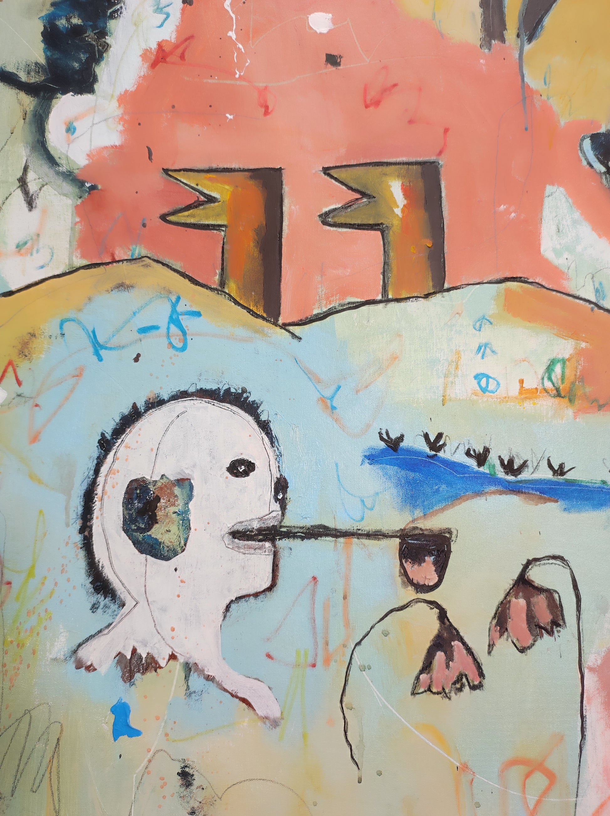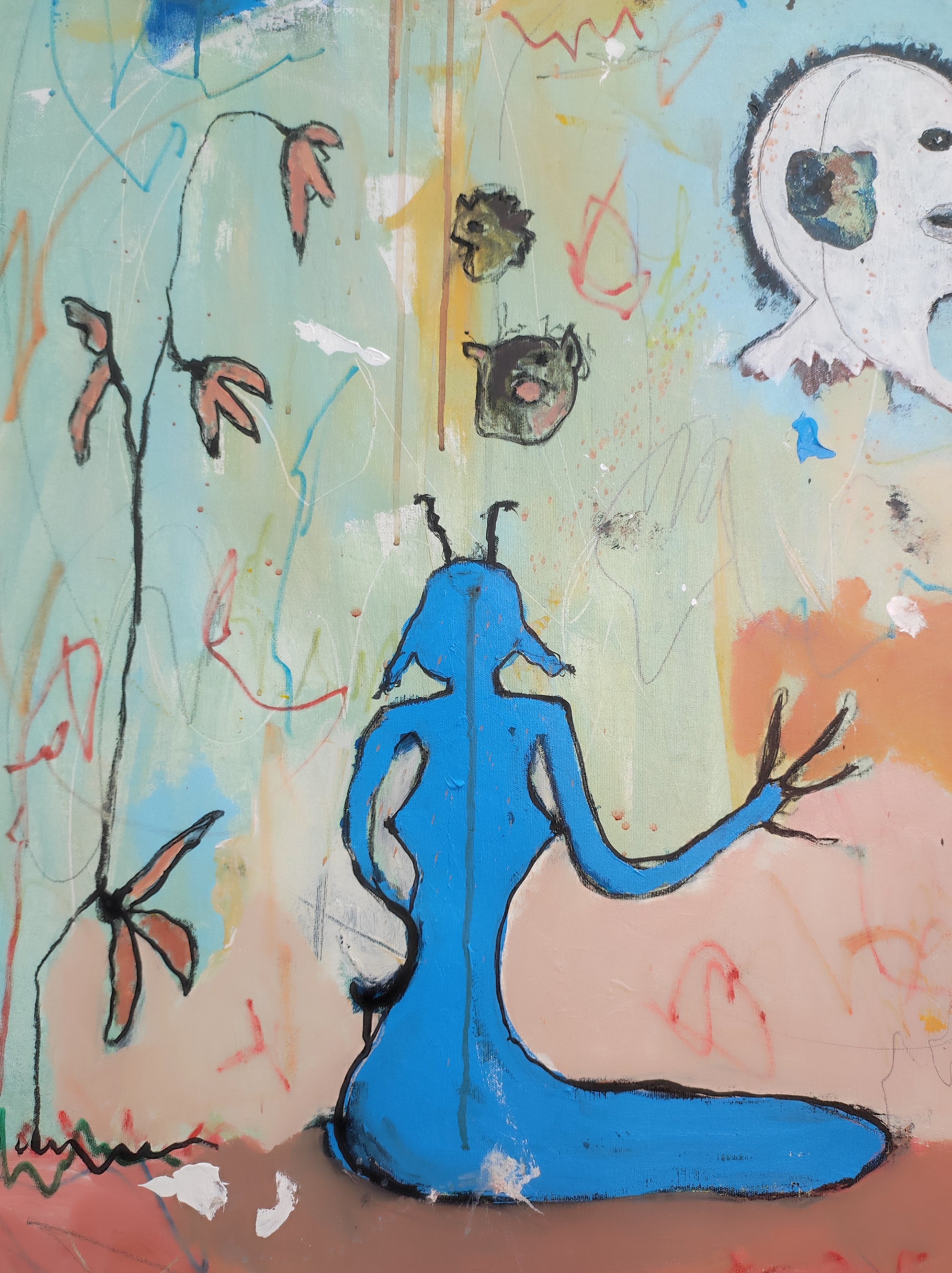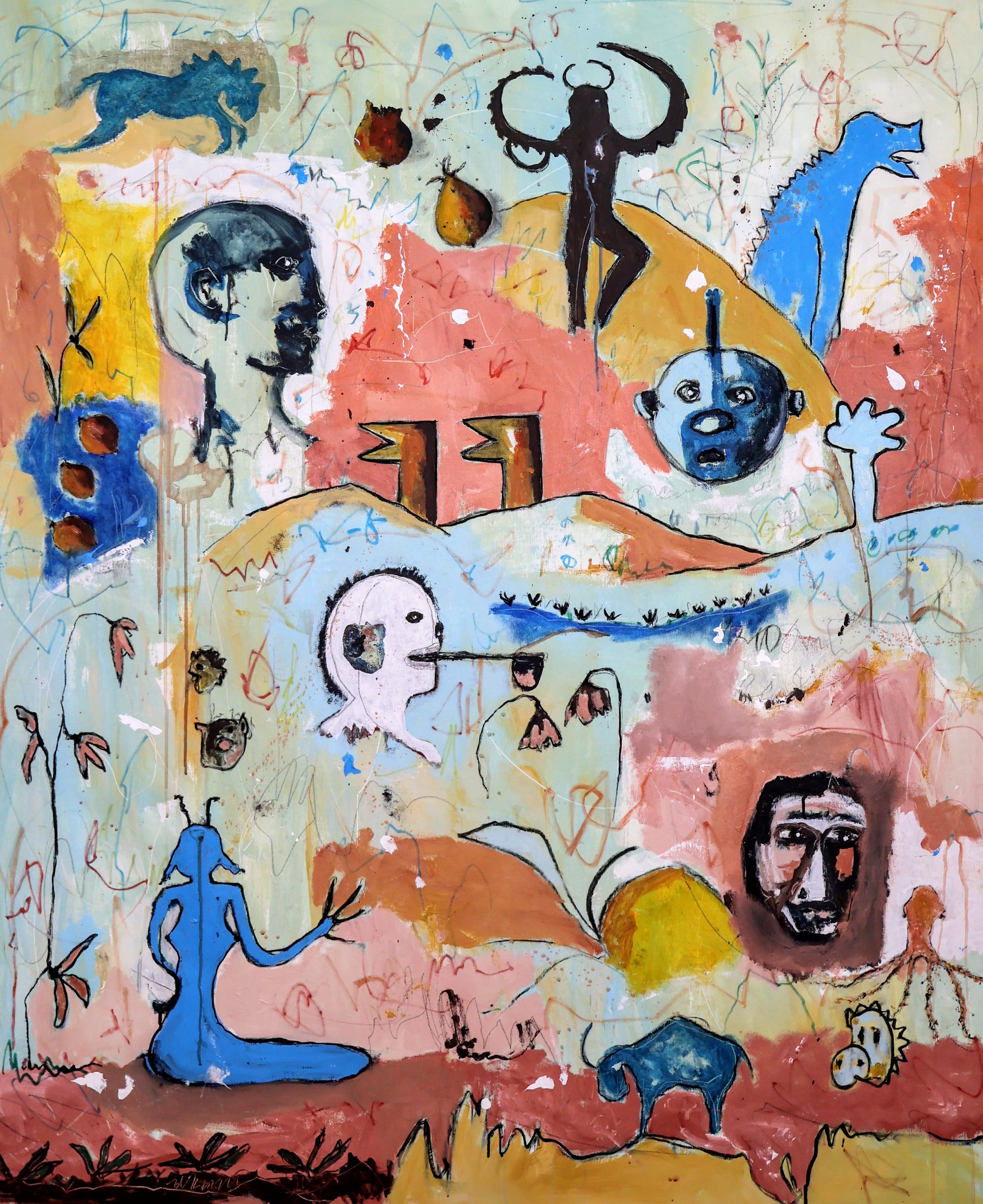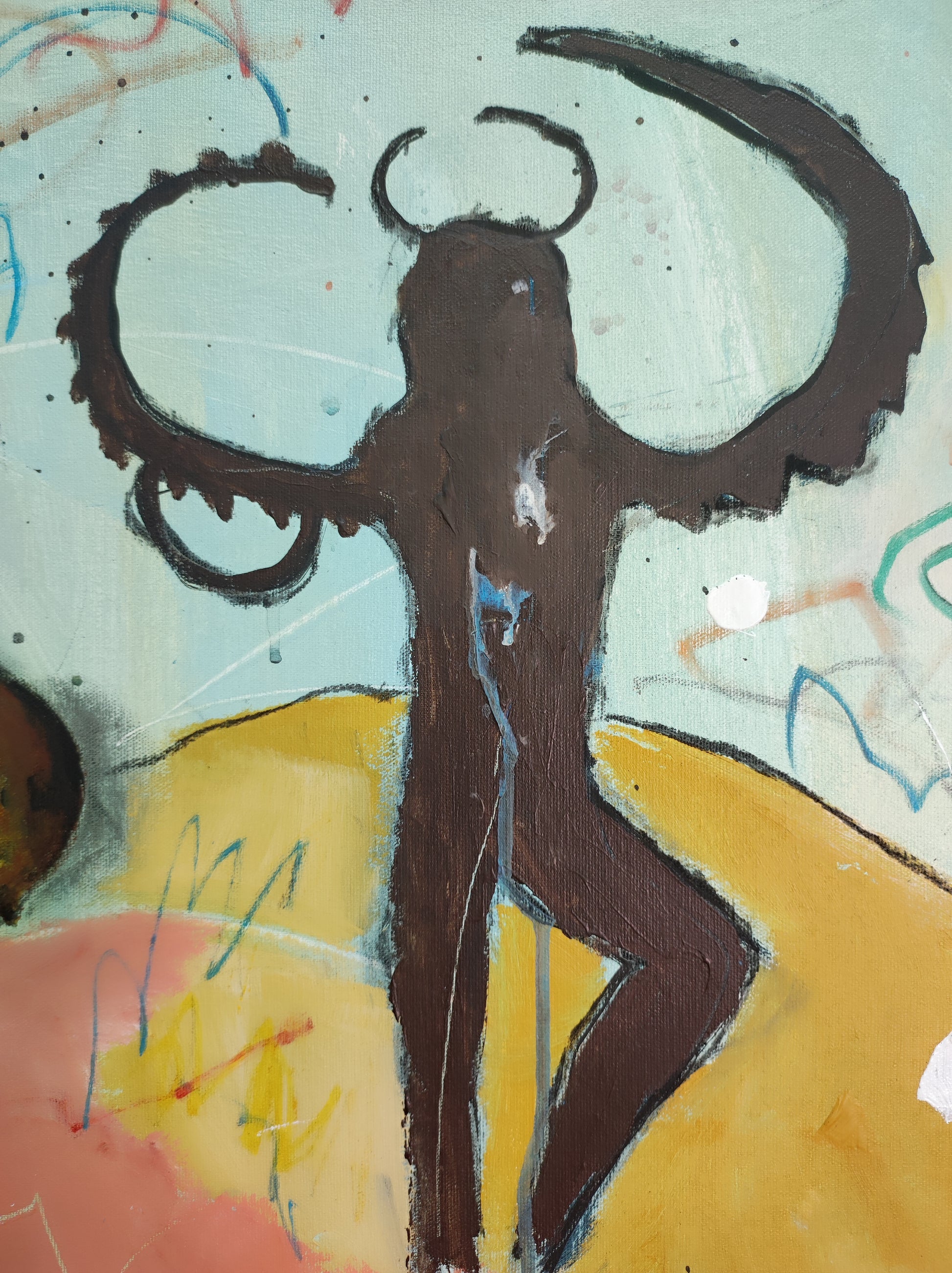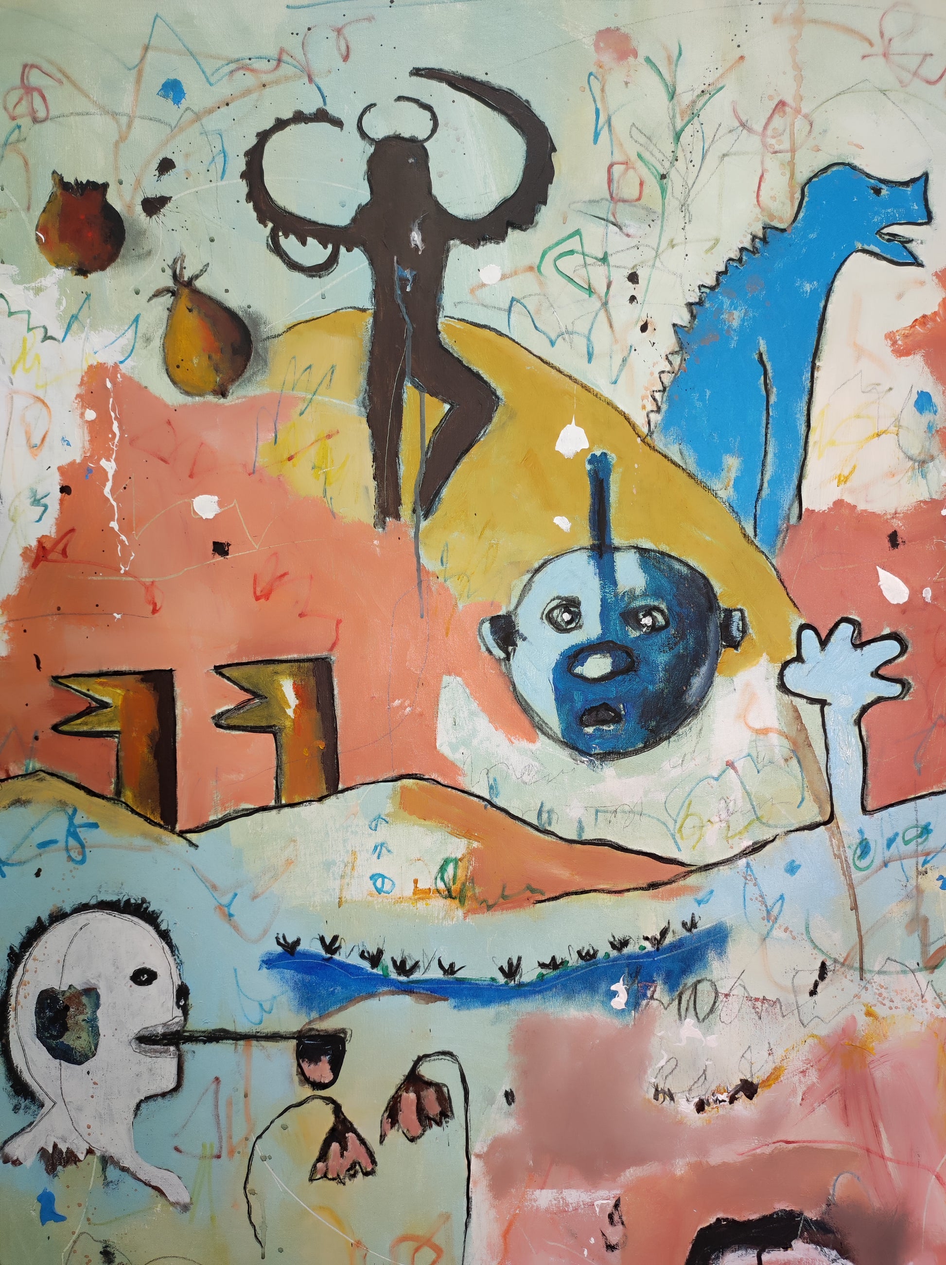 Técnica: acrílico, pigmentos, lápiz, gesso y carboncillo.