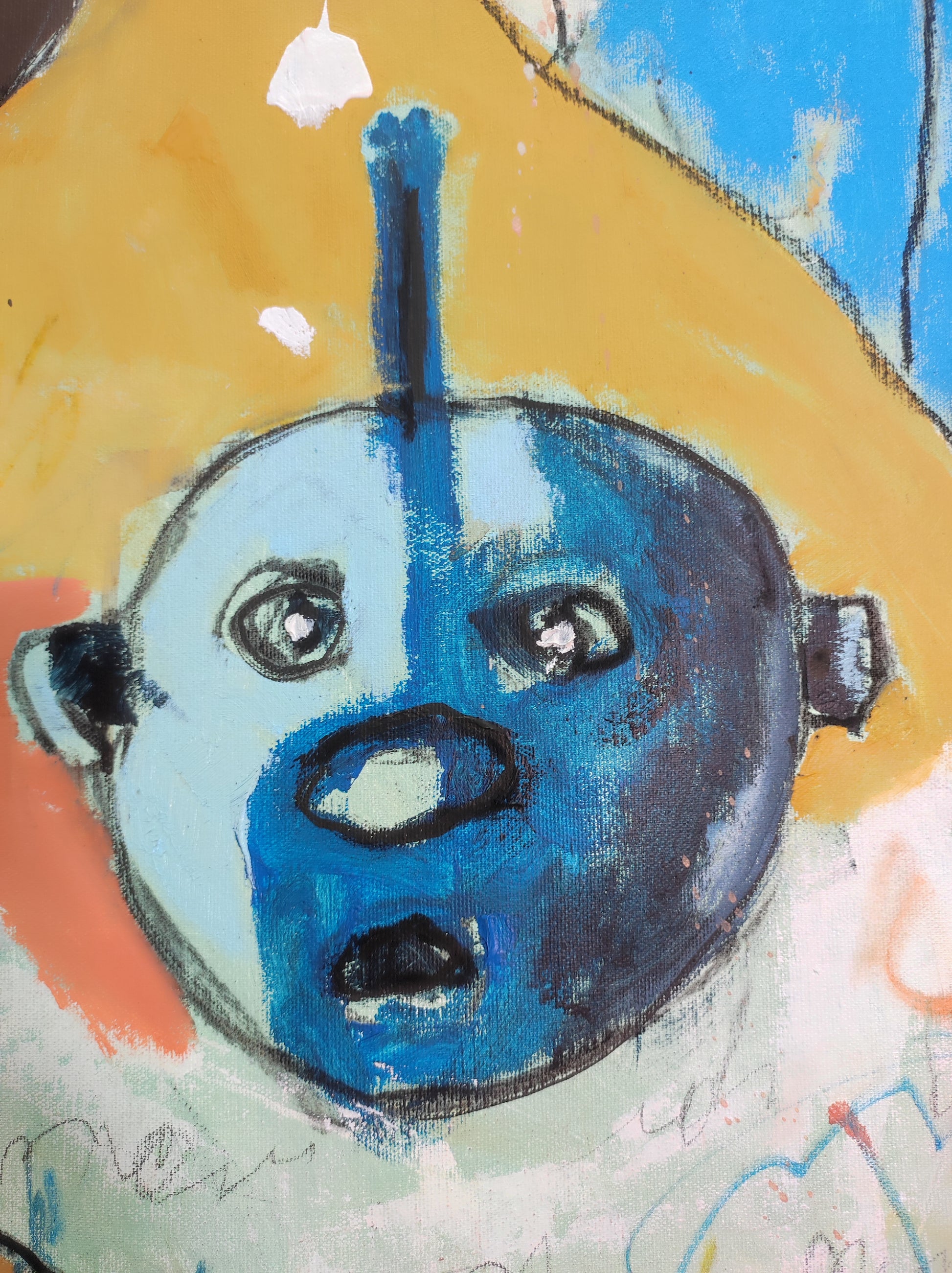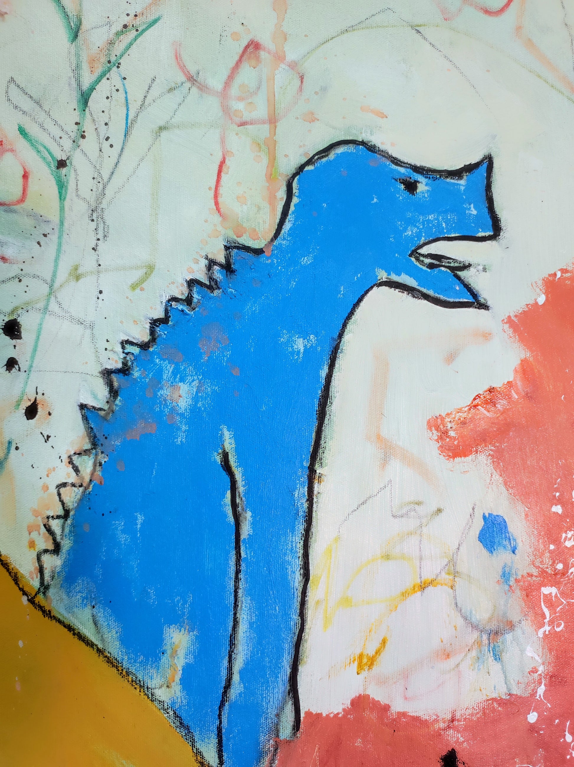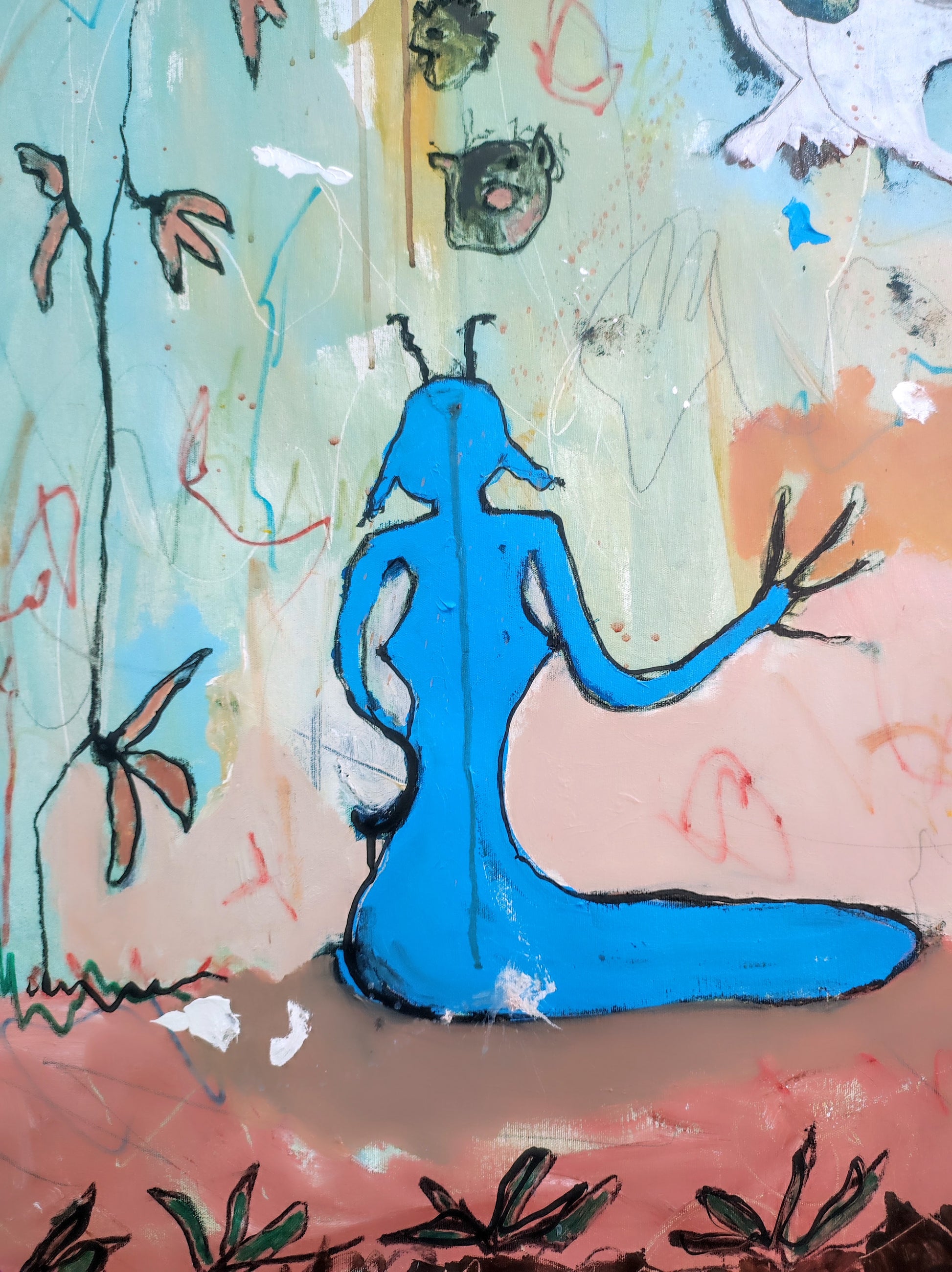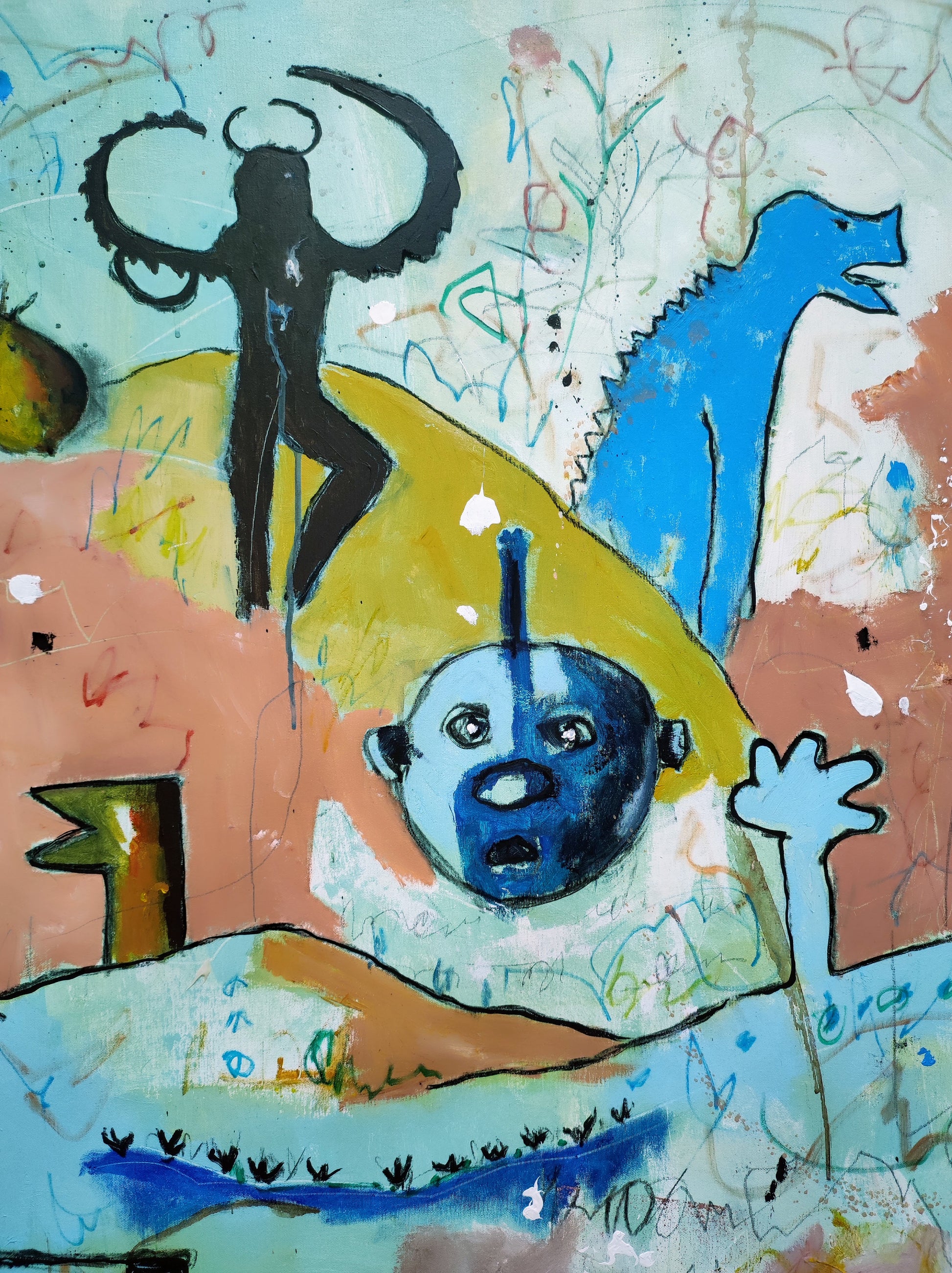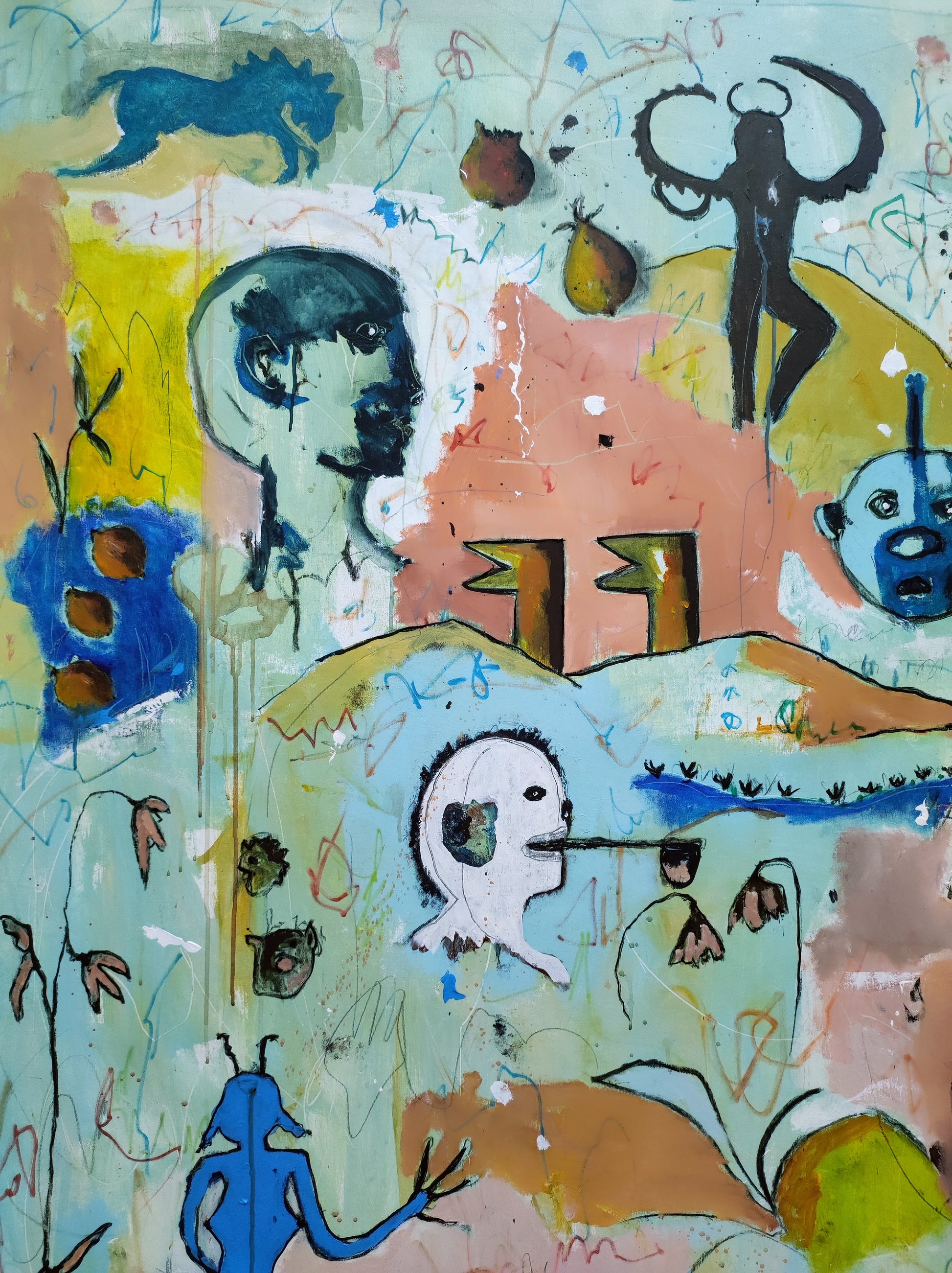 Técnica: acrílico, pigmentos, lápiz, gesso y carboncillo.