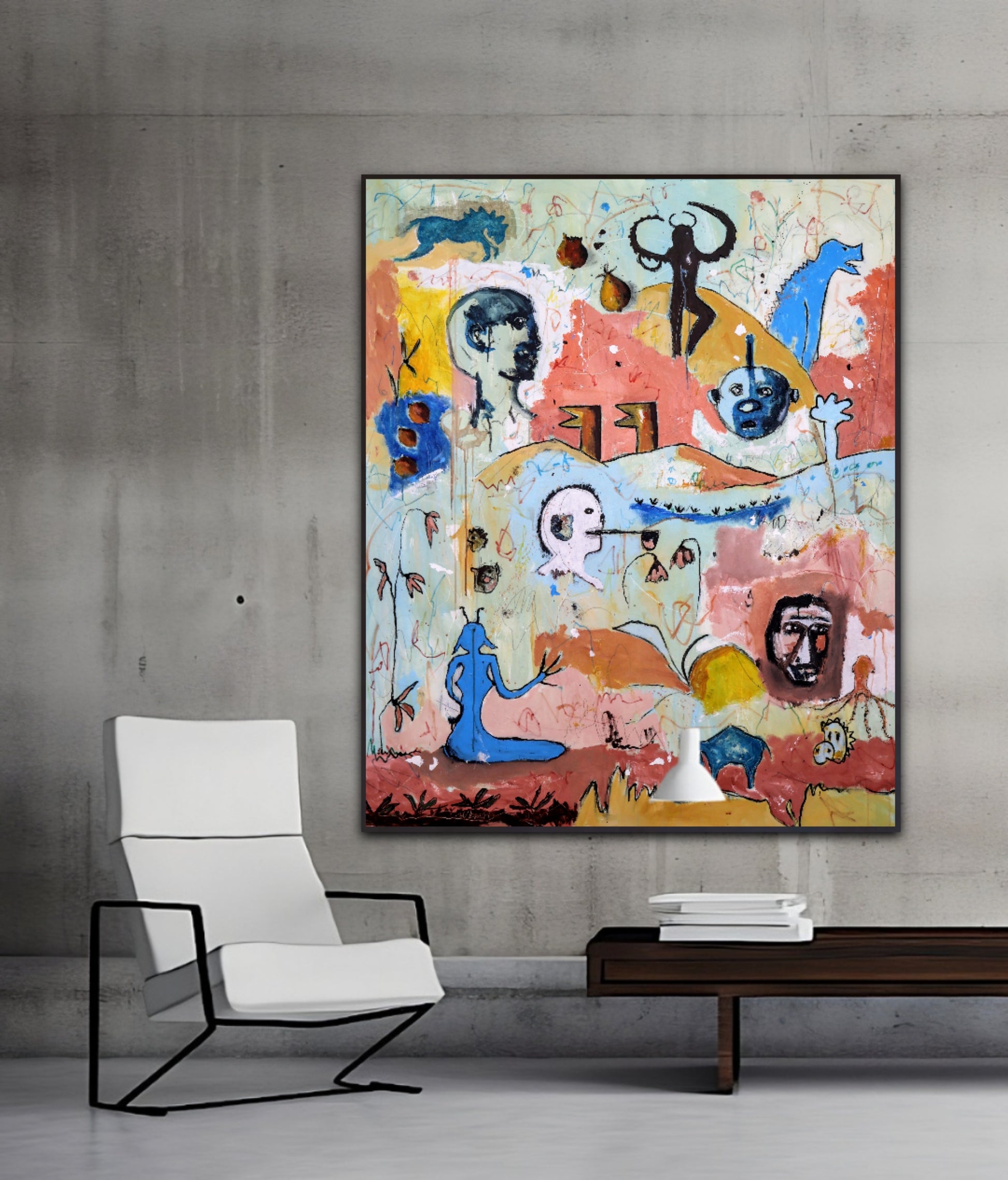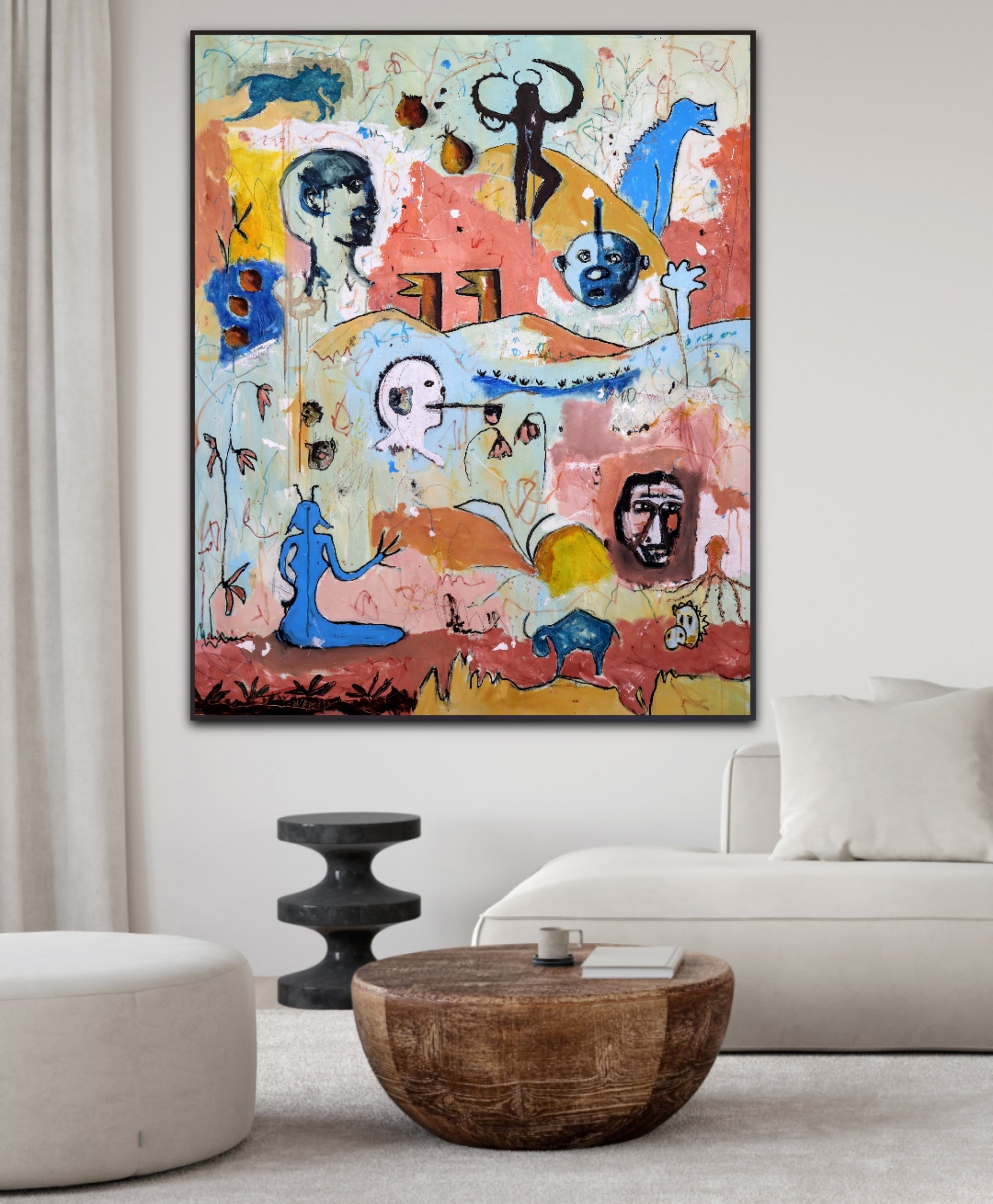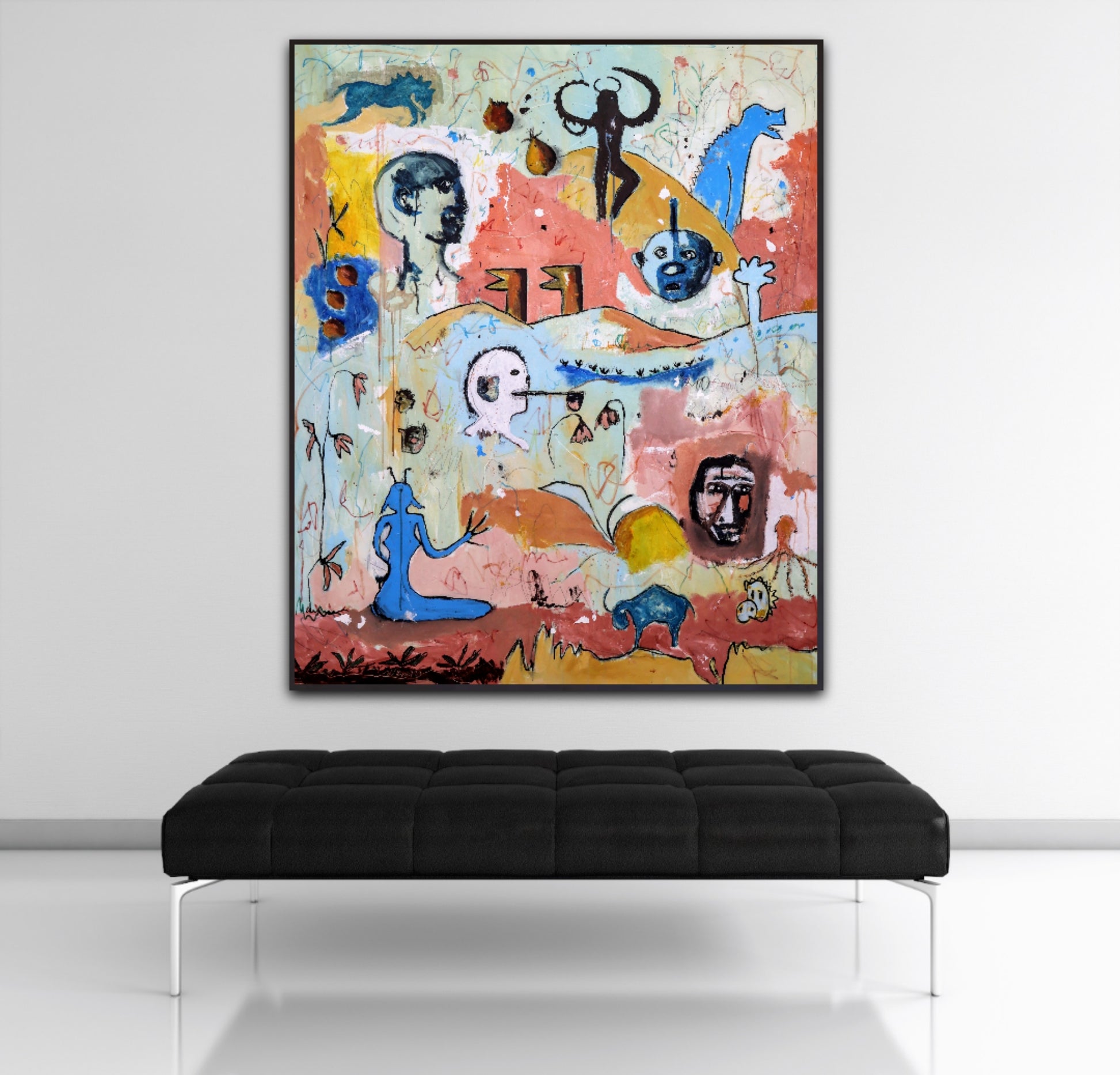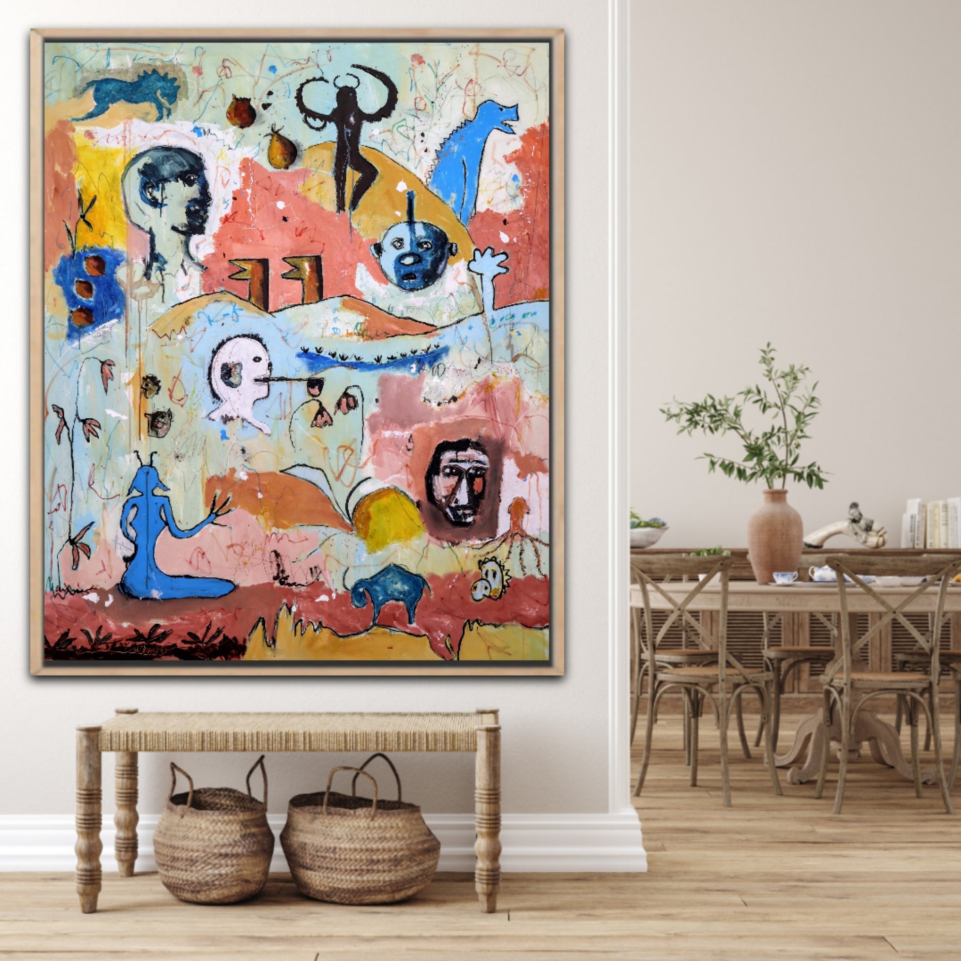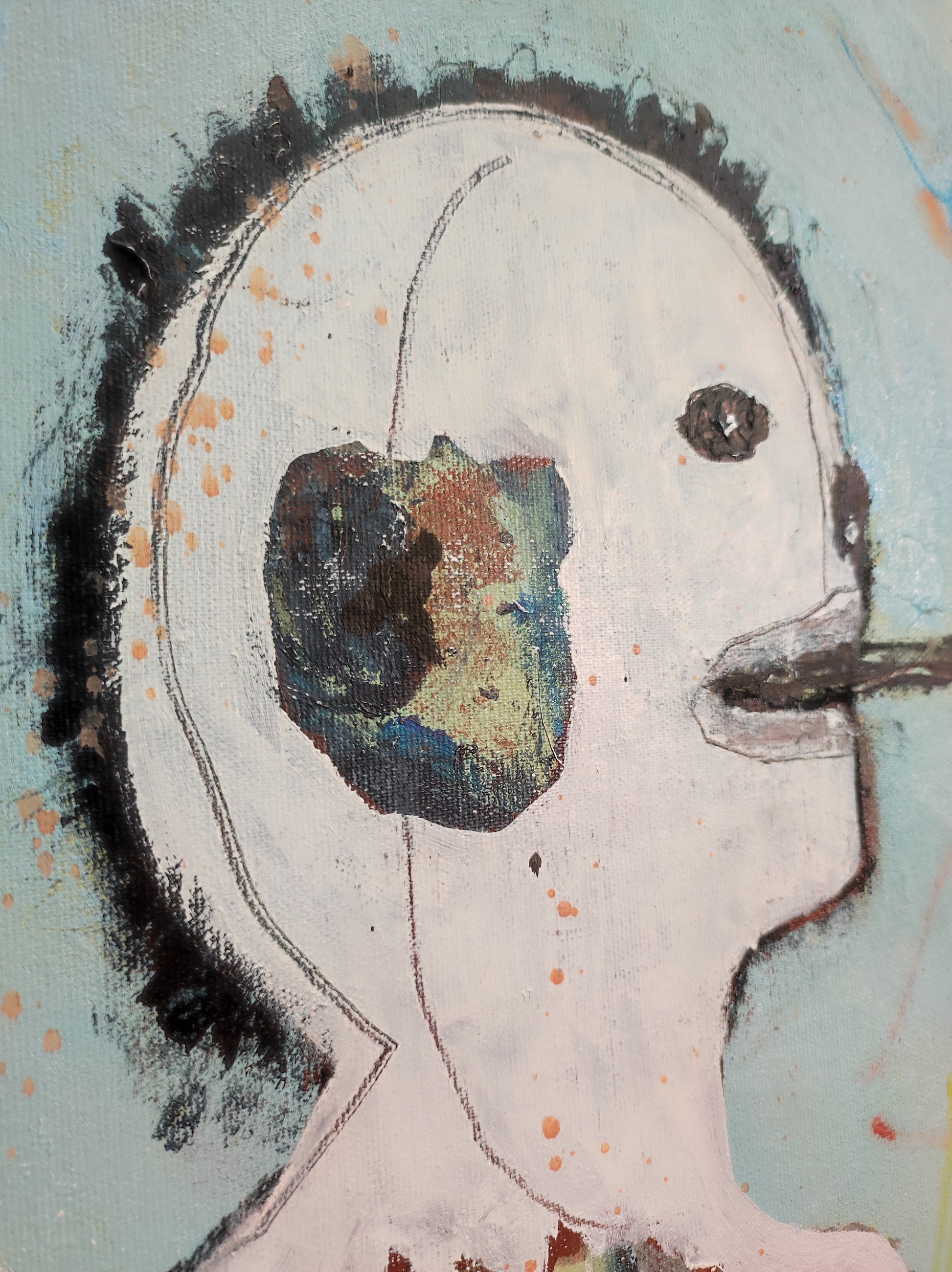 Técnica: acrílico, pigmentos, lápiz, gesso y carboncillo.
