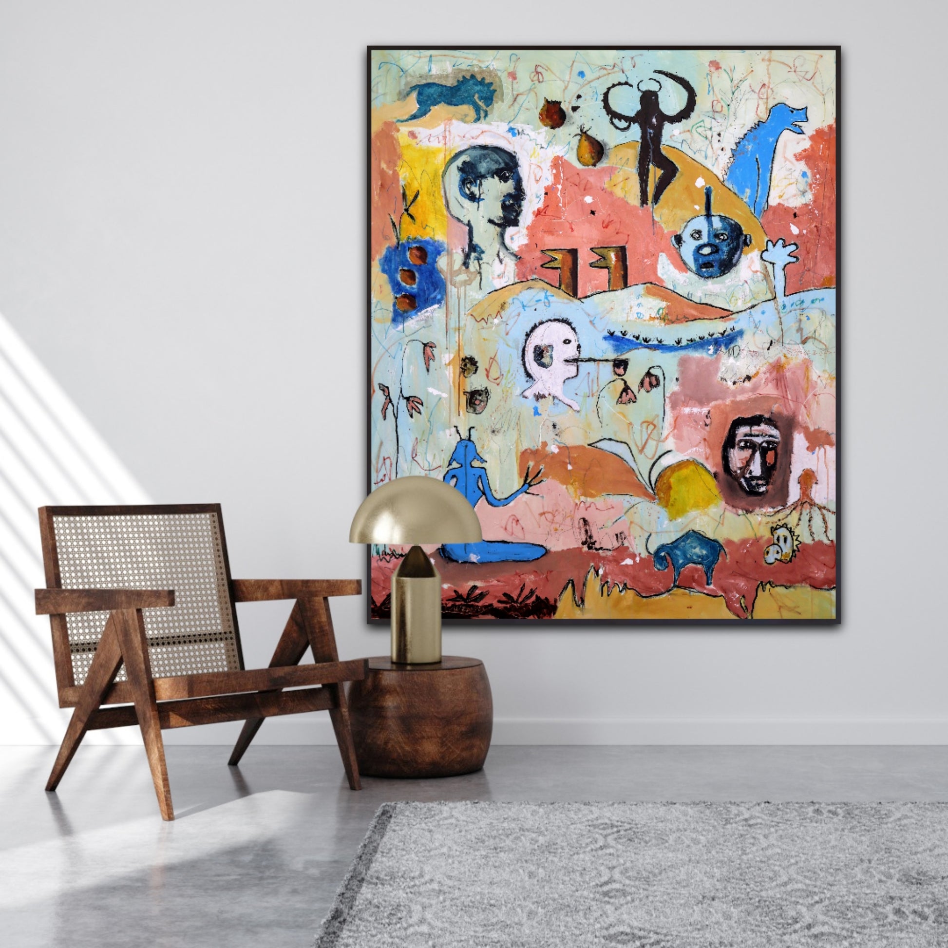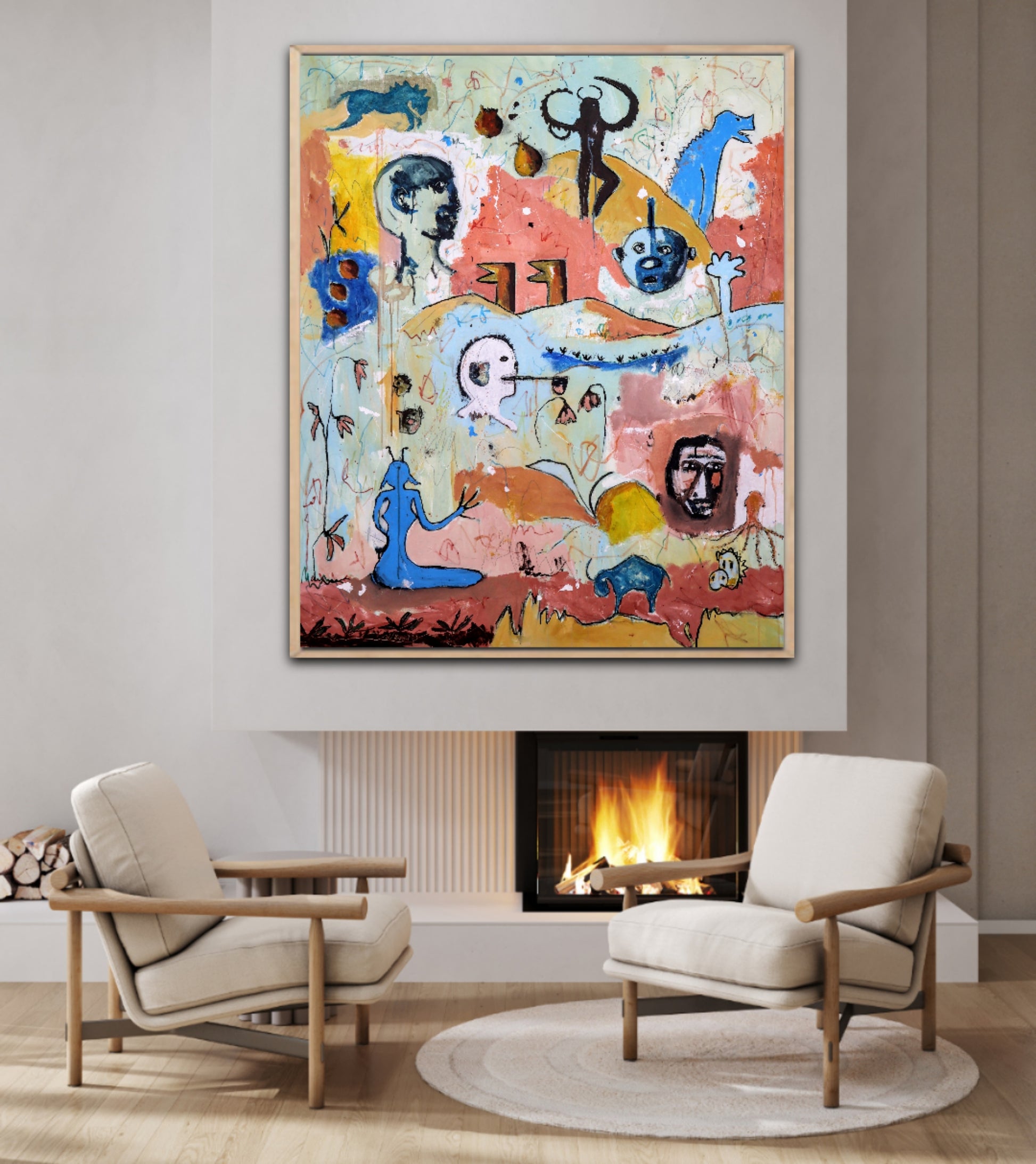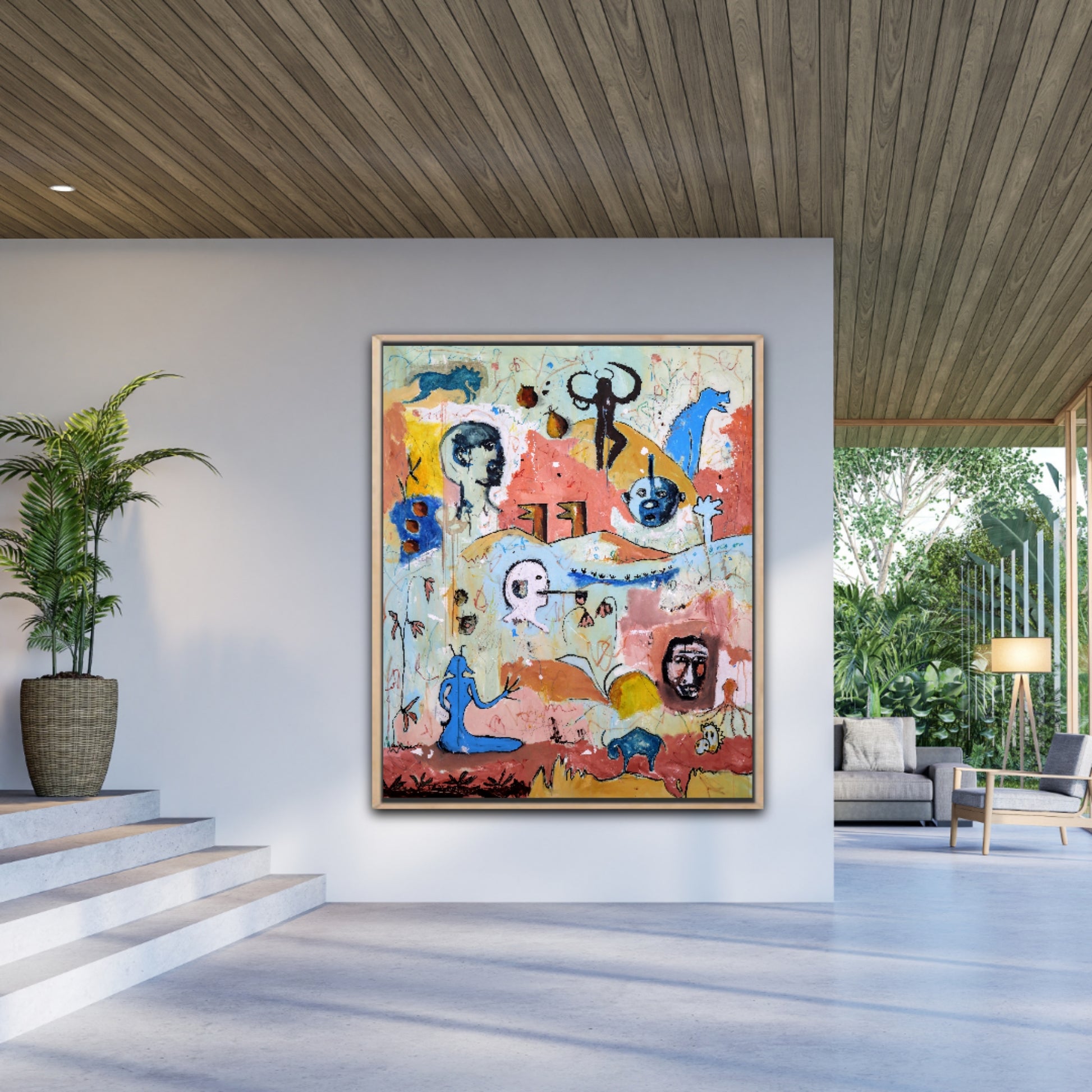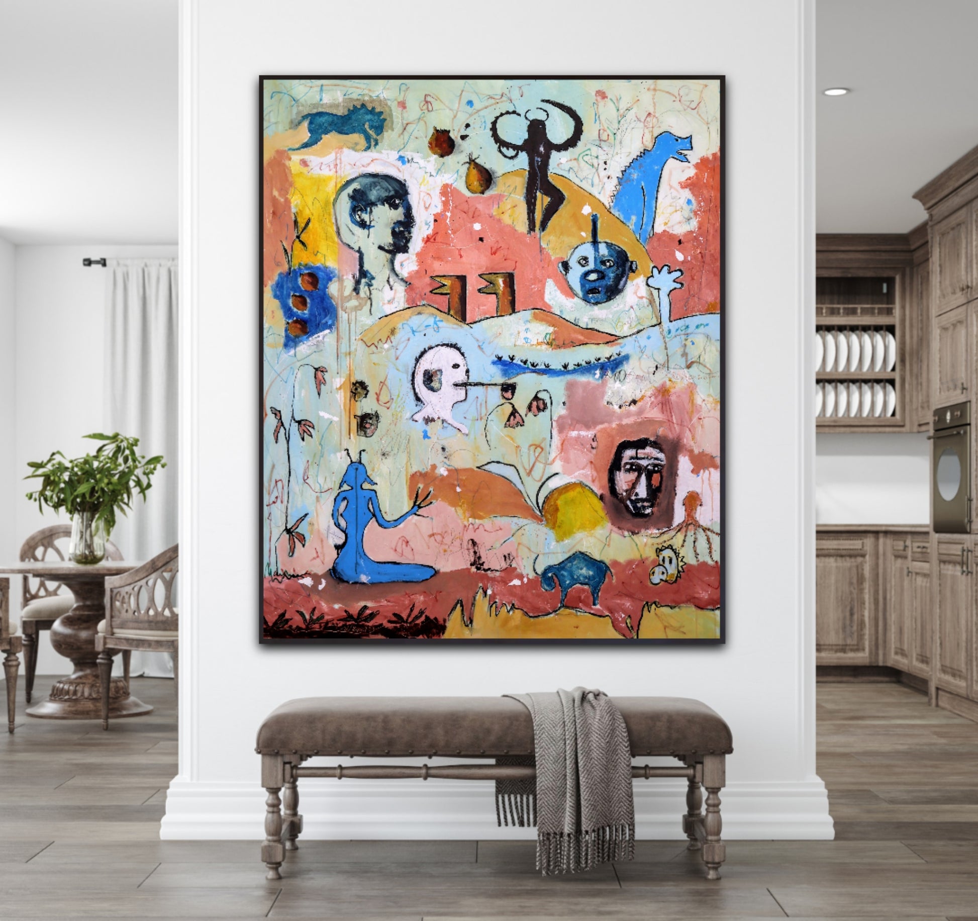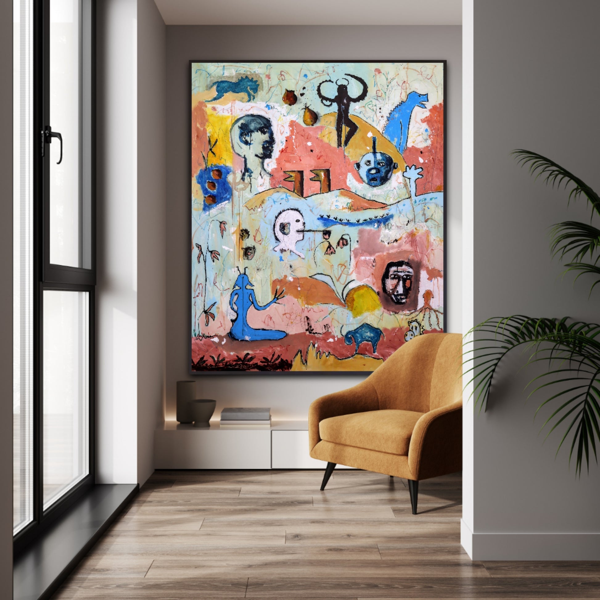 Técnica: acrílico, pigmentos, lápiz, gesso y carboncillo.