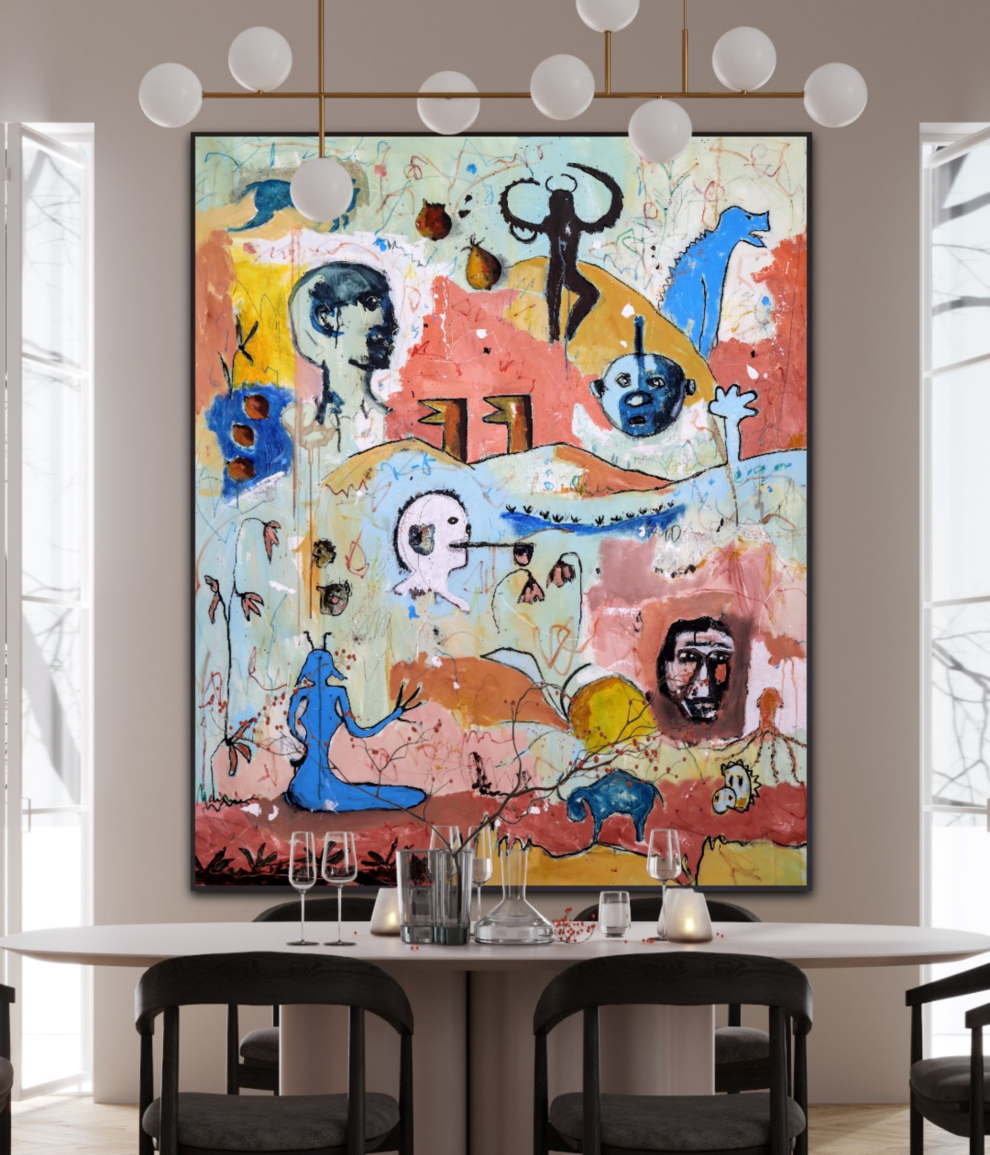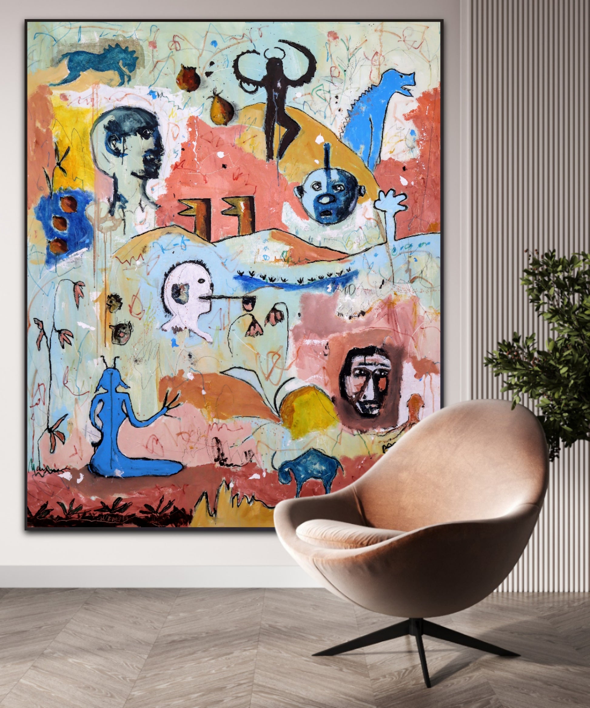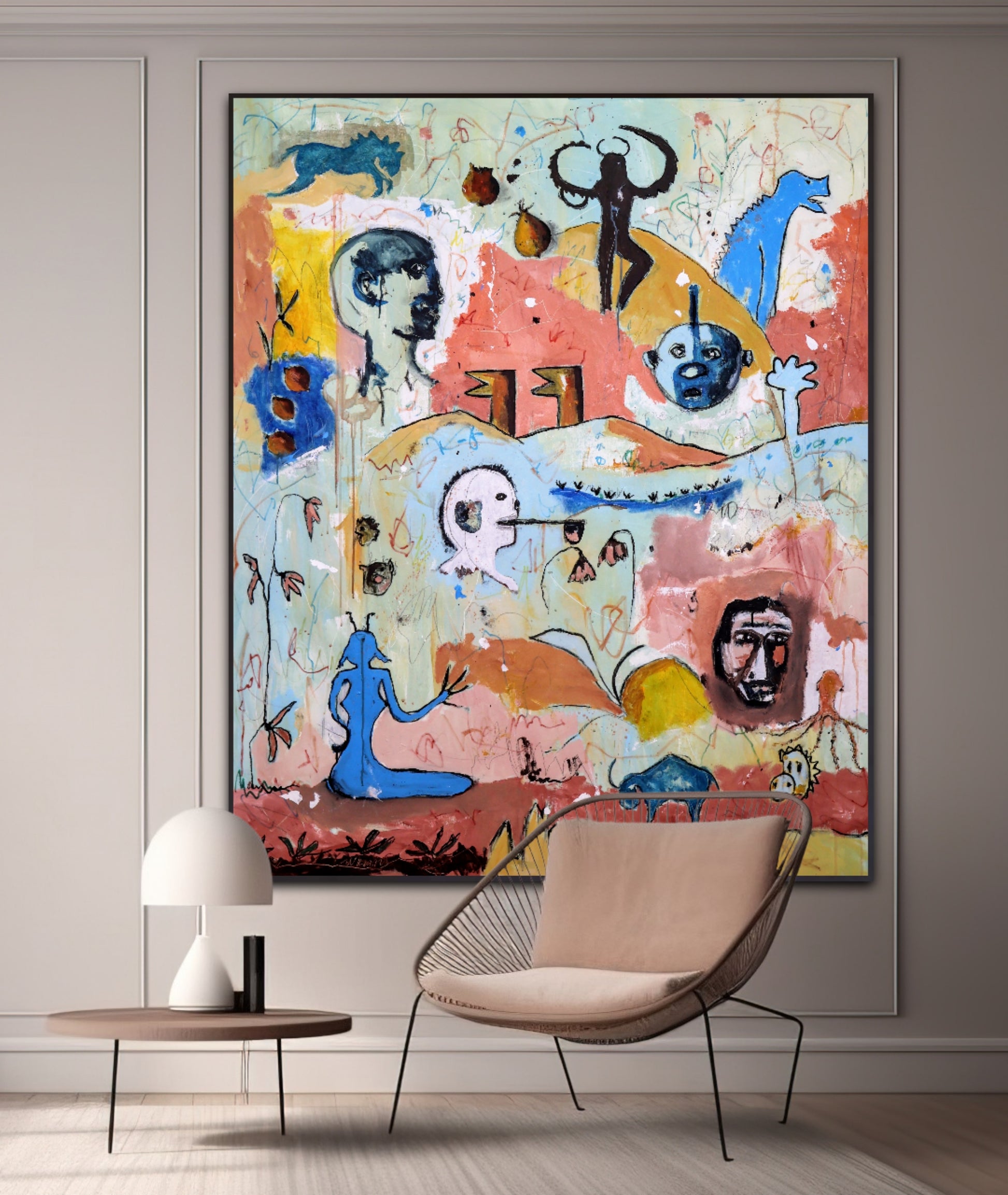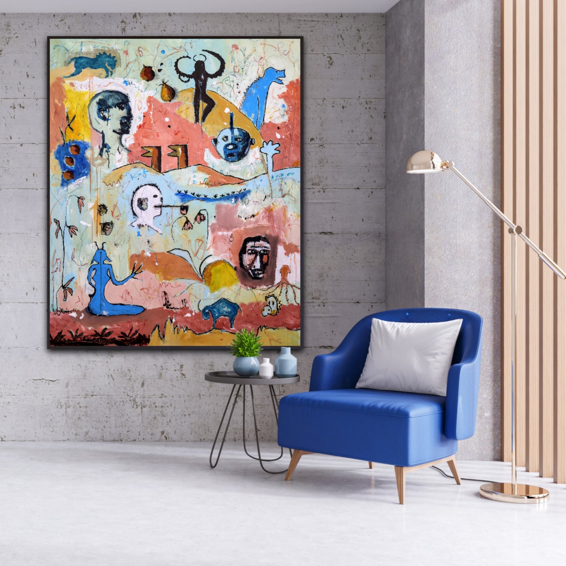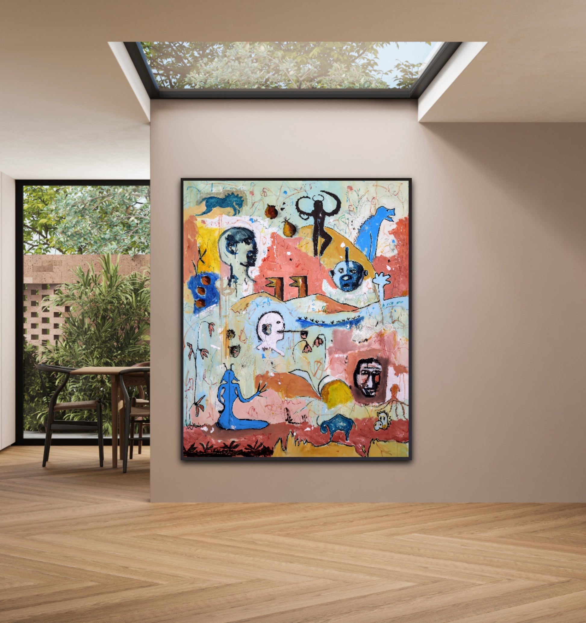 Técnica: acrílico, pigmentos, lápiz, gesso y carboncillo.