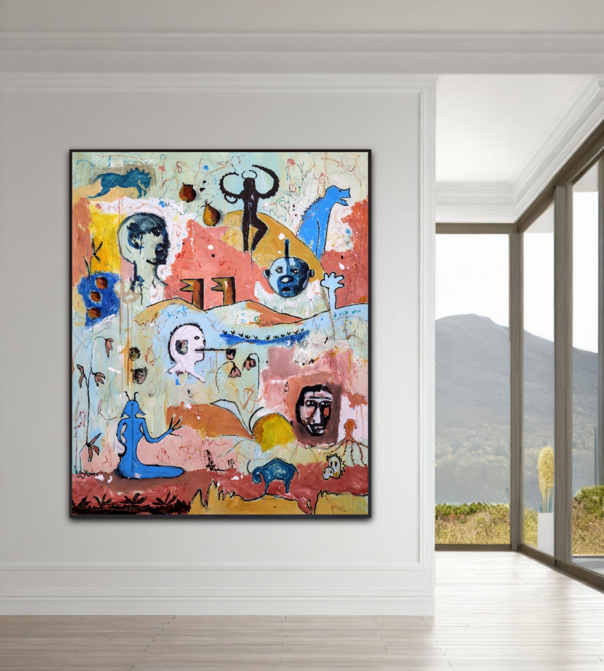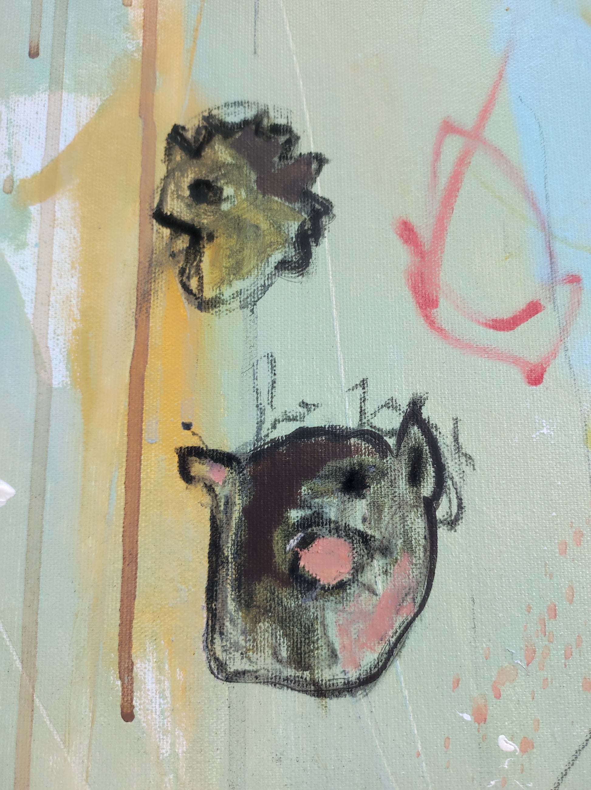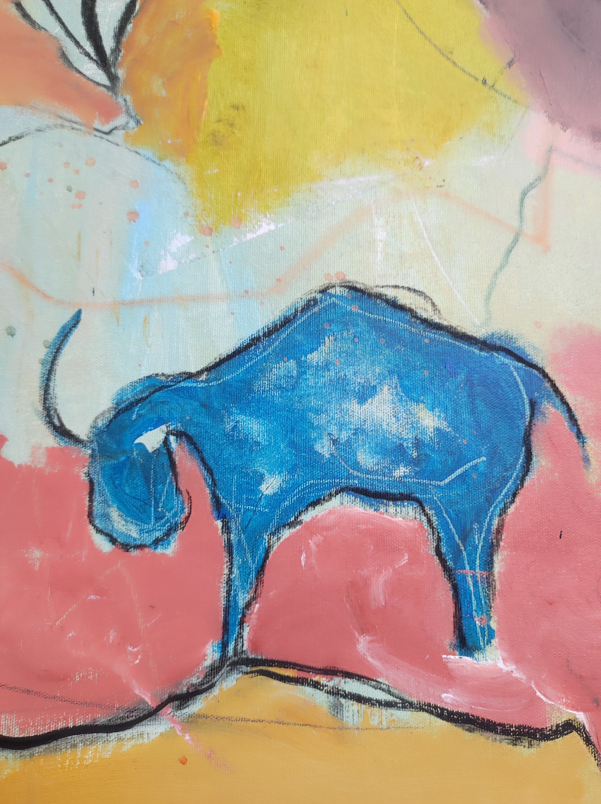 Pintura gestual, intuitiva, que deja que las cosas pasen y se apoya sobre lo que aparece. Aprovechando el accidente y aceptando las consecuencias.