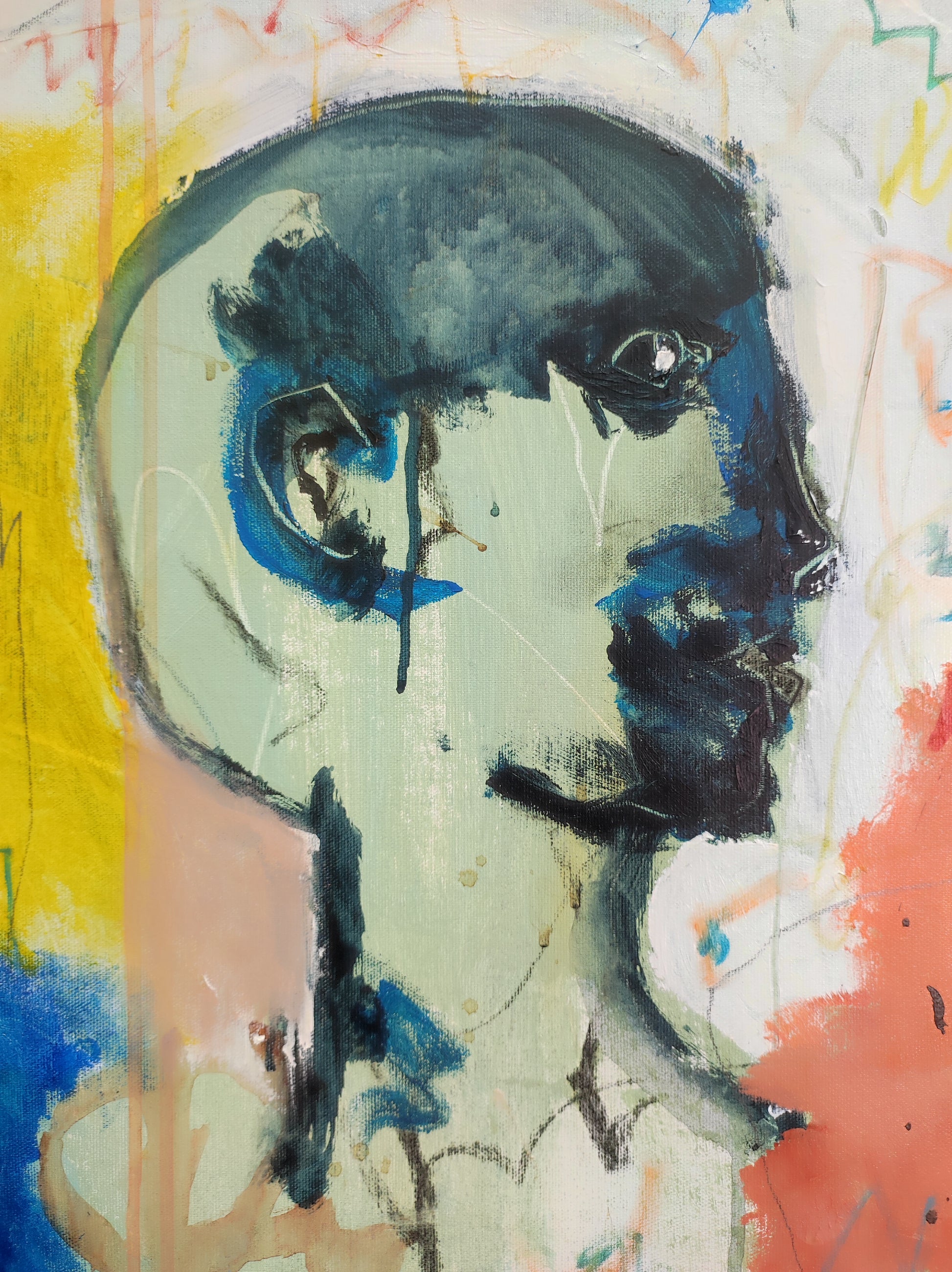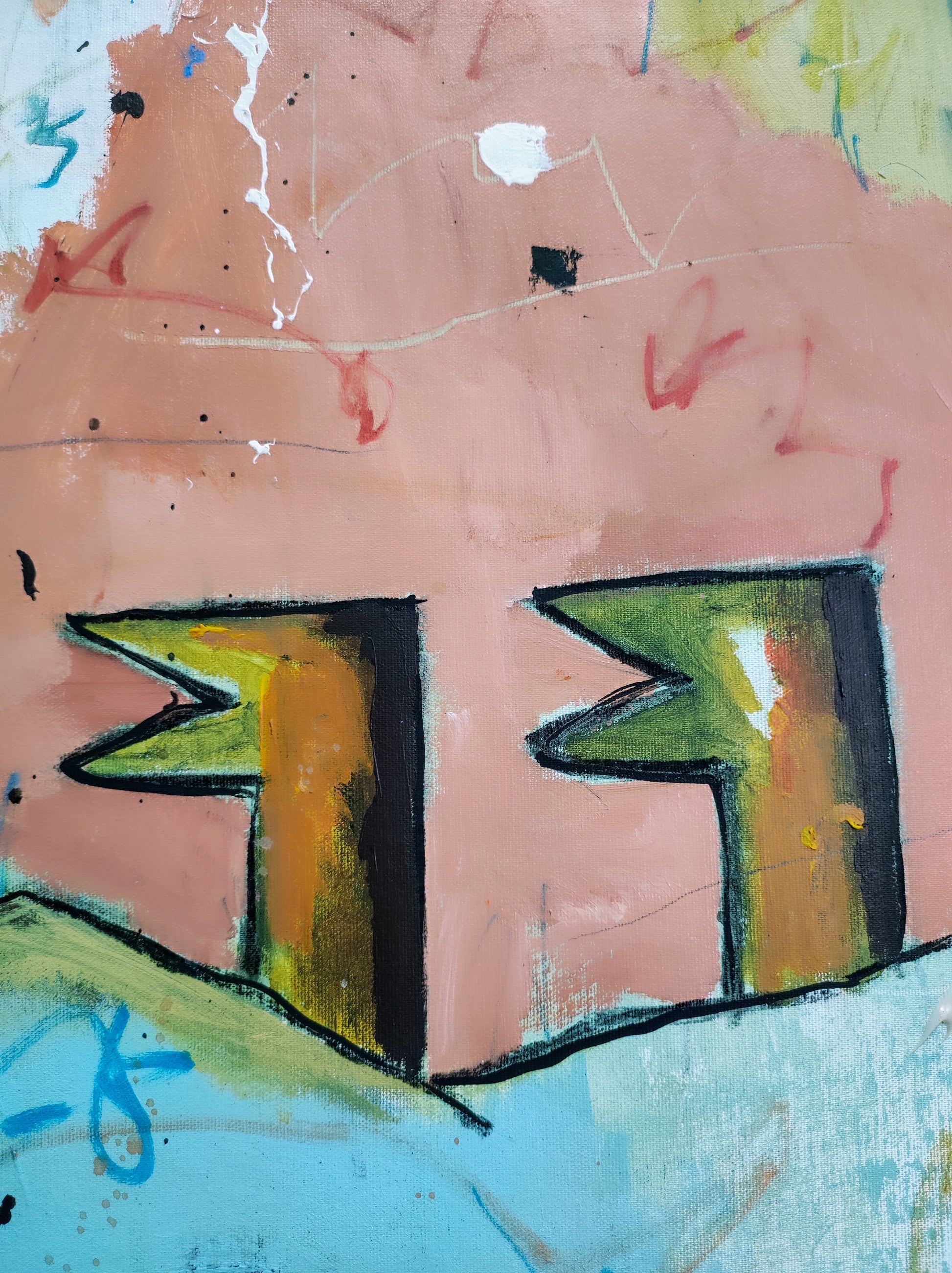 Cuadro trabajado desde la improvisación libre. Action painting con música de Matthew Halsall.